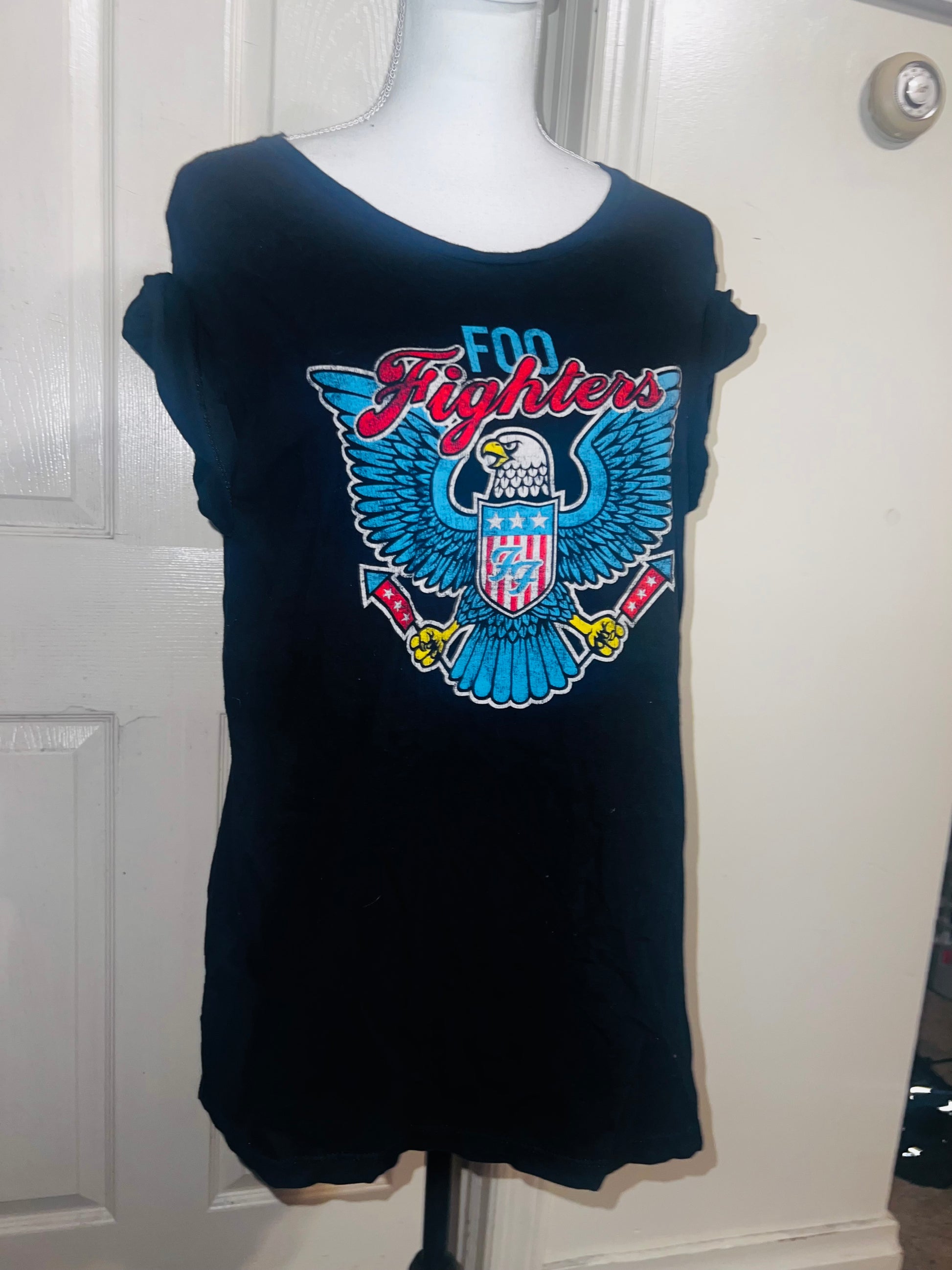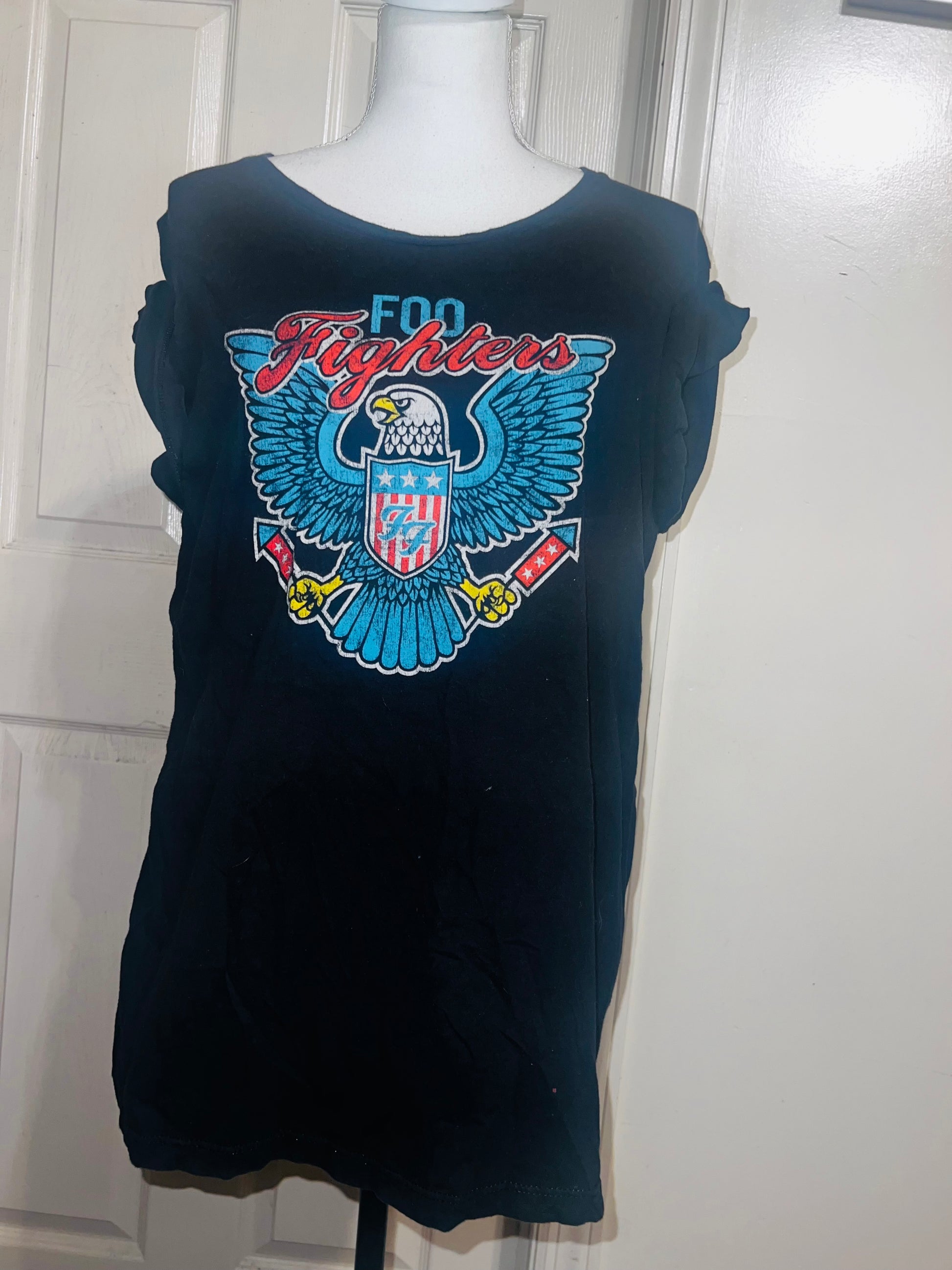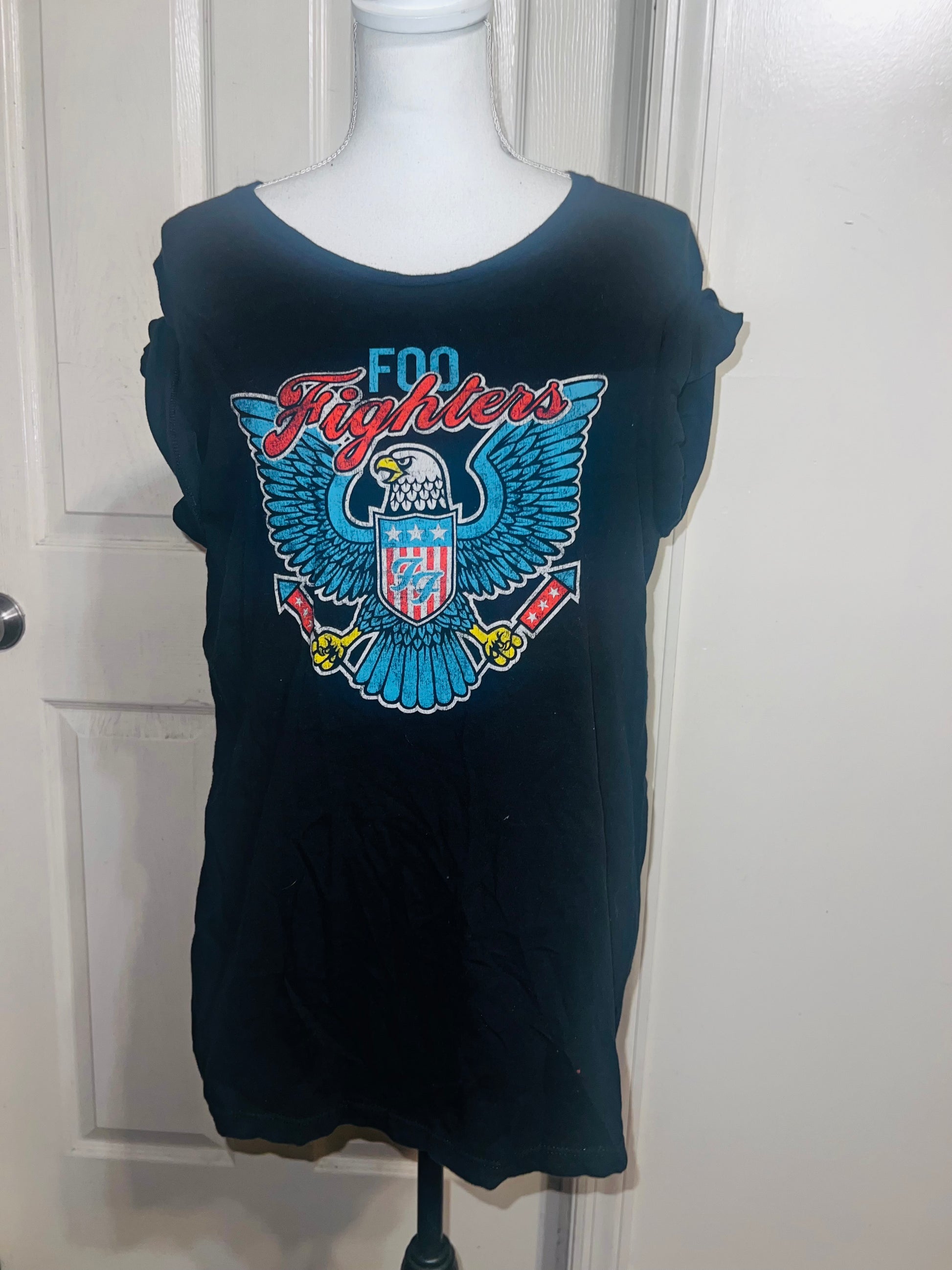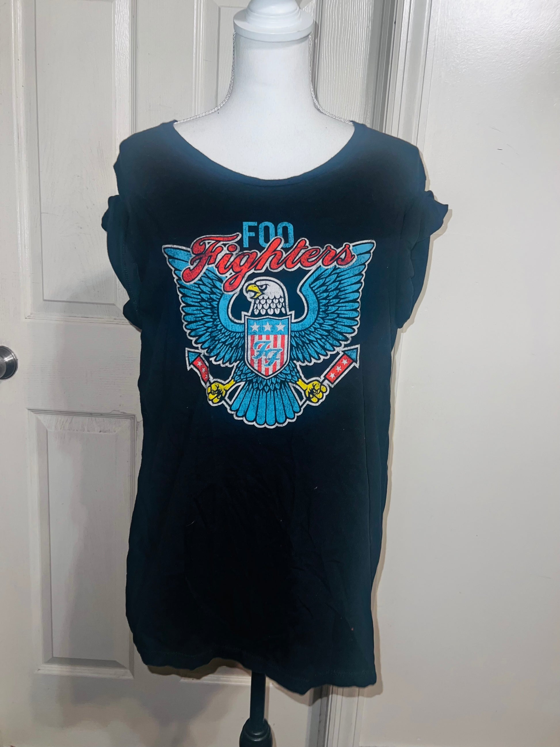 A black Foo Fighters tee with the Eagle logo on the front, size large.