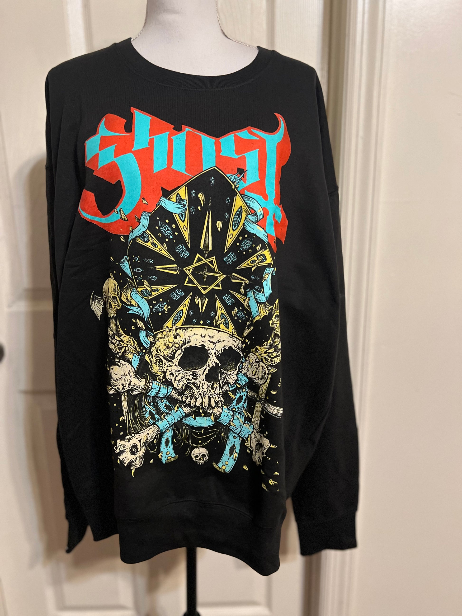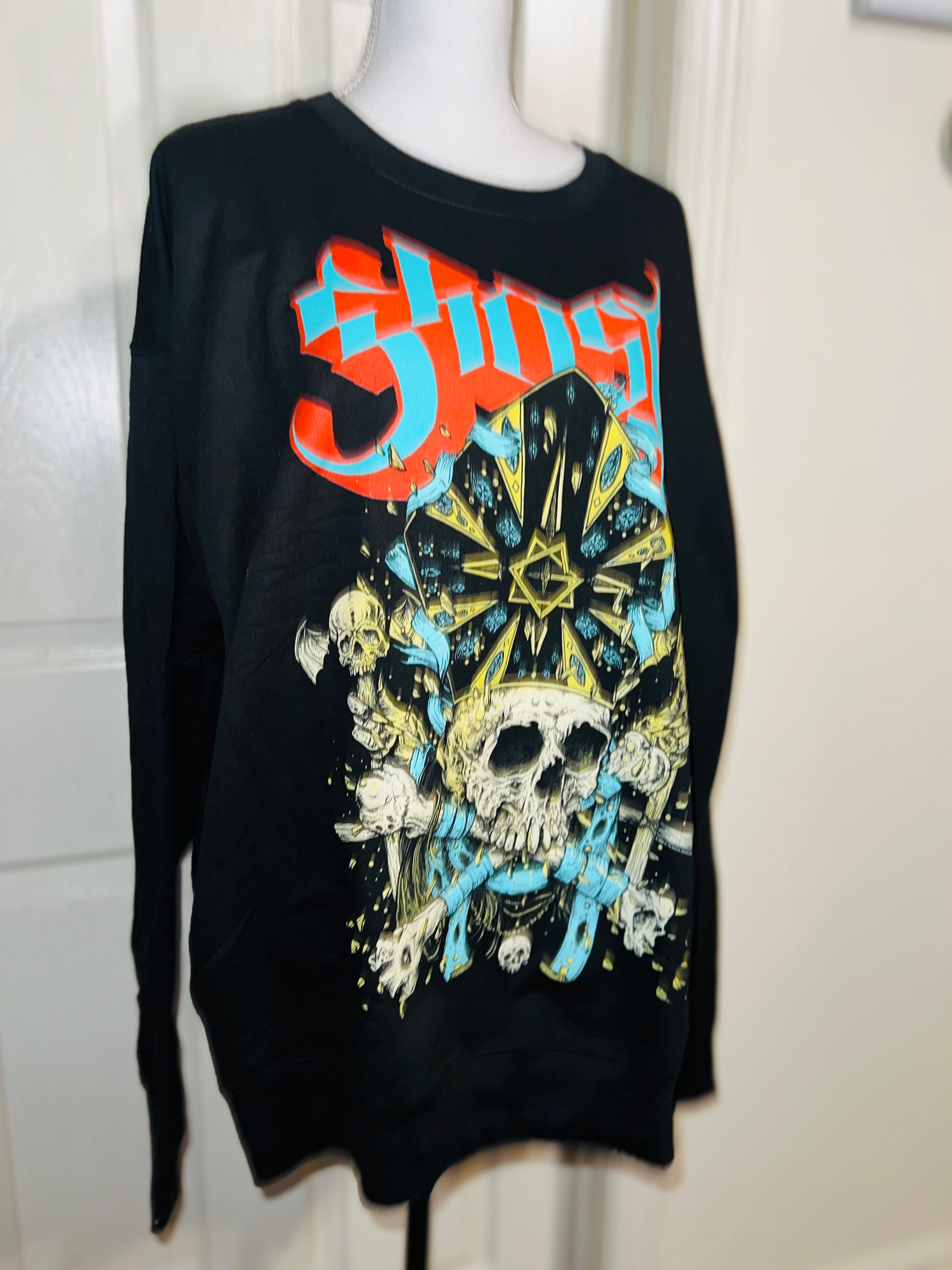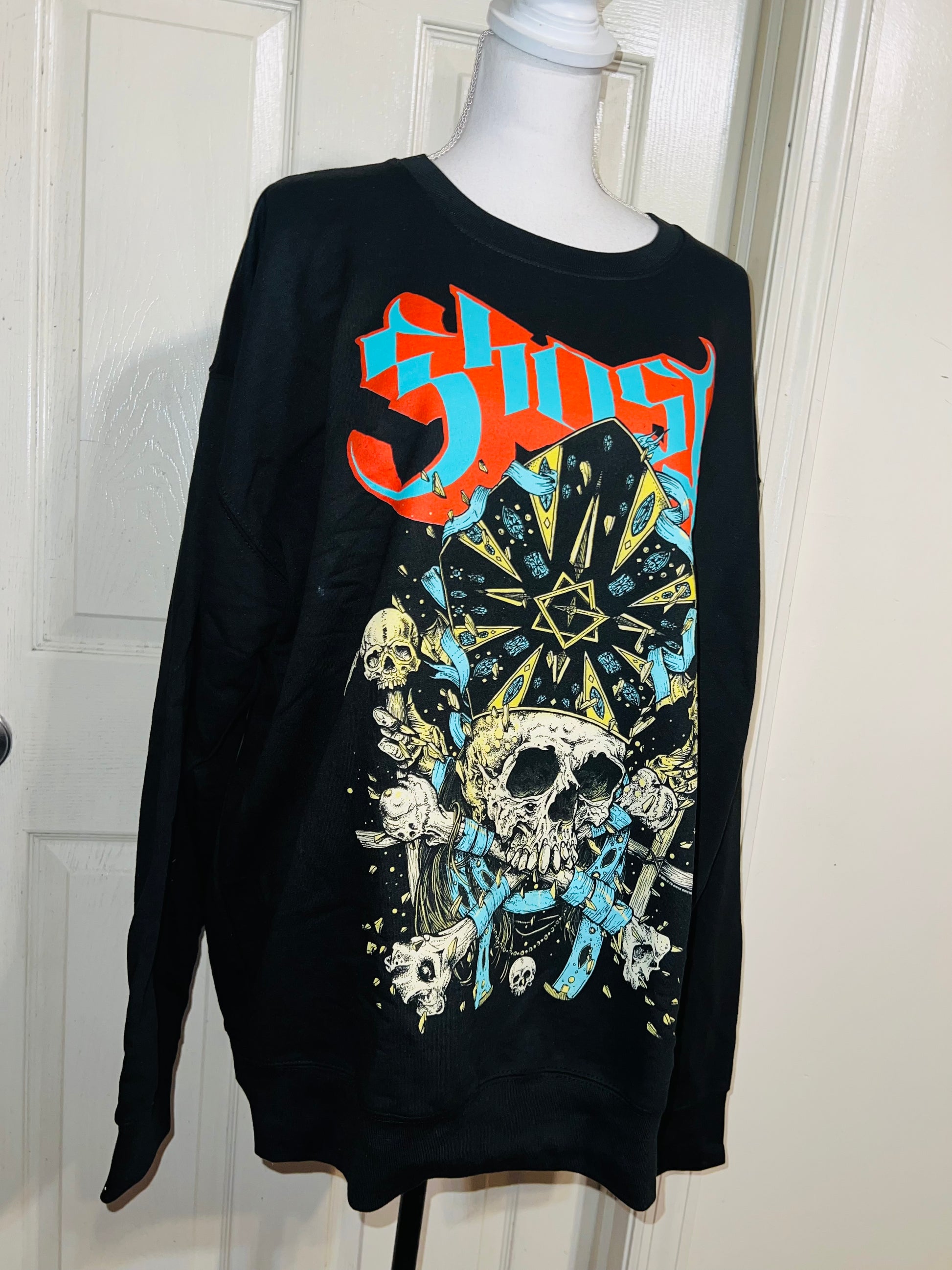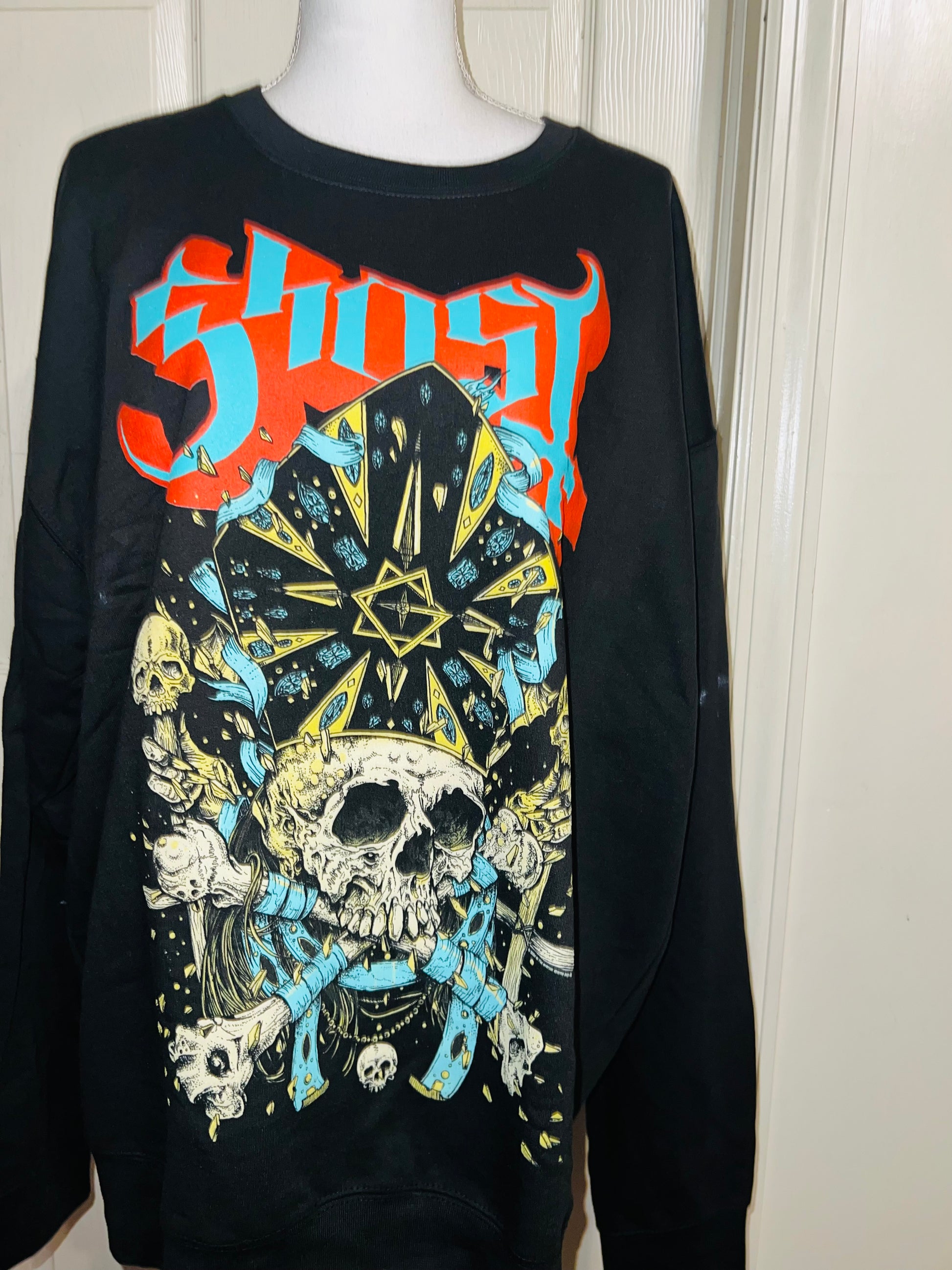 A black Ghost sweatshirt with a cool graphic on the front. Size L/XL, oversized.