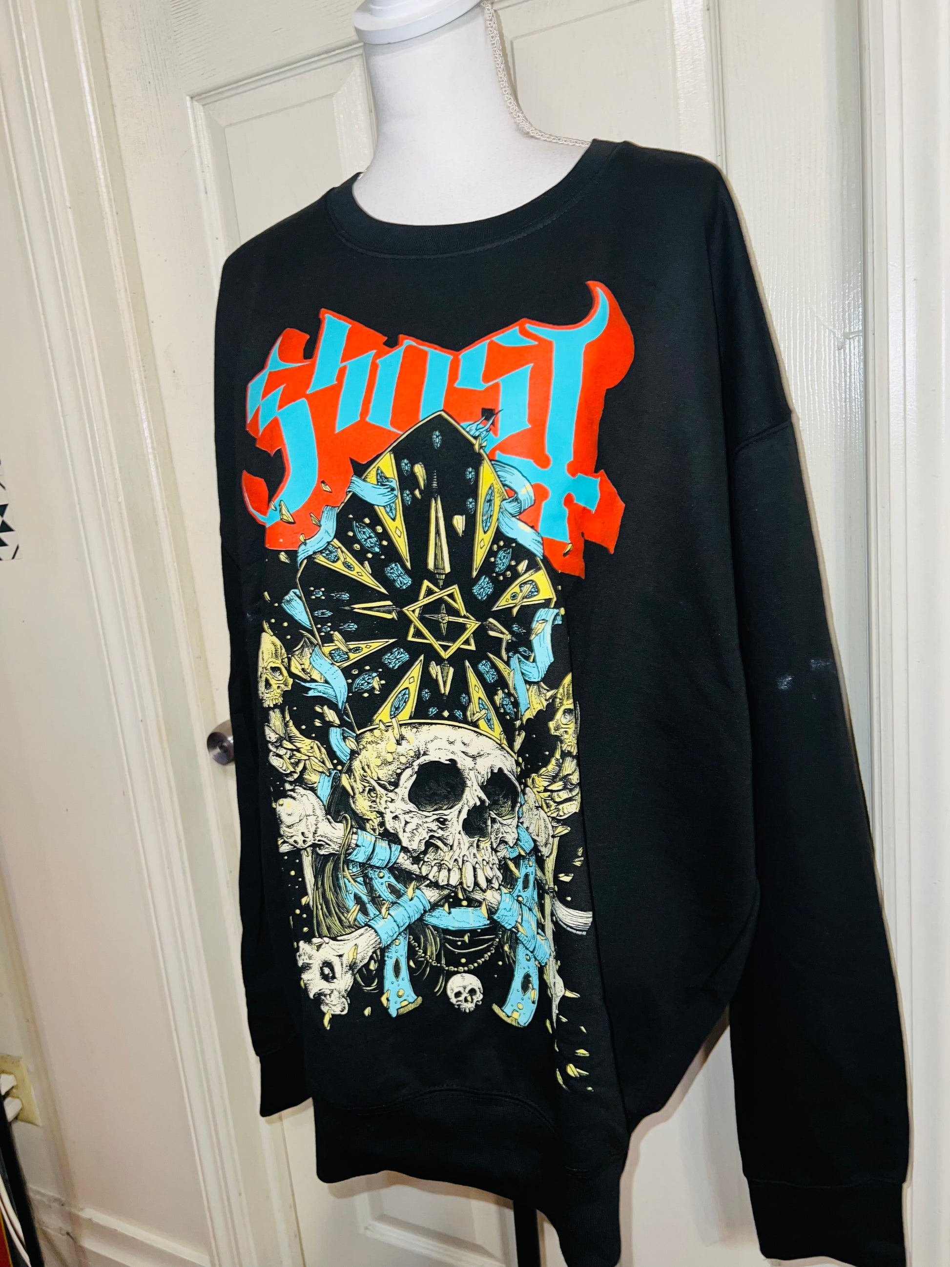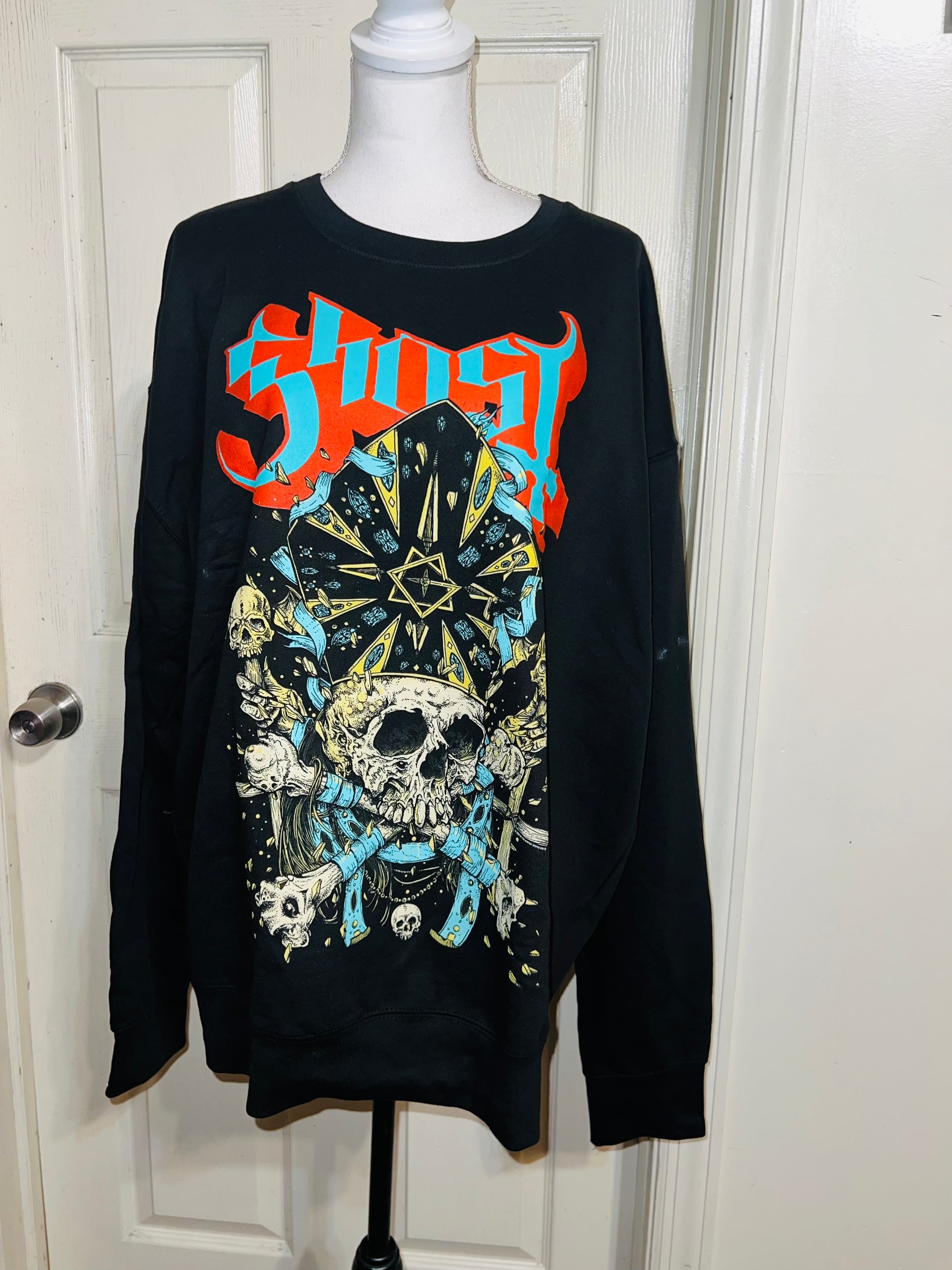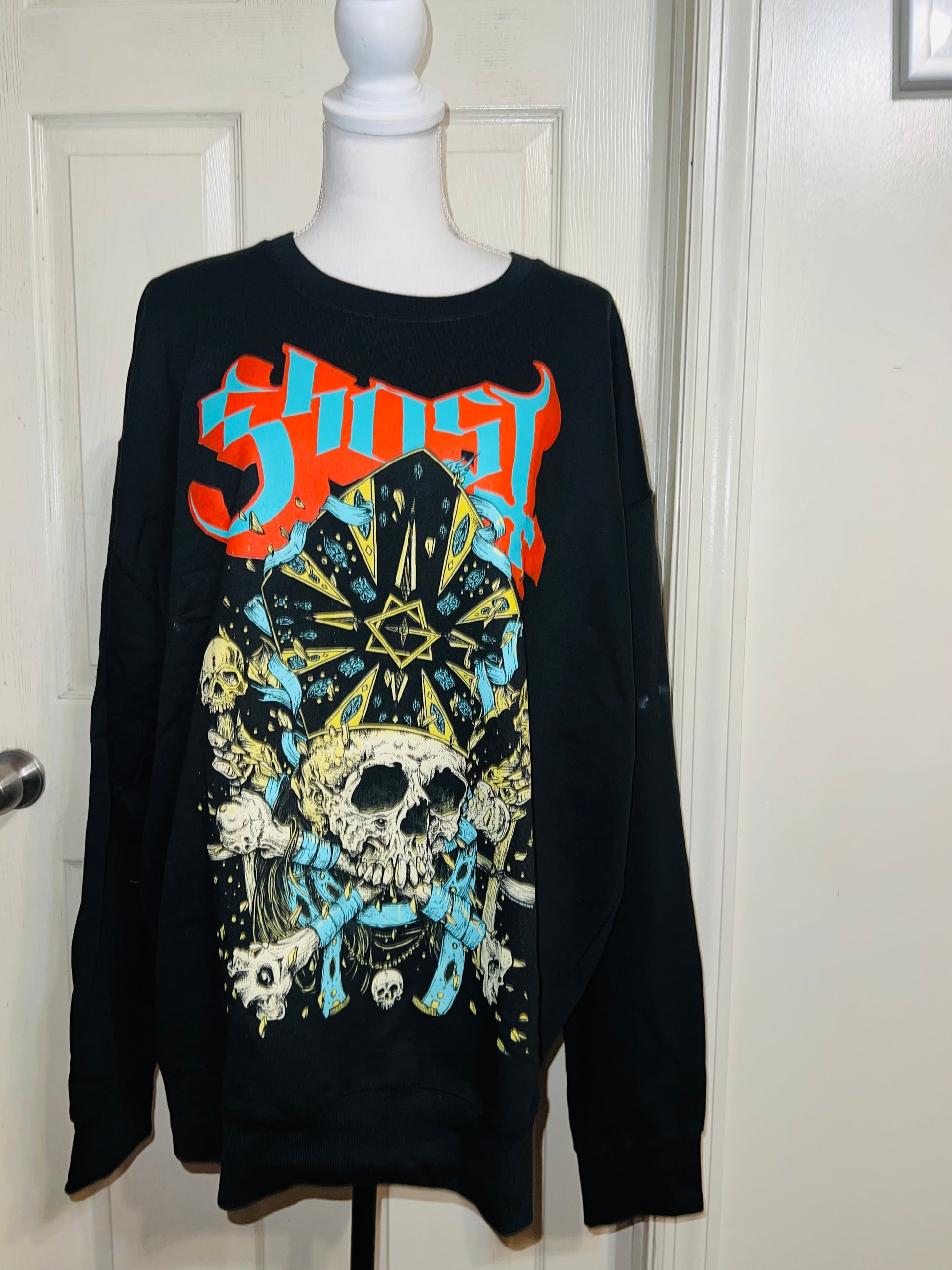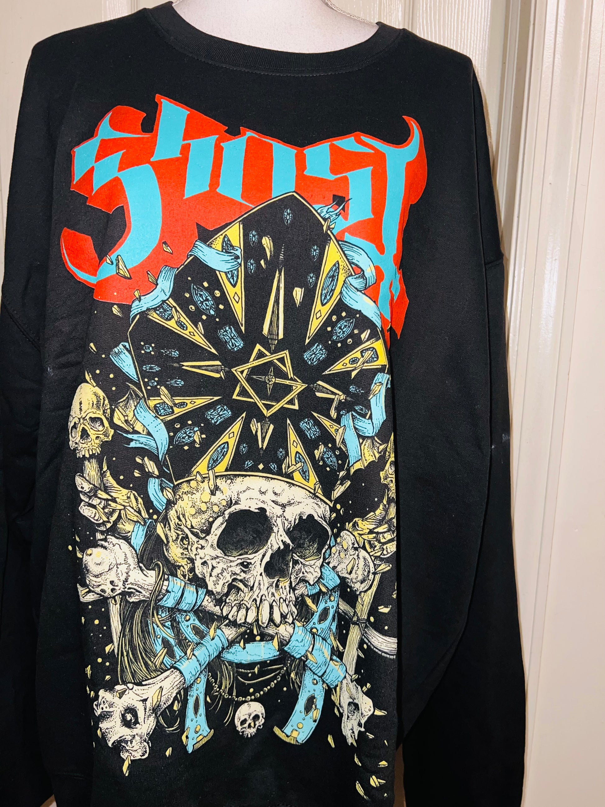 A black Ghost sweatshirt with a cool graphic on the front. Size L/XL, oversized.