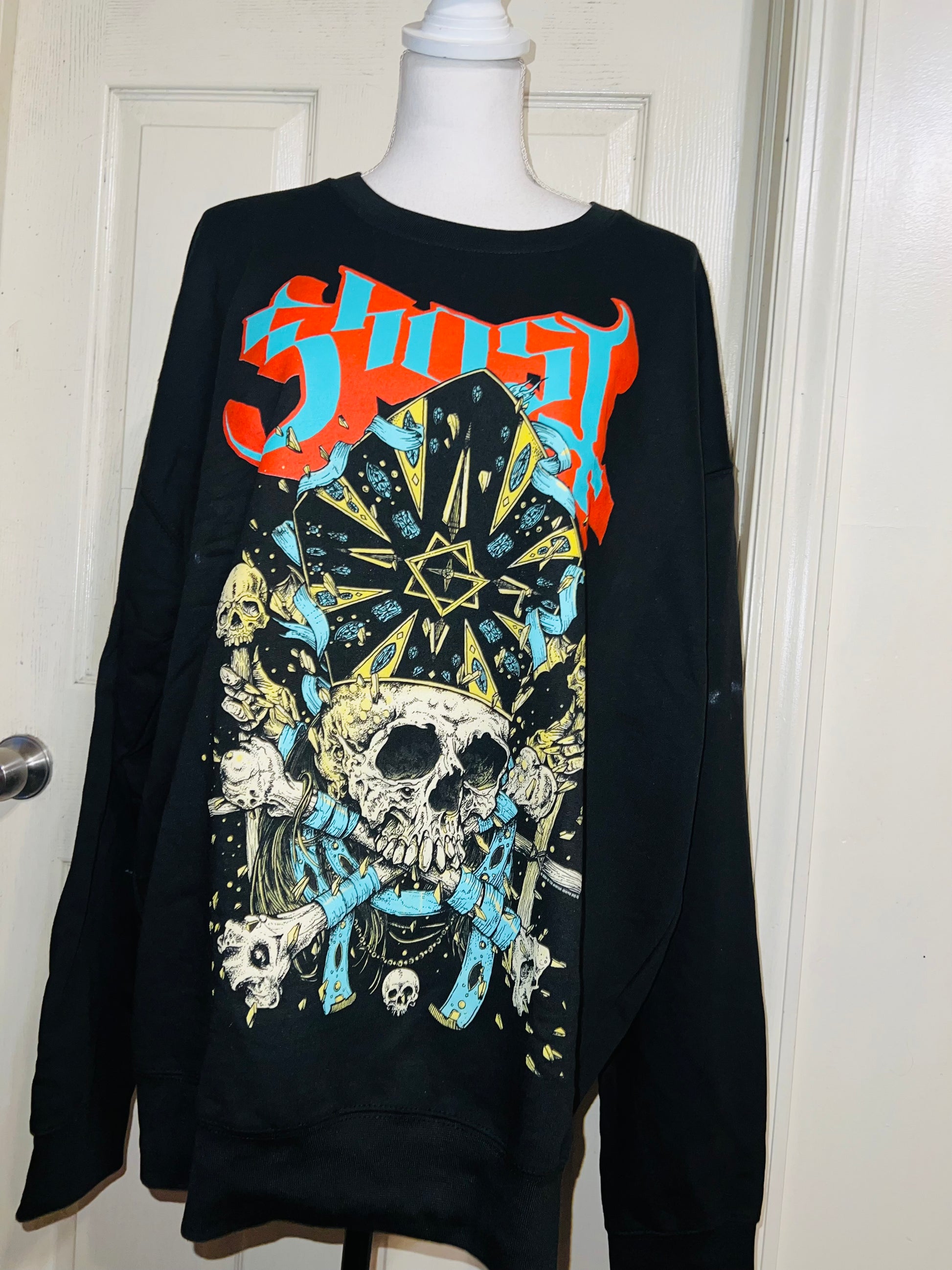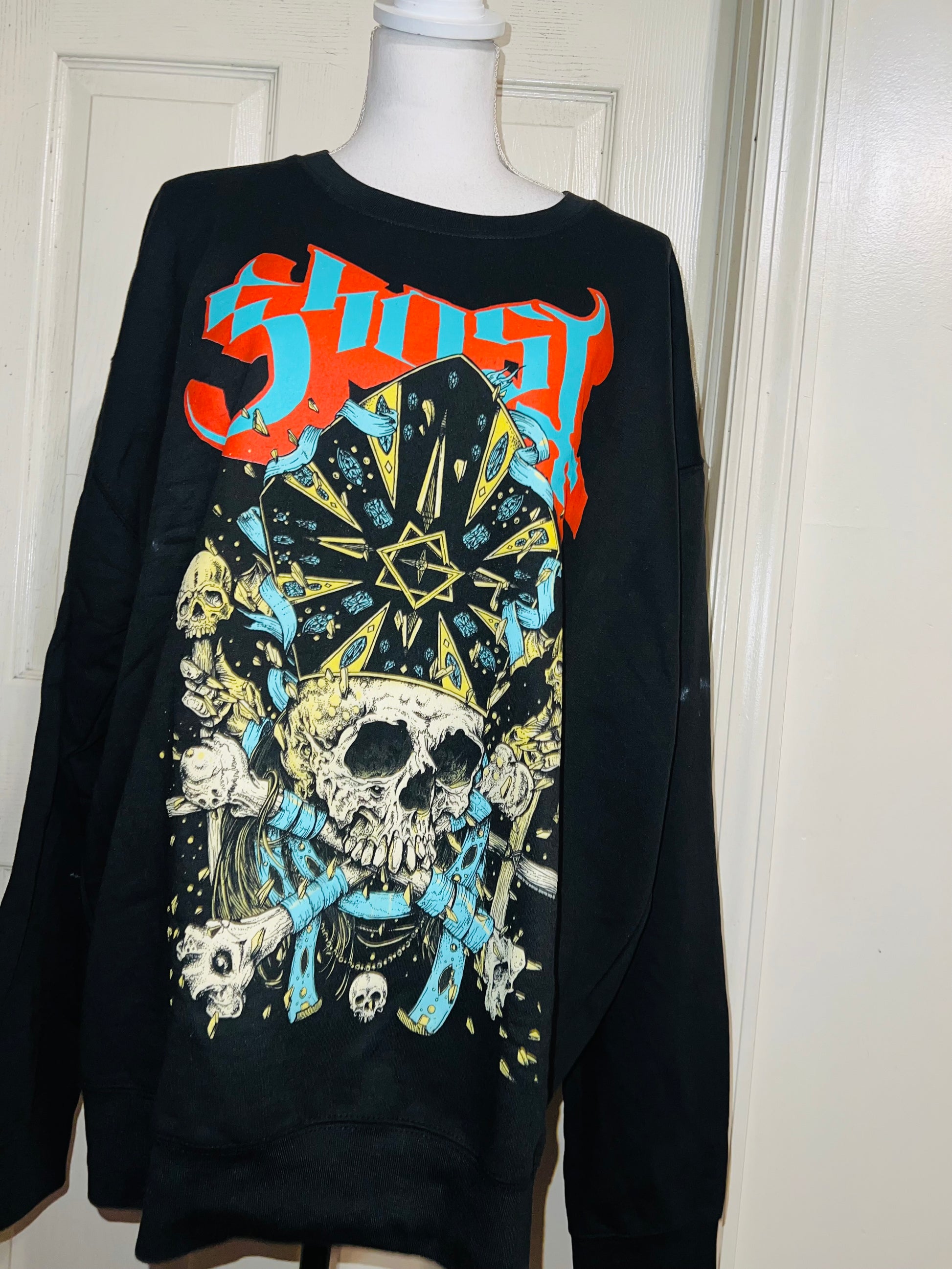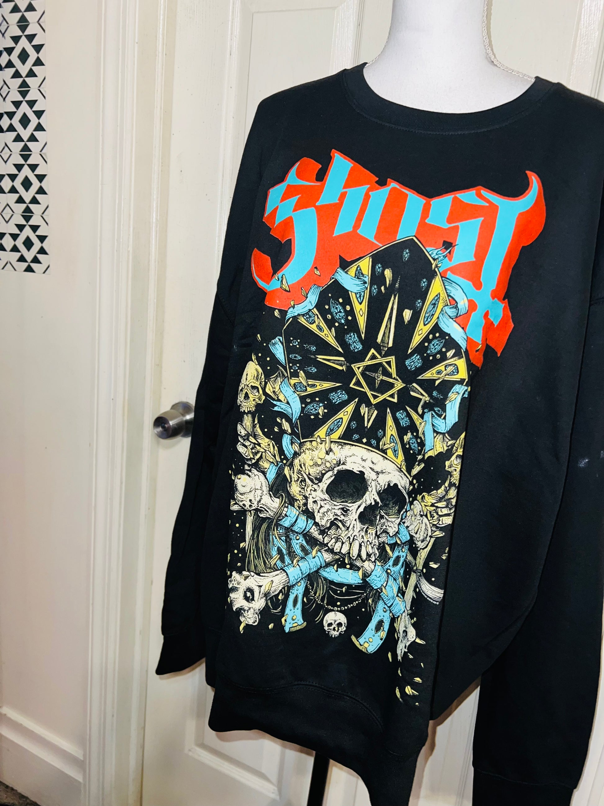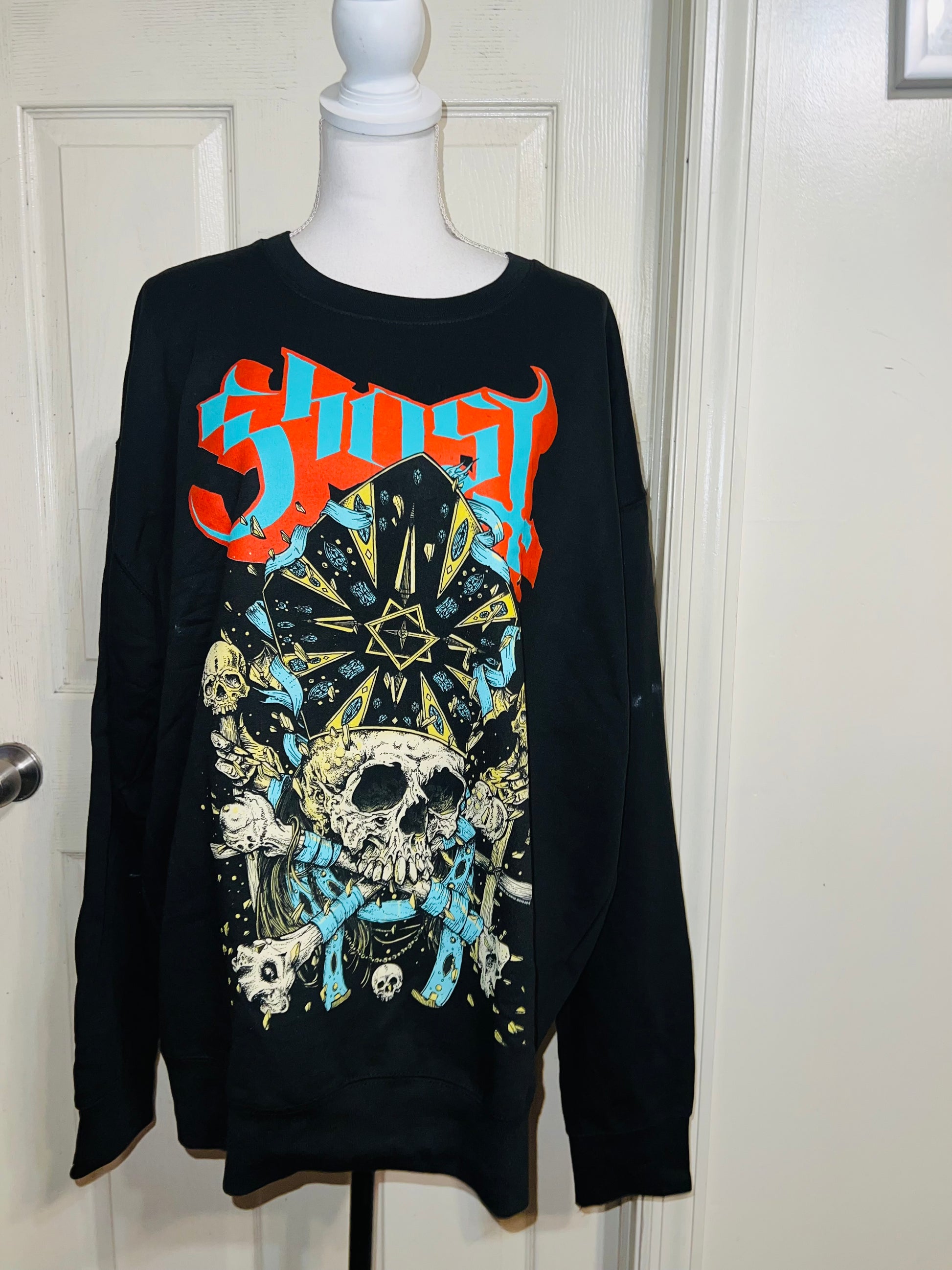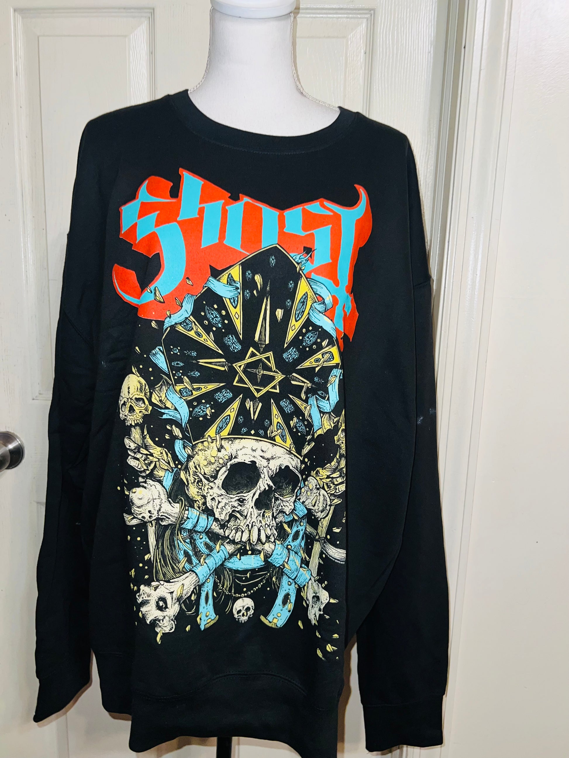 A black Ghost sweatshirt with a cool graphic on the front. Size L/XL, oversized.