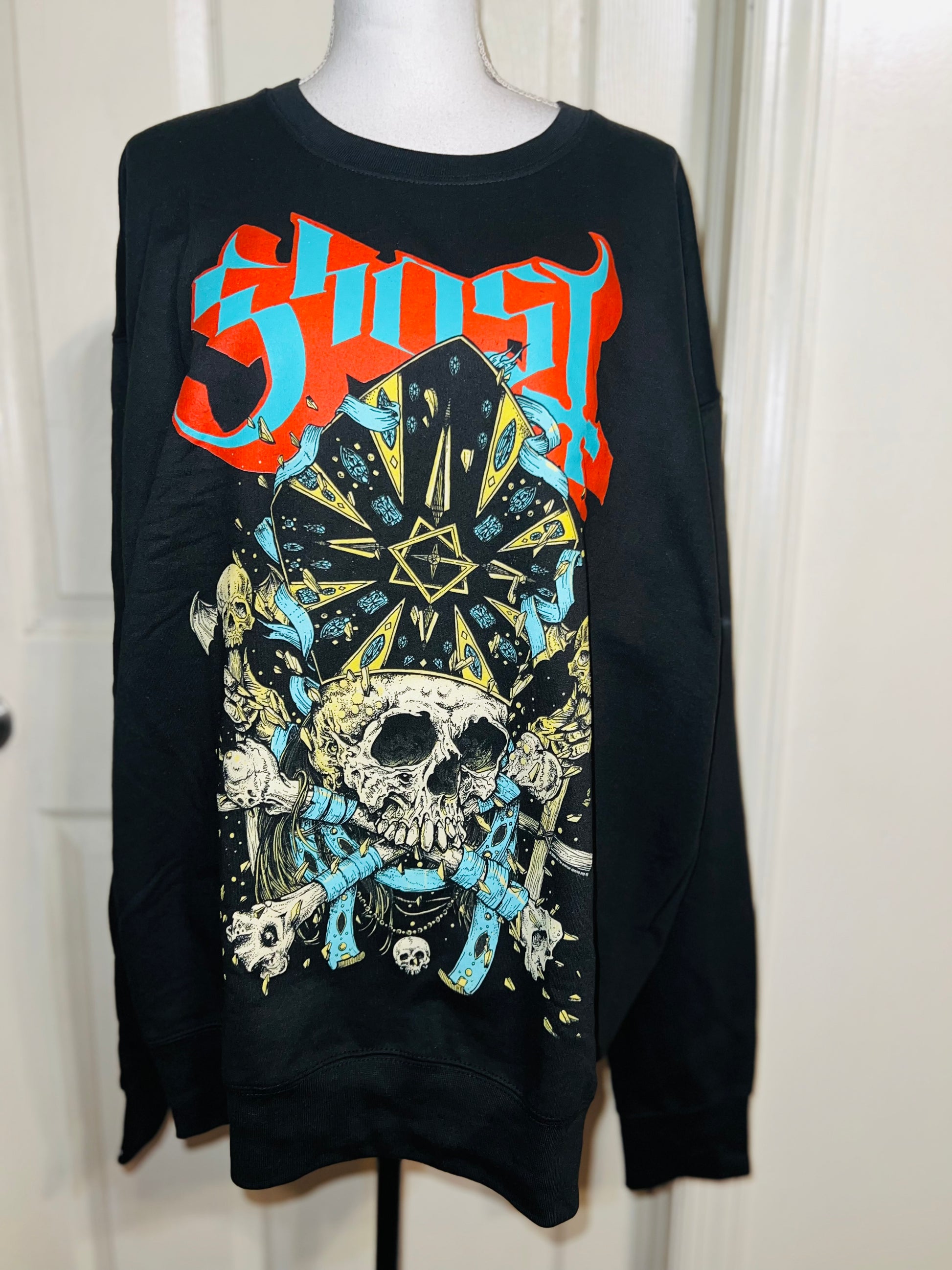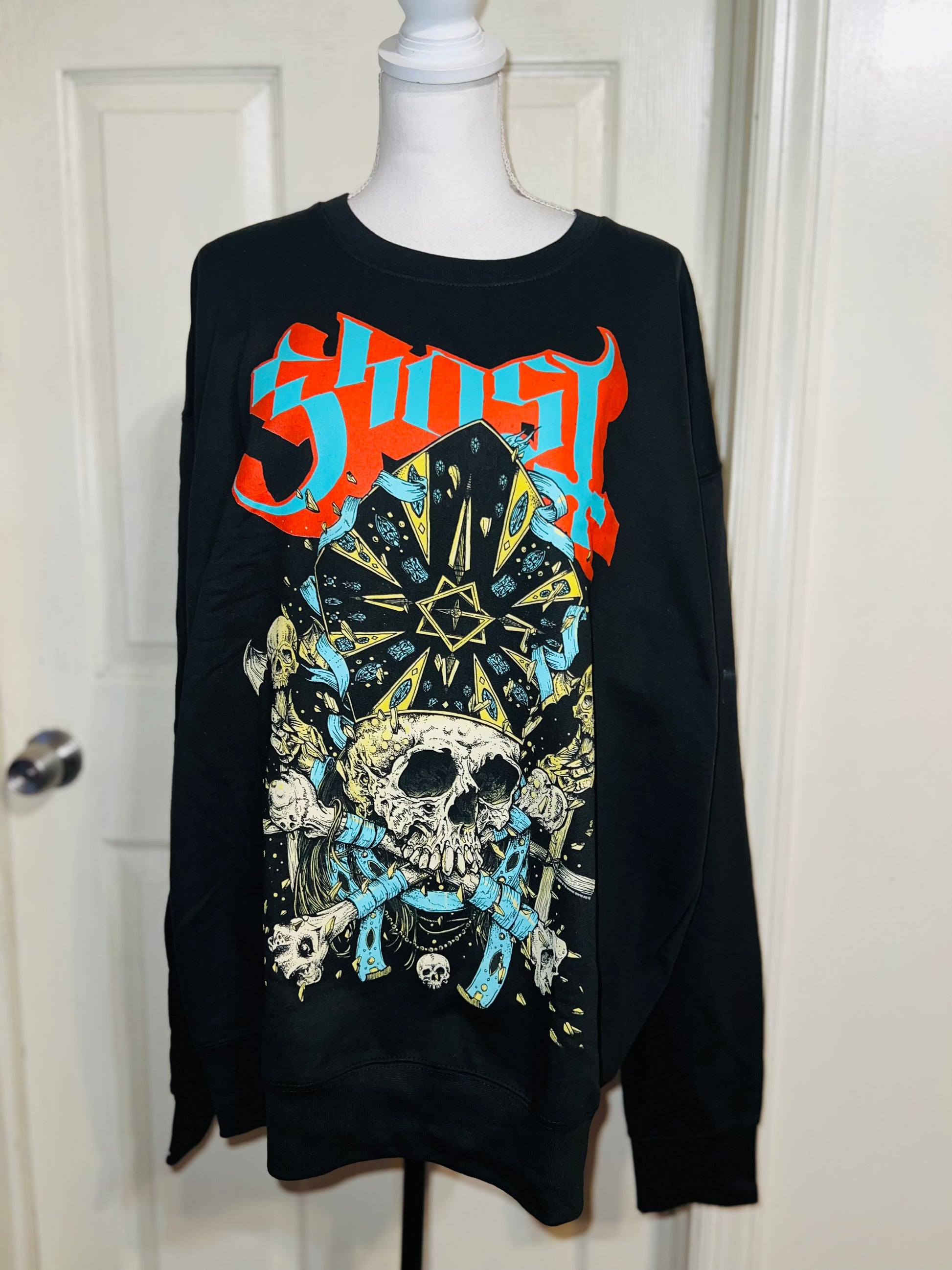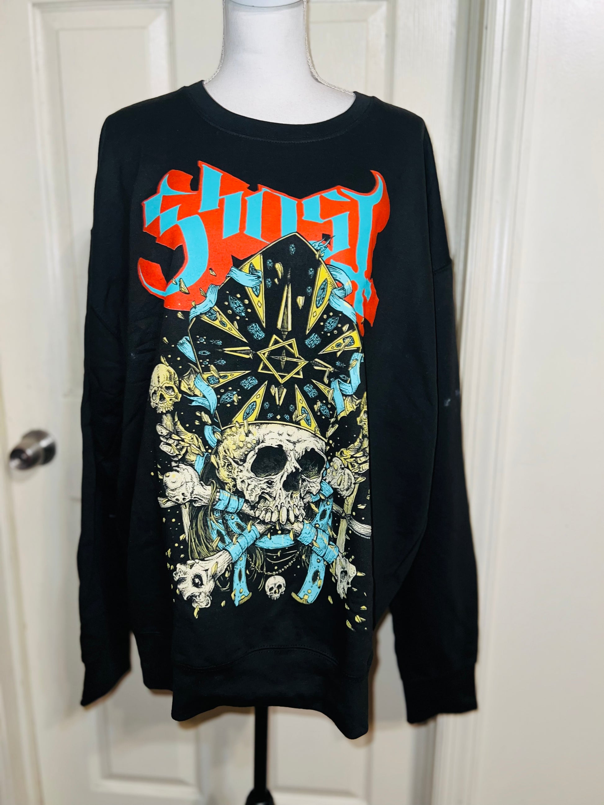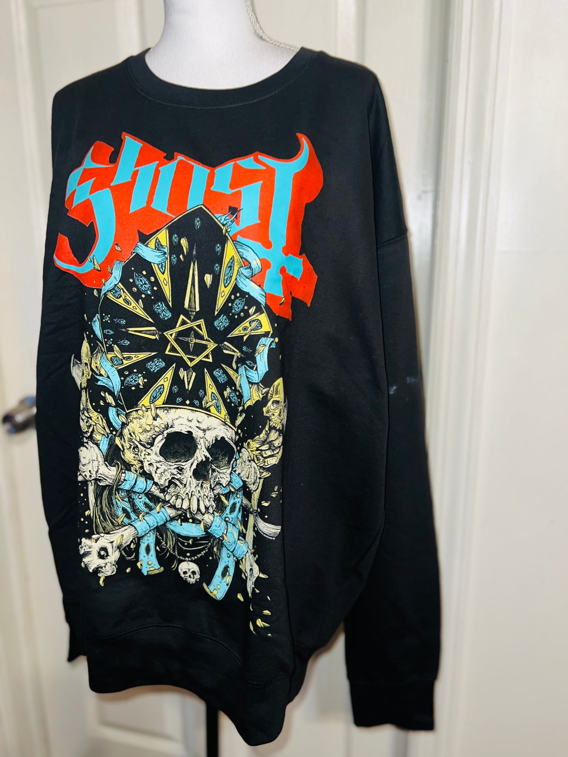 A black Ghost sweatshirt with a cool graphic on the front. Size L/XL, oversized.