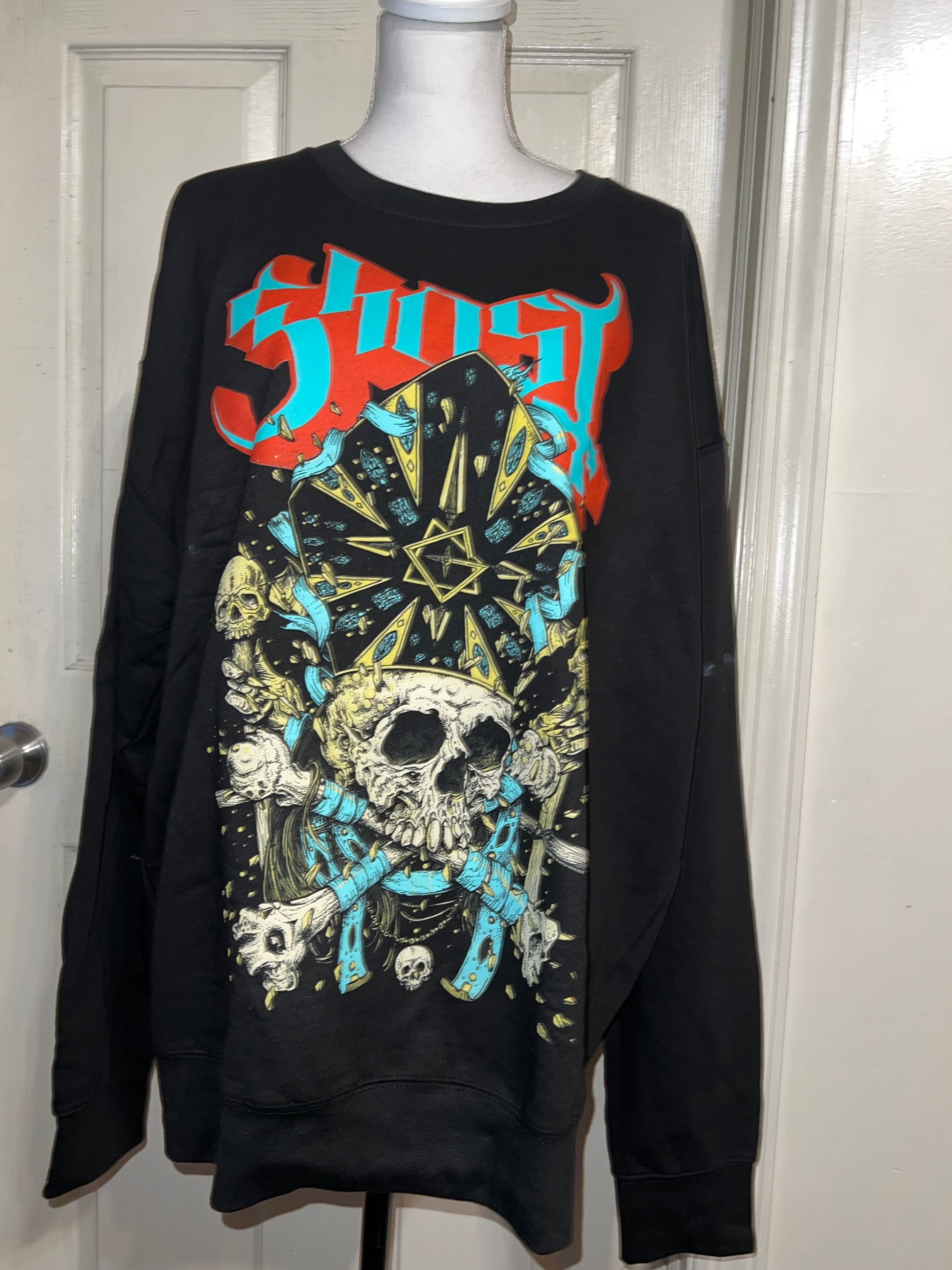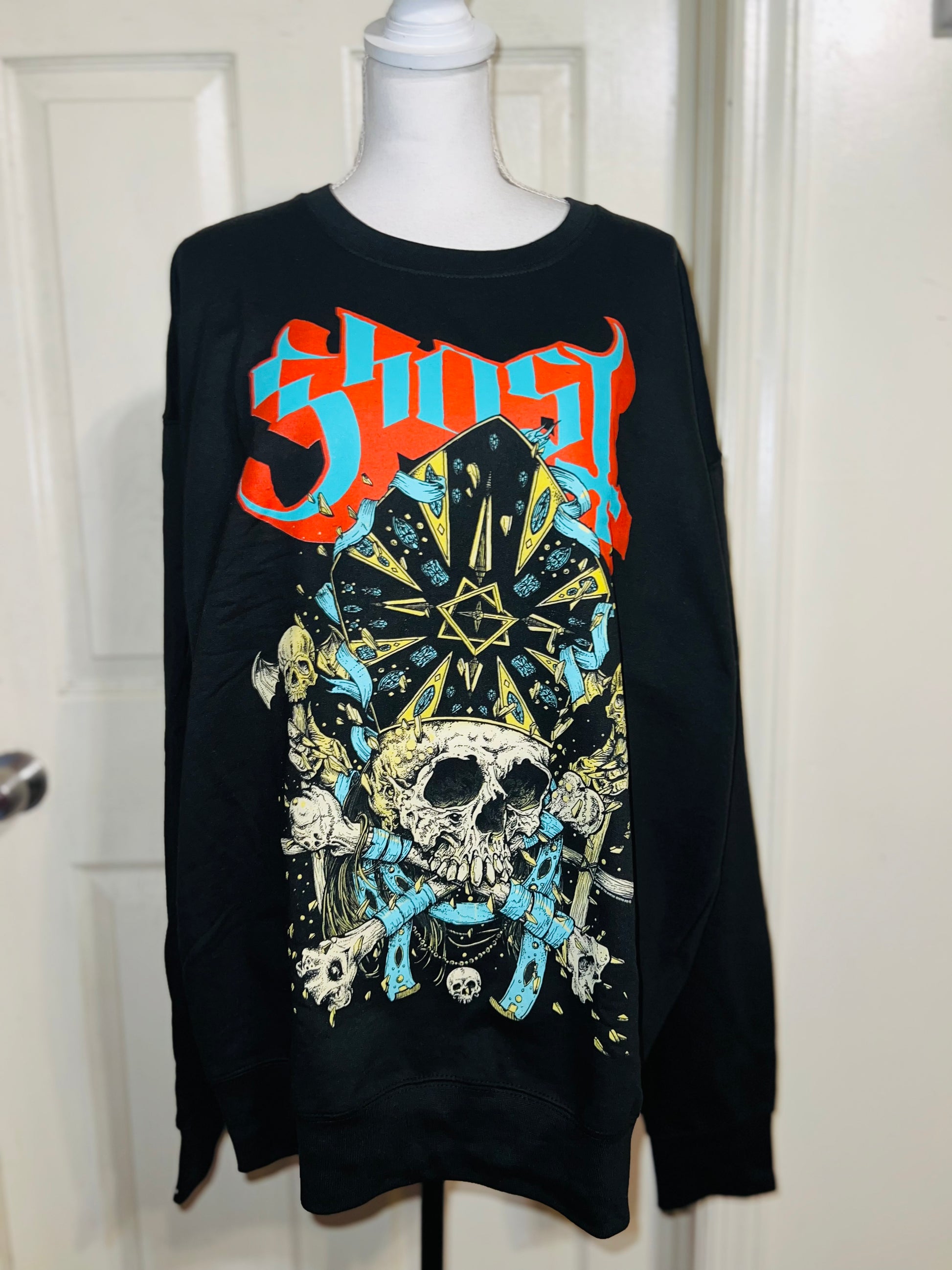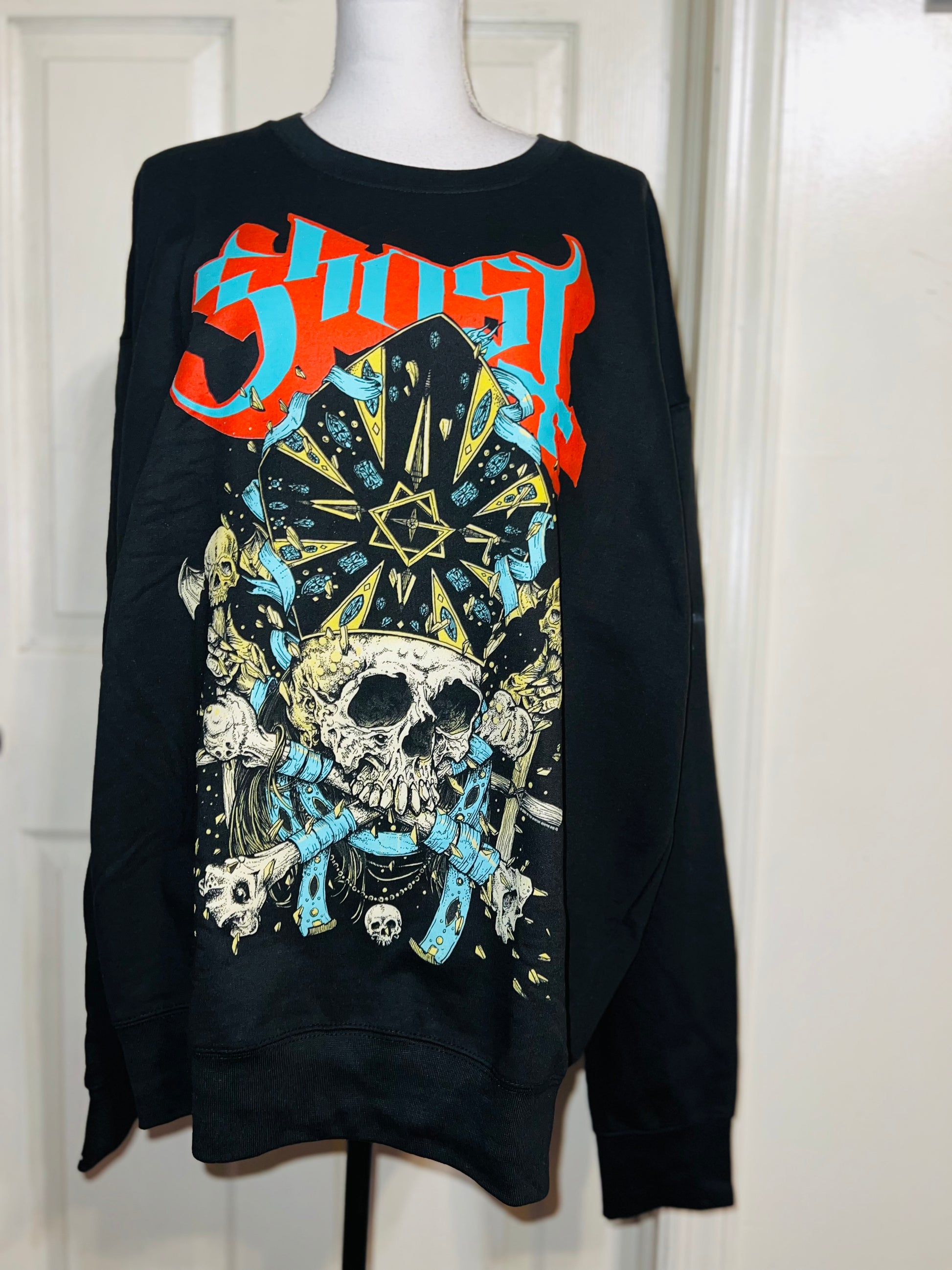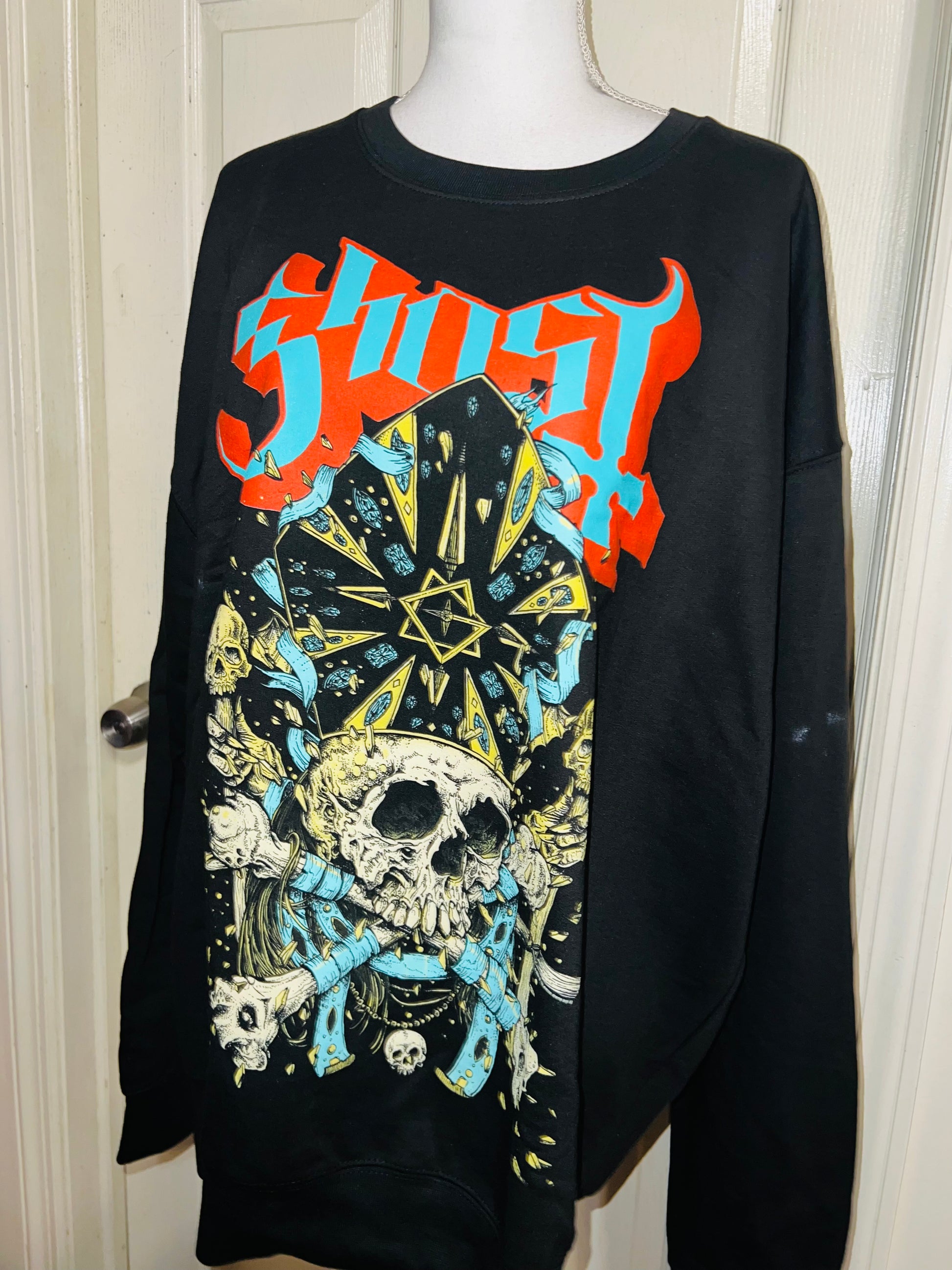 A black Ghost sweatshirt with a cool graphic on the front. Size L/XL, oversized.