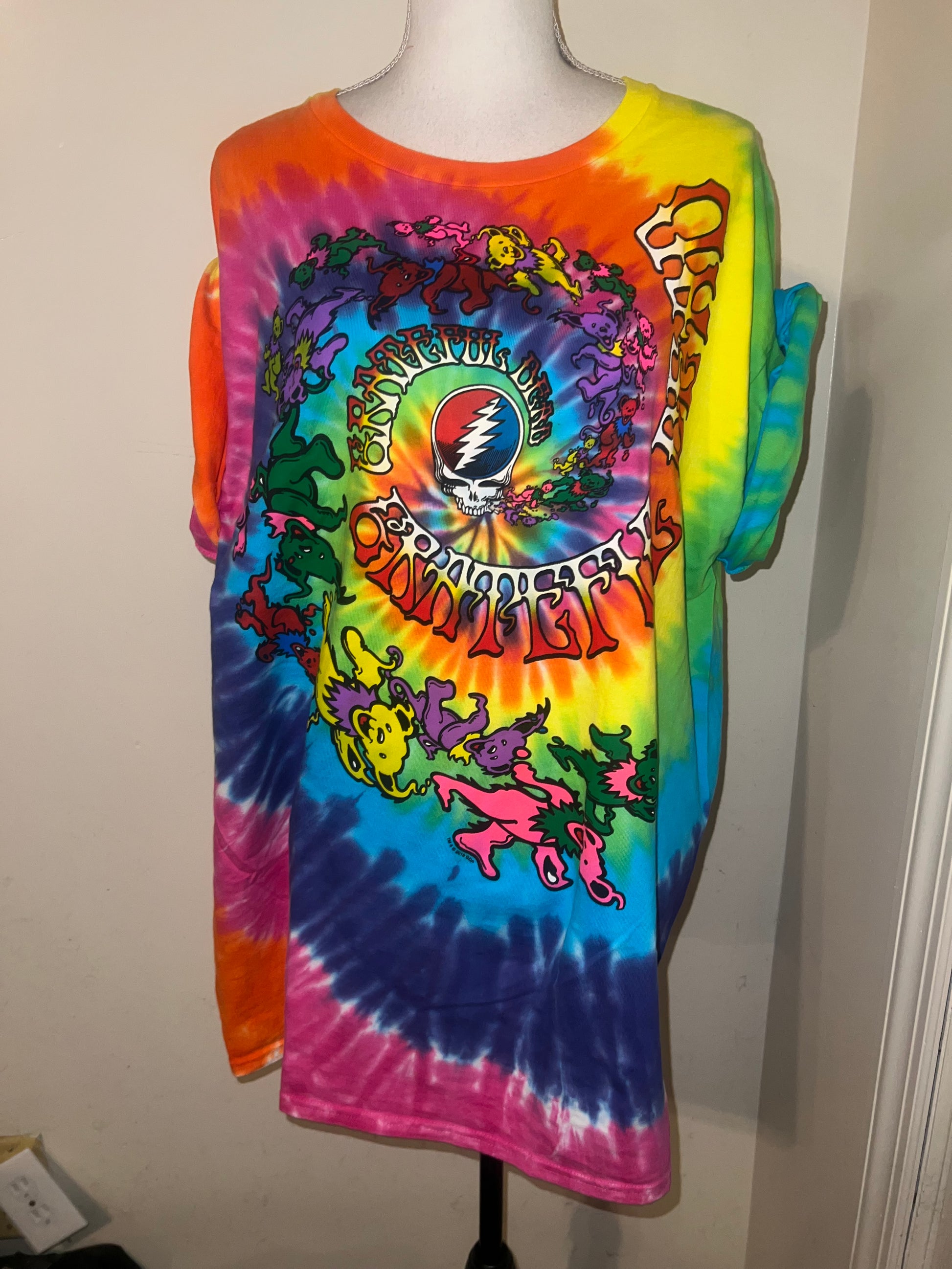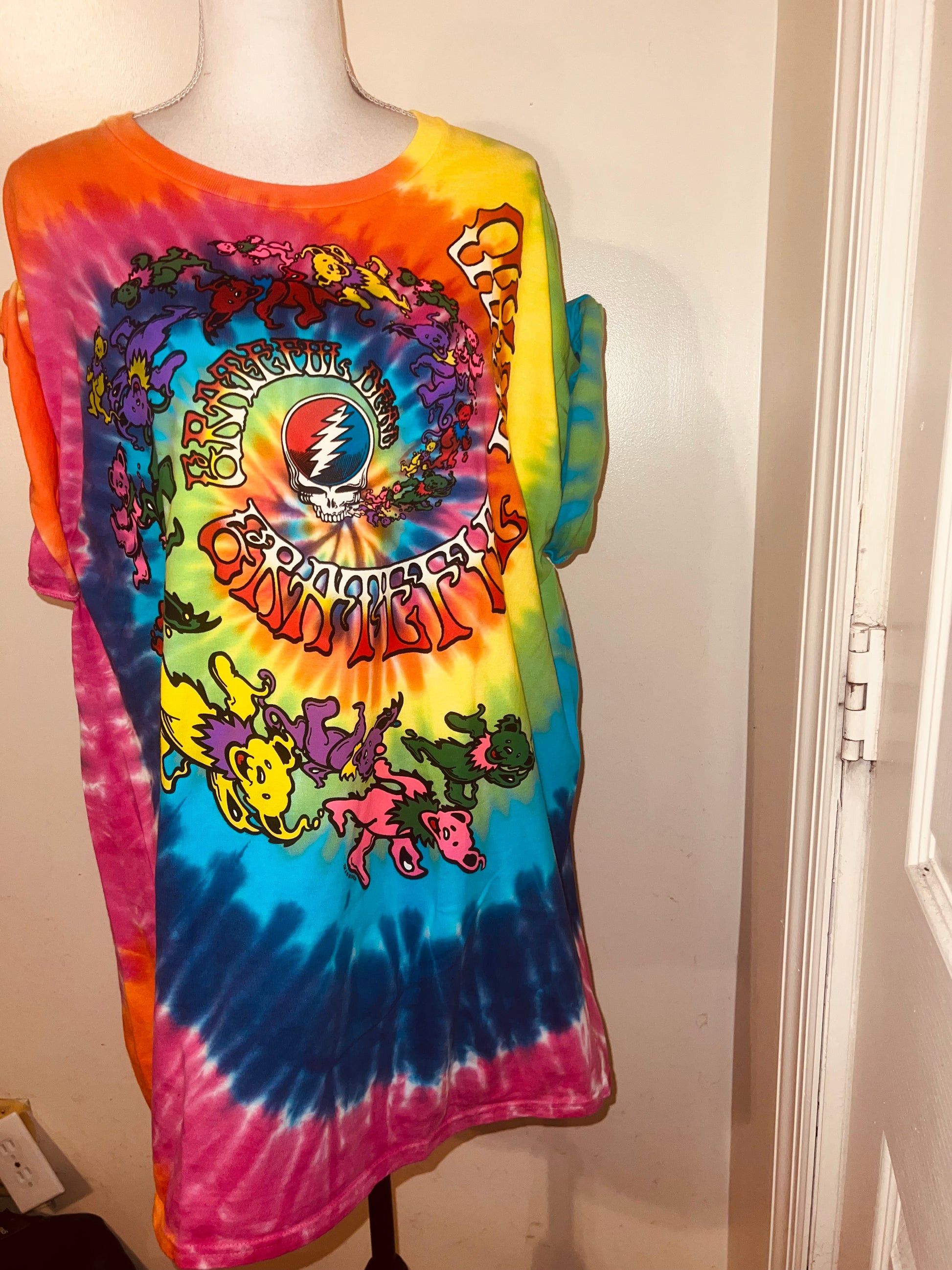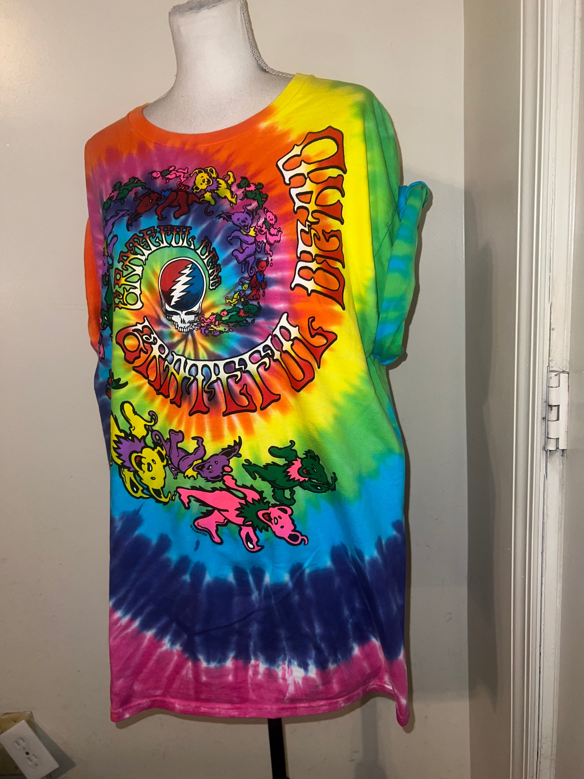 This is a preorder. Please allow extra processing time. A rainbow tie dye Grateful Dead tee. Size L, oversized.
