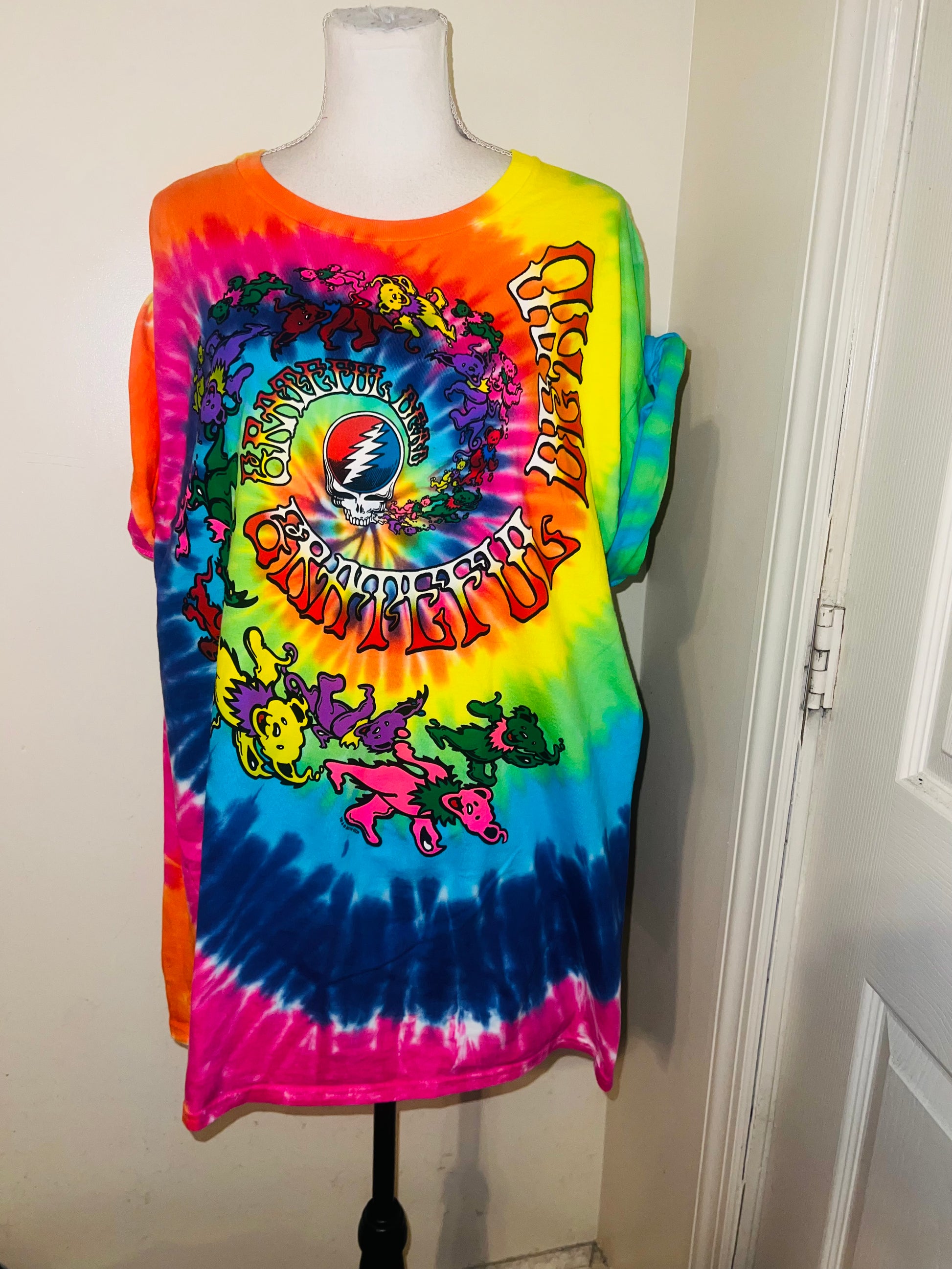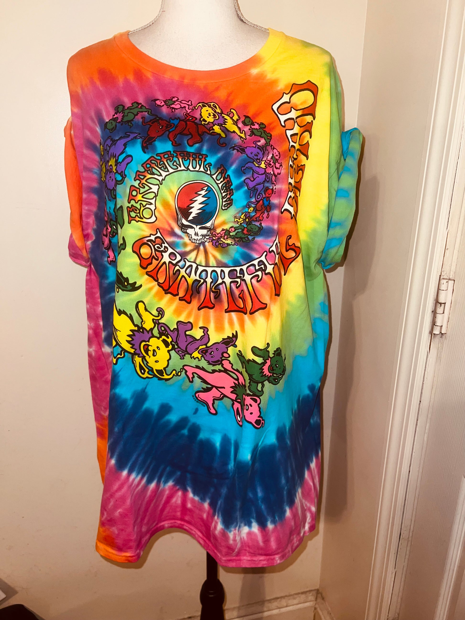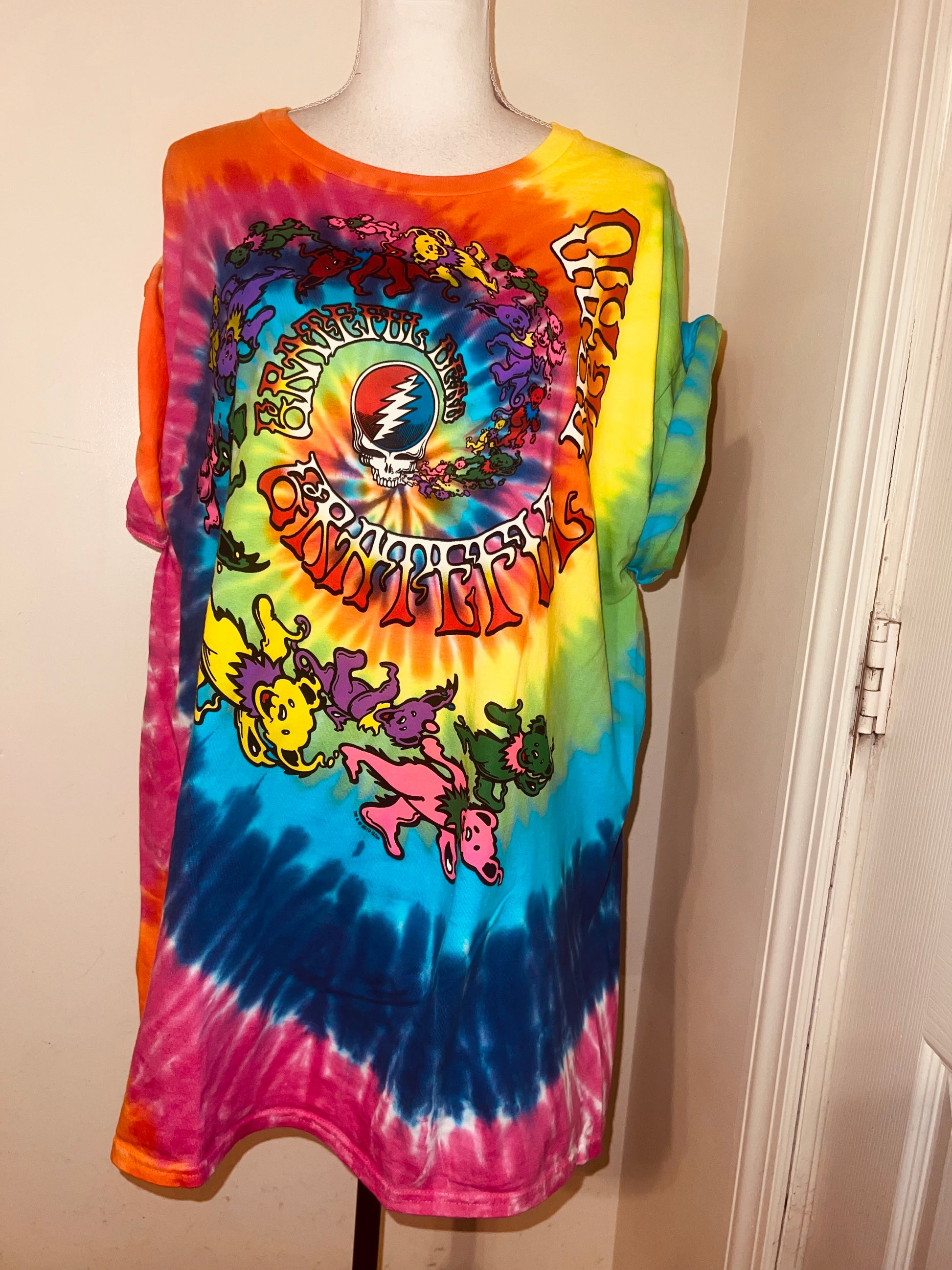 This is a preorder. Please allow extra processing time. A rainbow tie dye Grateful Dead tee. Size L, oversized.