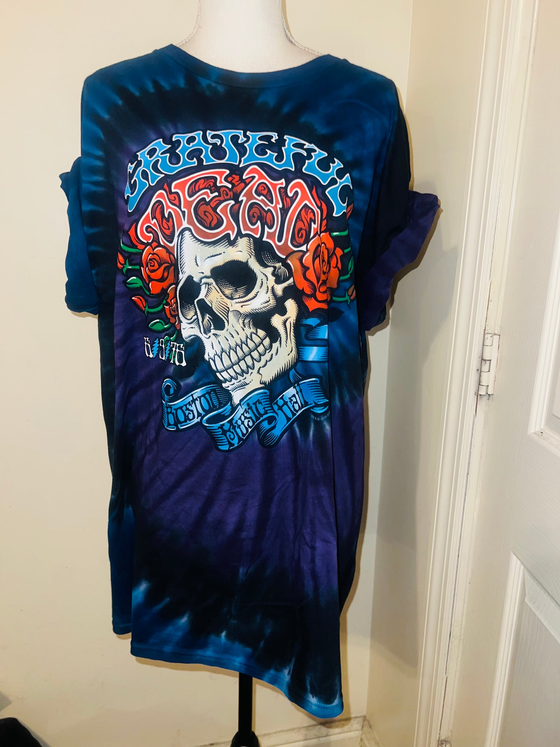 This is now a preorder. Please allow extra processing time. A dark blue Grateful Dead Boston Music Hall 6/9/76 tie dye tee. Size XL, oversized.