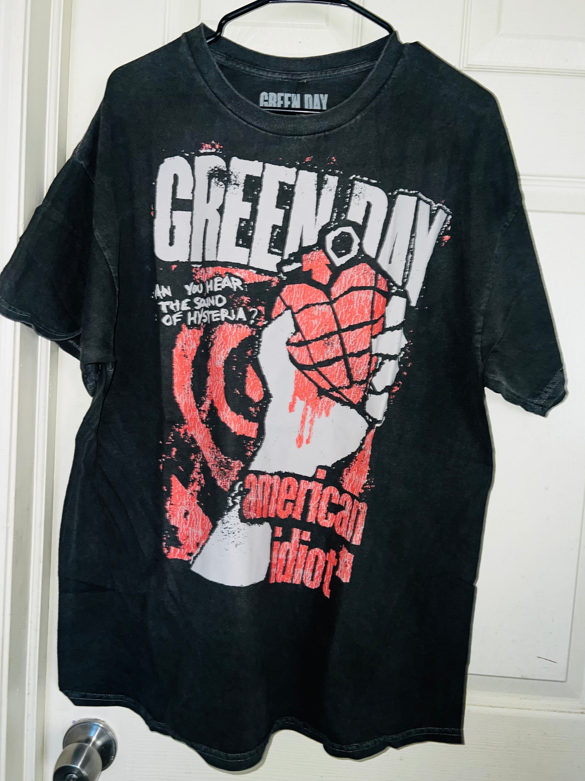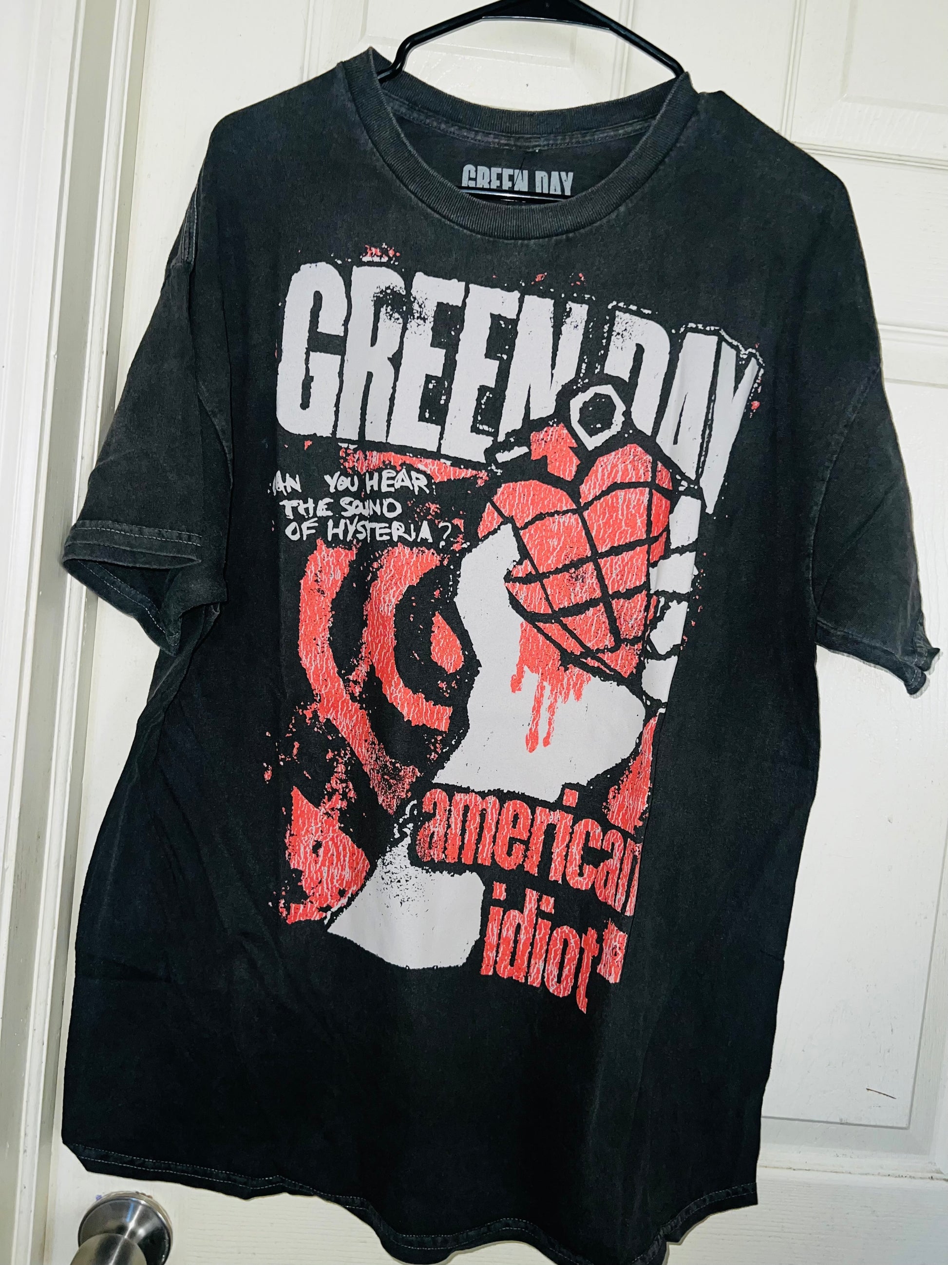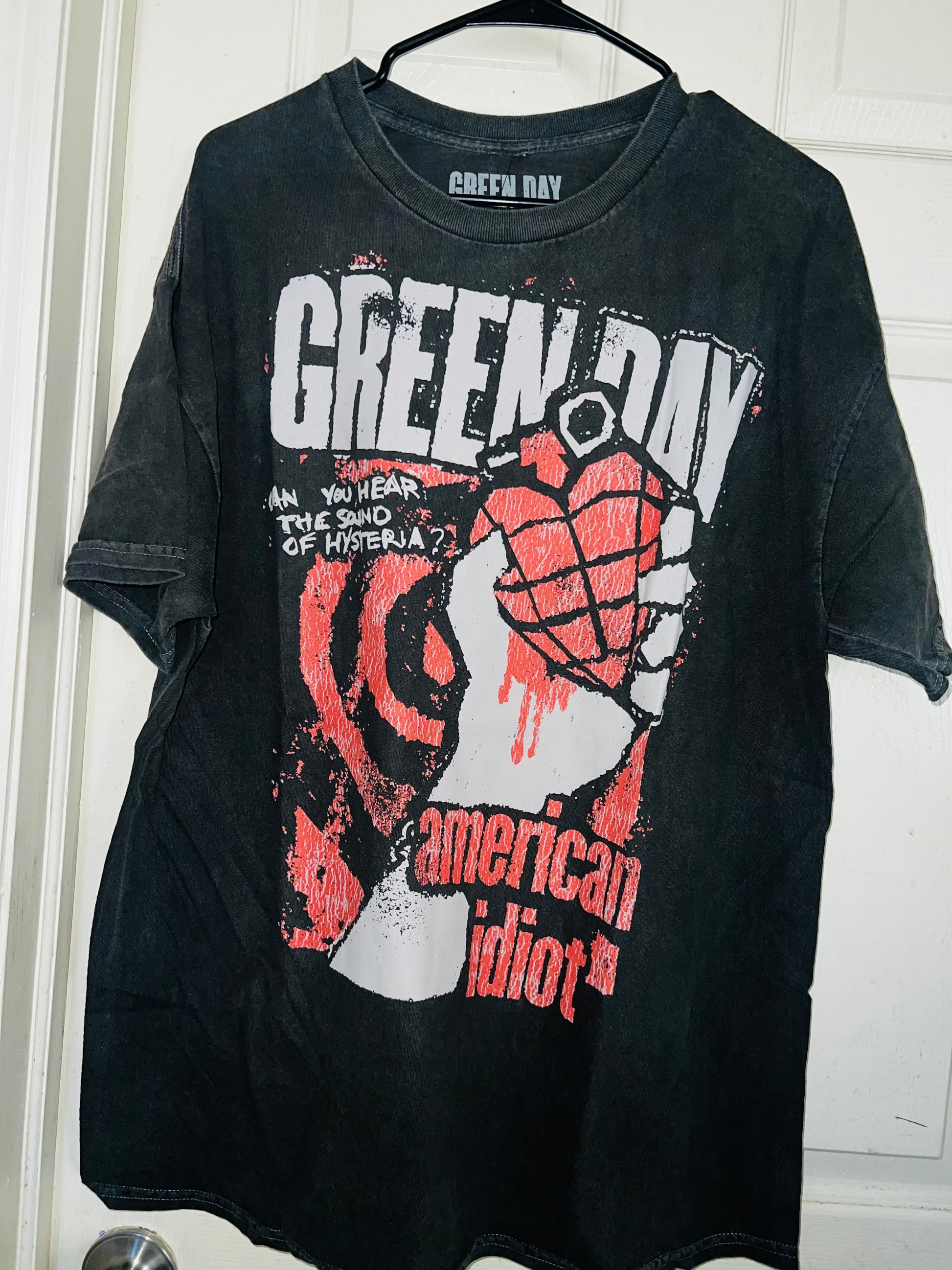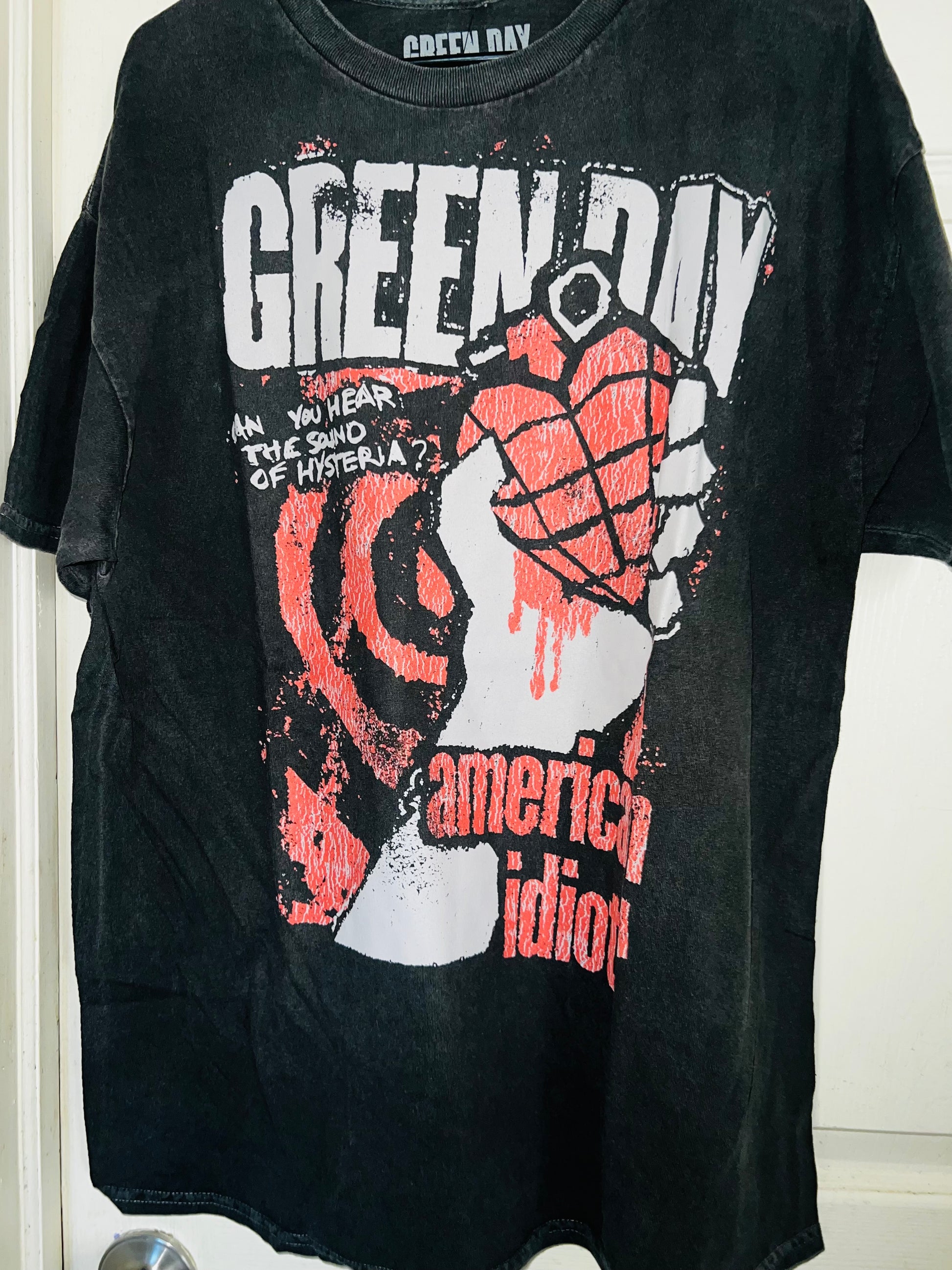 I’ve had all the Green Day’s besides this one! American Idiot, such a nostalgic album and time period. The iconic grenade and dark charcoal grey mineral wash tee. Size large oversized.