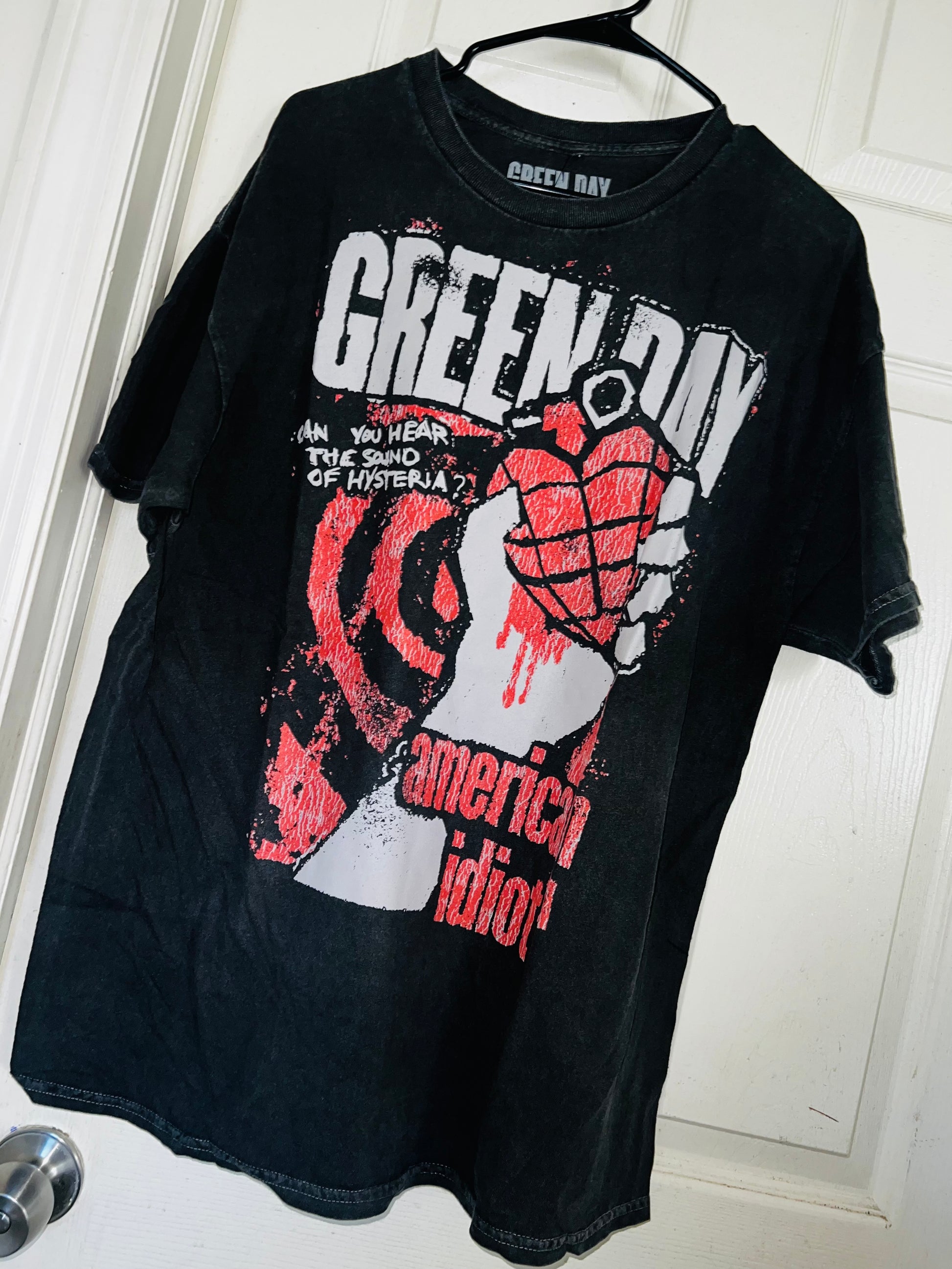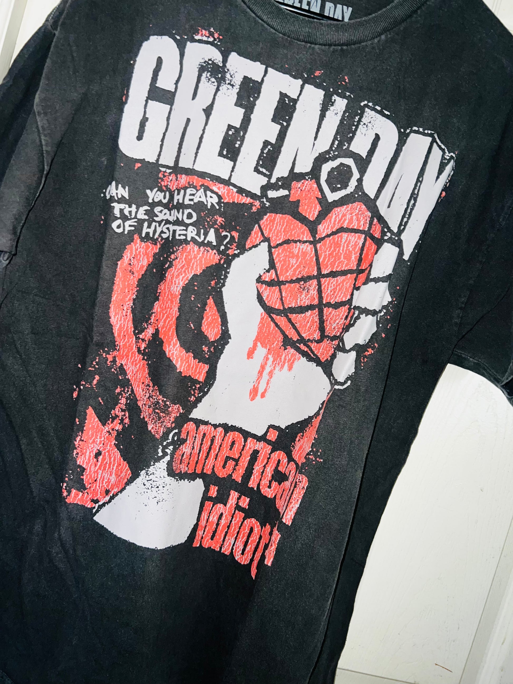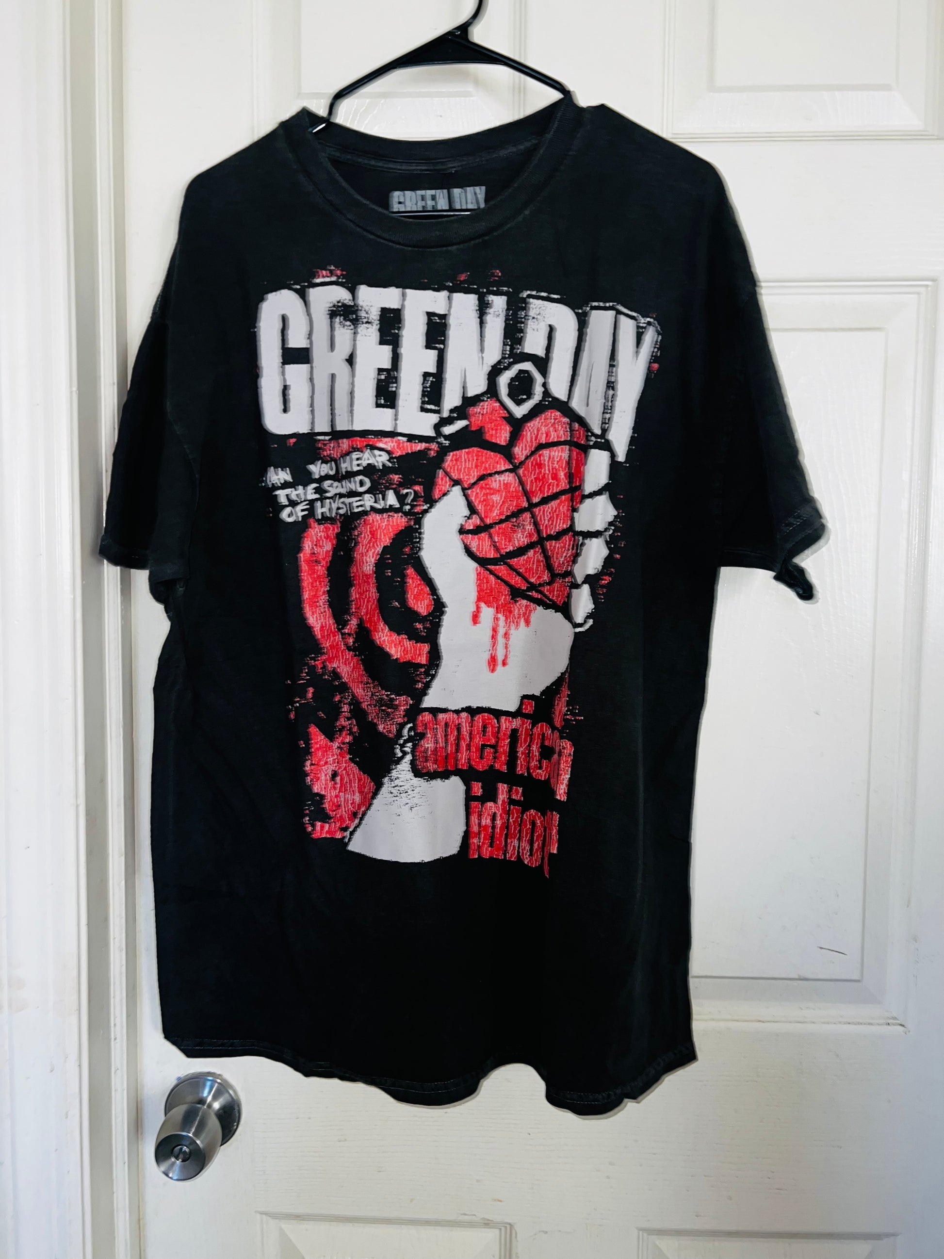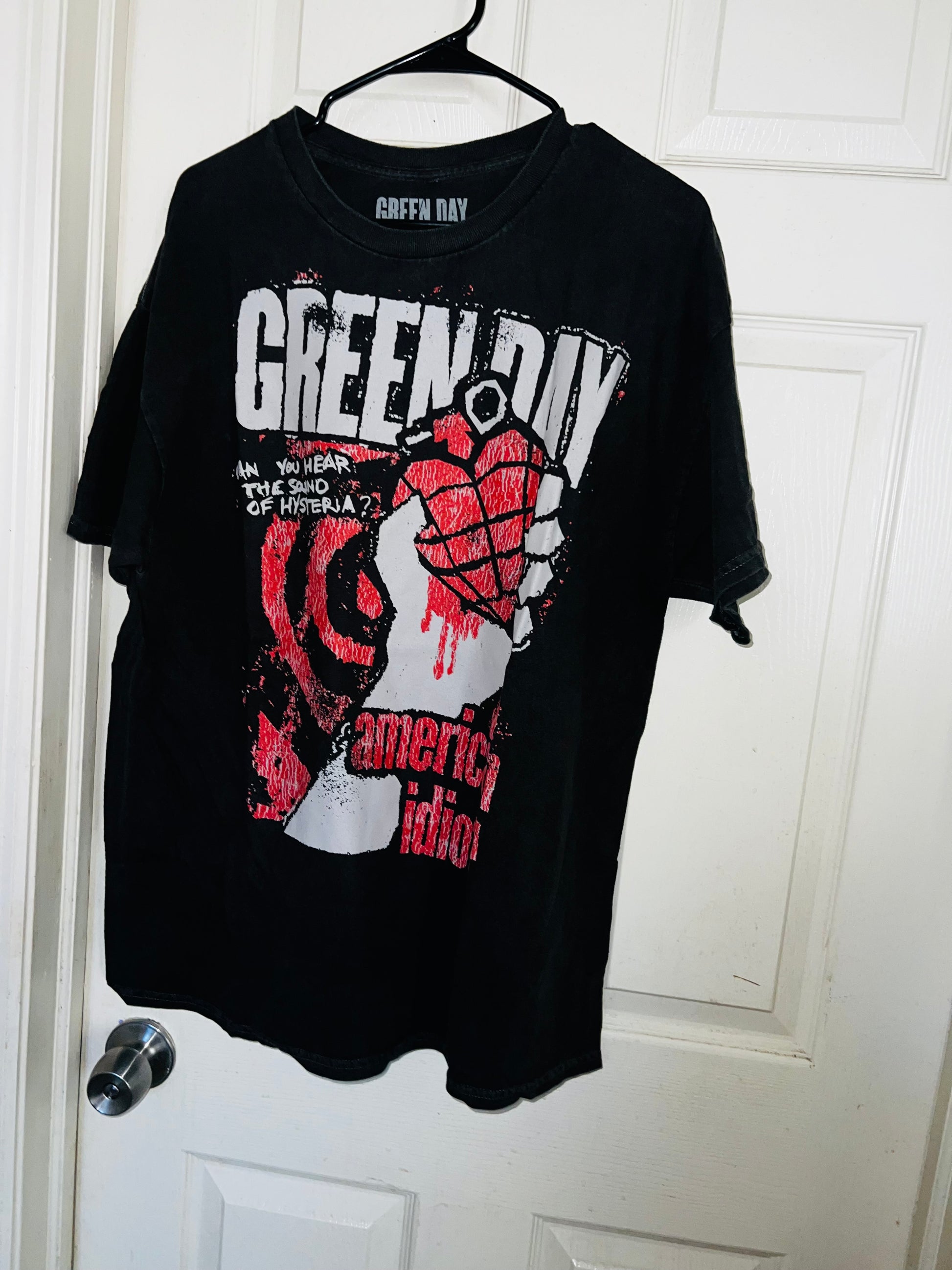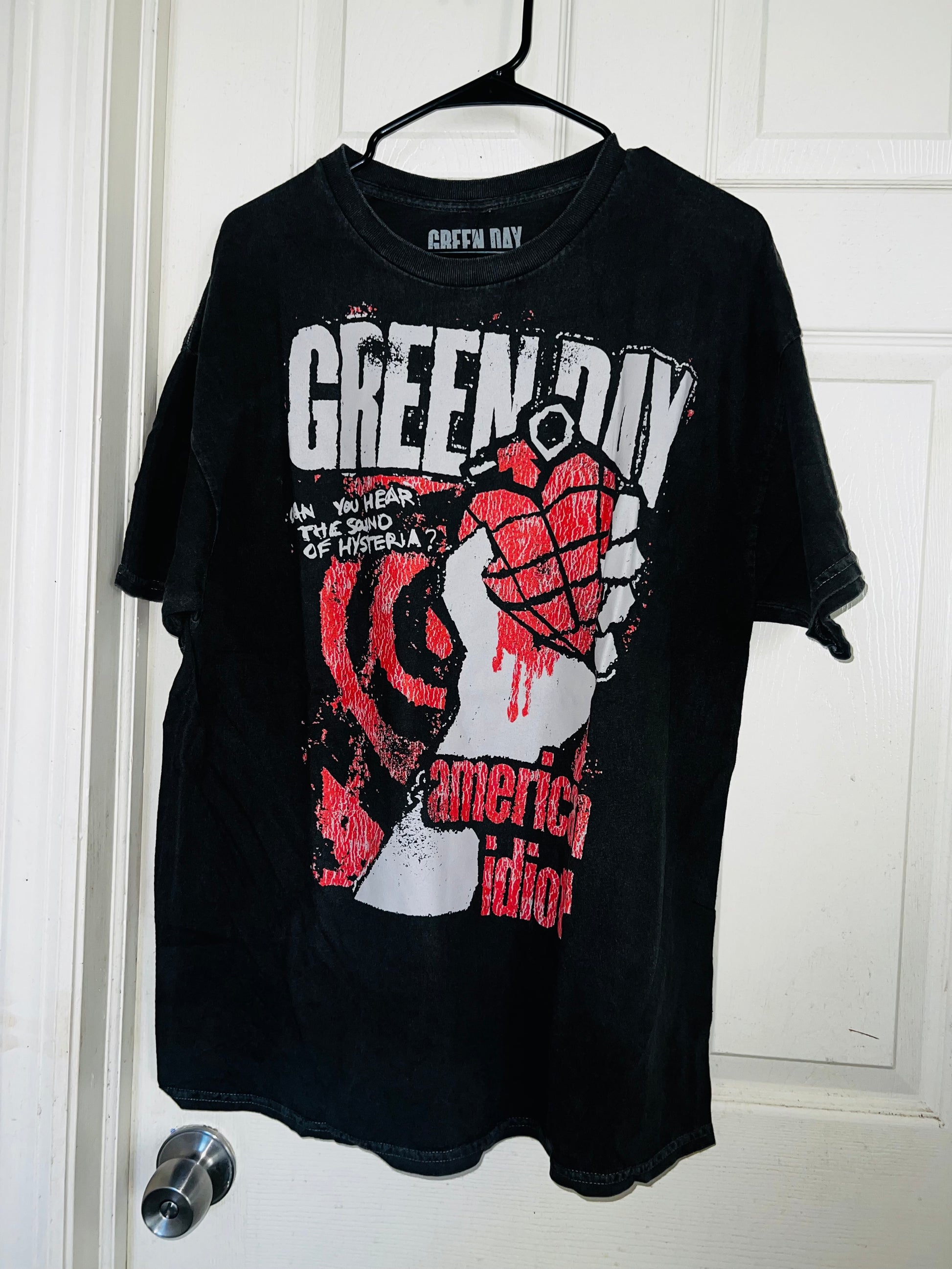 I’ve had all the Green Day’s besides this one! American Idiot, such a nostalgic album and time period. The iconic grenade and dark charcoal grey mineral wash tee. Size large oversized.