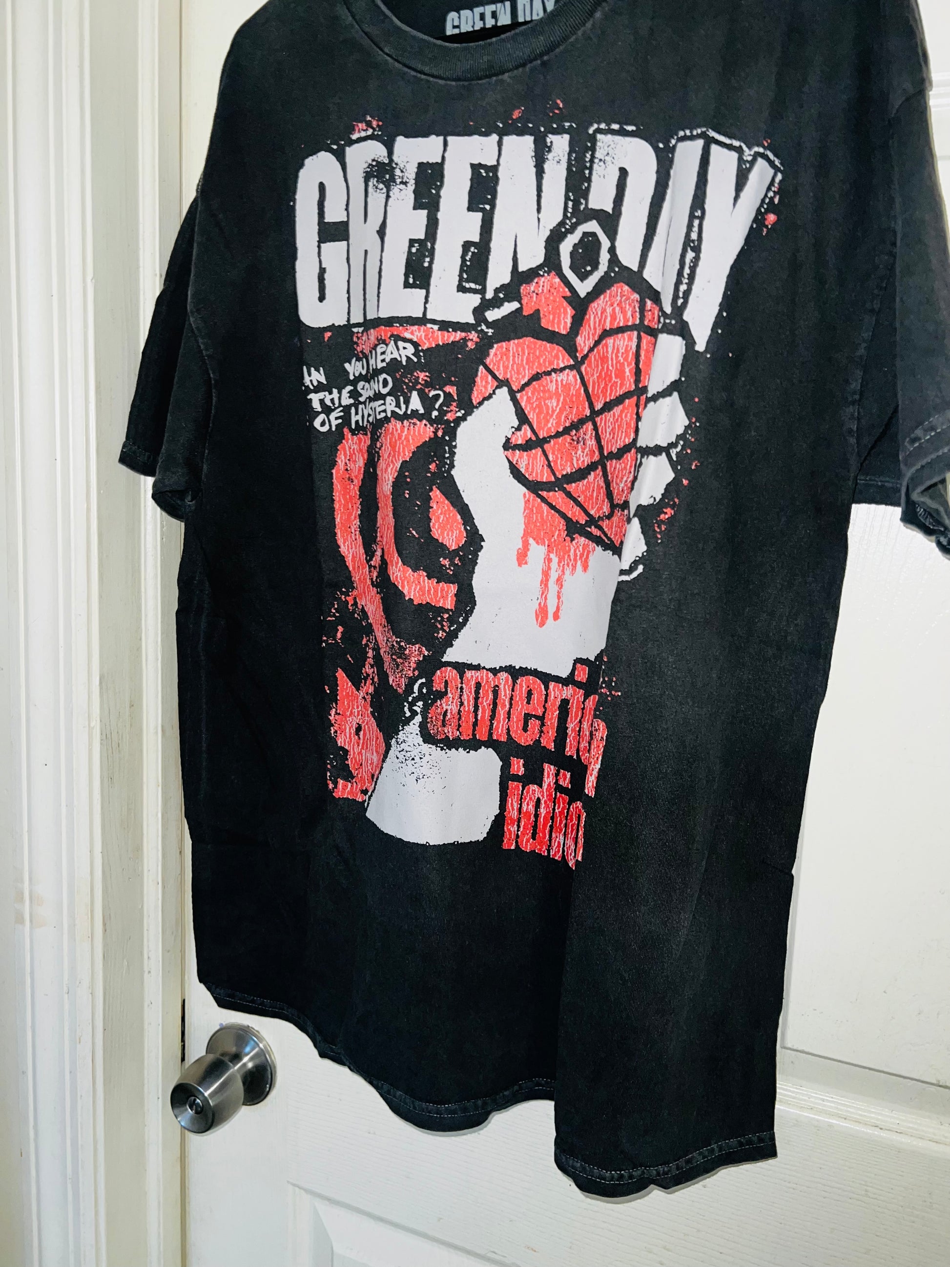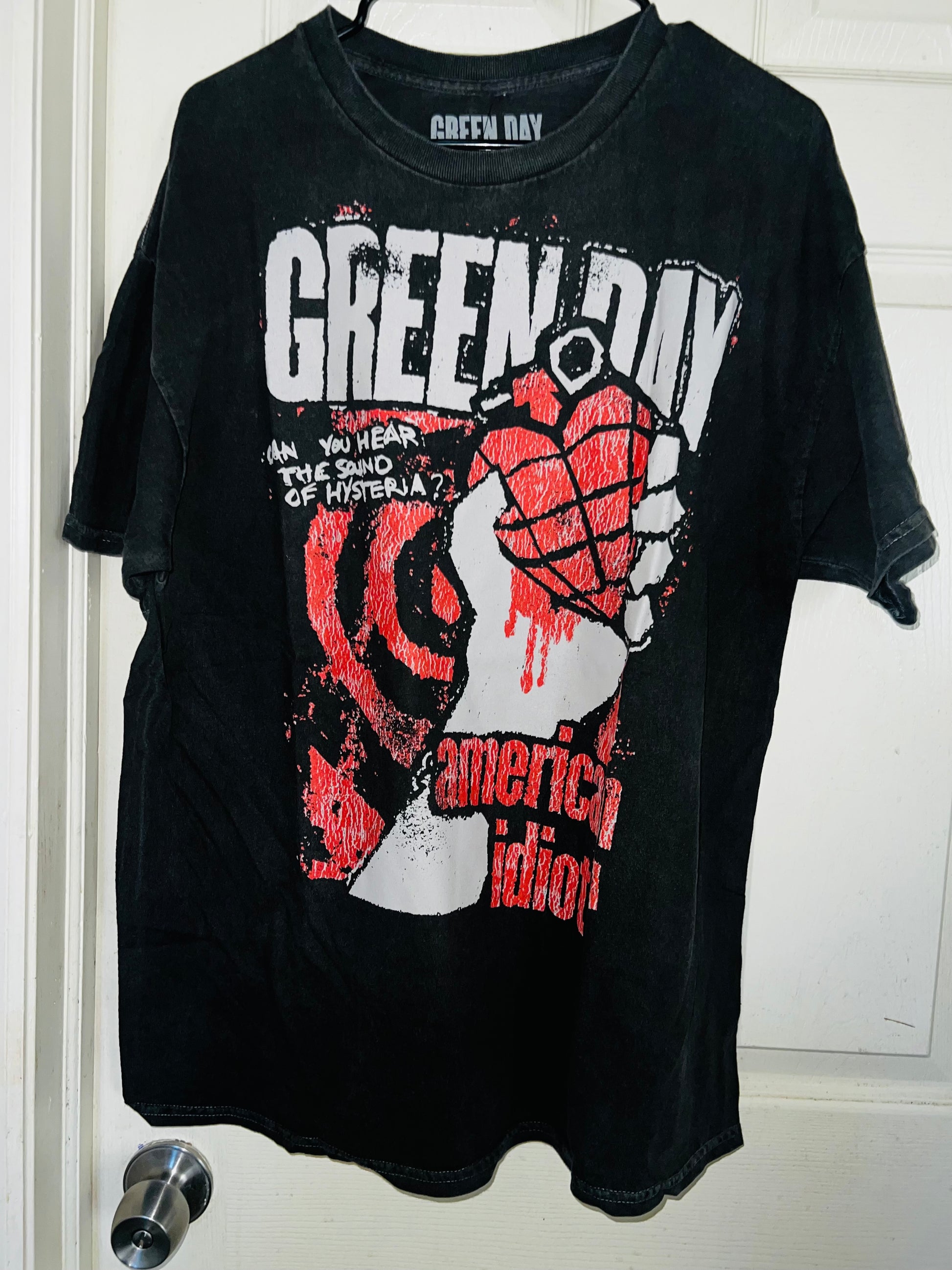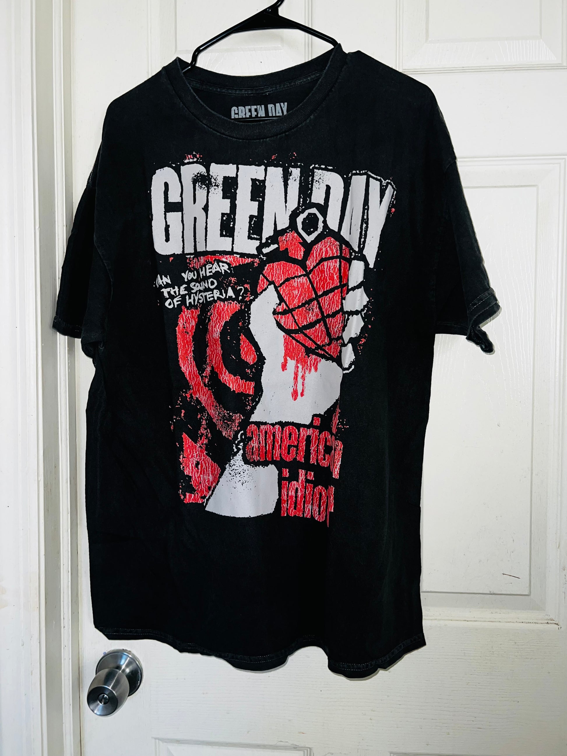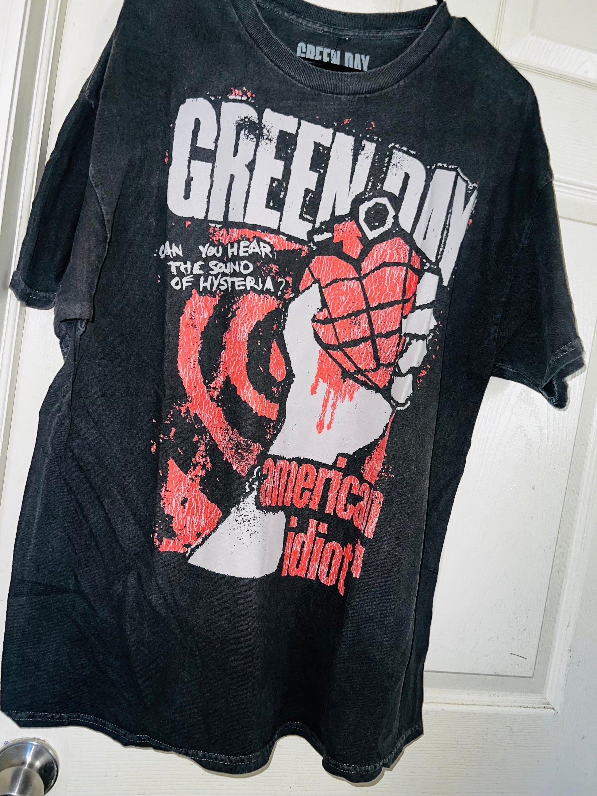 I’ve had all the Green Day’s besides this one! American Idiot, such a nostalgic album and time period. The iconic grenade and dark charcoal grey mineral wash tee. Size large oversized.