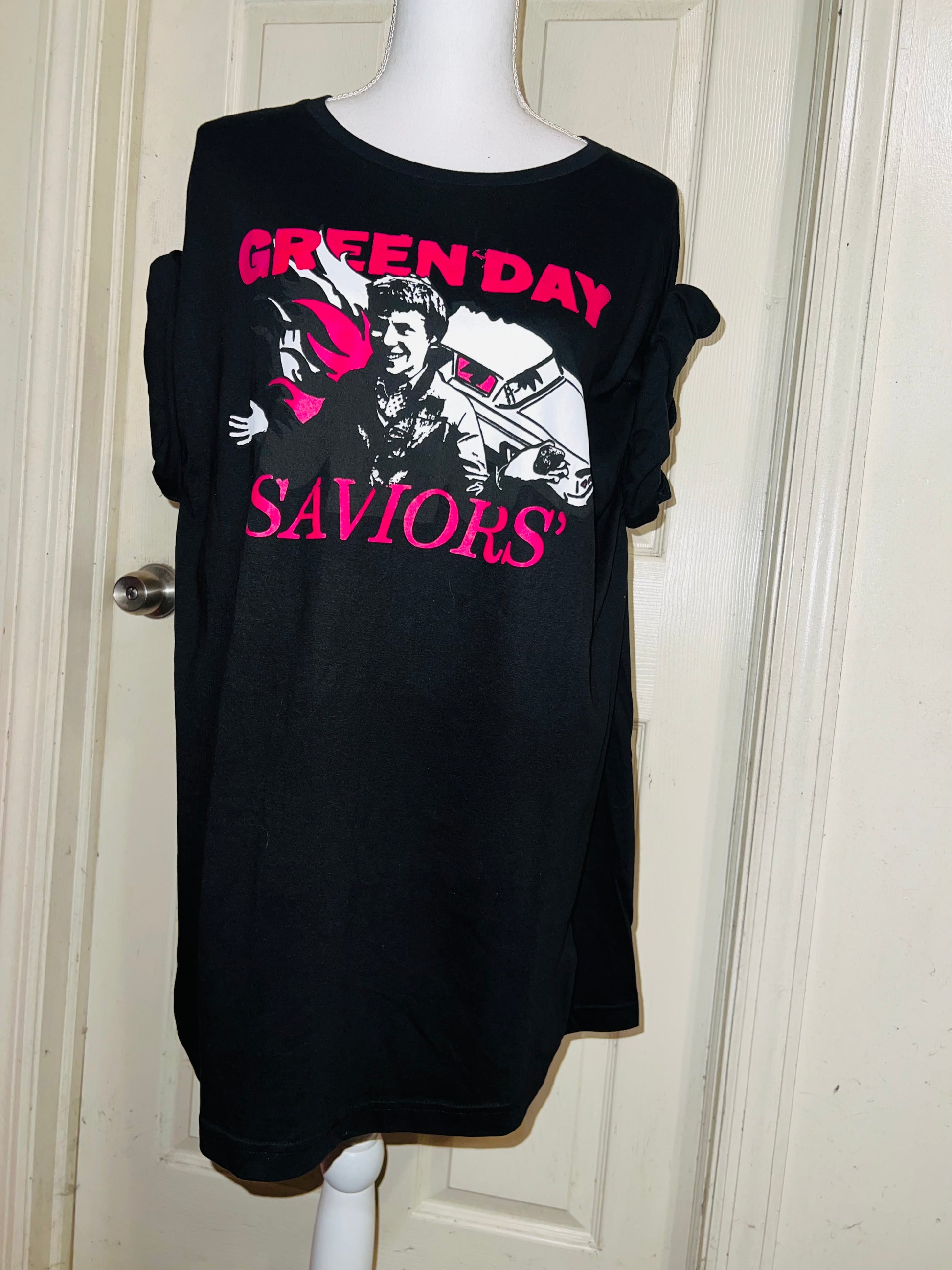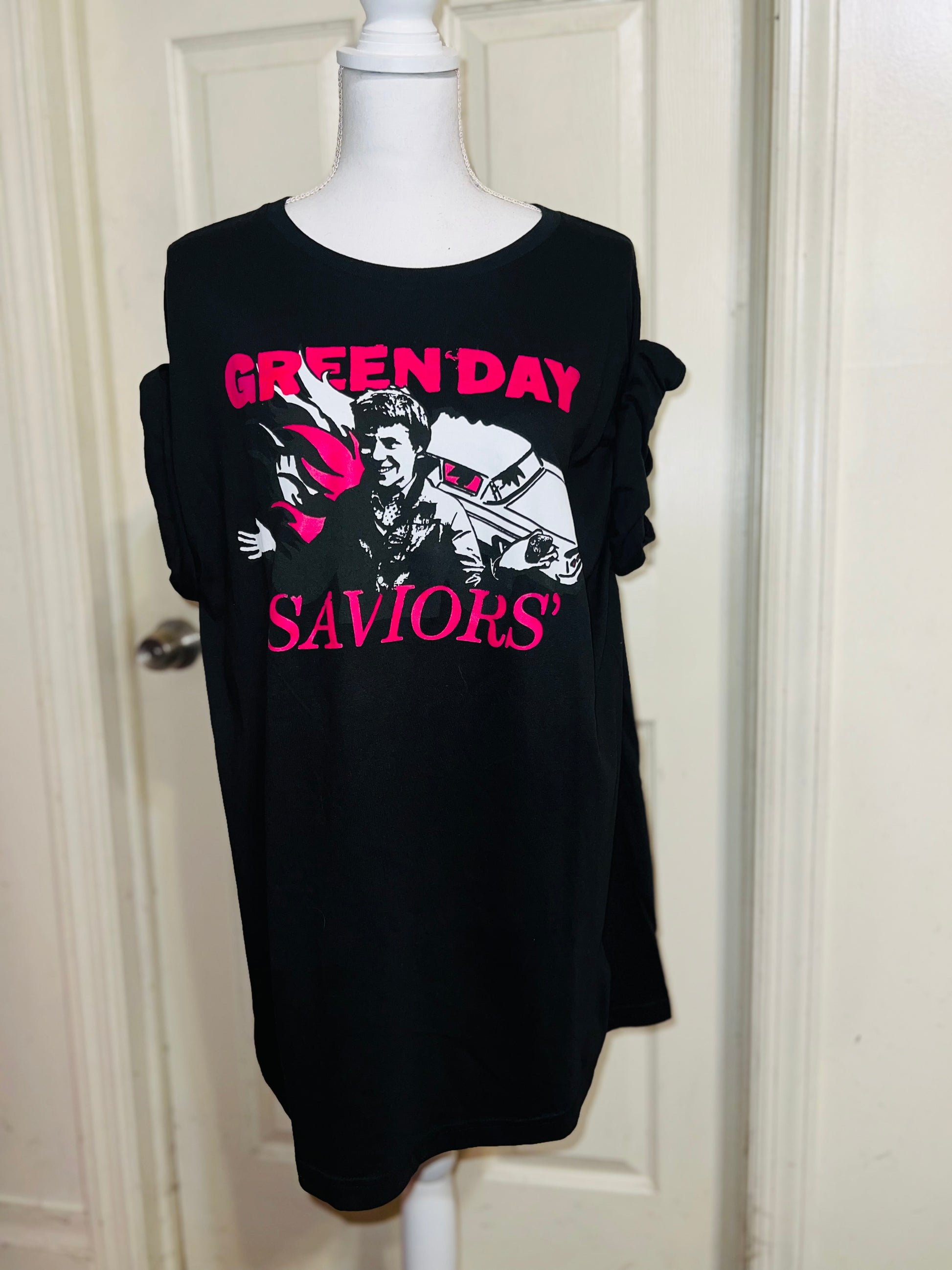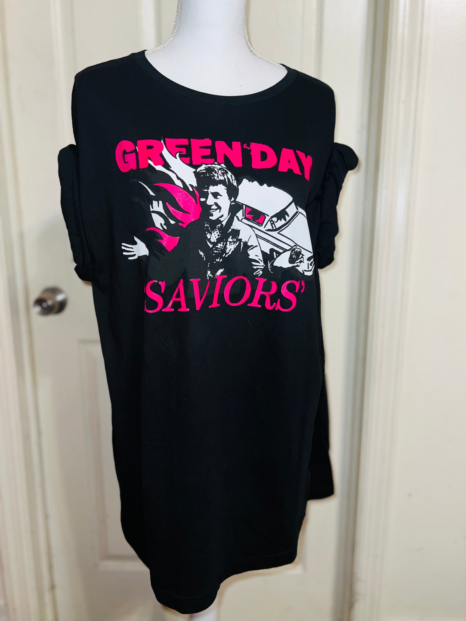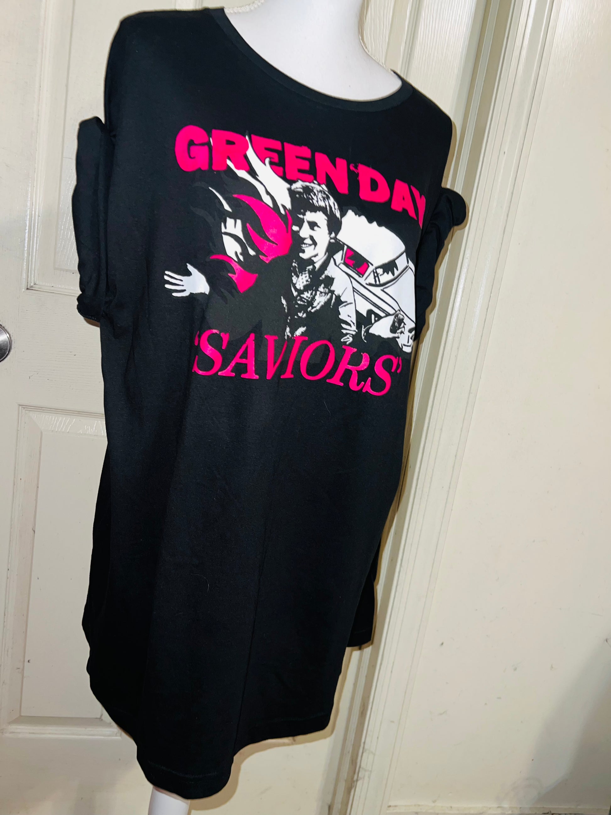 A black Green Day Saviors tee with hot pink detail. Super unique. Size L/XL, oversized.