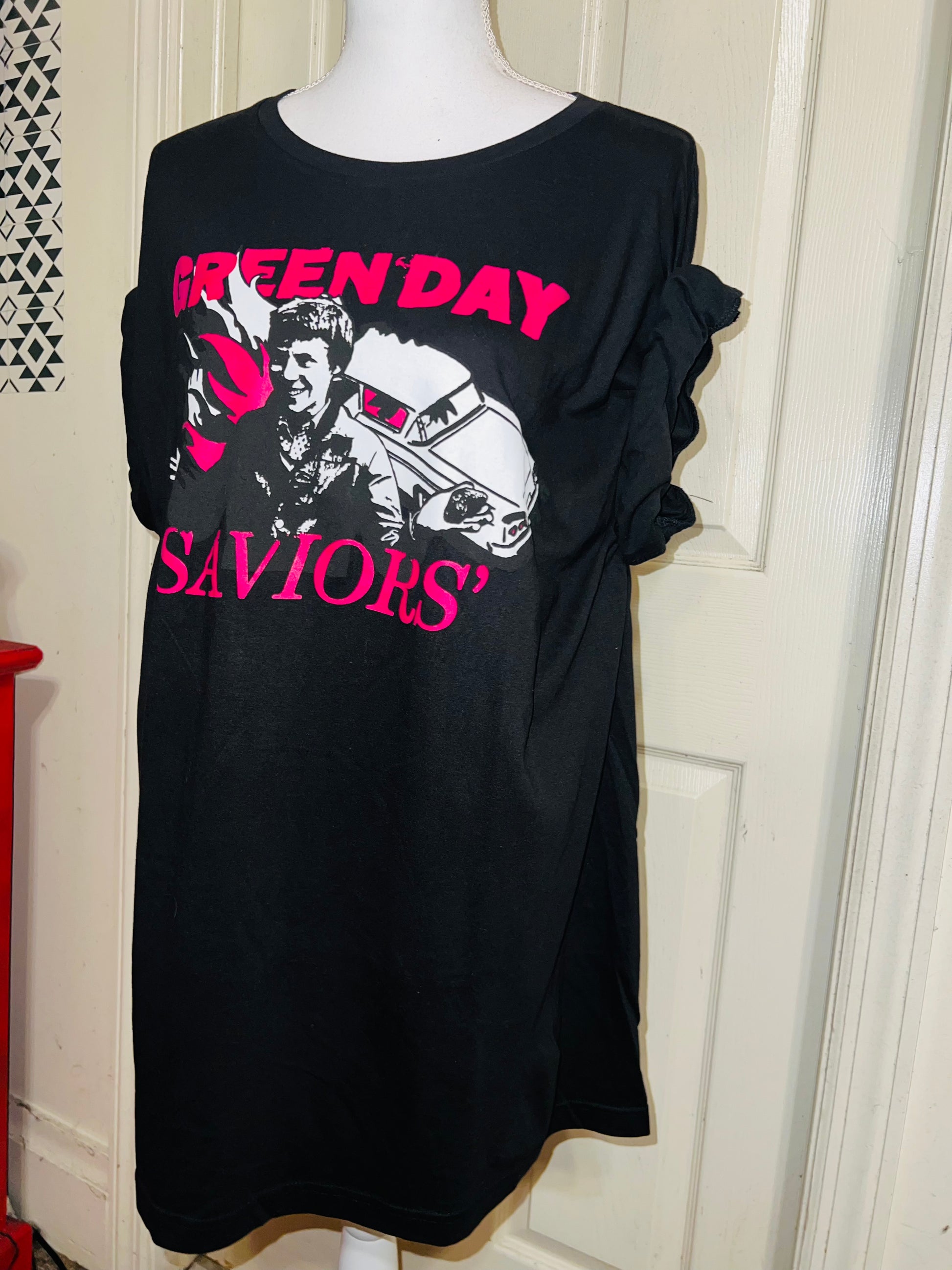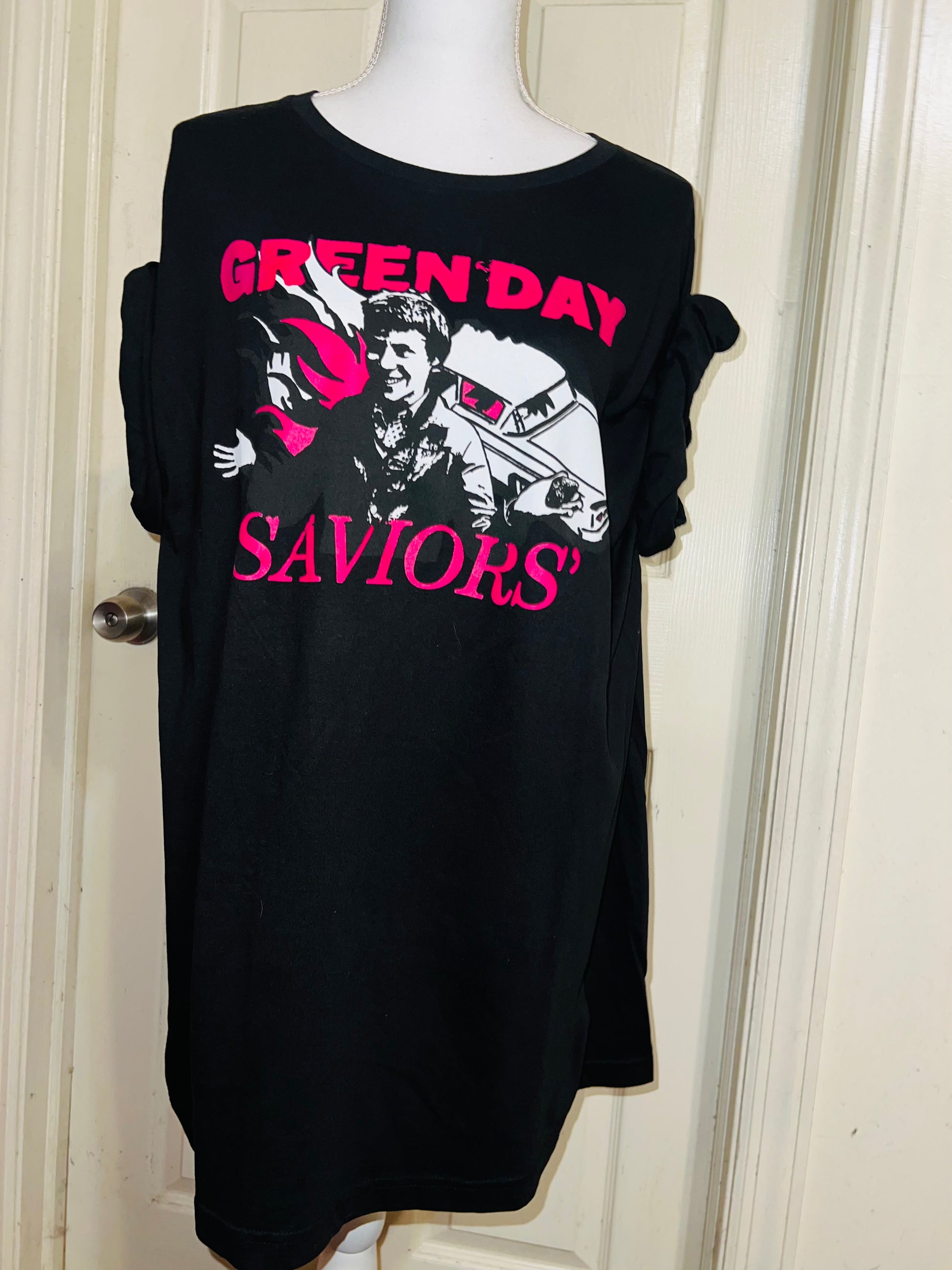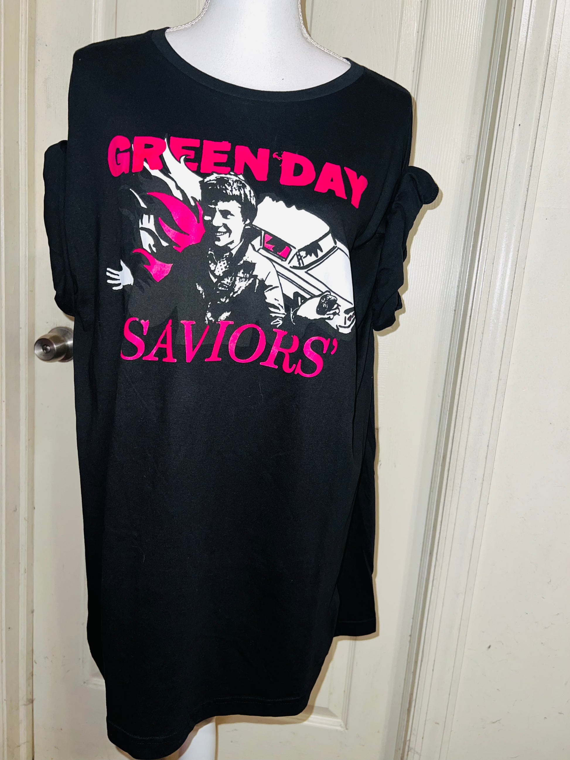 A black Green Day Saviors tee with hot pink detail. Super unique. Size L/XL, oversized.