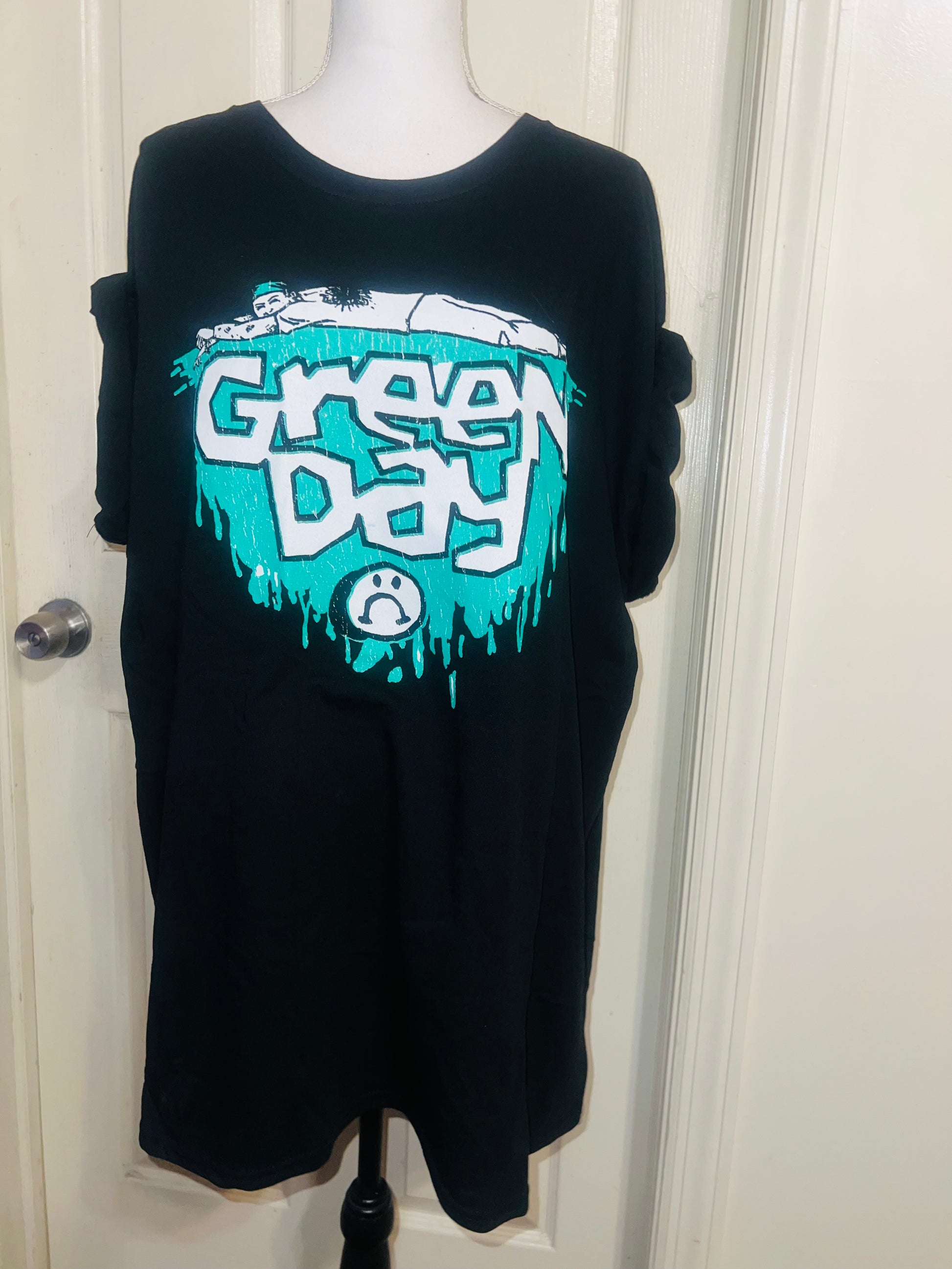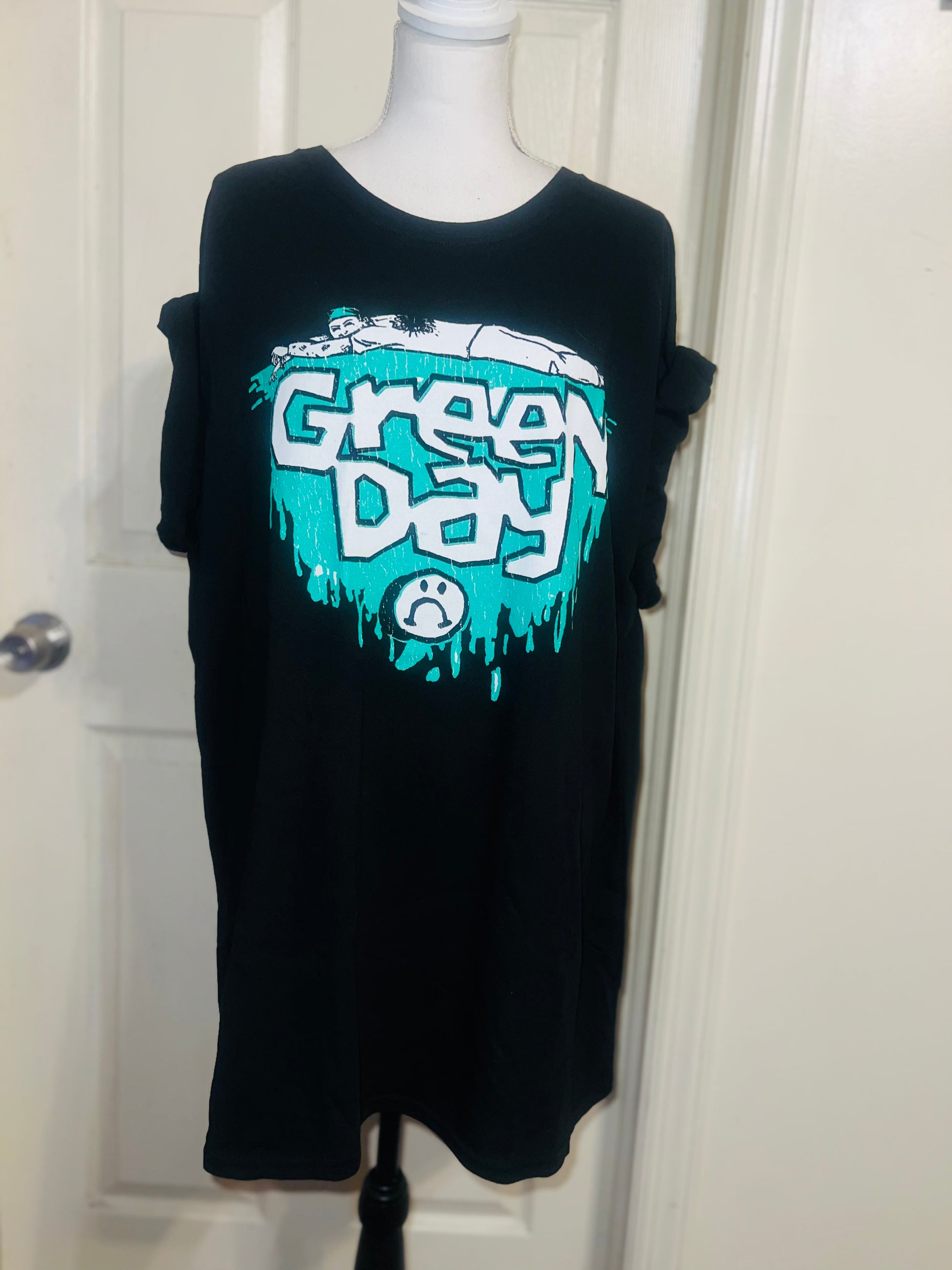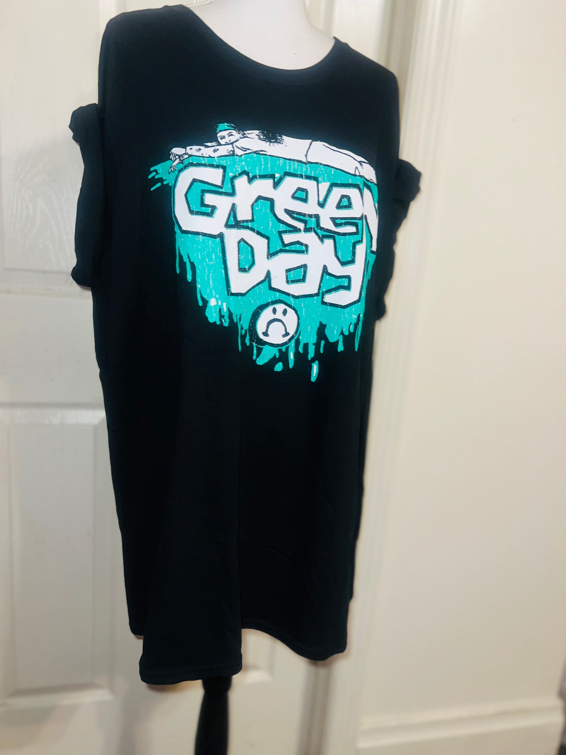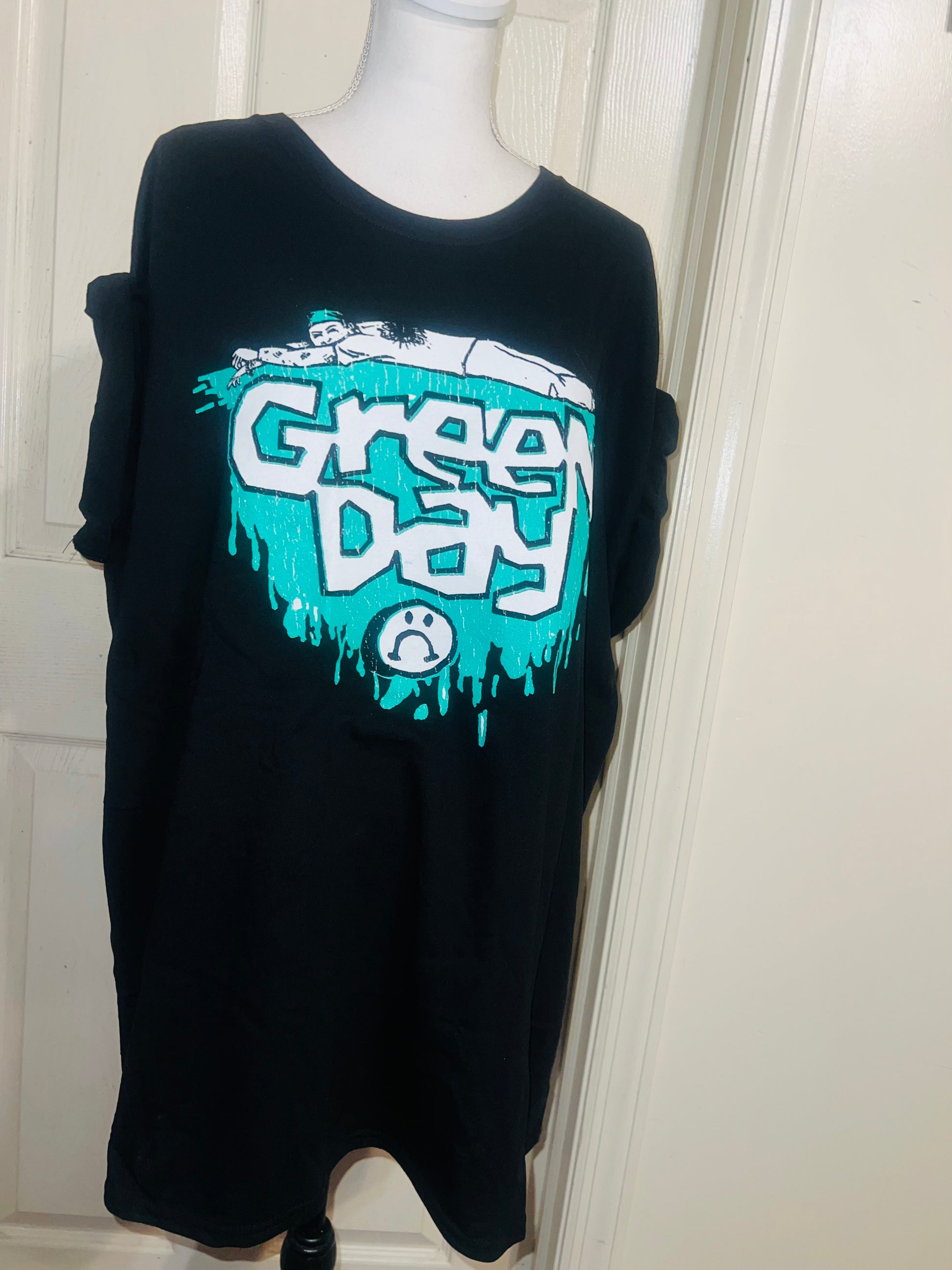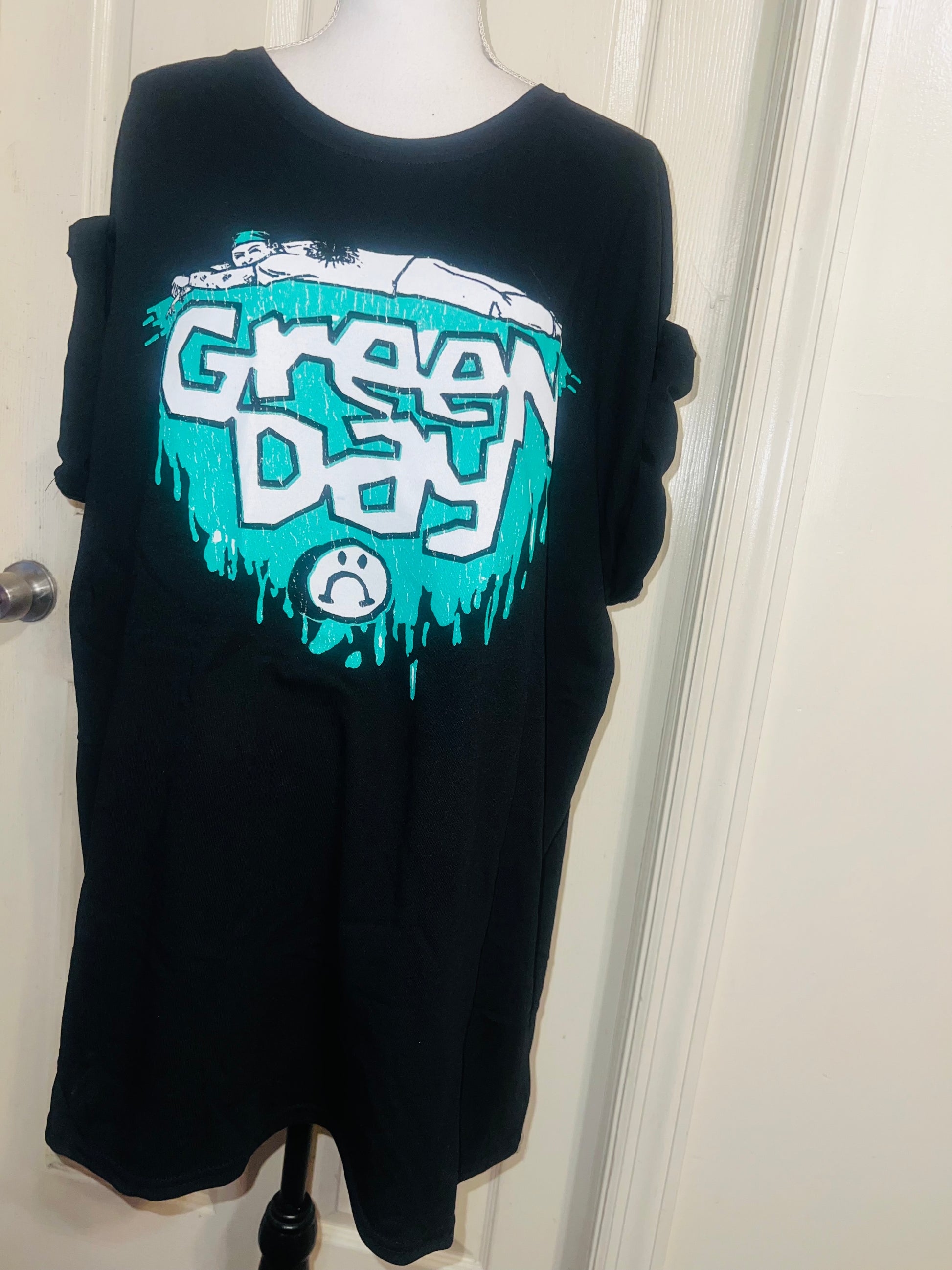 This is a preorder. Please allow extra processing time A black Green Day tee with a cool graphic with the green slime and sad smiley. It’s soft and an oversized XXL. Could work like a dress for those who love that depending on height.