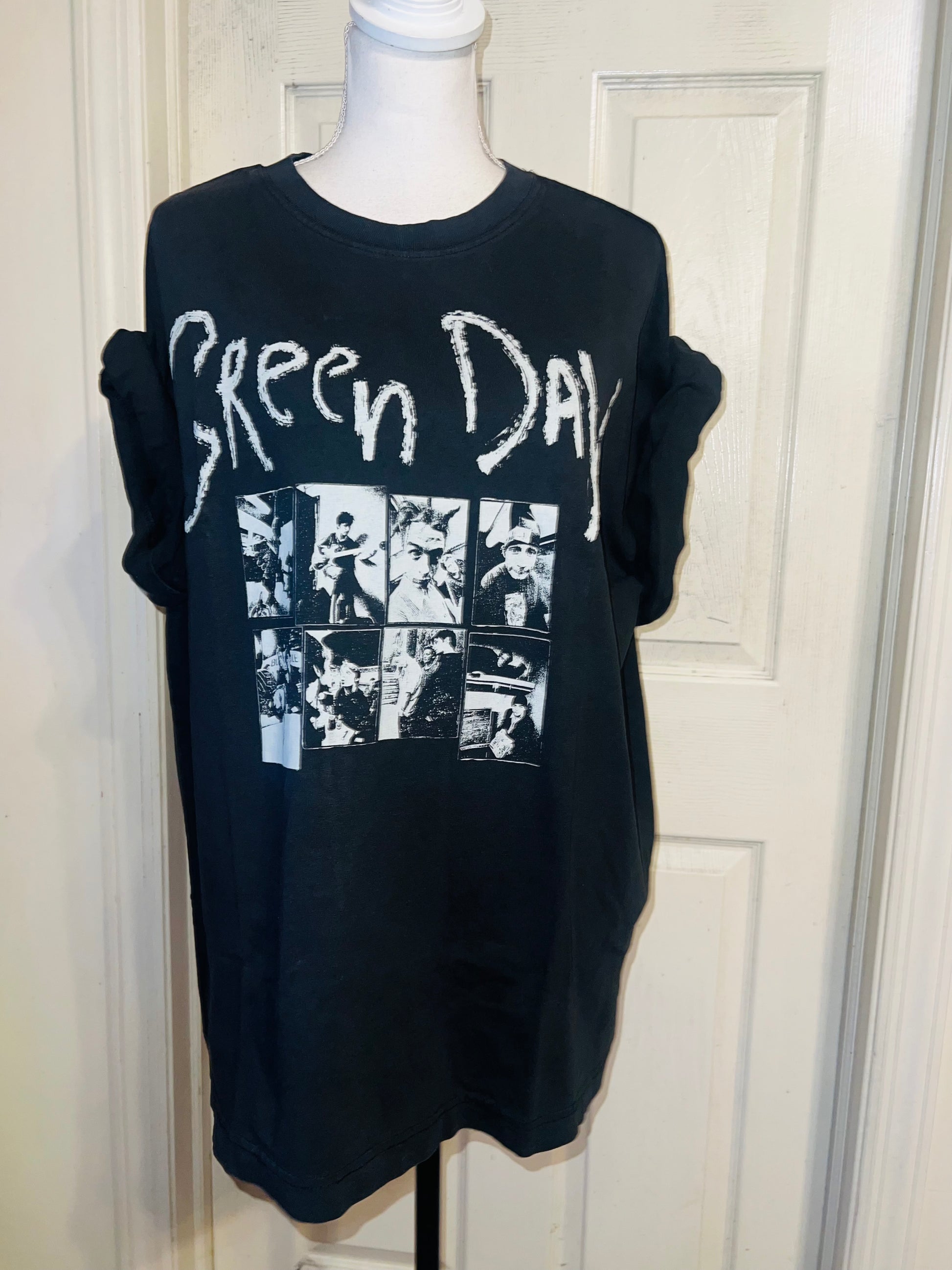 This is now a preorder. Please allow extra processing time. A dark vintage grey Green Day shirt with old school photos of them in the front. Super sick. Size XL, oversized.