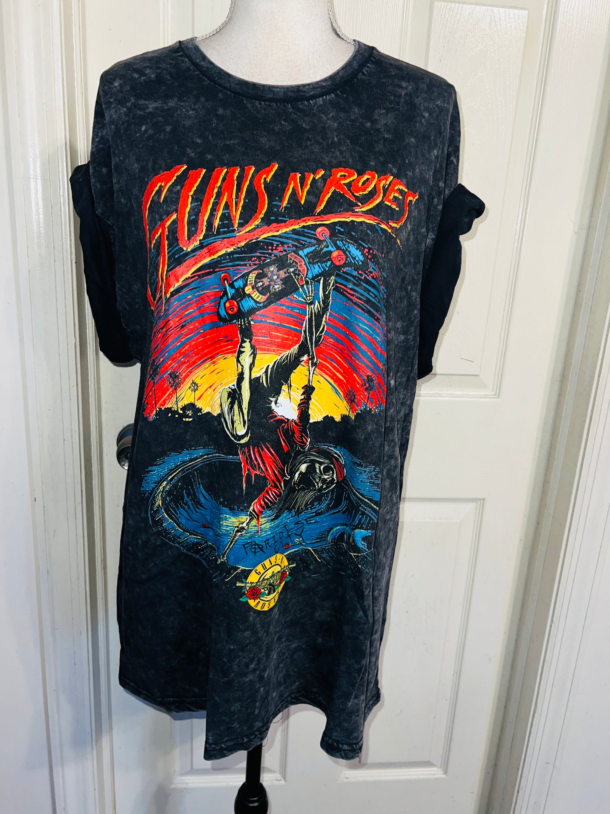 This is now a preorder. Please allow extra processing time. A dark charcoal grey mineral washed Guns N’ Roses Paradise City tee with a sick skateboard graphic. Size XL, oversized.