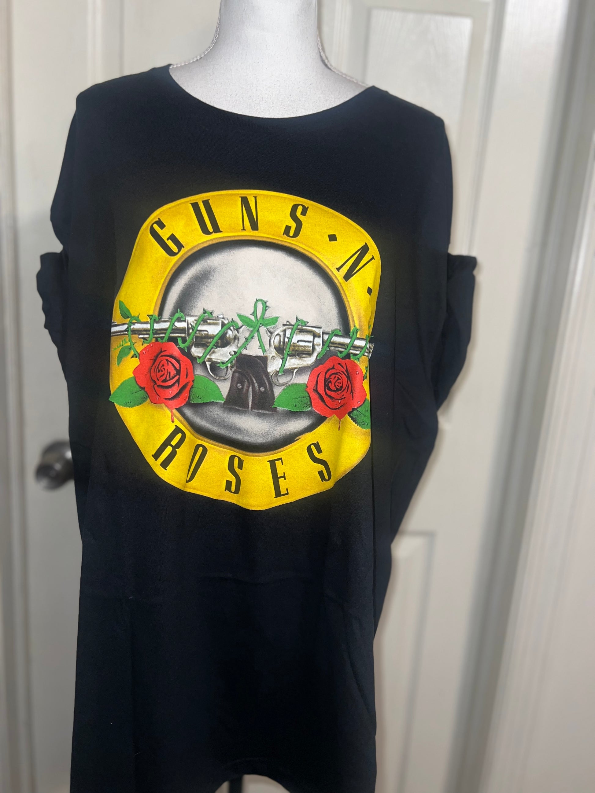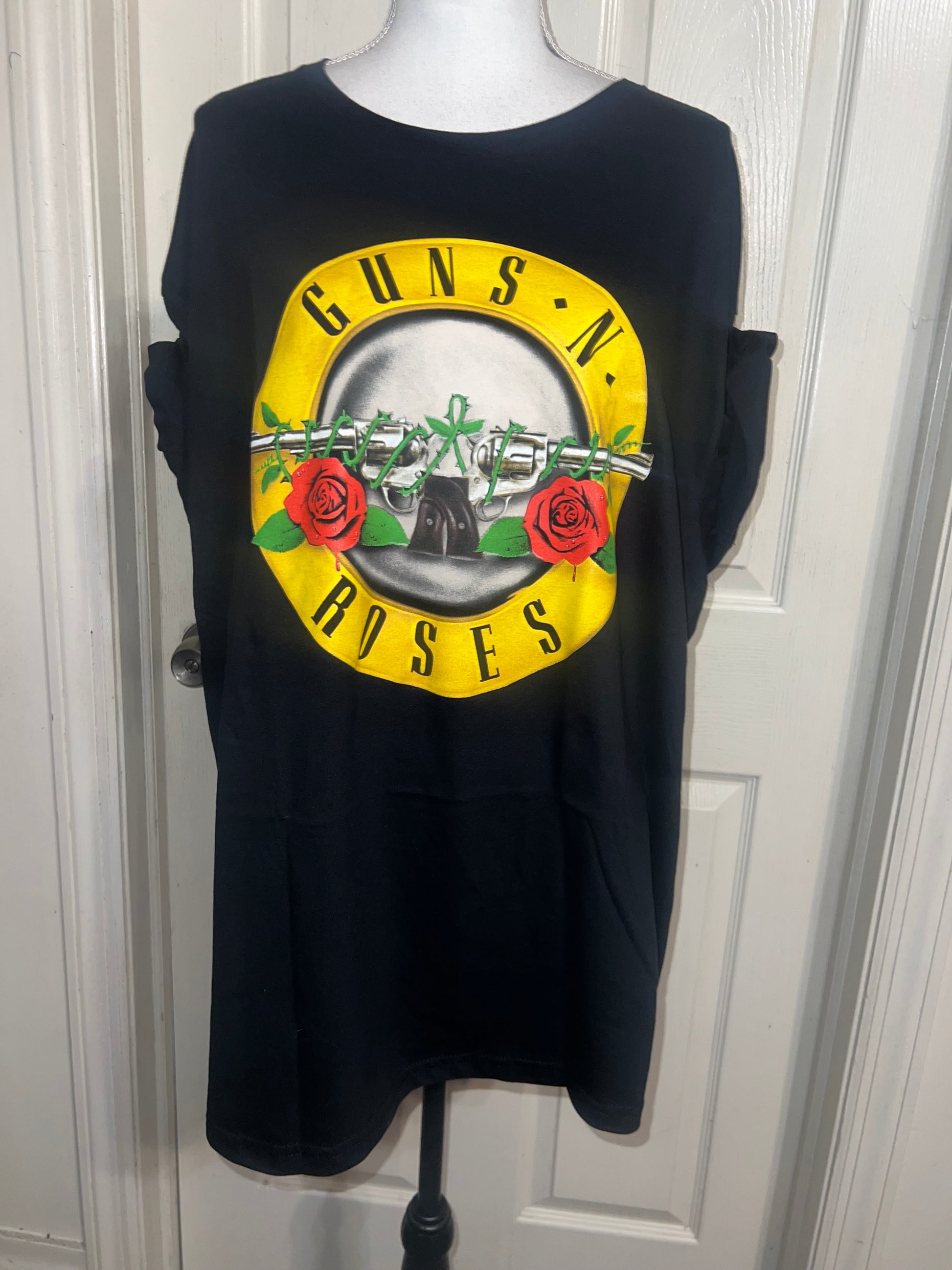 A black, oversized tee with the classic logo with guns and roses, for Guns n Roses. Matches with everything! Such a classic band tee to have. Size XL. This is not distressed yet. On the site, the drop down menu gives you distressing options and customization. If you’re buying on IG, please DM me your customization and distress level!