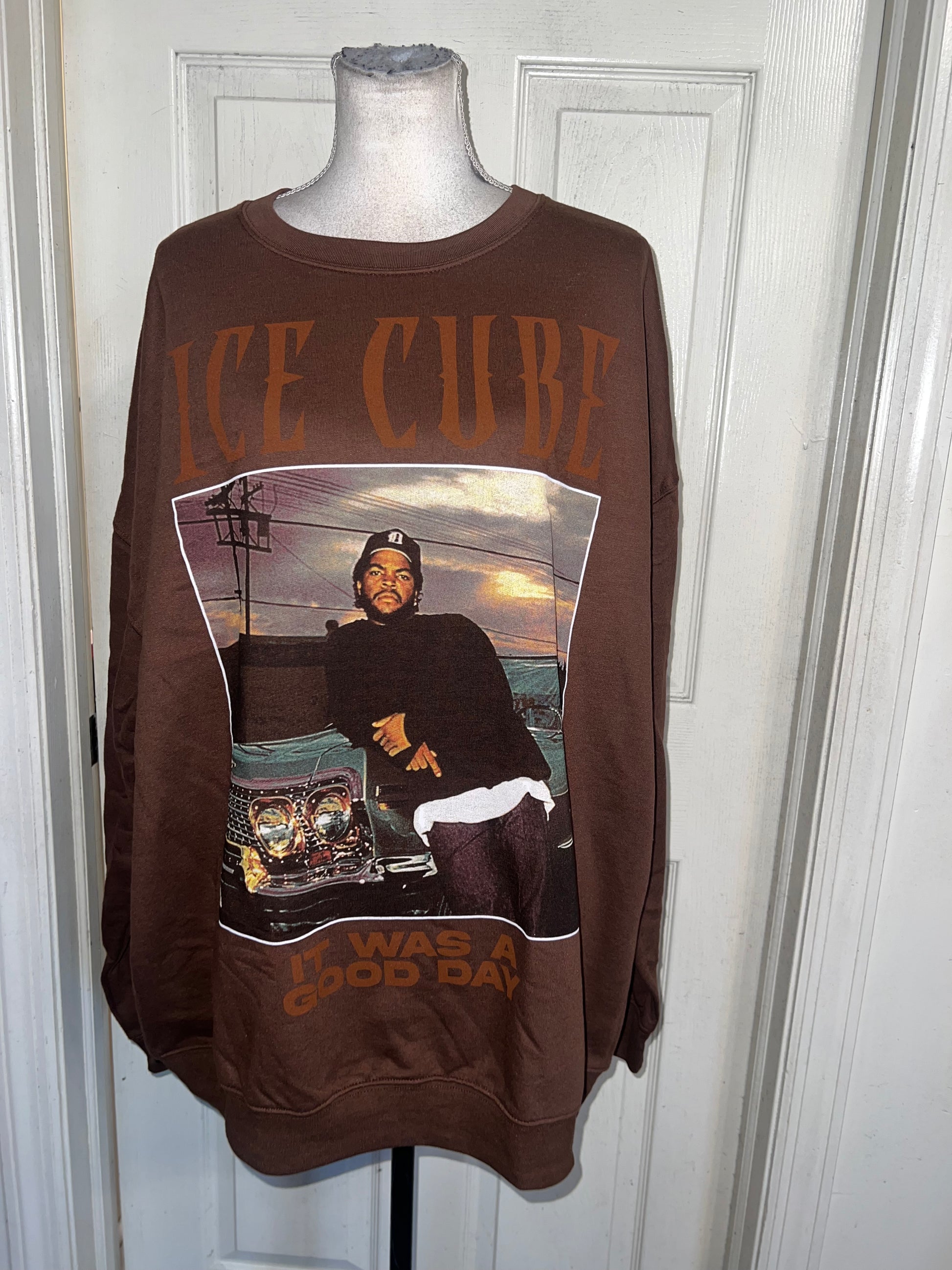 This is now a preorder. A chocolate brown Ice Cube sweatshirt with his album cover “It Was A Good Day.” It is so comfortable and soft + oversized.