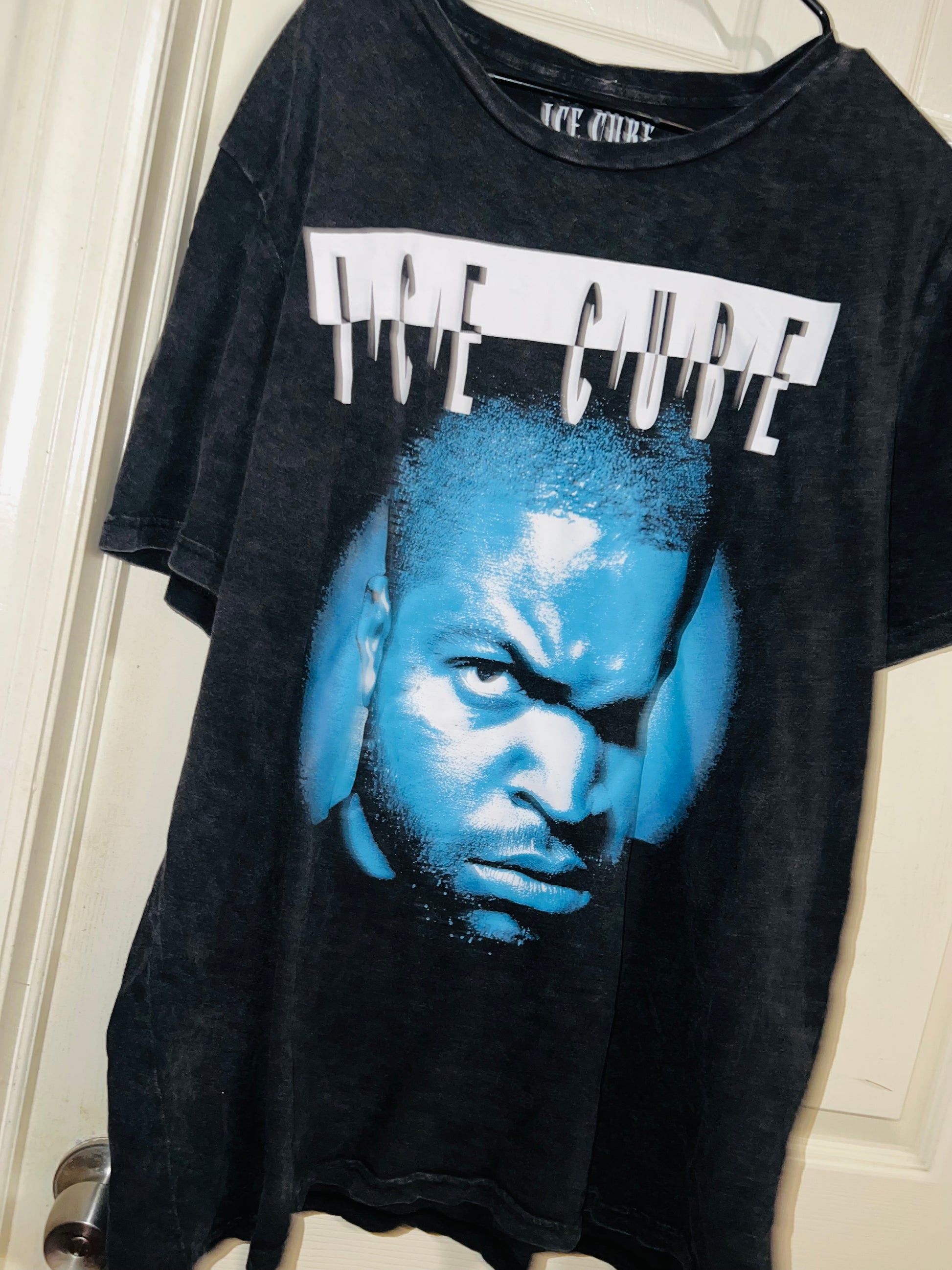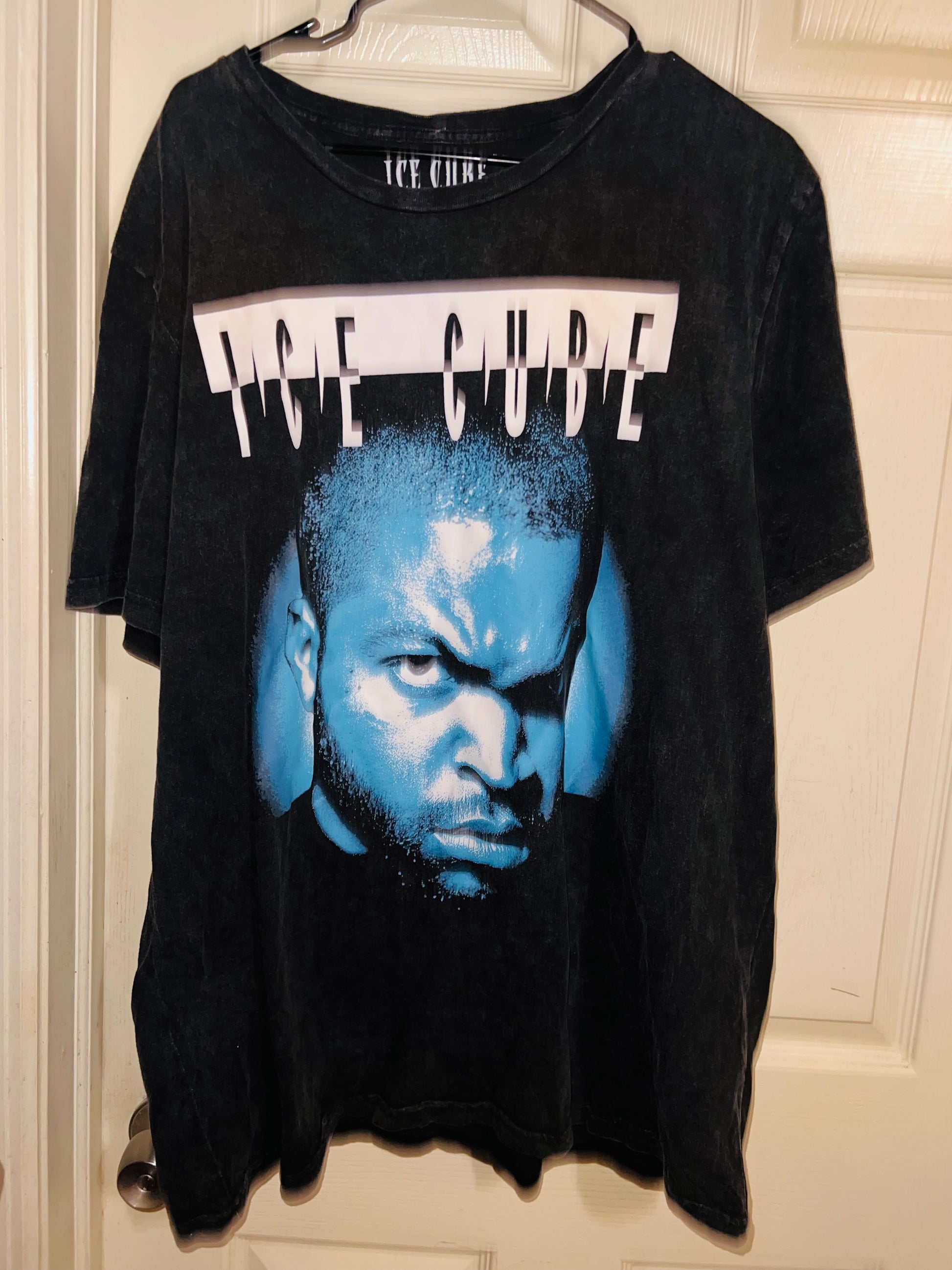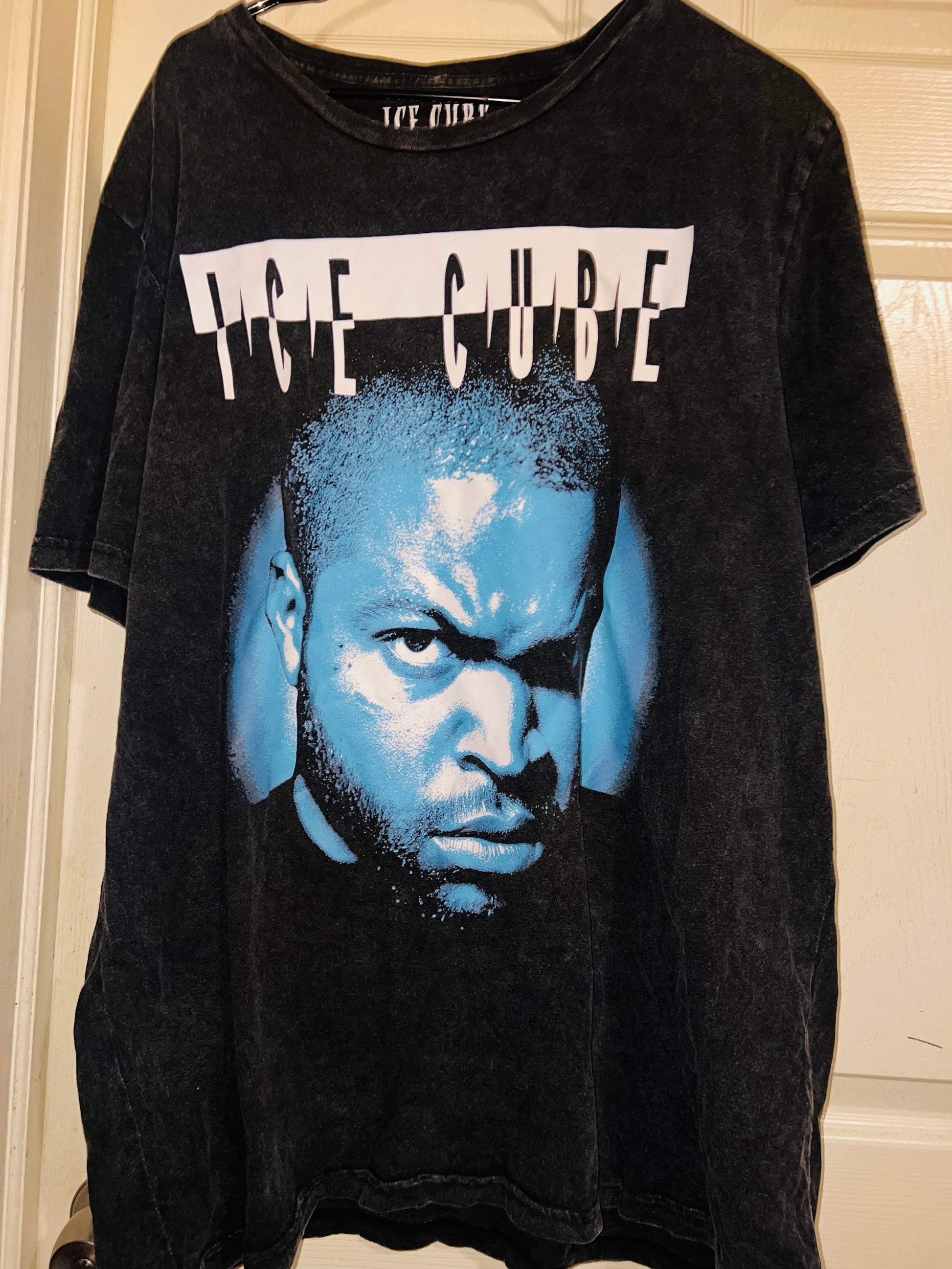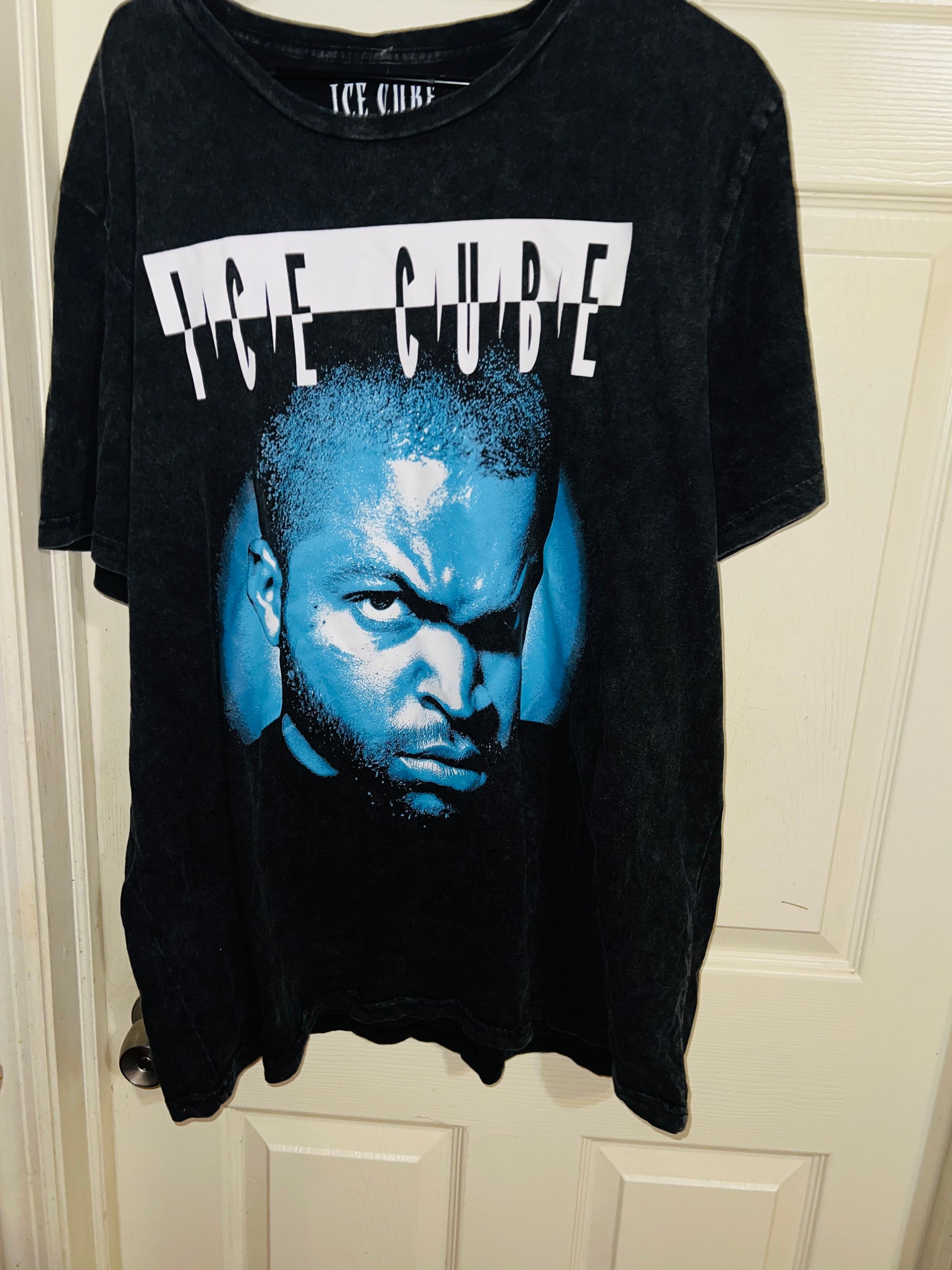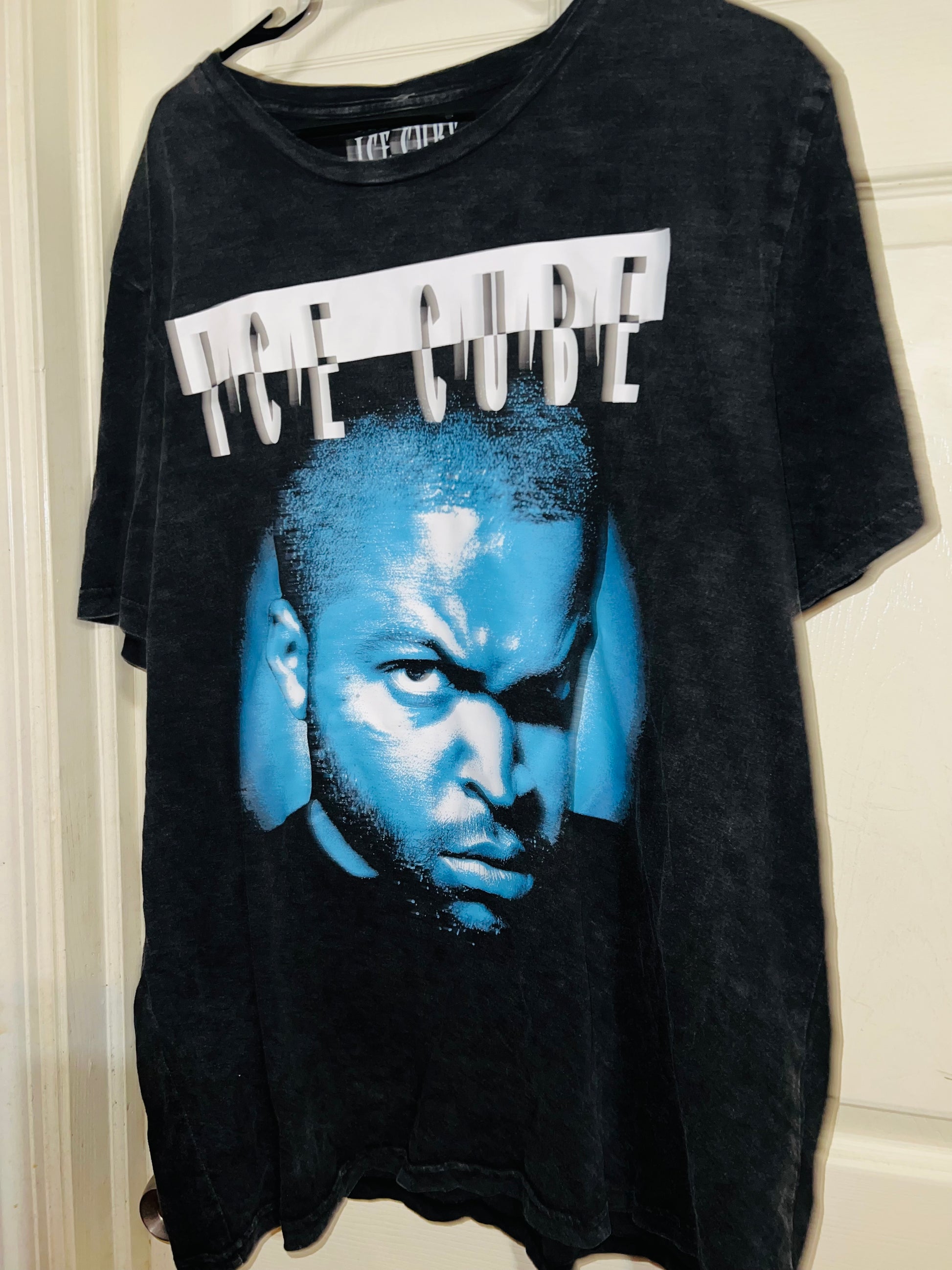 A dark charcoal grey/black mineral washed Ice Cube tee with a pretty blue contrast. Super comfortable. Oversized L/XL.