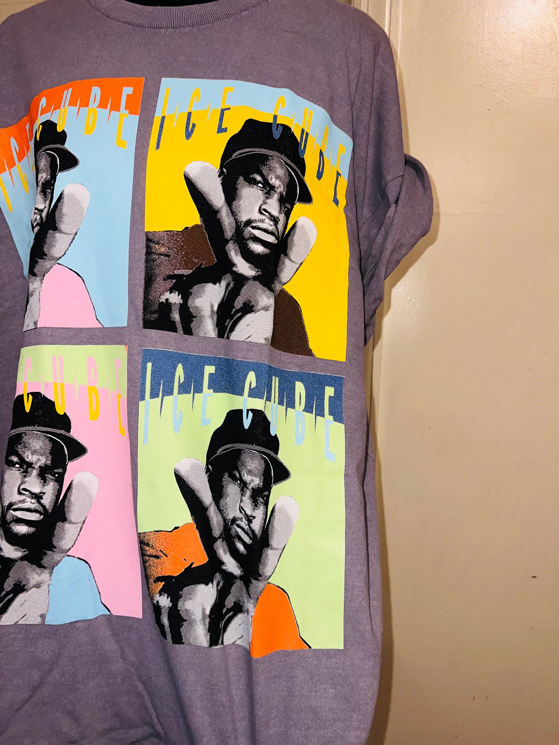 A light grey stone washed Ice Cube tee with an Andy Warhol colorful pop art type photos on the front. Size large, oversized.