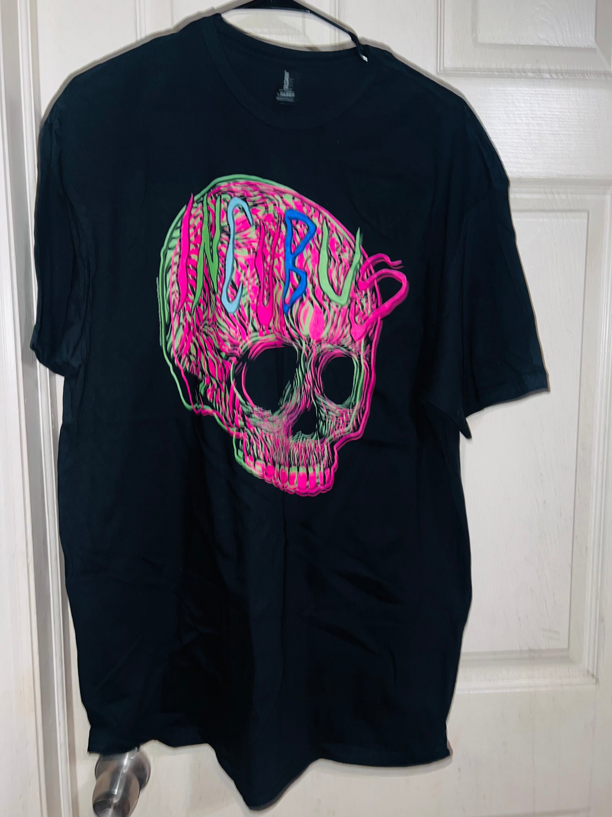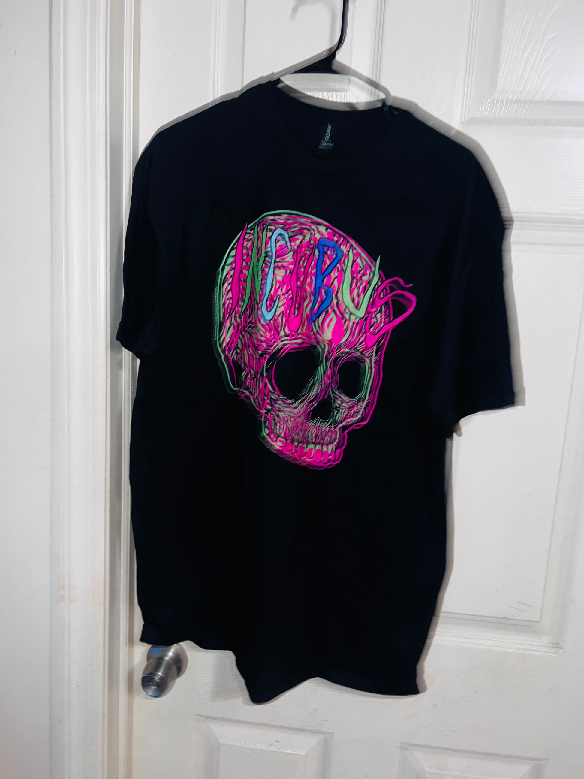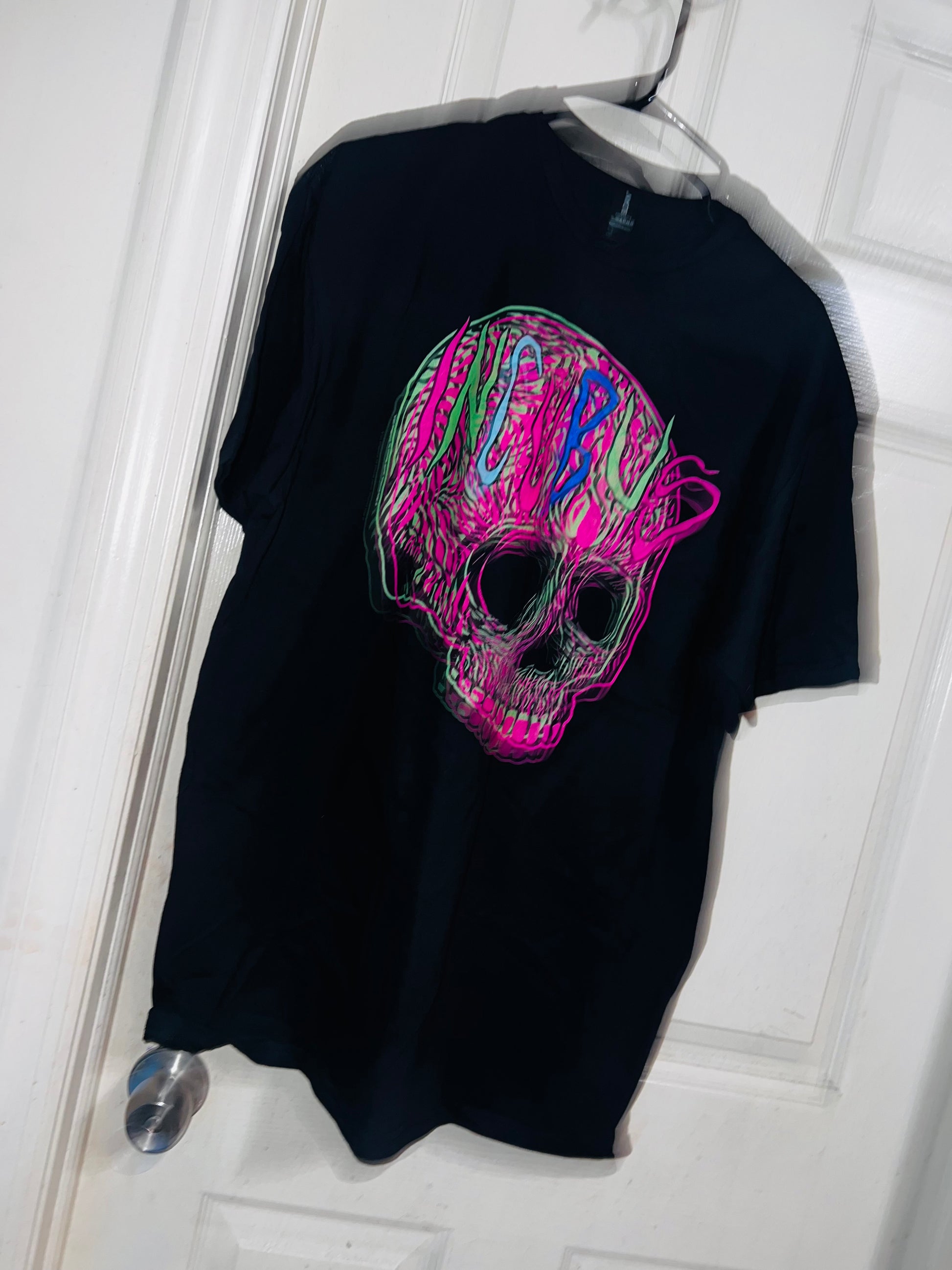 This is a preorder. Please allow extra processing time. A black oversized Incubus tee with a neon skull. I had this when I first started my shop, and it looked so cute distresed and went quick. Size XL, oversized.