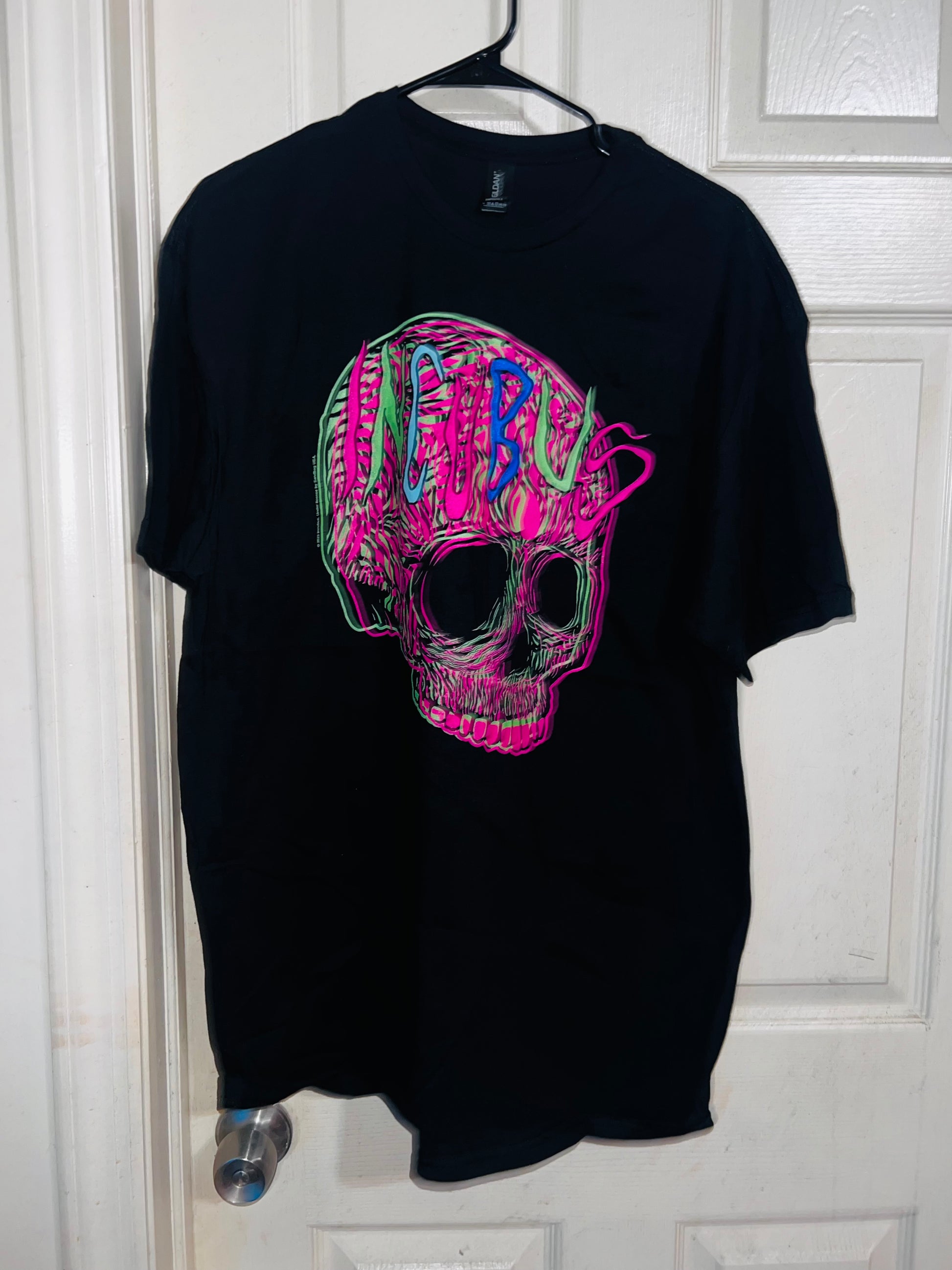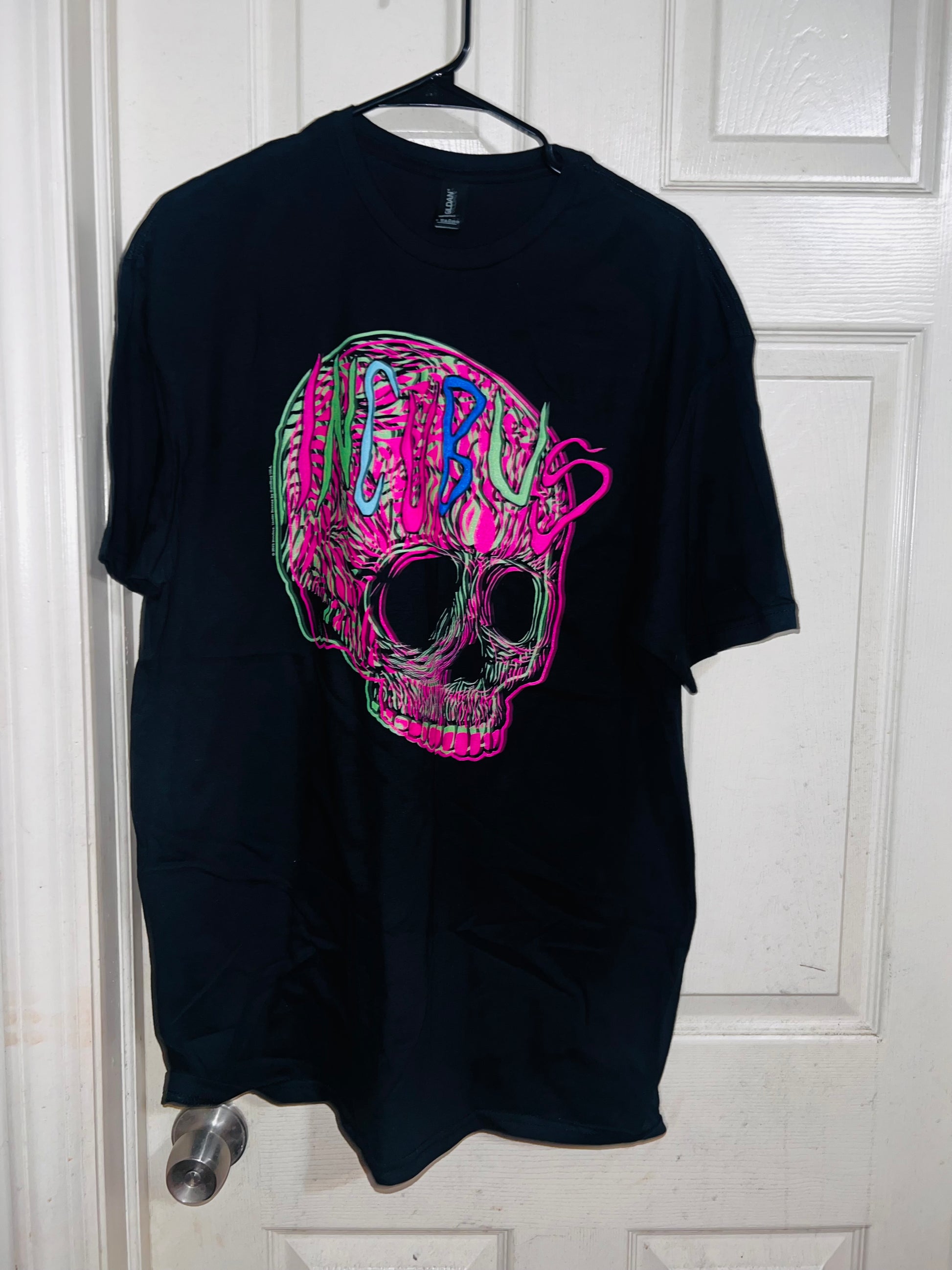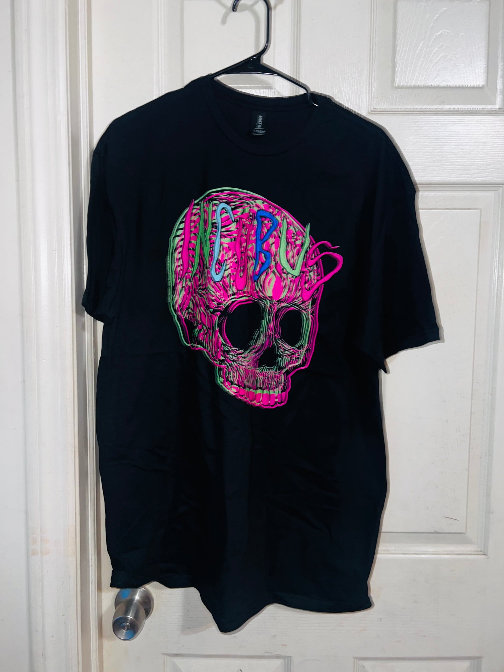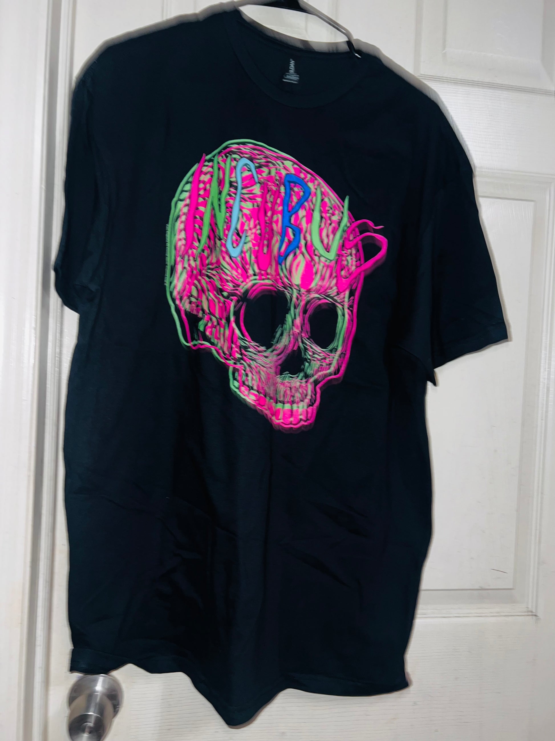 This is a preorder. Please allow extra processing time. A black oversized Incubus tee with a neon skull. I had this when I first started my shop, and it looked so cute distresed and went quick. Size XL, oversized.