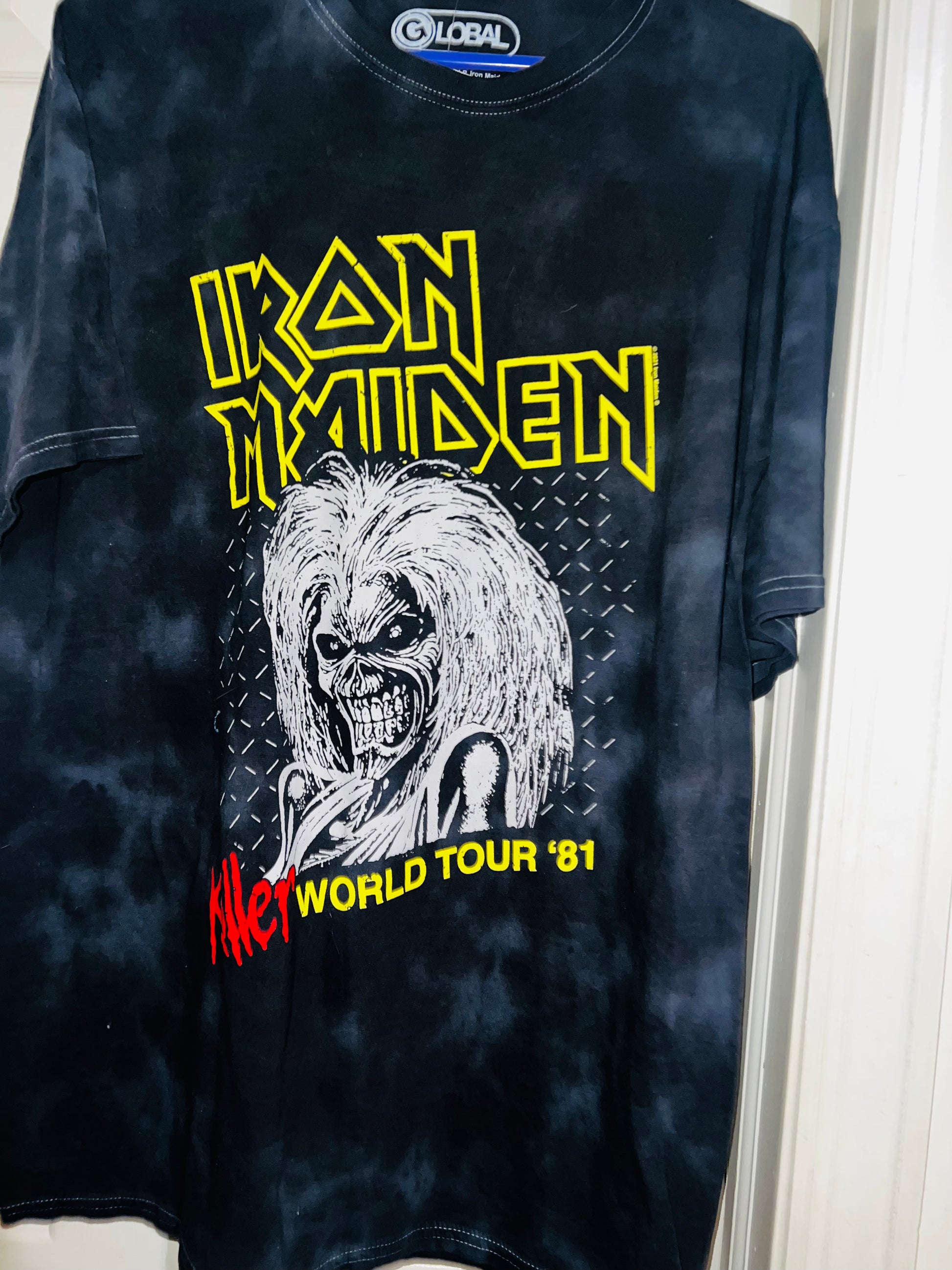 This is a preorder. Please allow extra processing time if ordered. One of my favorites, this grey mineral washed Iton Maiden tee has a 1981 world tour graphic. It’s oversized and a L/XL. This isn’t distressed yet, so be sure to choose your distress level.
