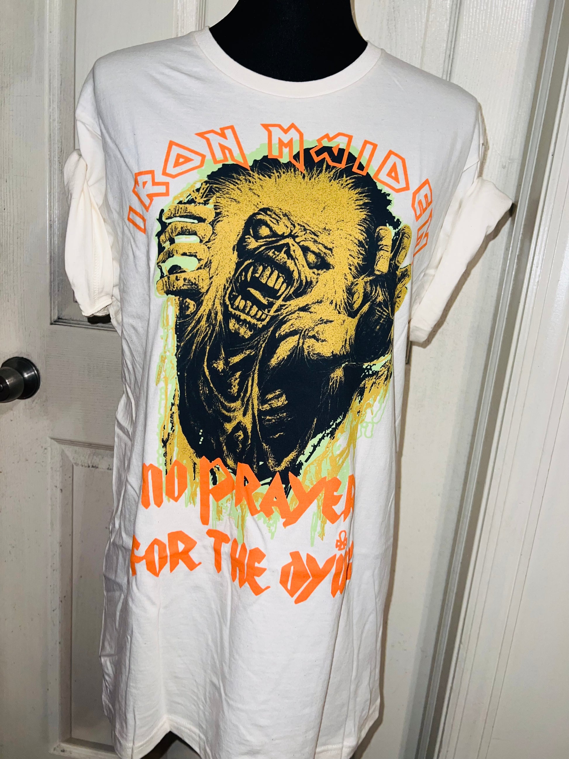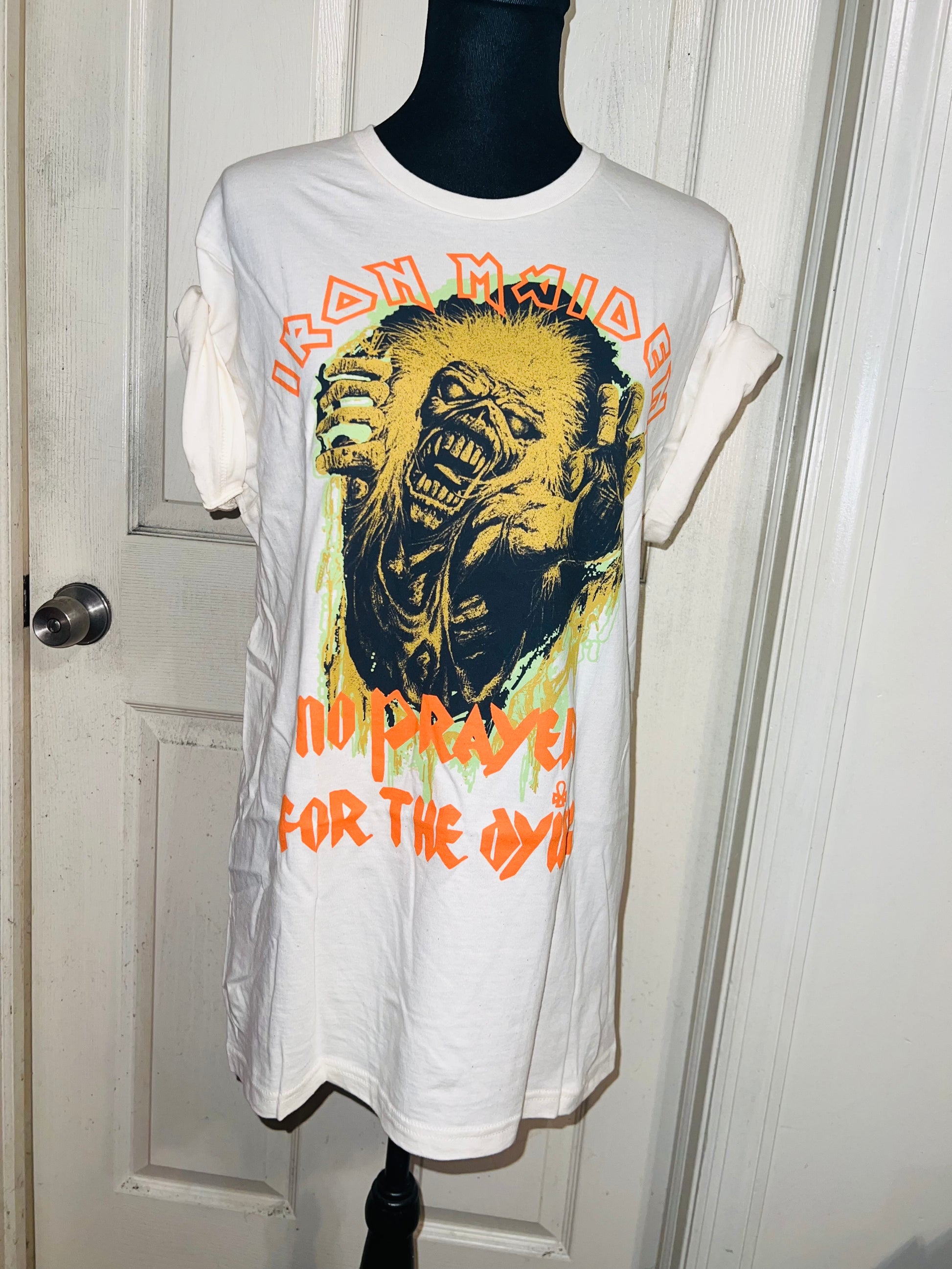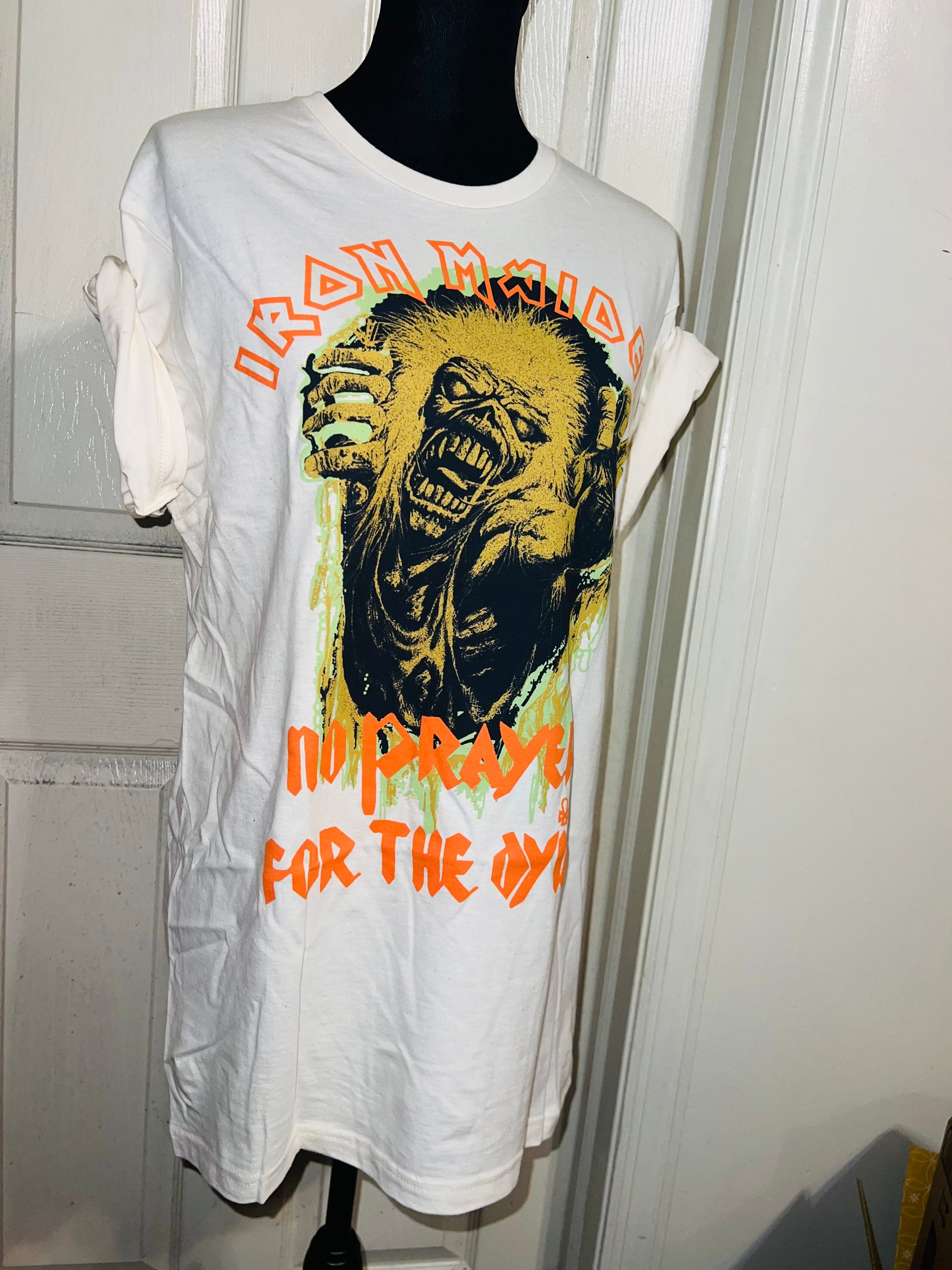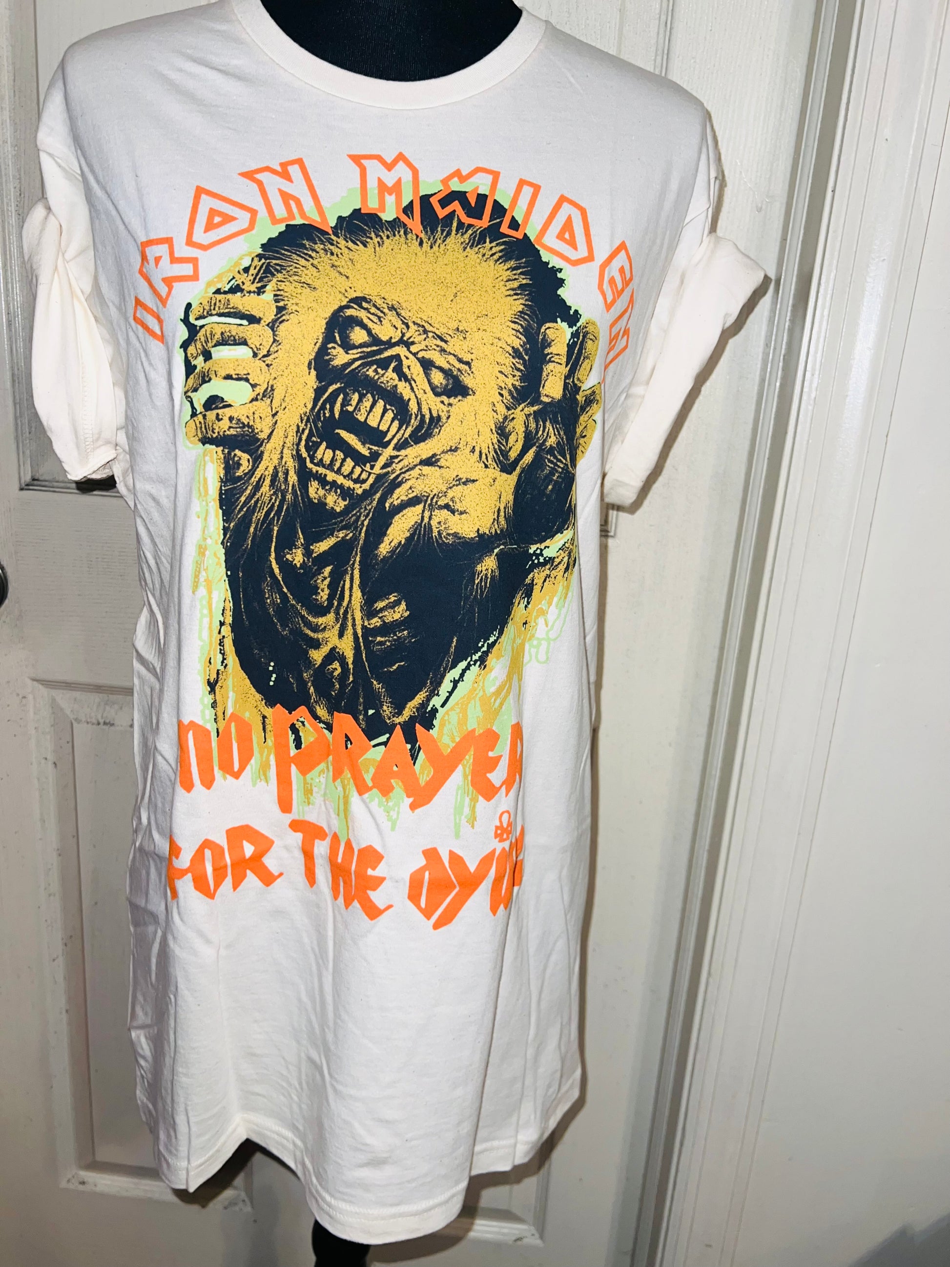 A white Iron Maiden “No prayer for the dying” tee with a really cool graphic. Size M/L, oversized.
