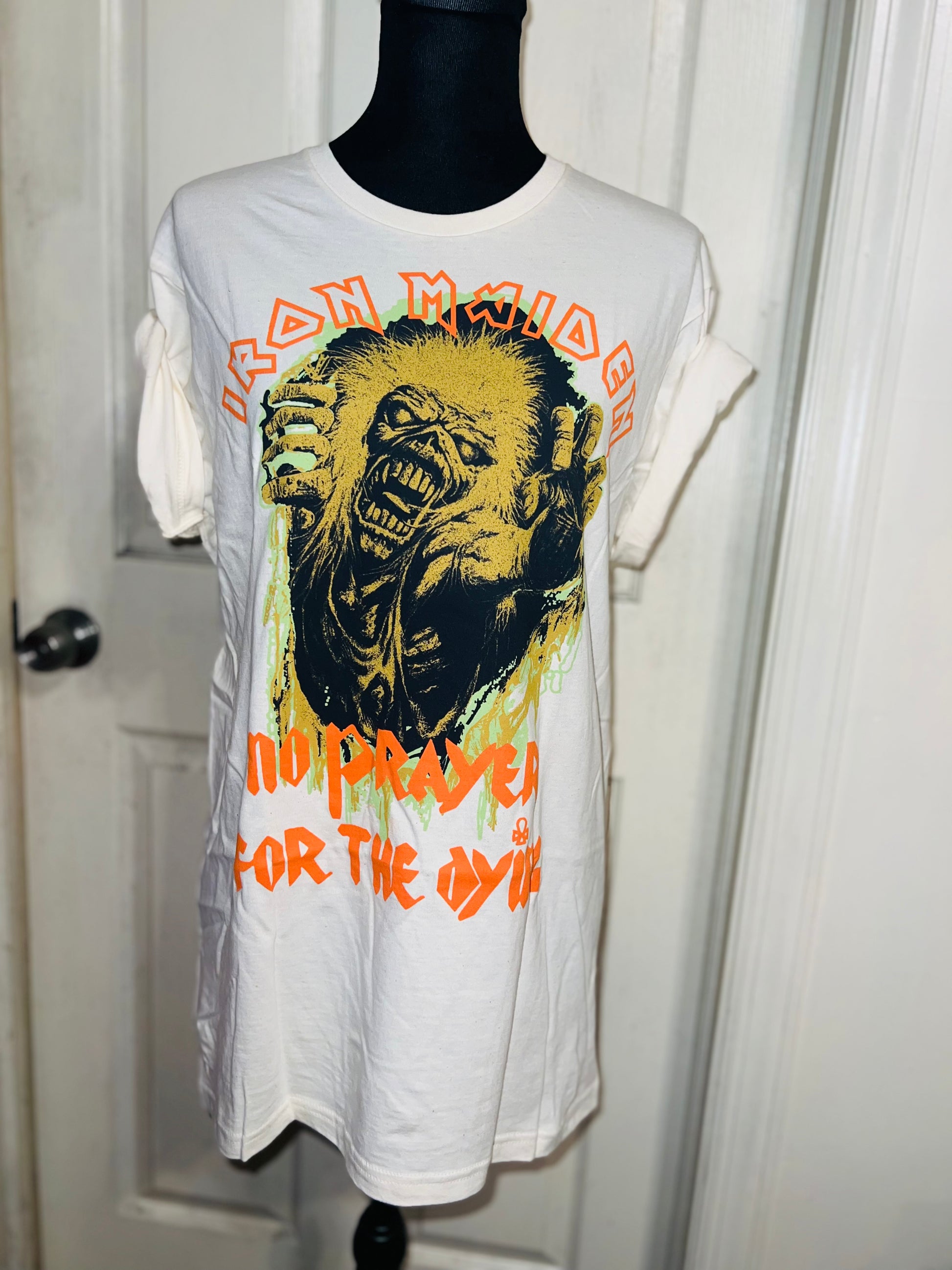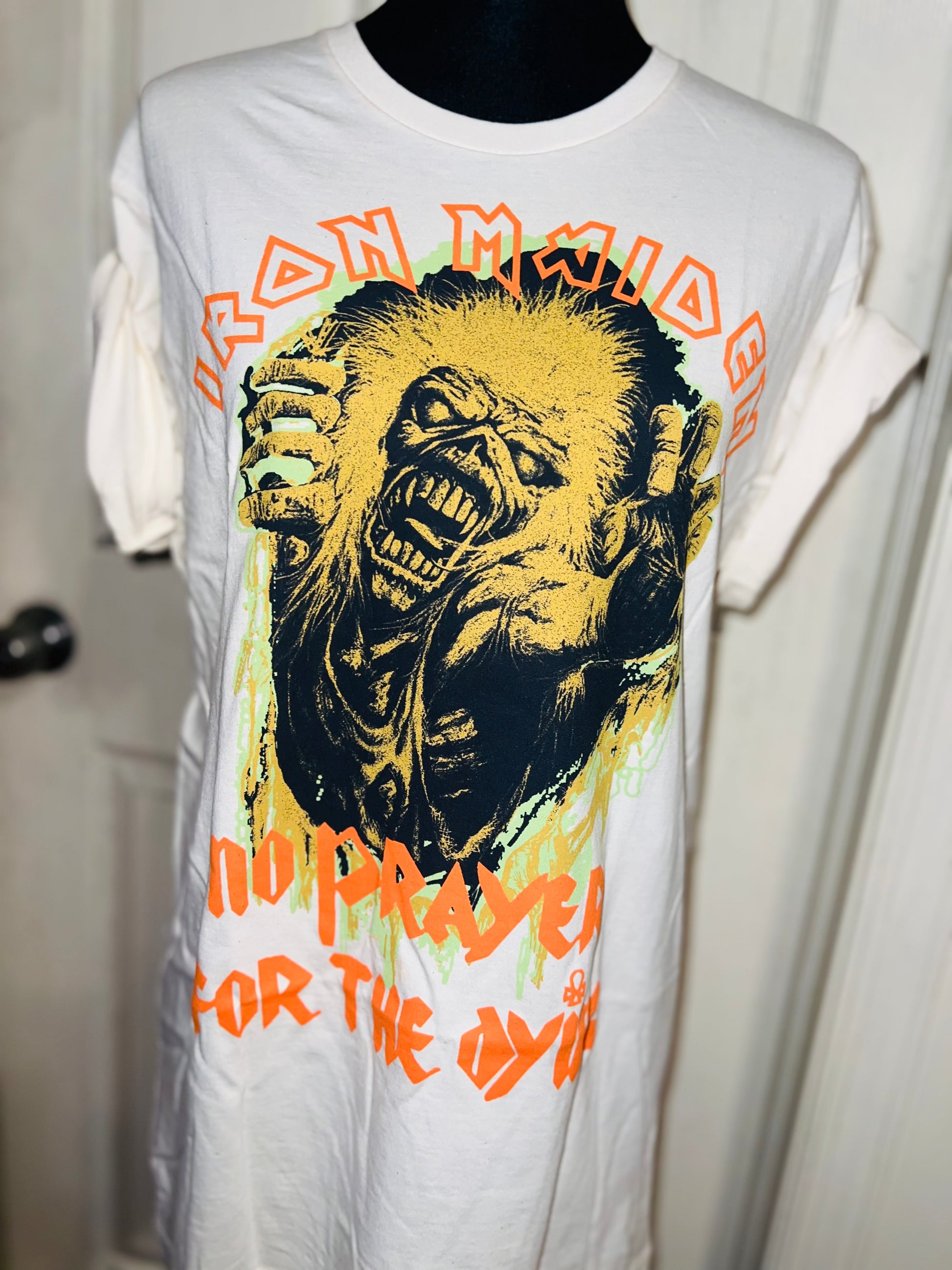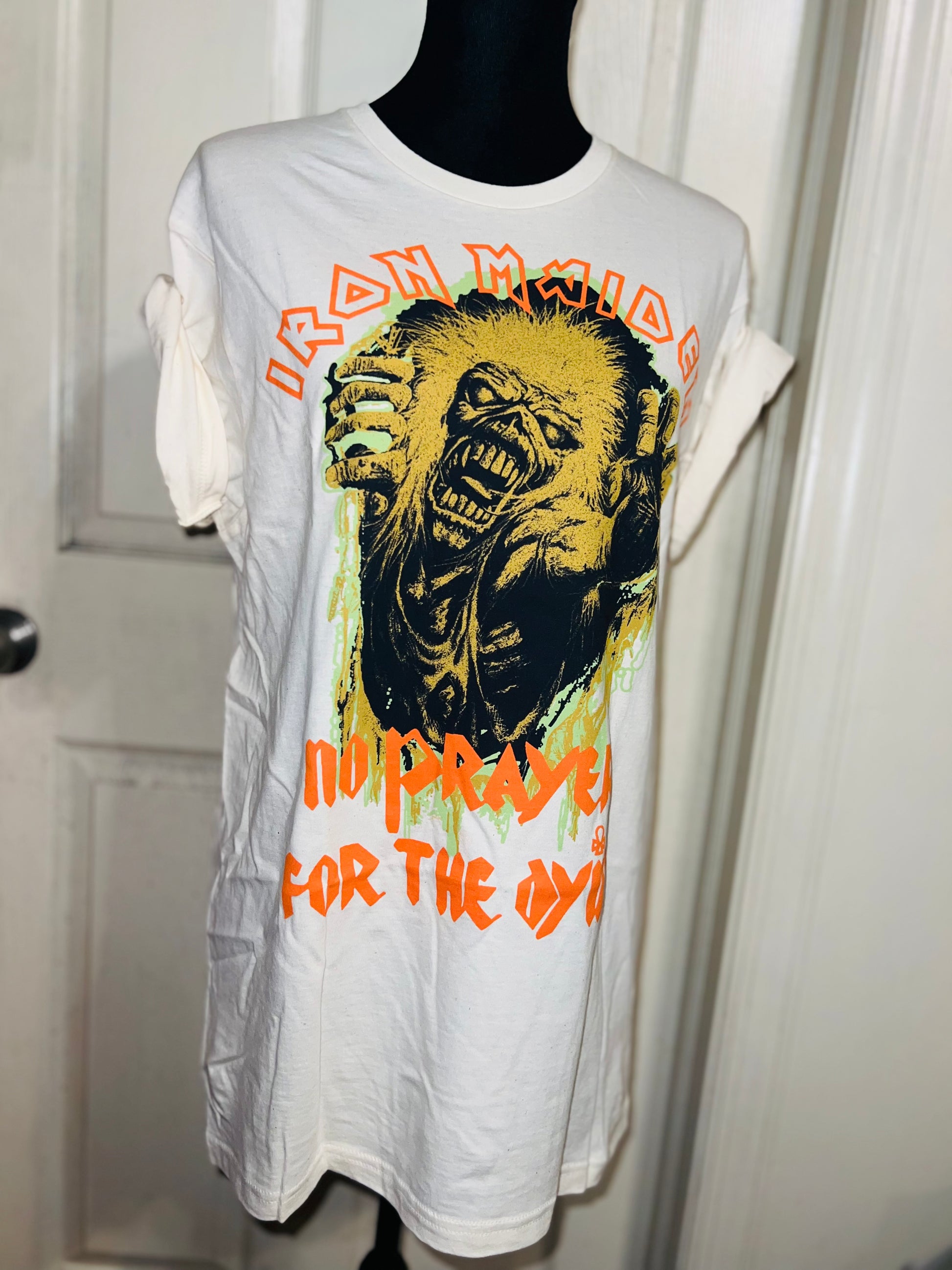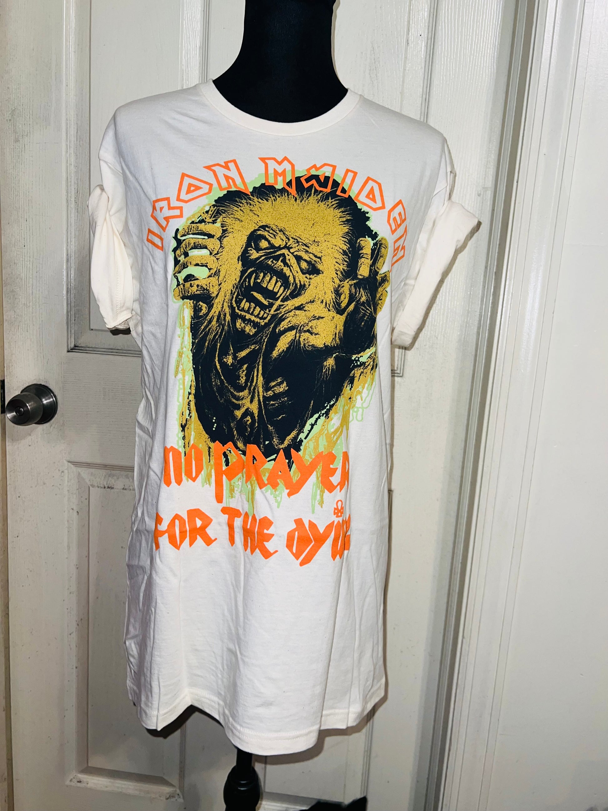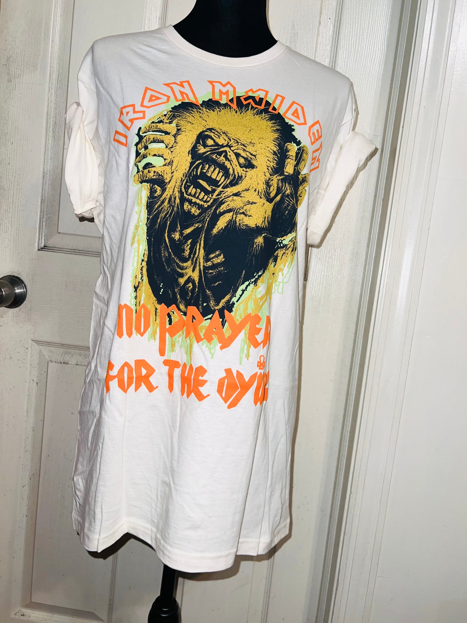 A white Iron Maiden “No prayer for the dying” tee with a really cool graphic. Size M/L, oversized.