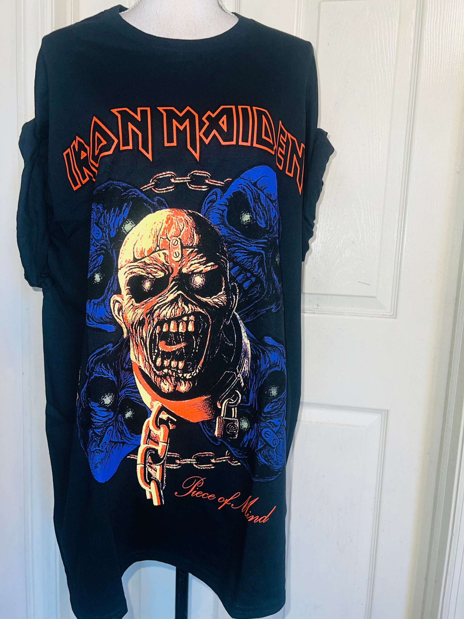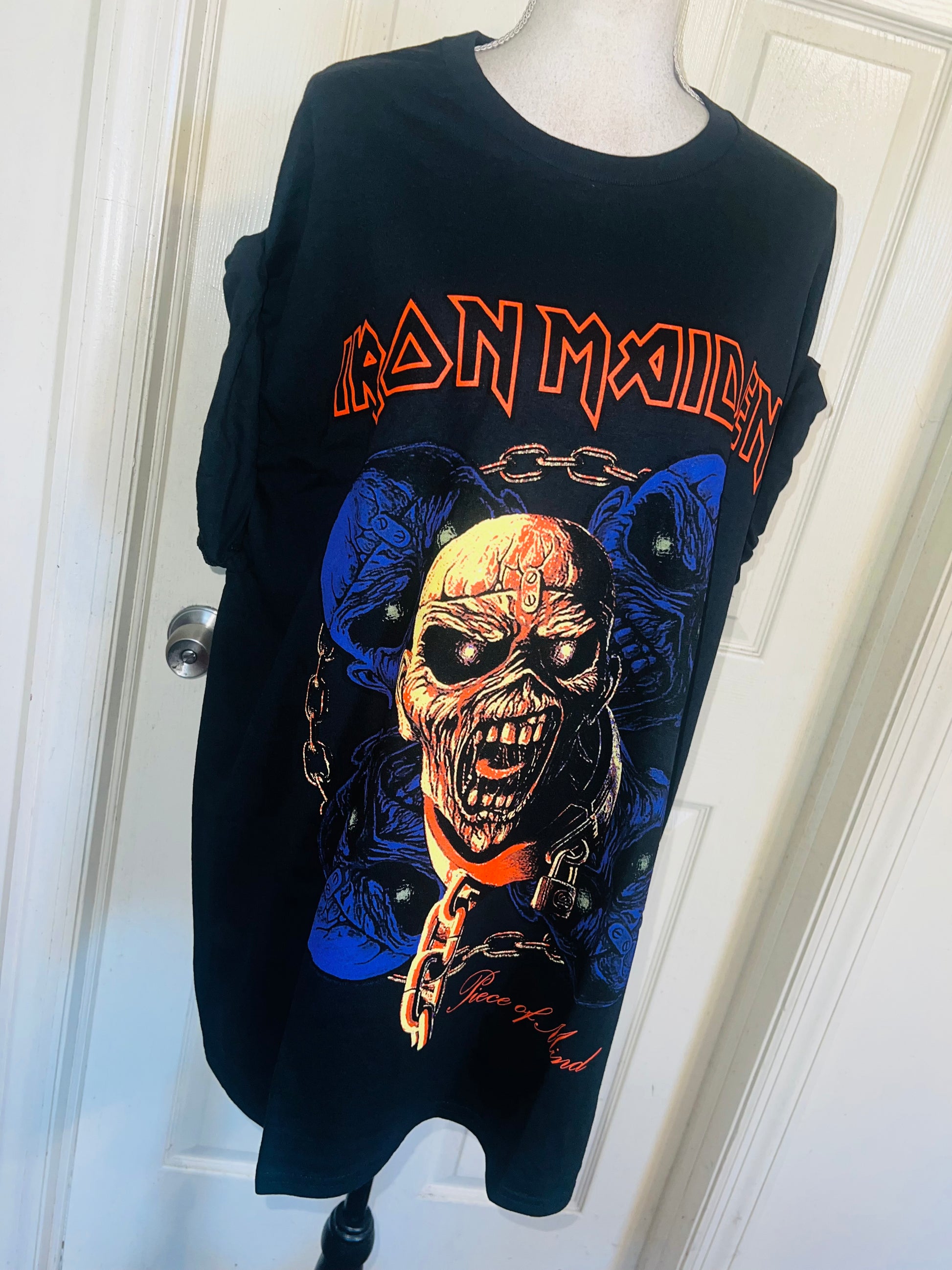 A black Iron Maiden “Piece of Mind” tee with a cool graphic. Size XXL, oversized.