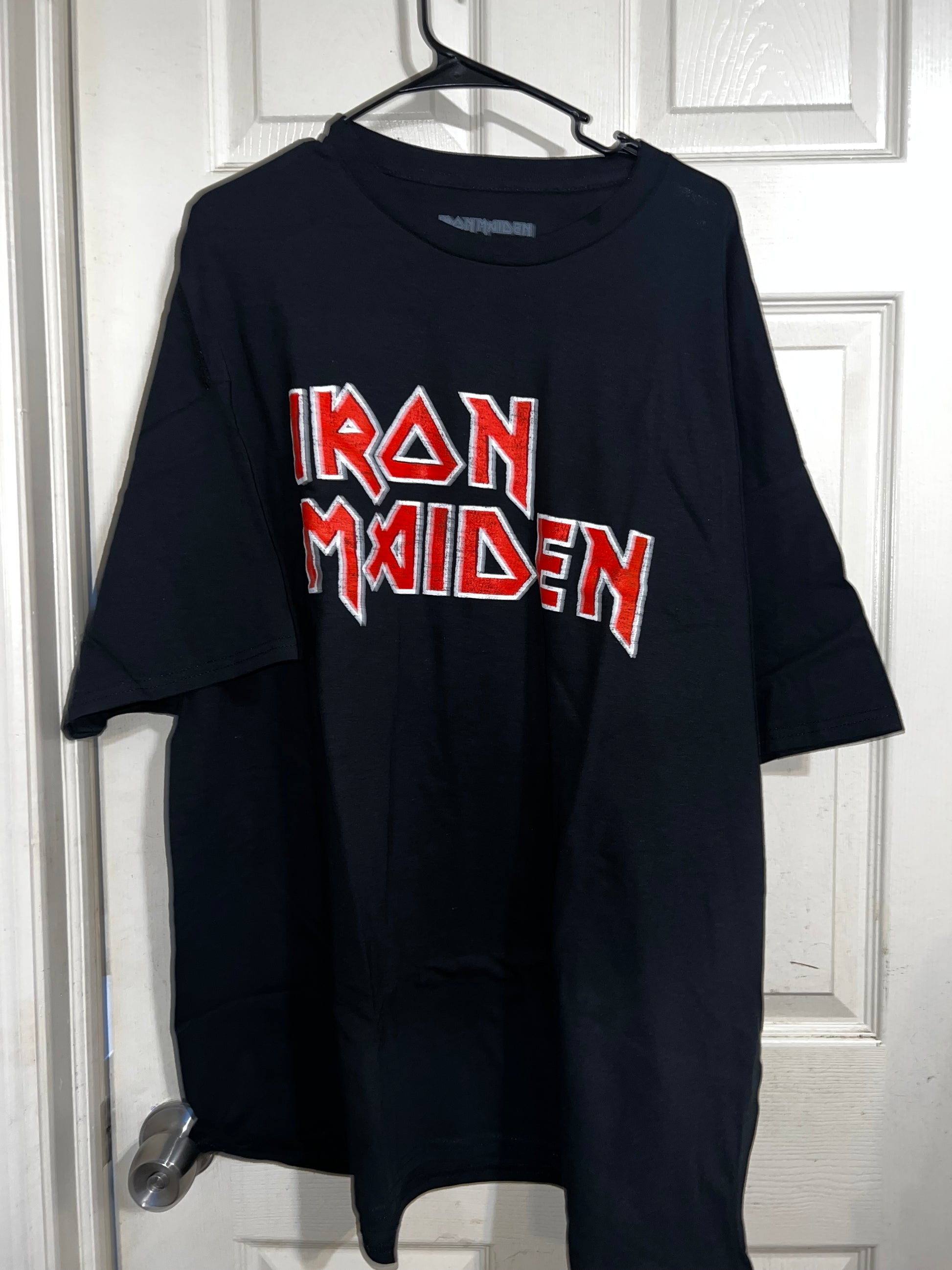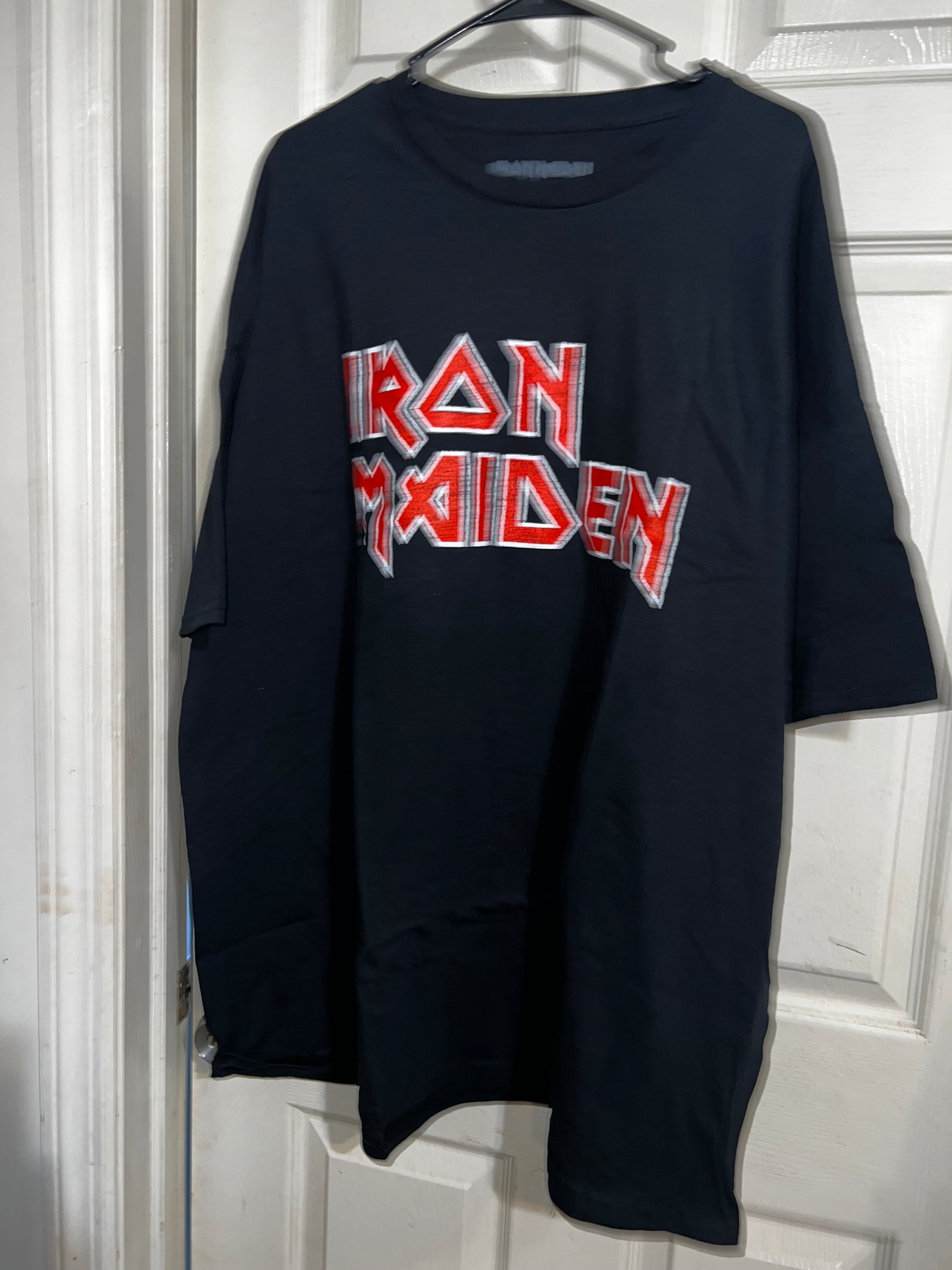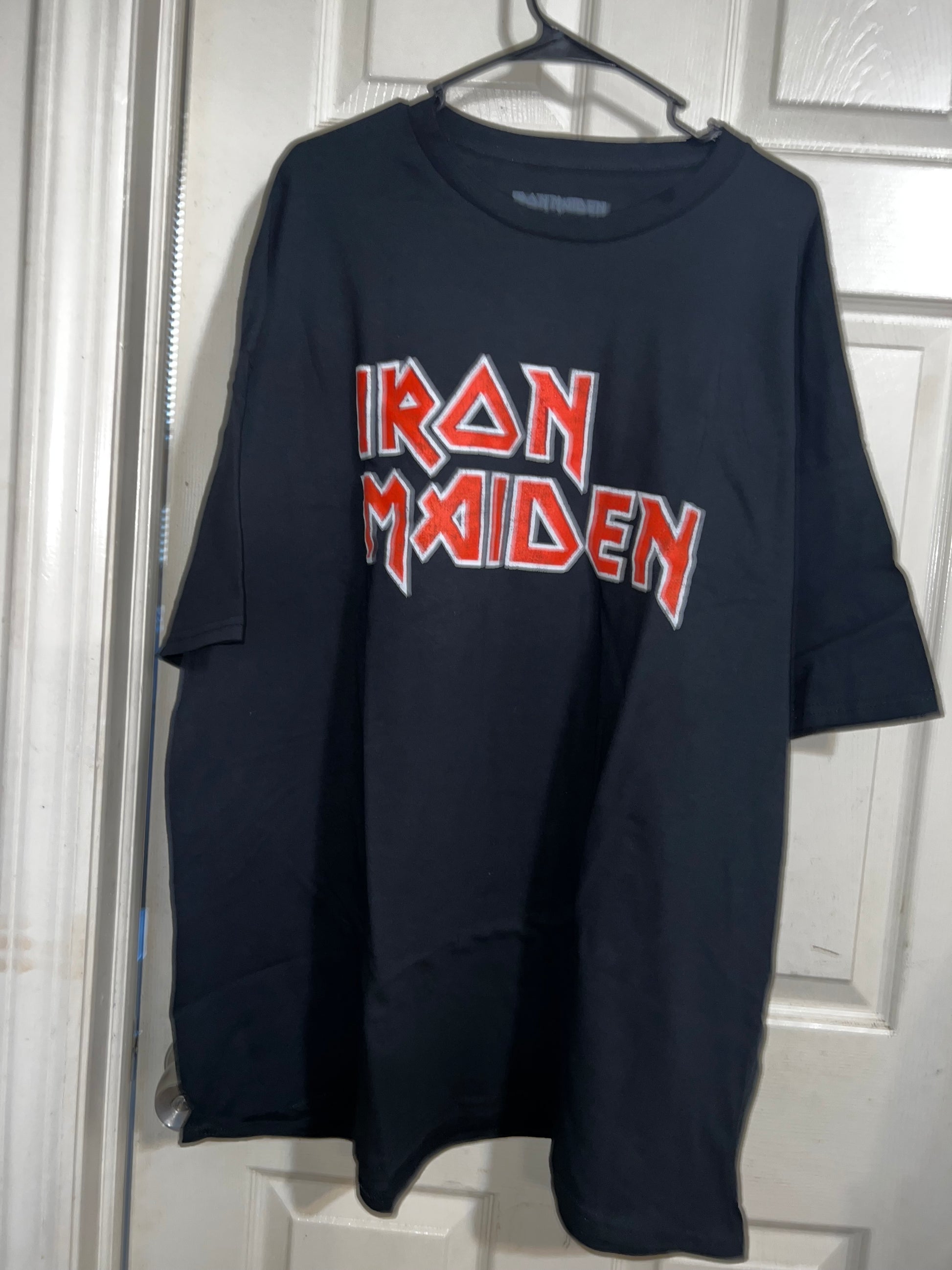 I LOVE shirt dresses. They’re so cute to wear and easy to throw on and still look fab. For fall, pair with boots and a Jean jacket, leather jacket, or flannel. If you’re taller or plus sized, or even short, you can wear as a tee. I can also crop. Iron Maiden! Size XL.