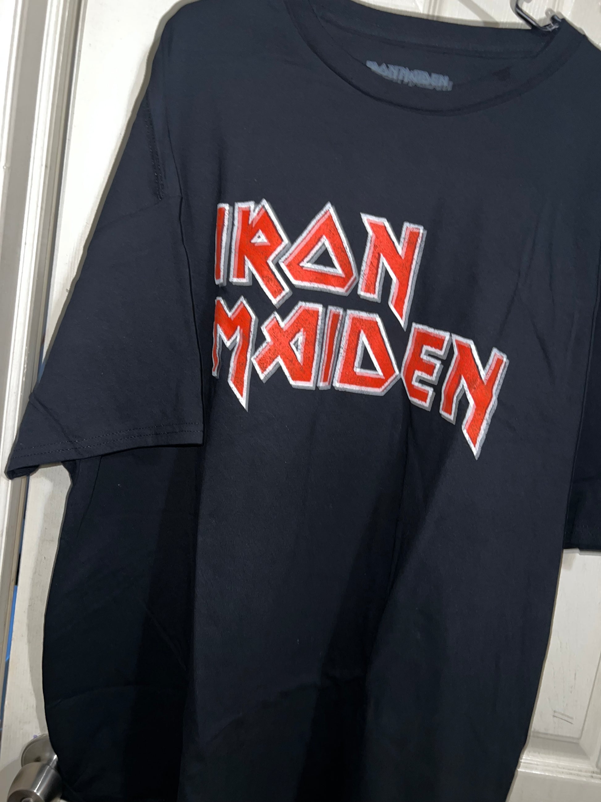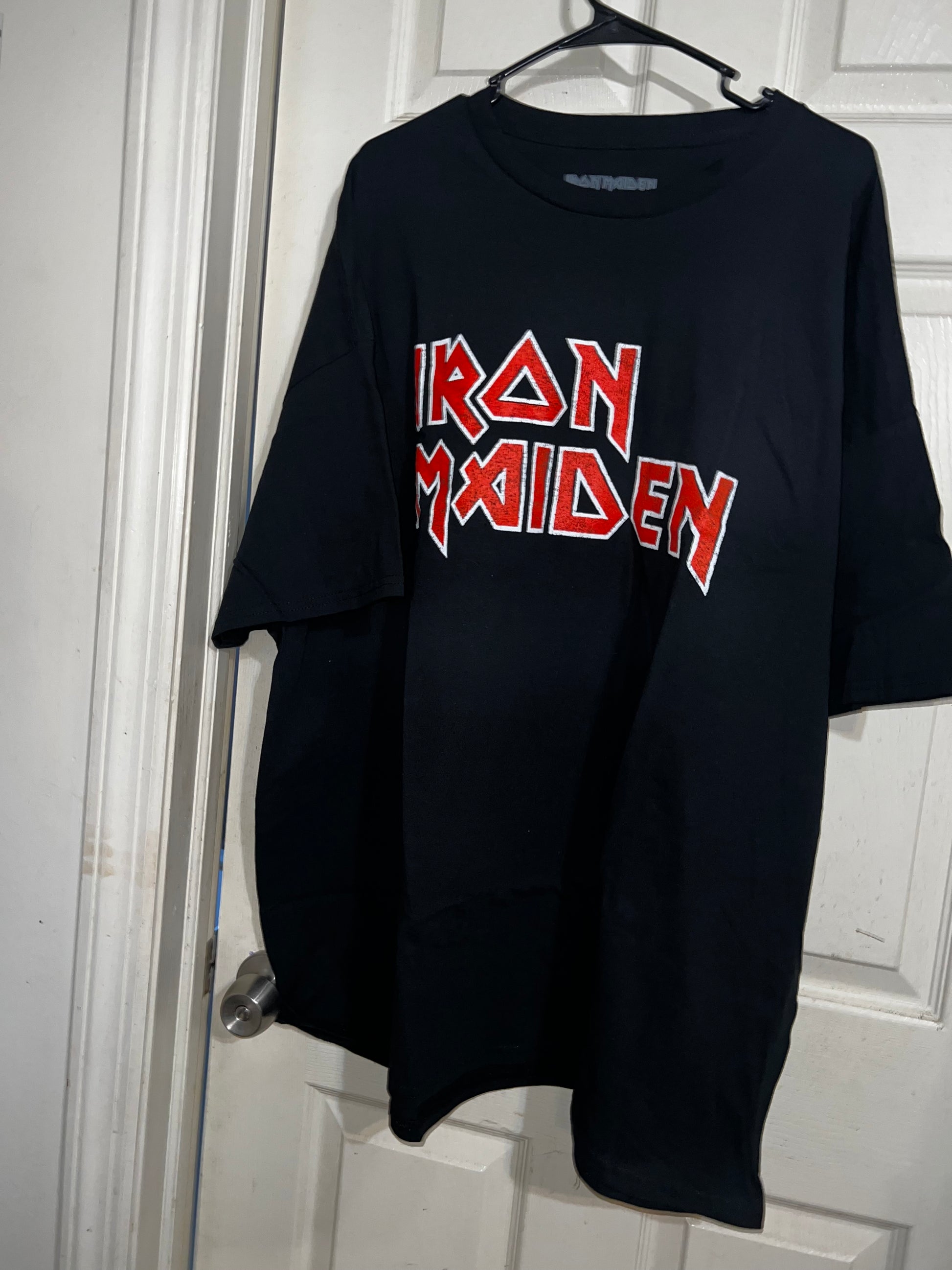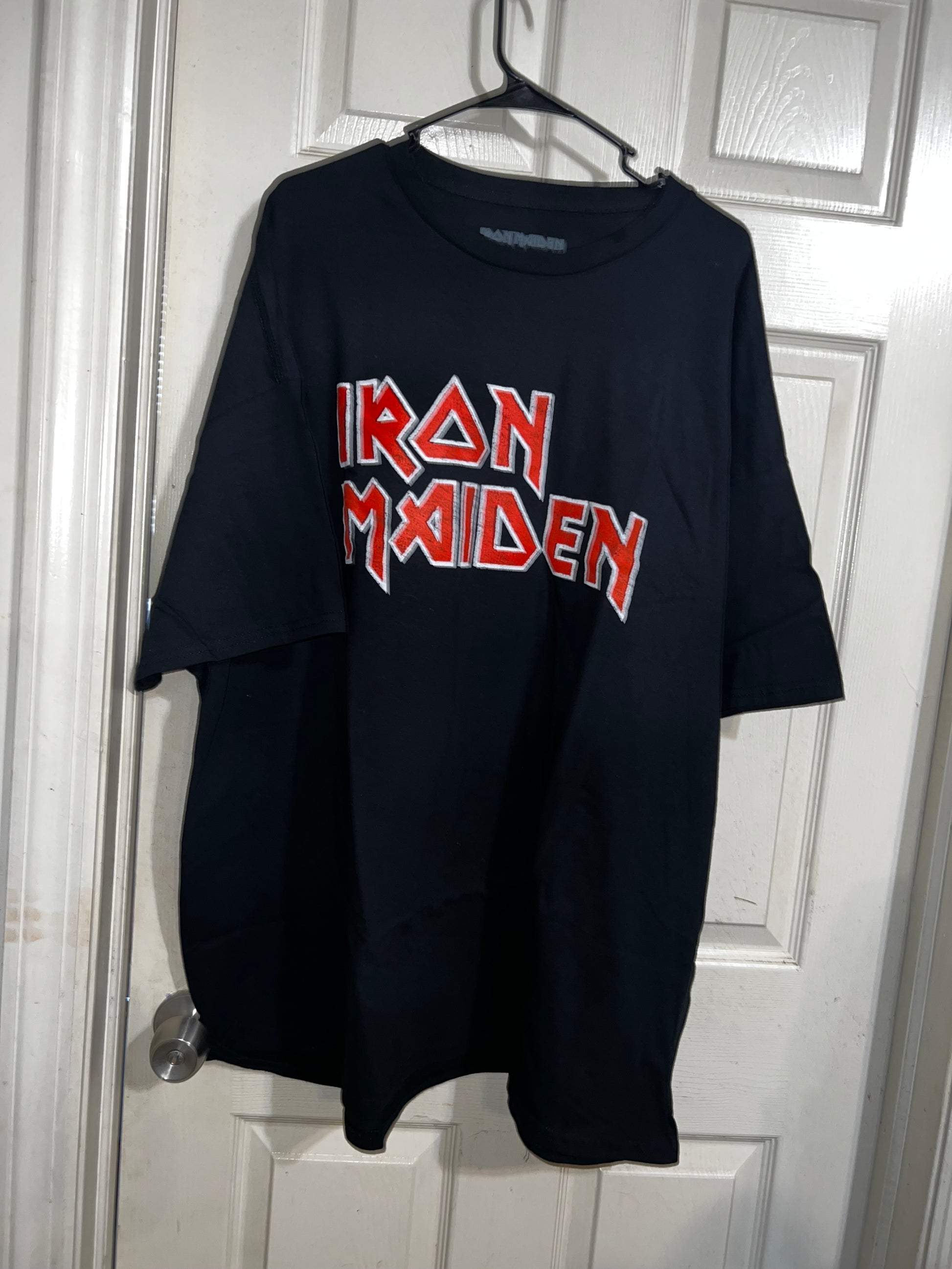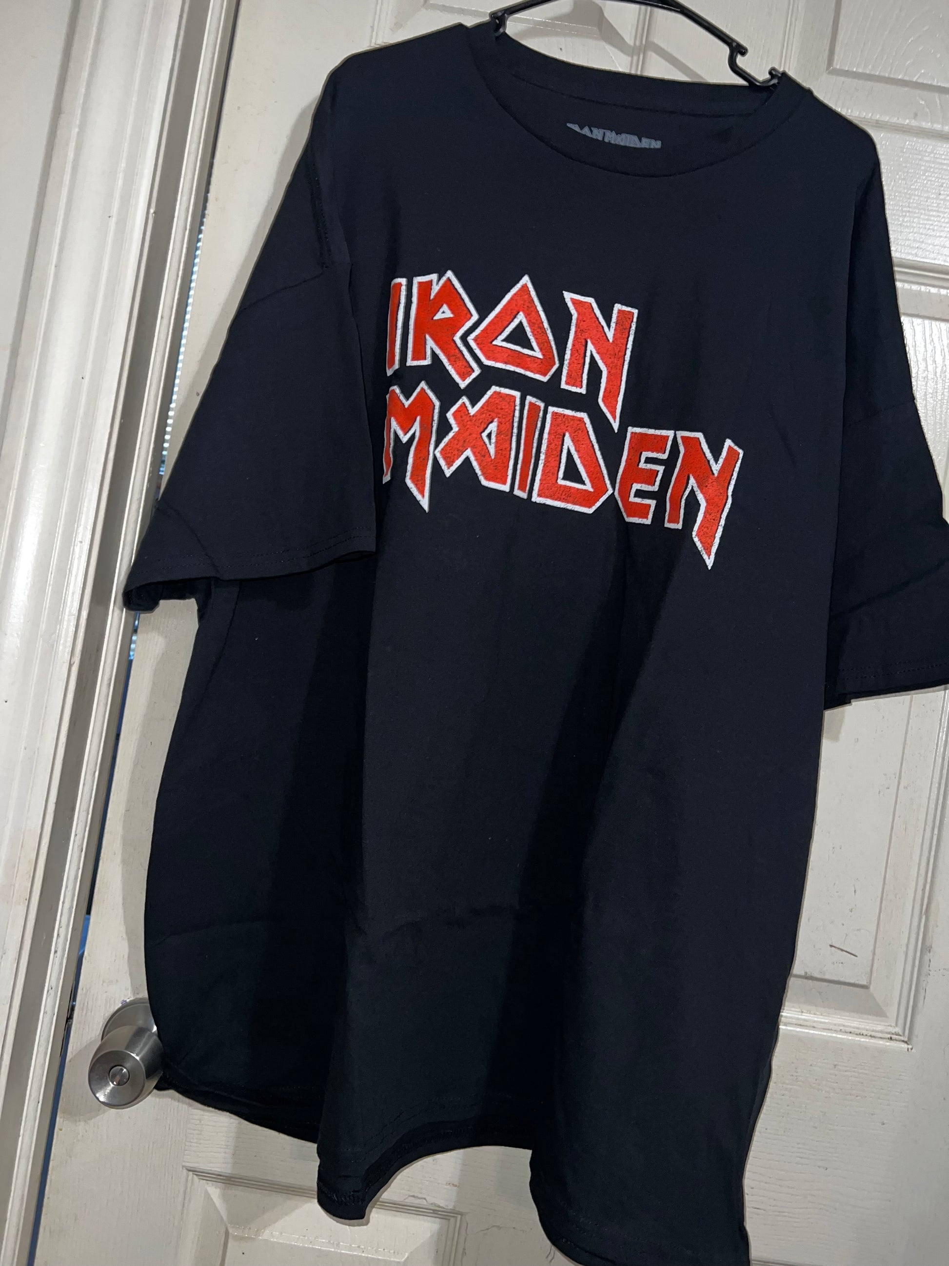 I LOVE shirt dresses. They’re so cute to wear and easy to throw on and still look fab. For fall, pair with boots and a Jean jacket, leather jacket, or flannel. If you’re taller or plus sized, or even short, you can wear as a tee. I can also crop. Iron Maiden! Size XL.
