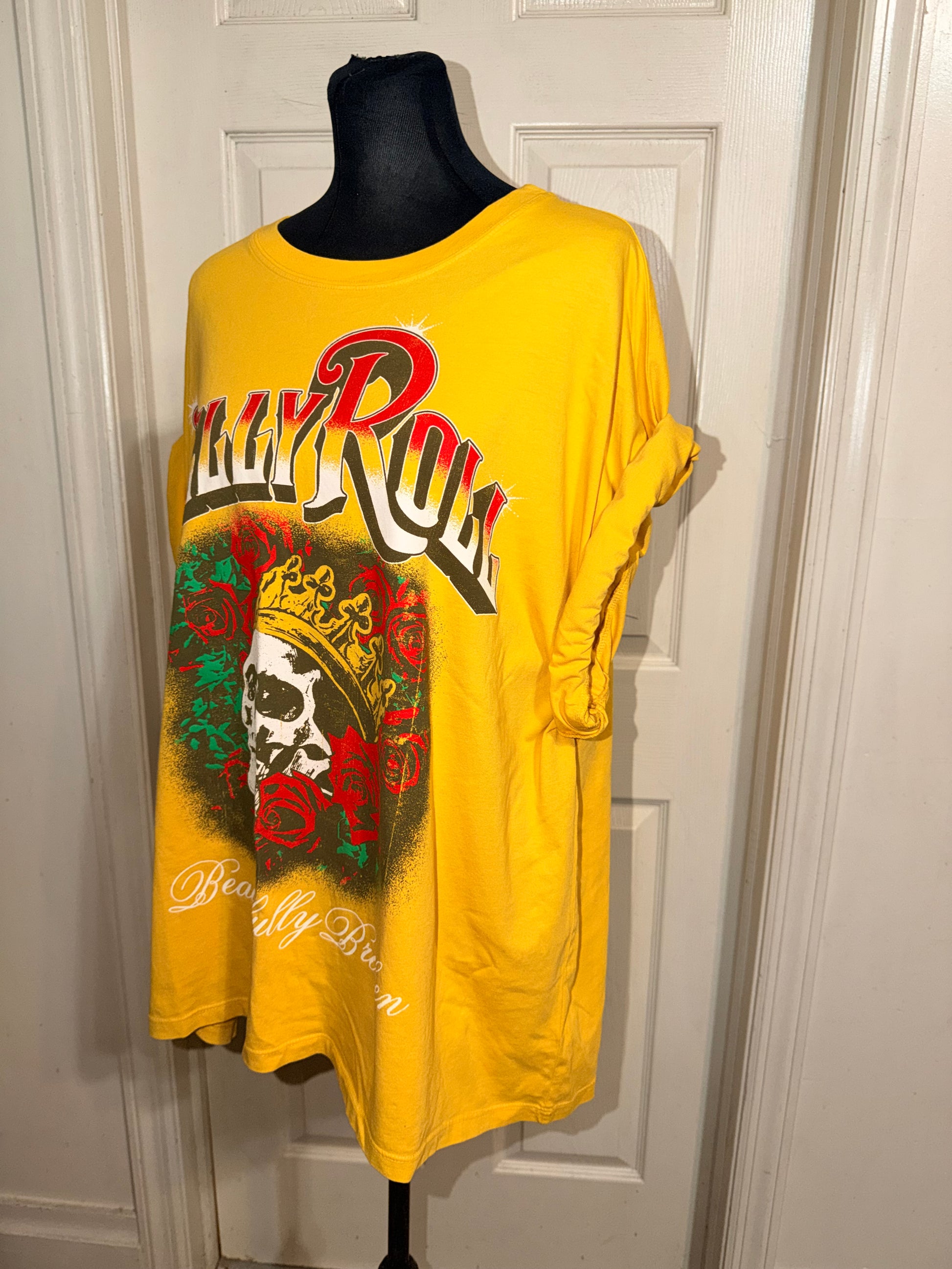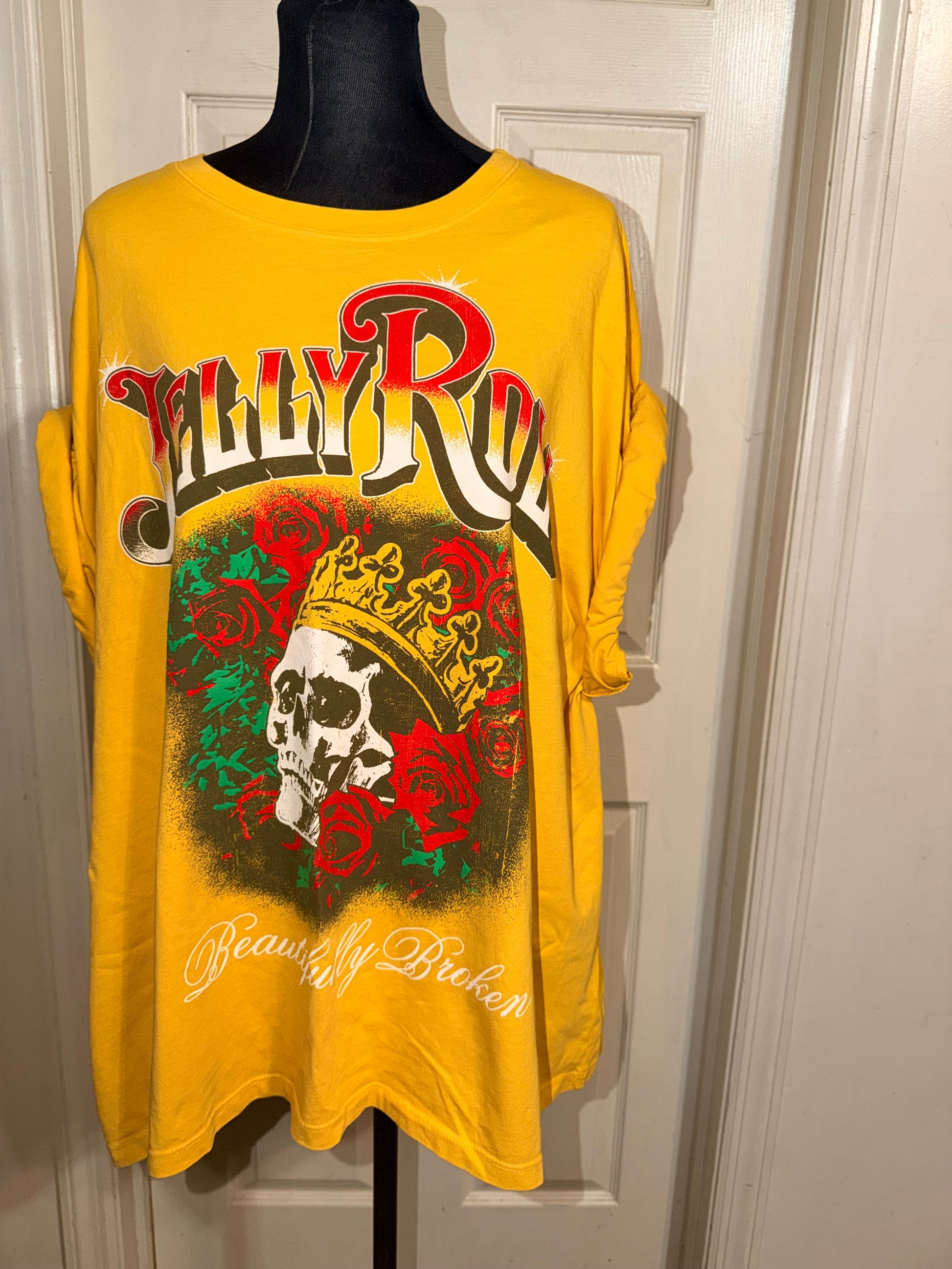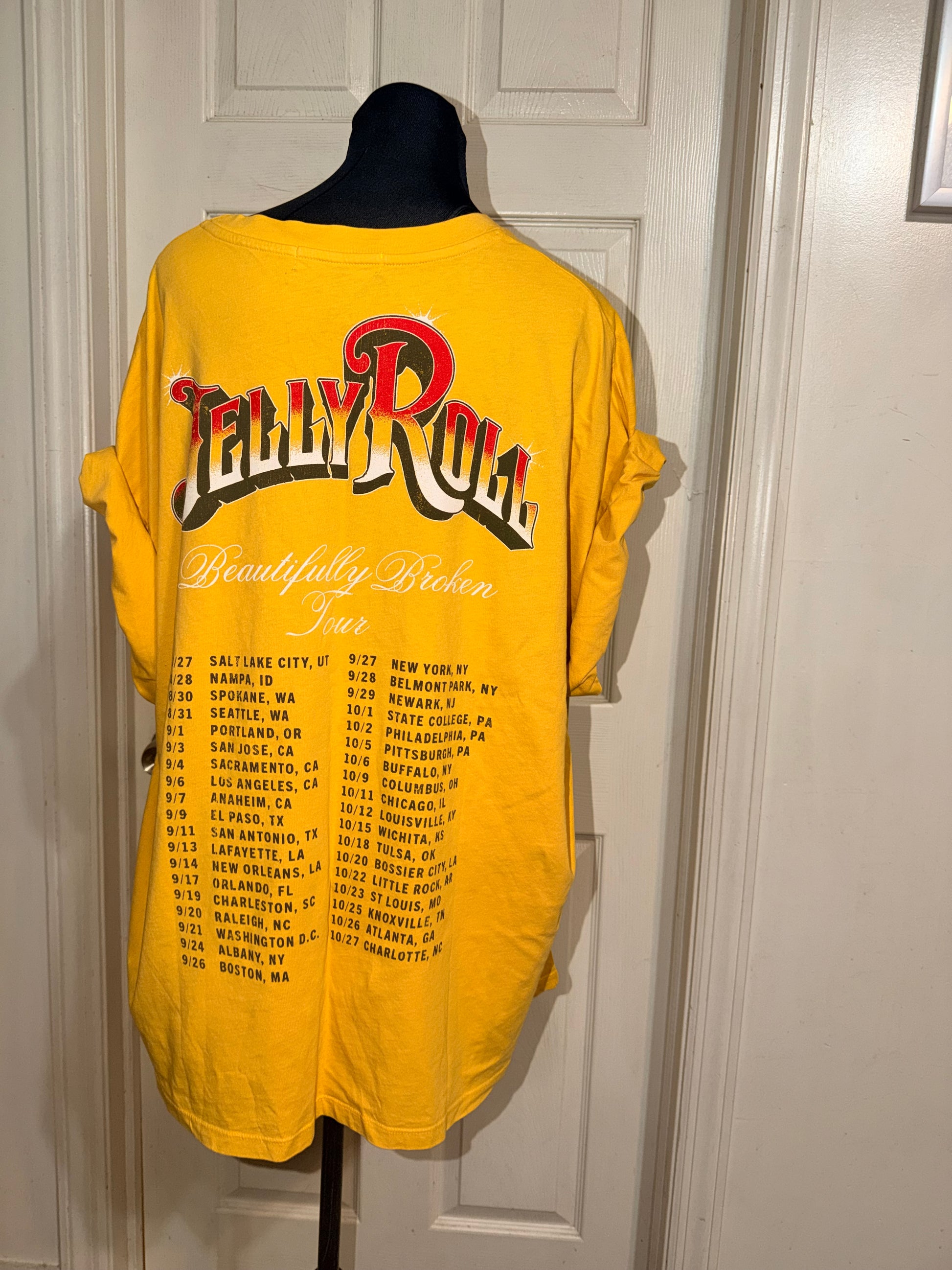 A gold Jelly Roll double sided Beautifully Broken tour tee with dates on the back. Oversized.
