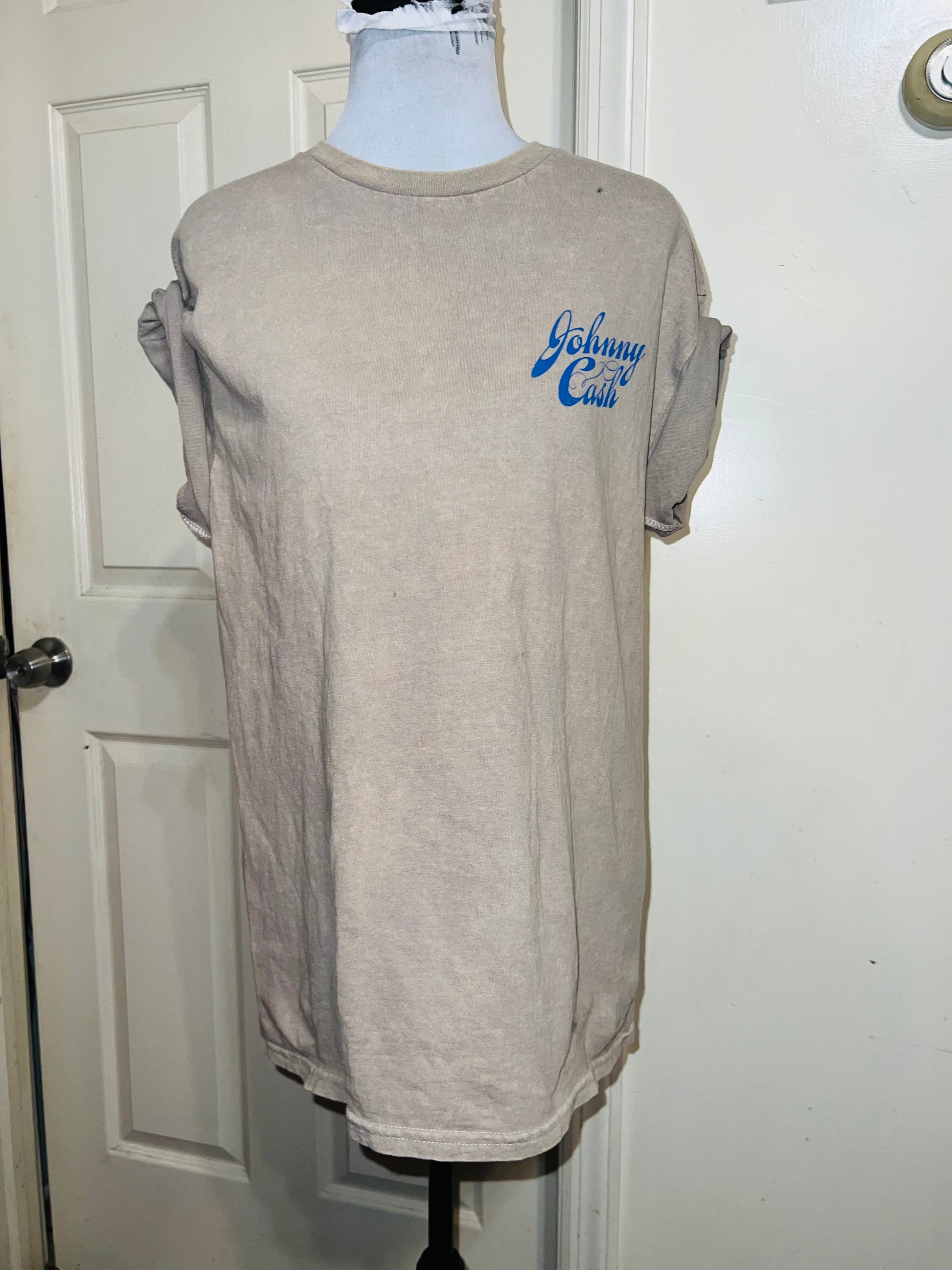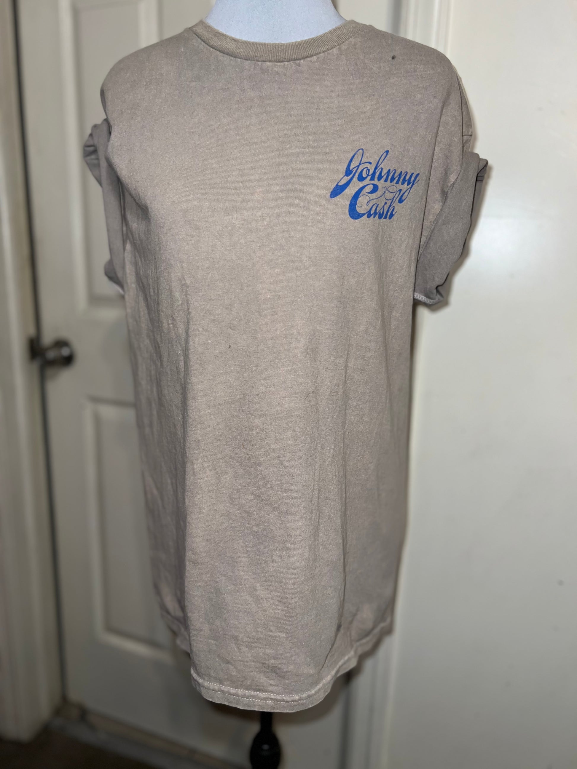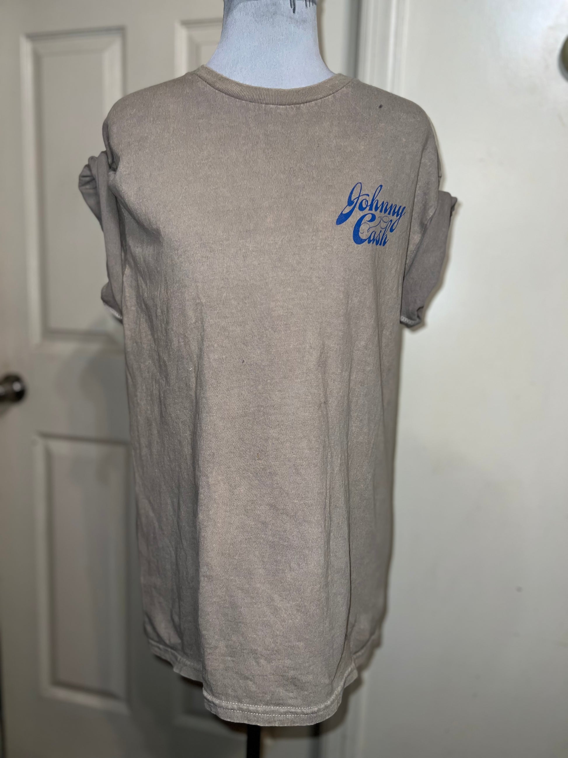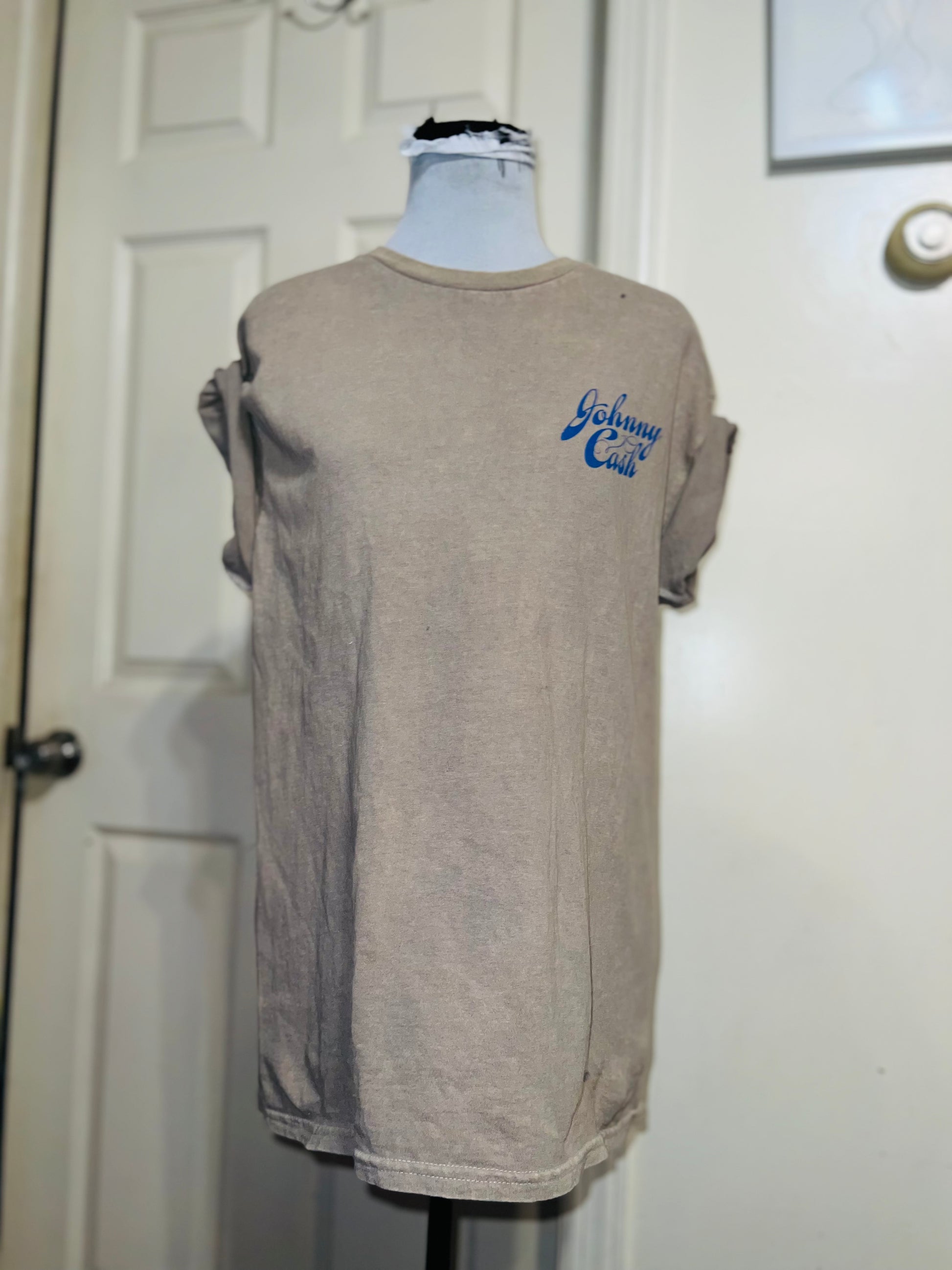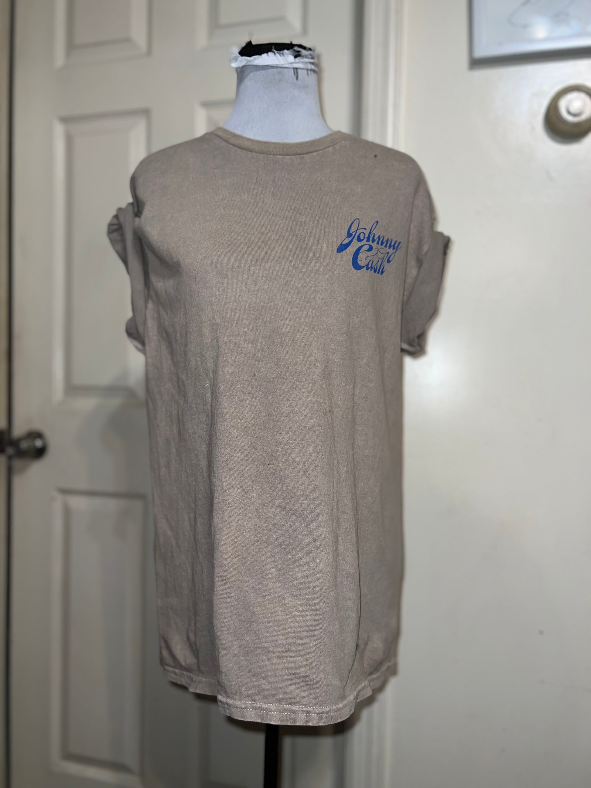 A sand colored mineral wash double sided Johnny Cash “Walk the Line” tee. Size M/L, oversized.