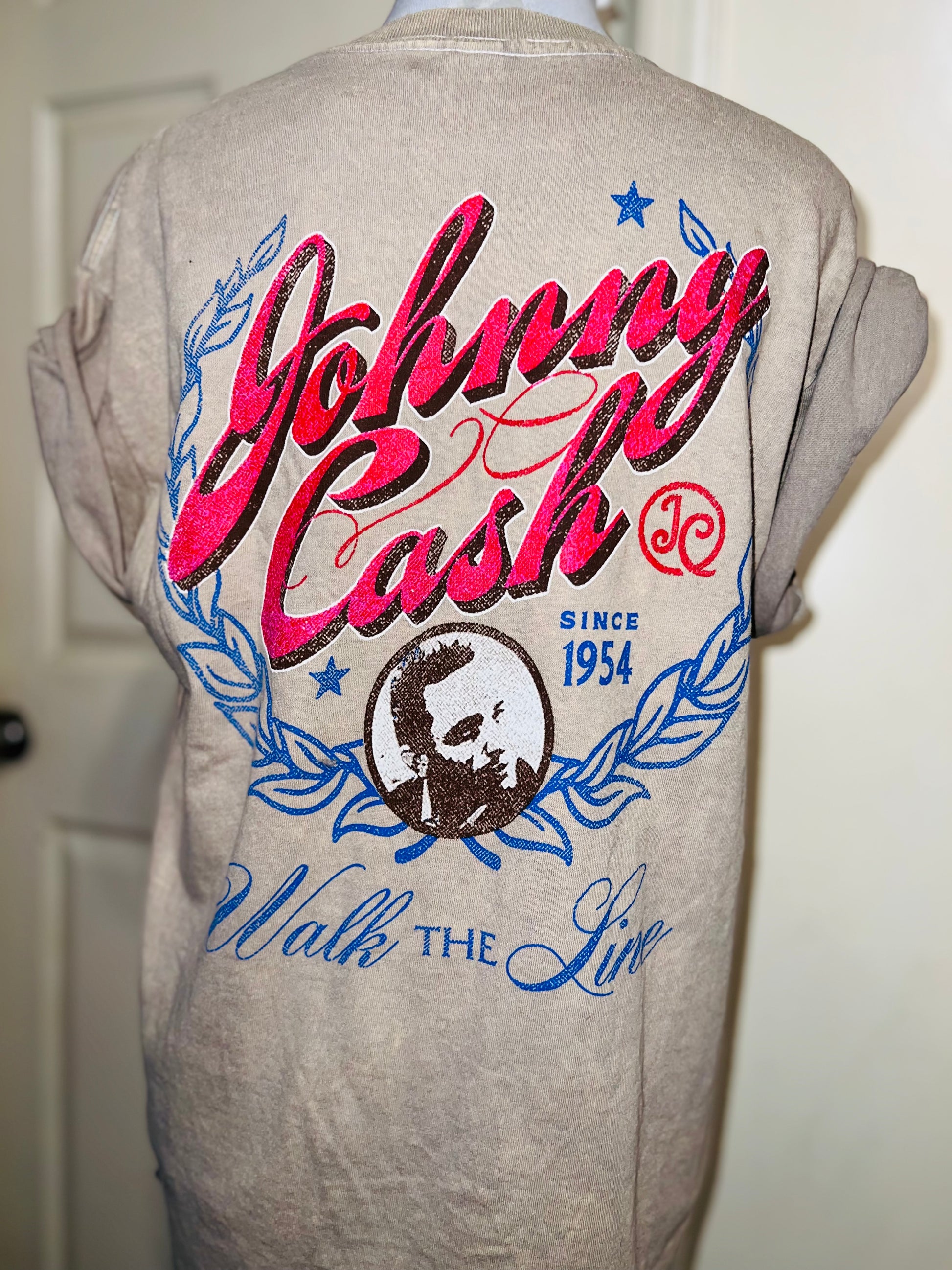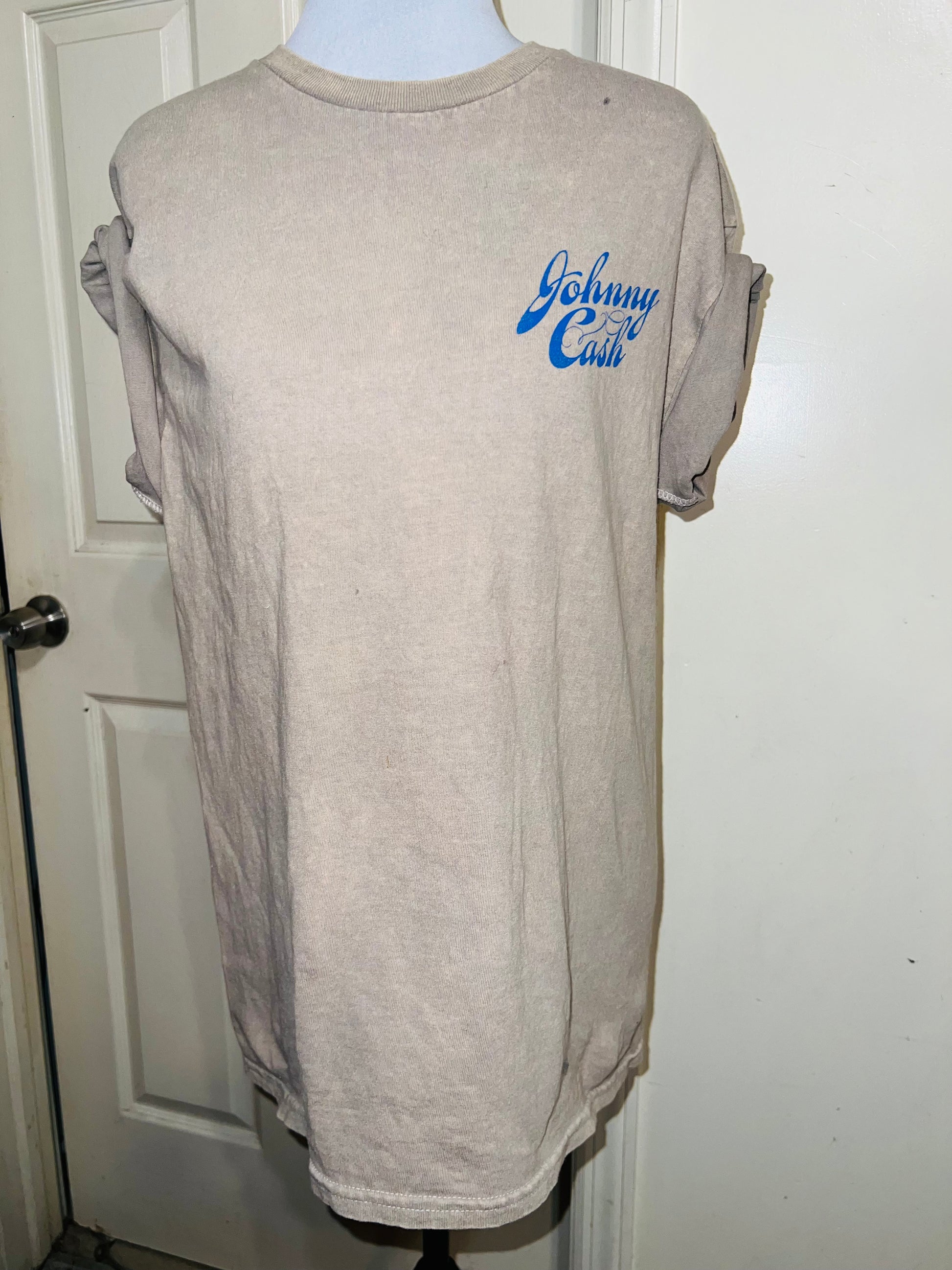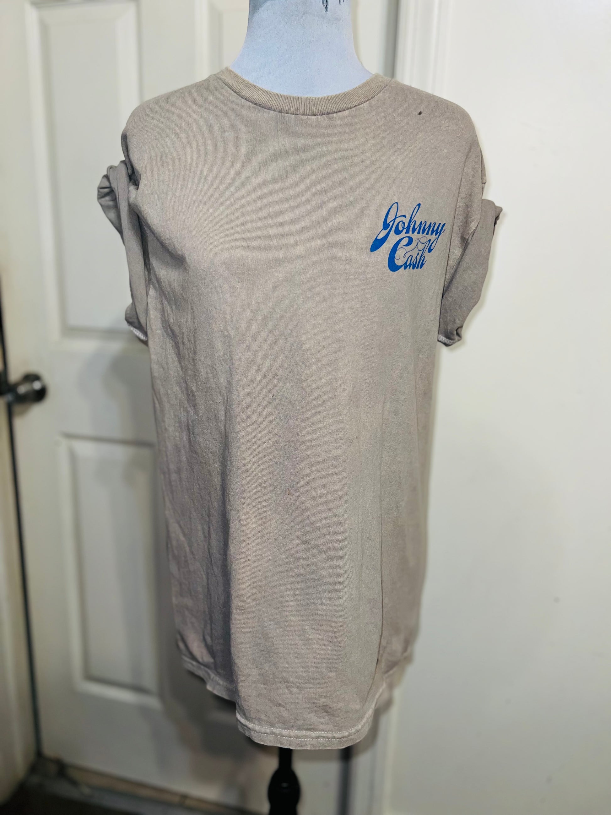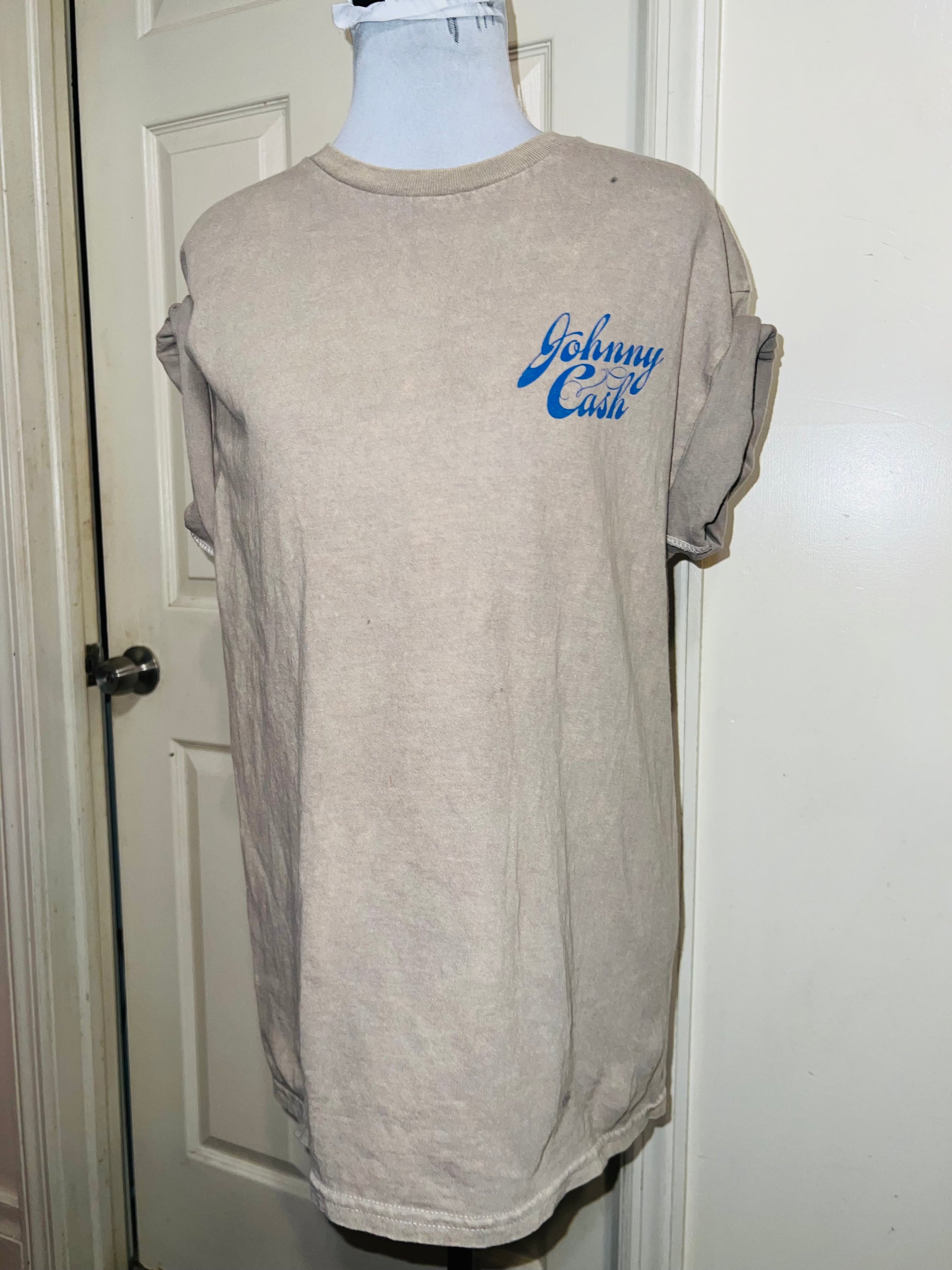 A sand colored mineral wash double sided Johnny Cash “Walk the Line” tee. Size M/L, oversized.