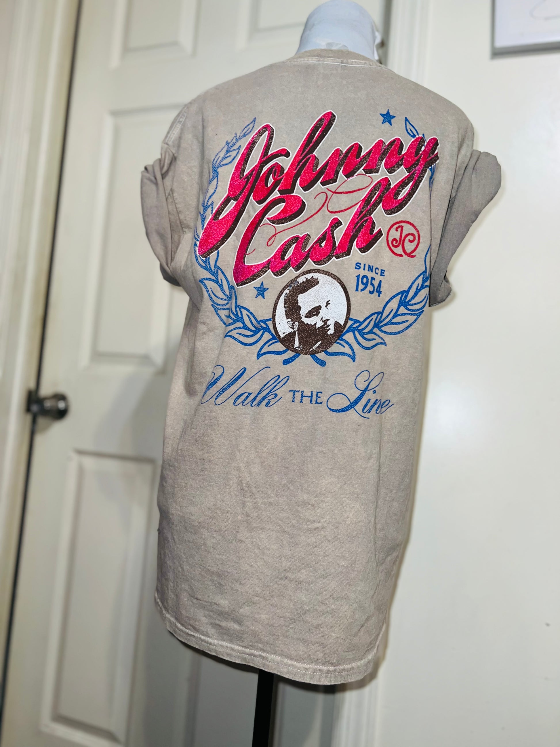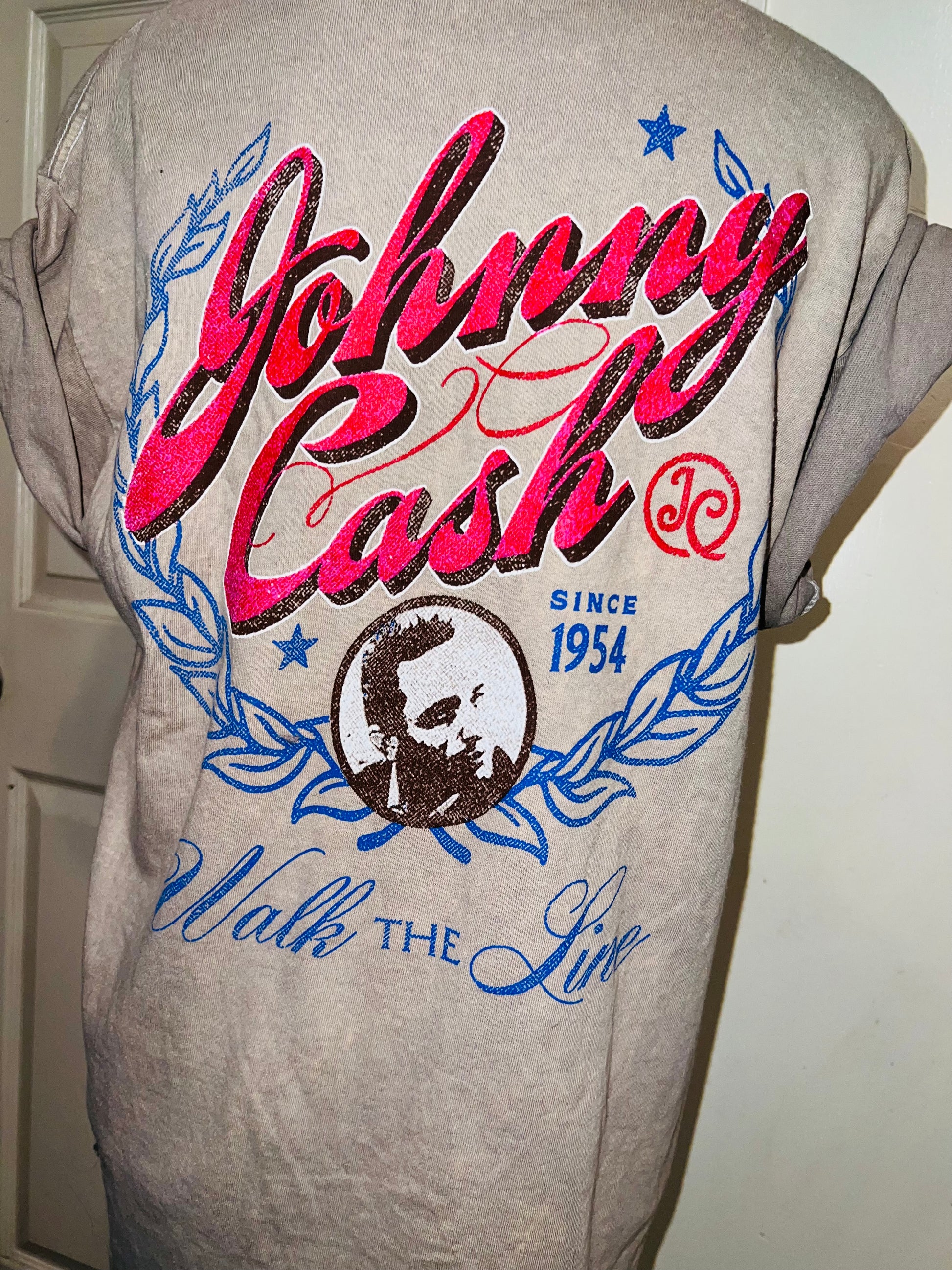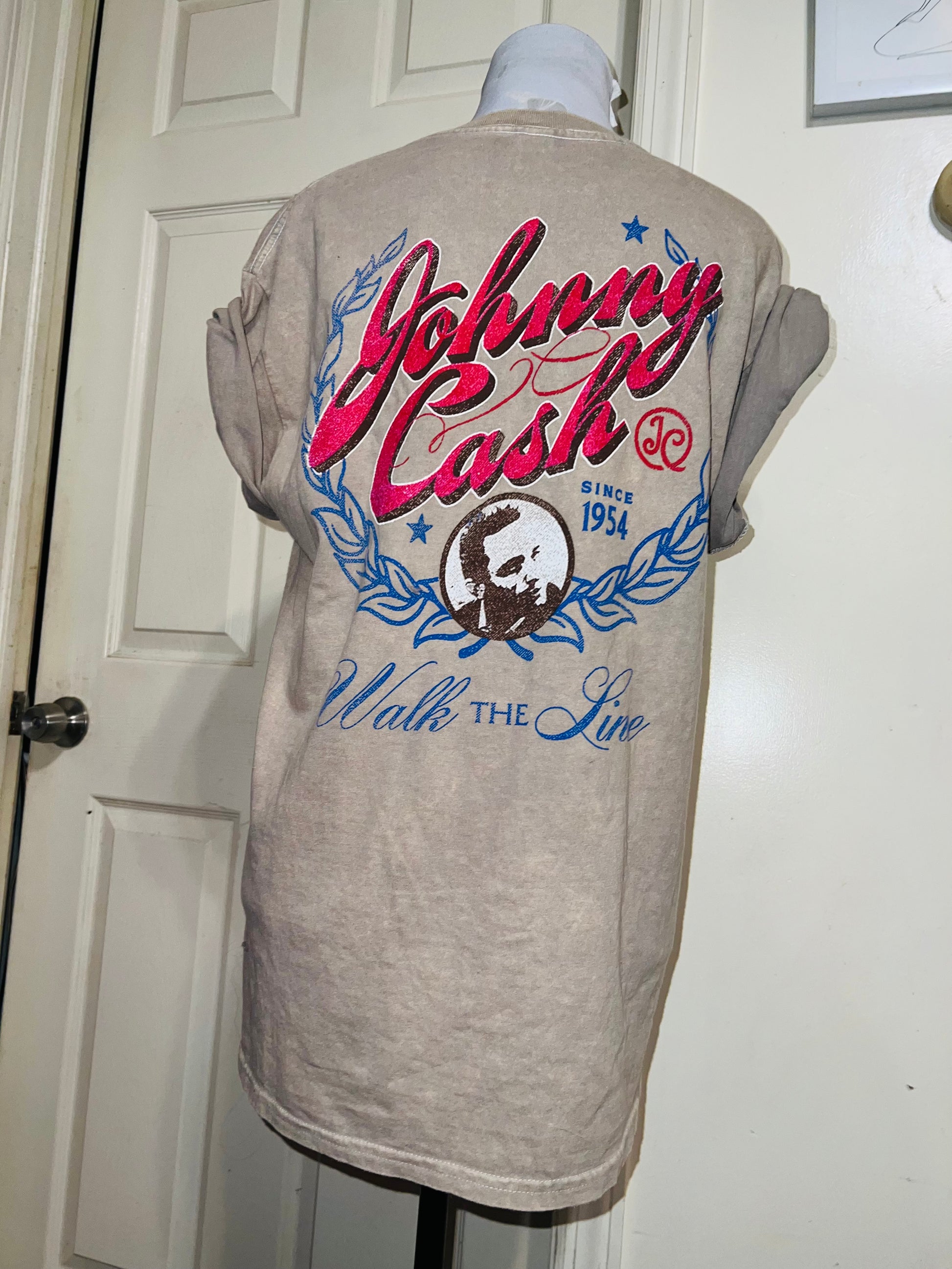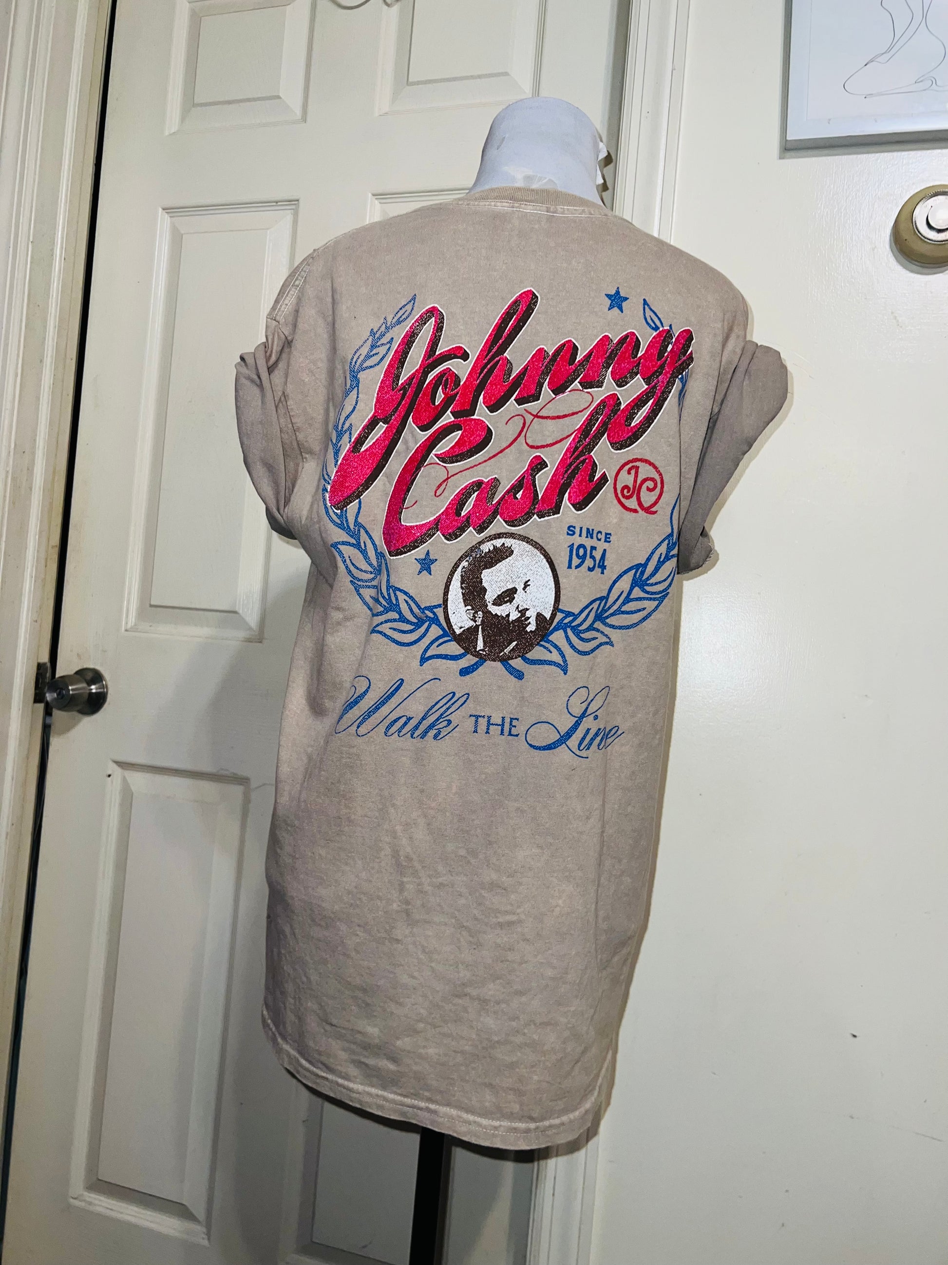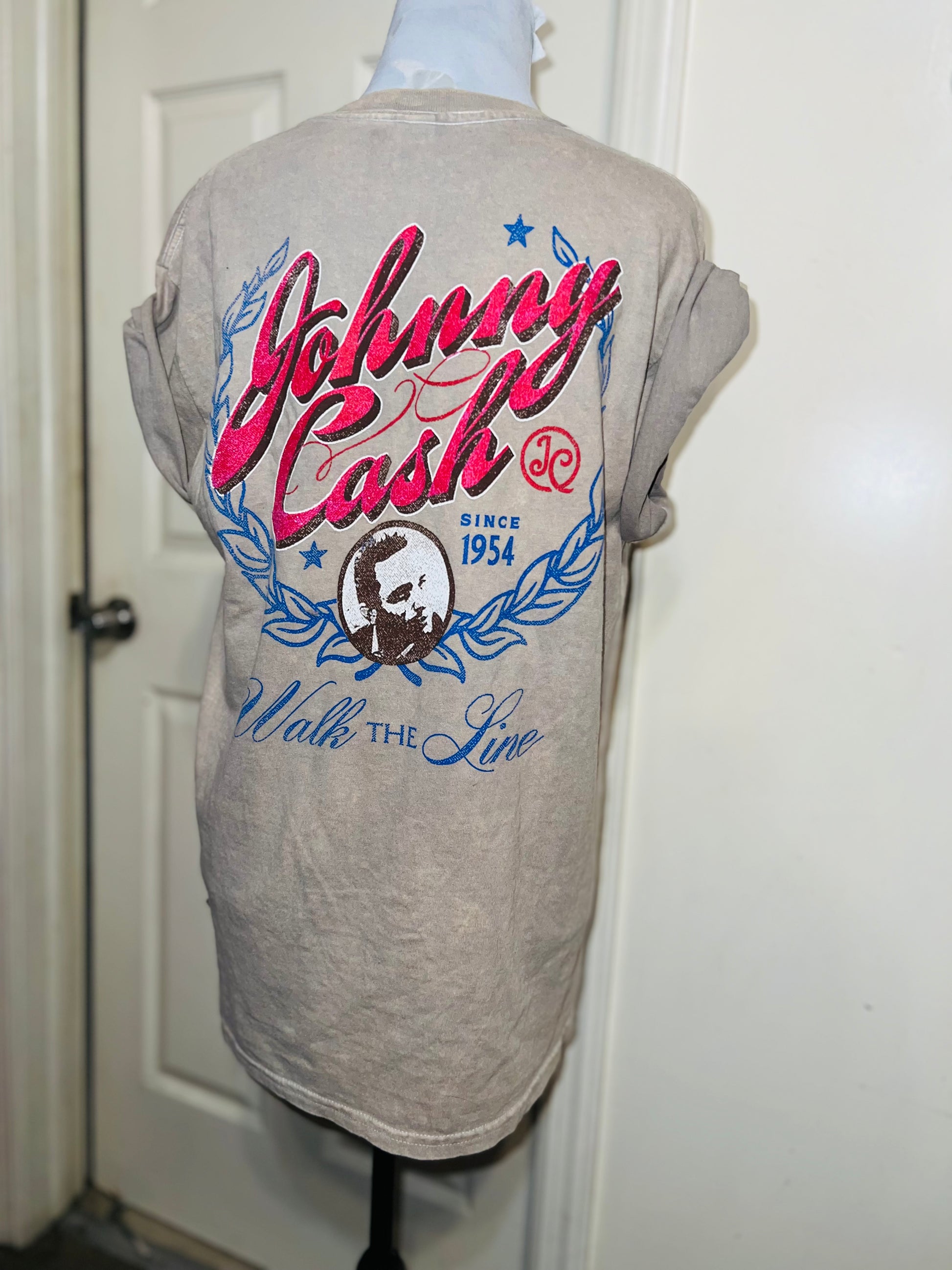 A sand colored mineral wash double sided Johnny Cash “Walk the Line” tee. Size M/L, oversized.