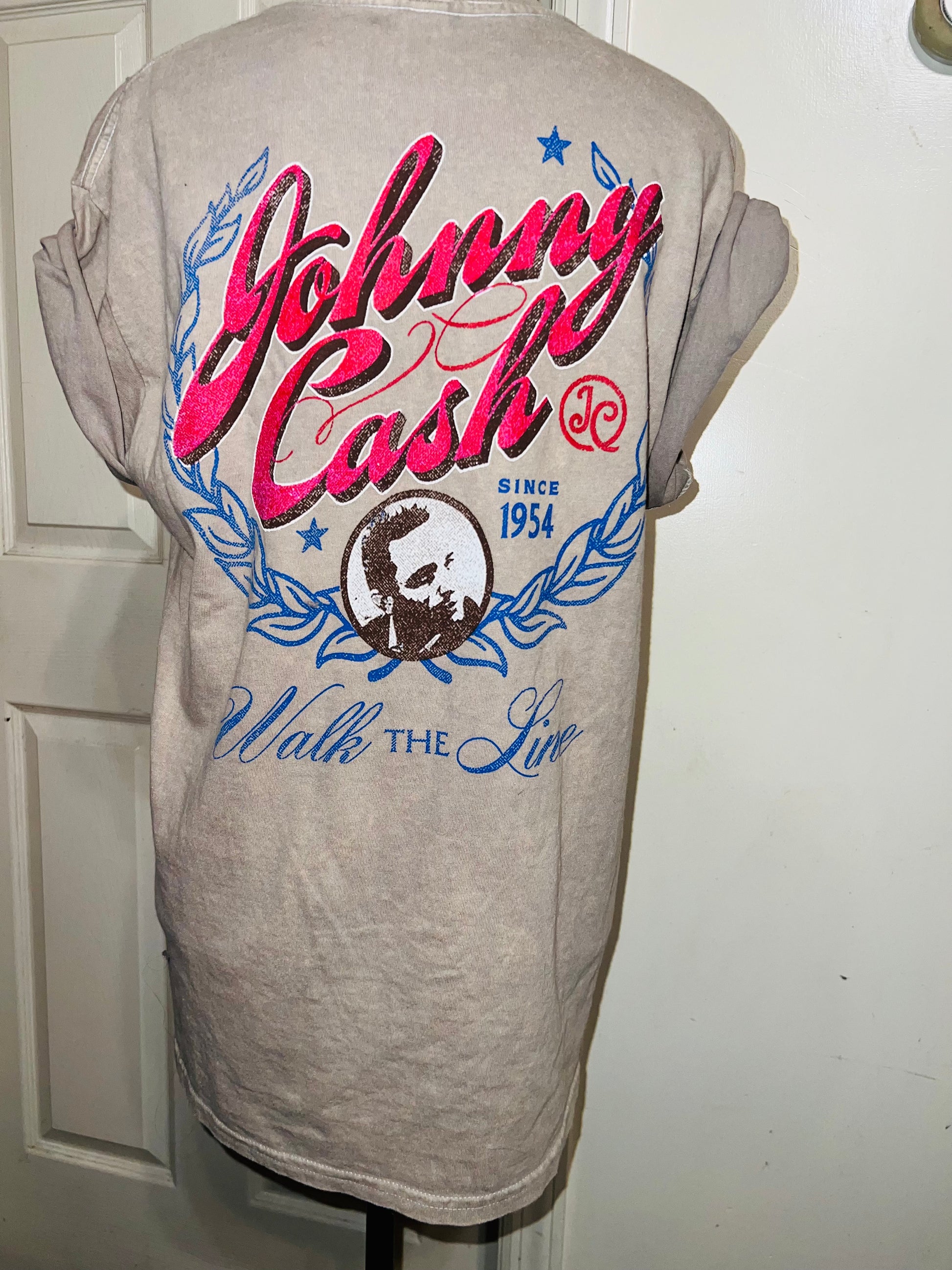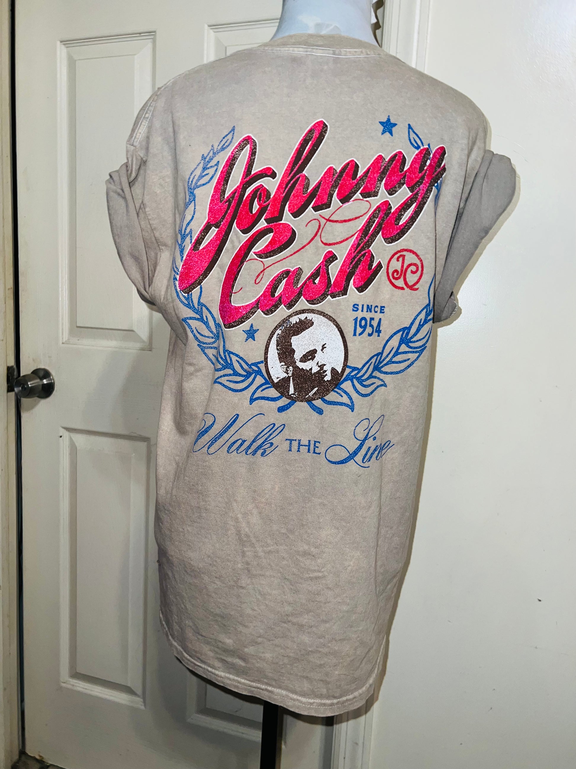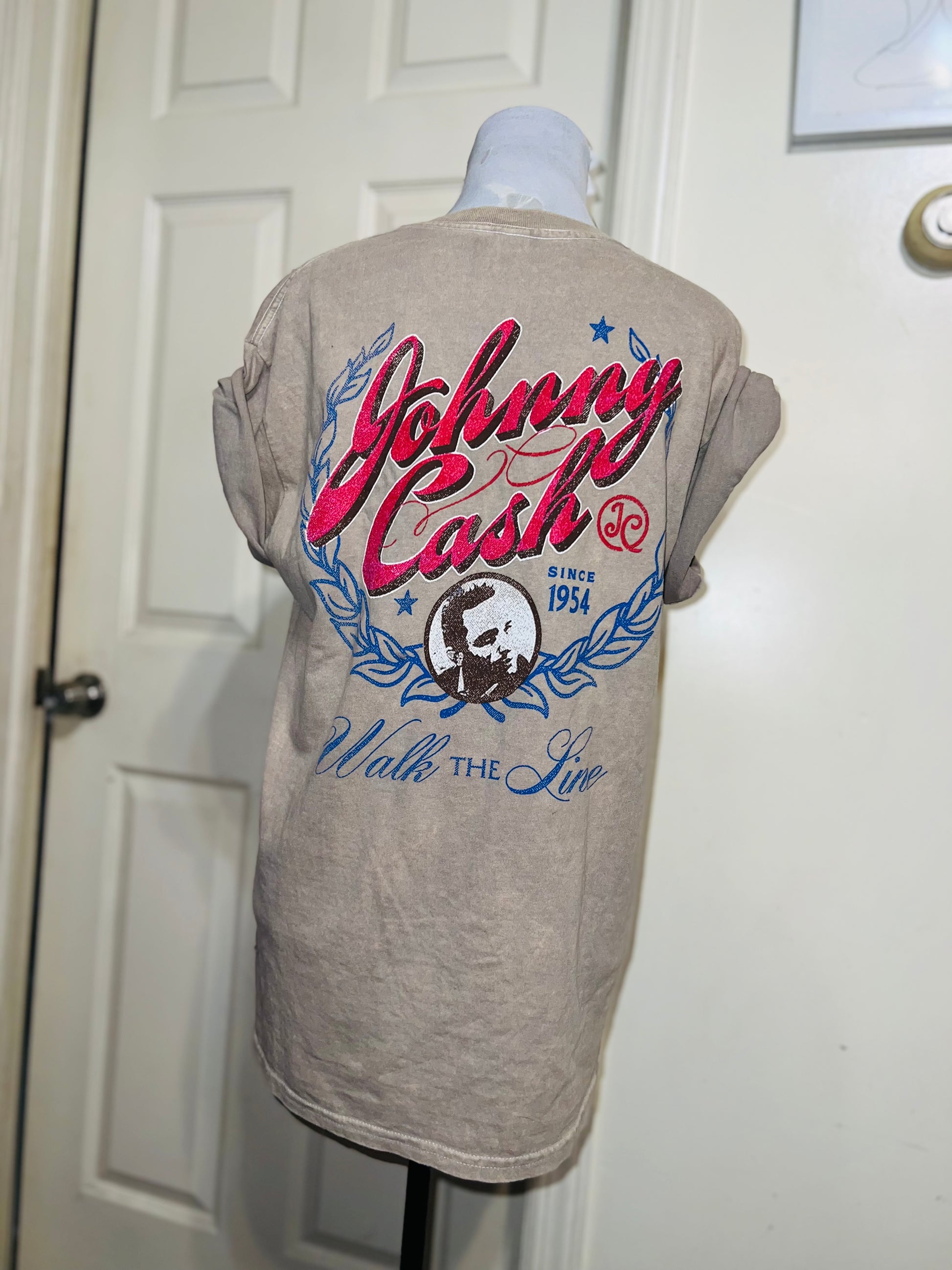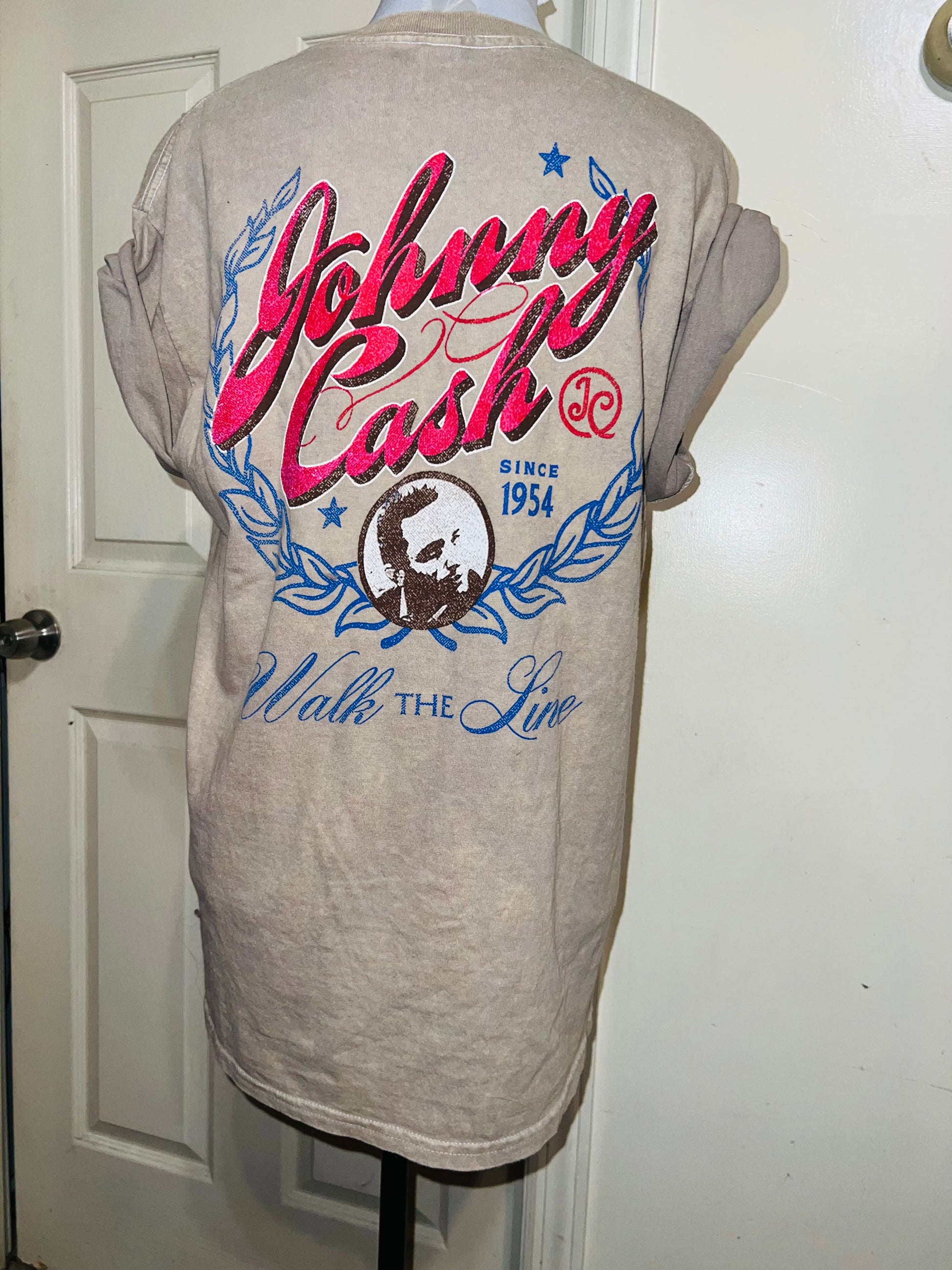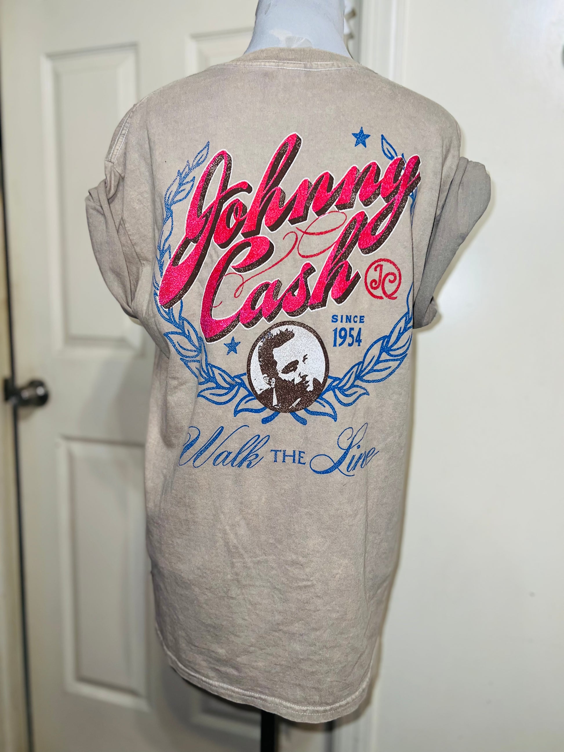 A sand colored mineral wash double sided Johnny Cash “Walk the Line” tee. Size M/L, oversized.