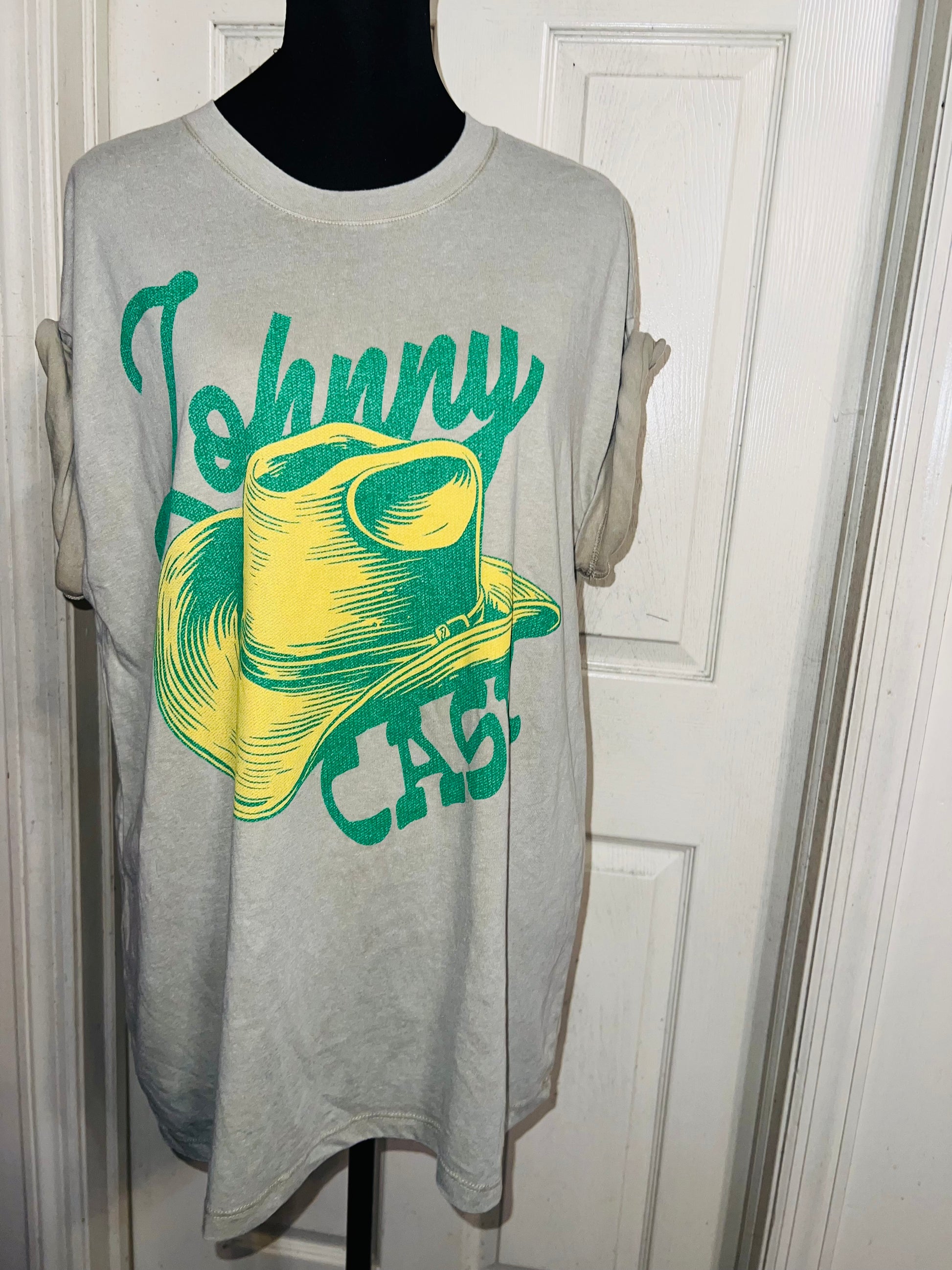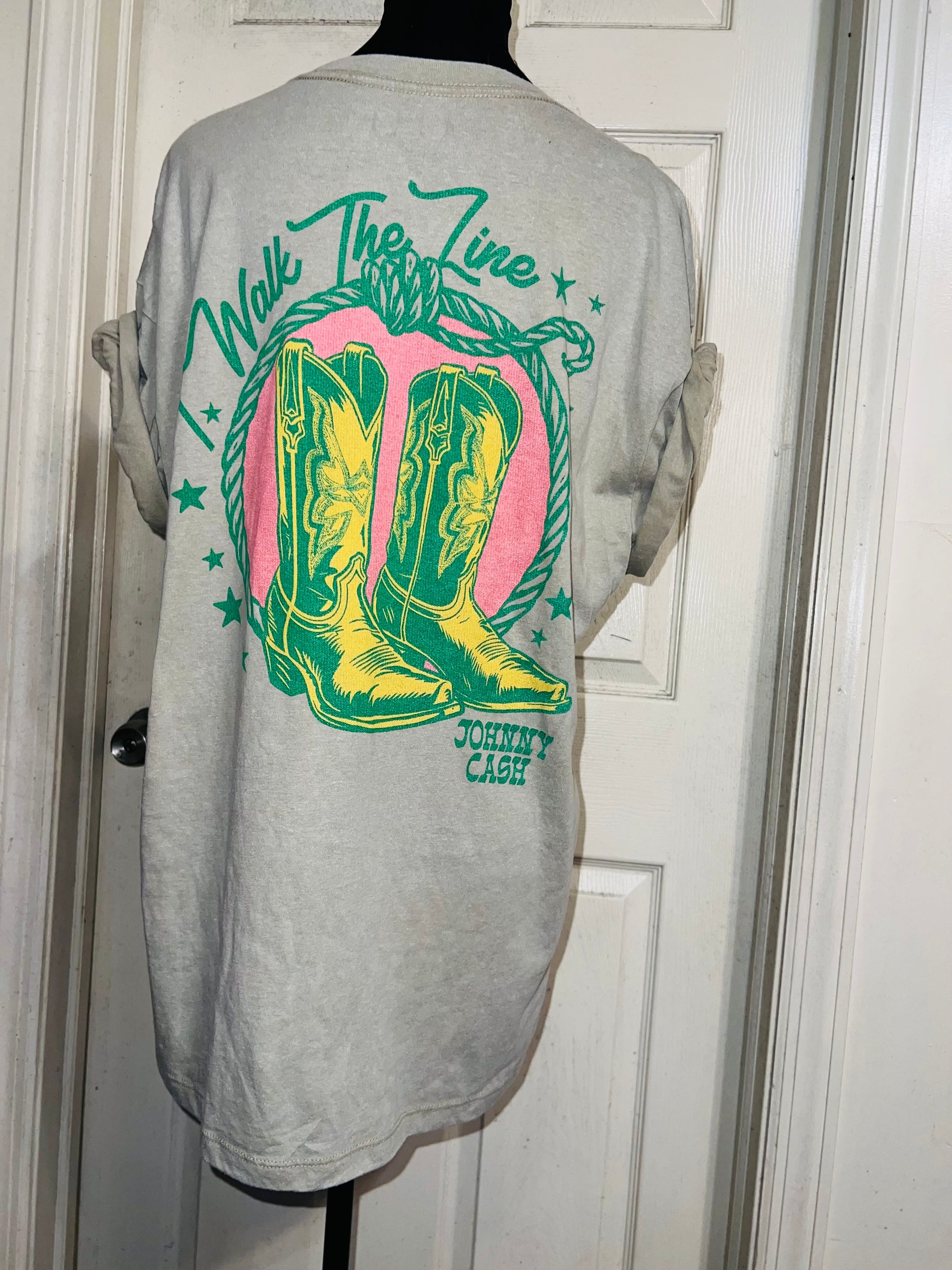 A beige Johnny Cash double sided tee with beautiful contrast colors and Walk the Line on the back. Oversized.