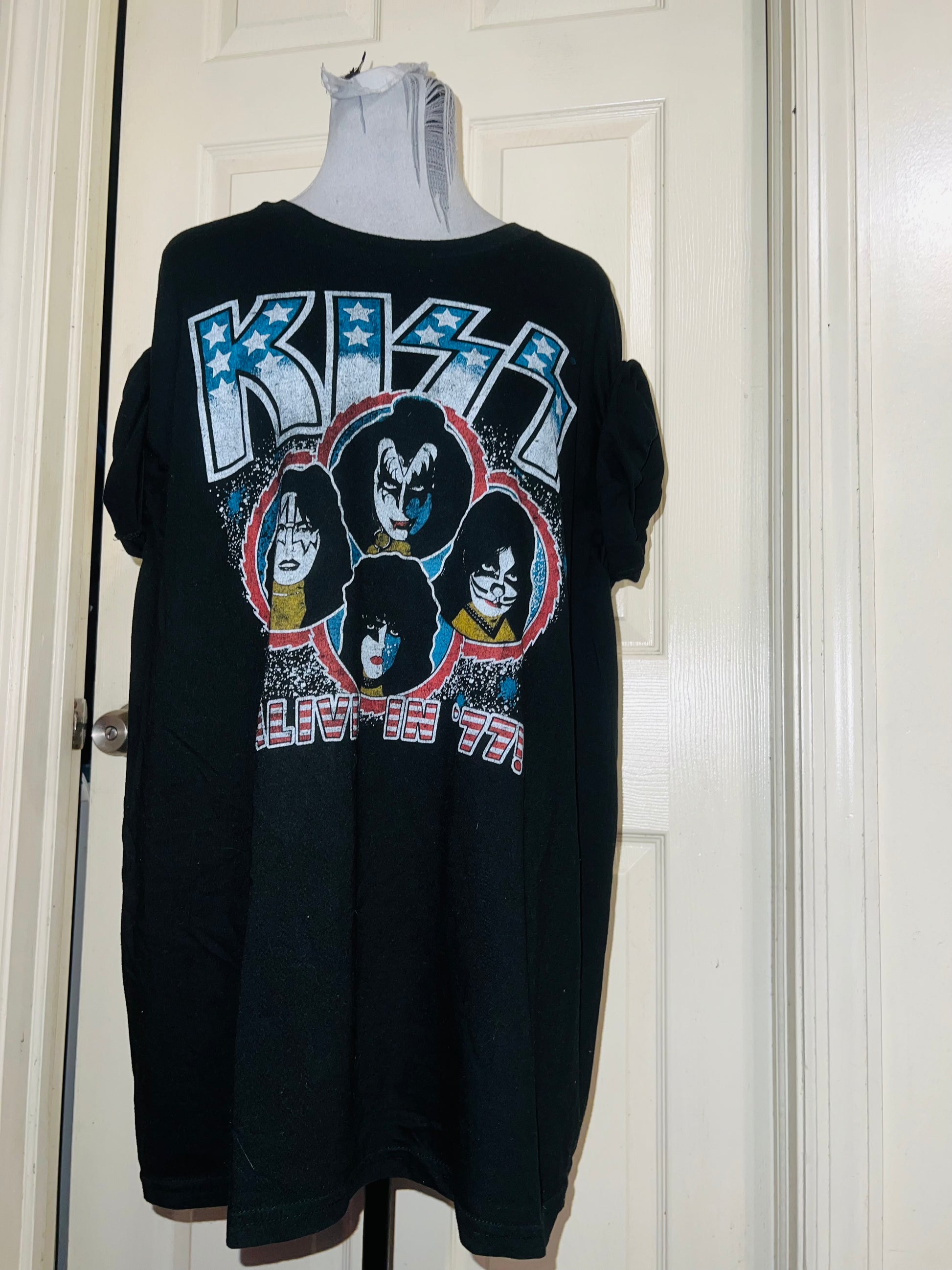 A cool thrift store find, a black KISS tee “Alive in ‘77!” Size XL, oversized.