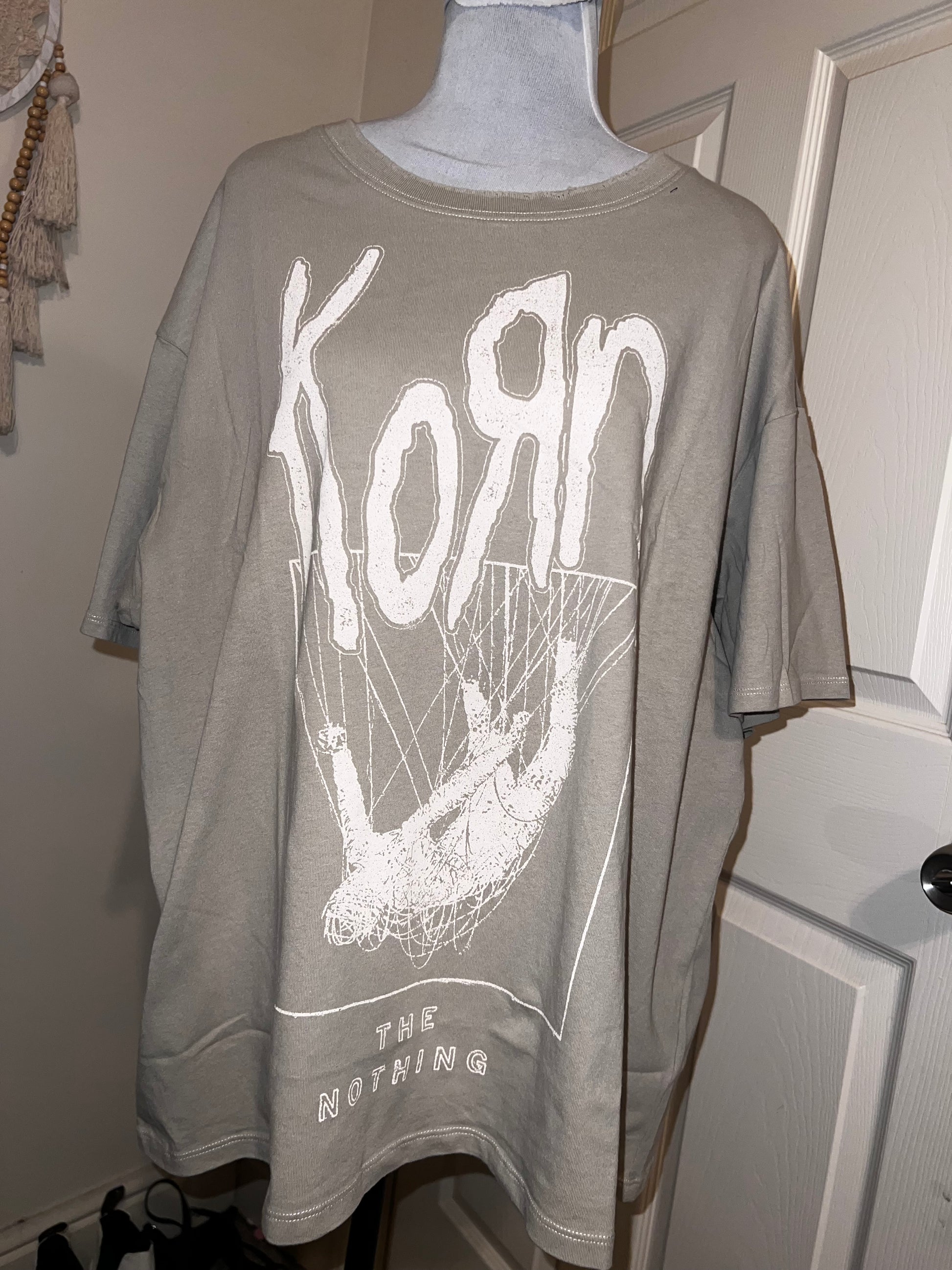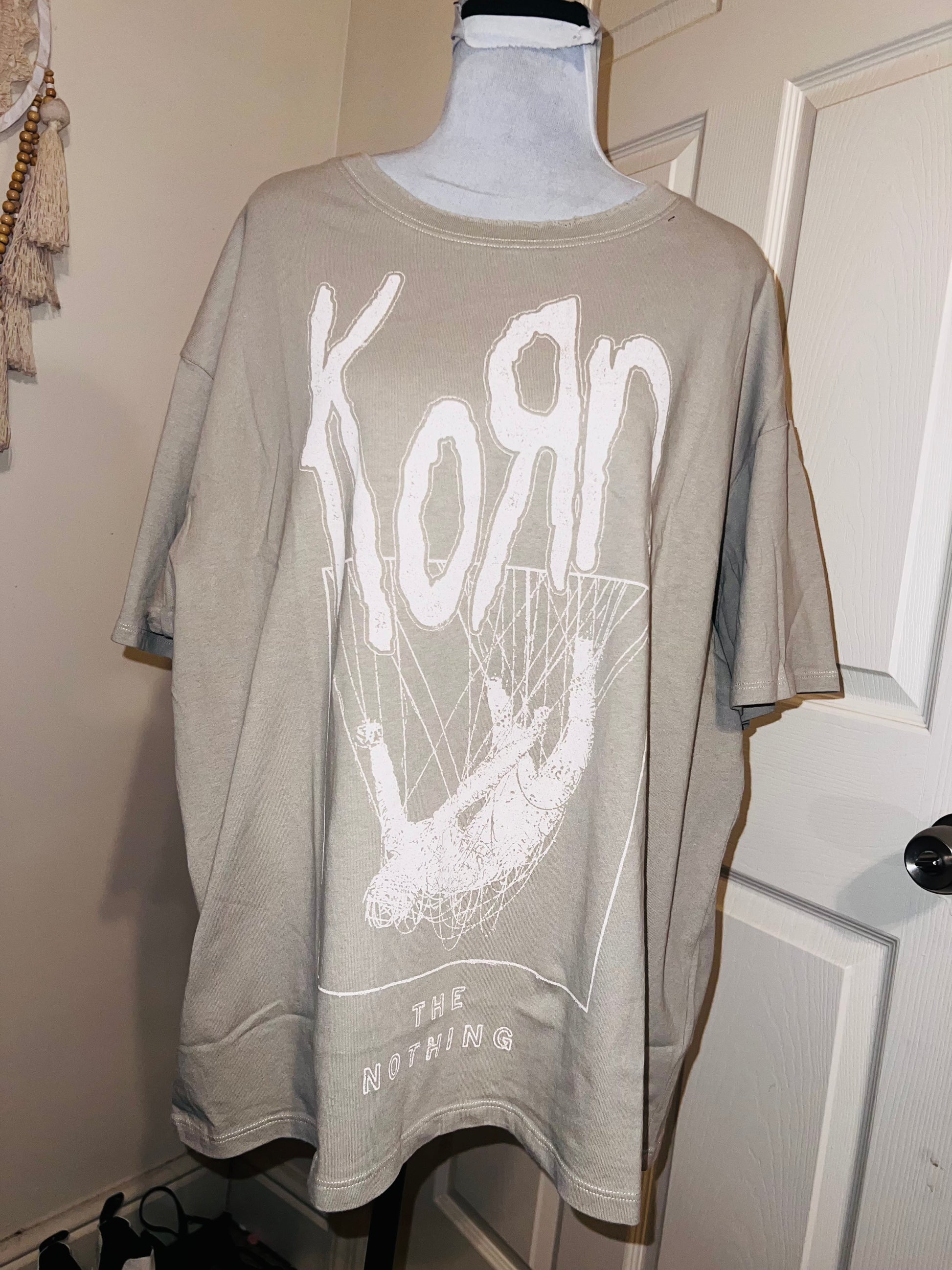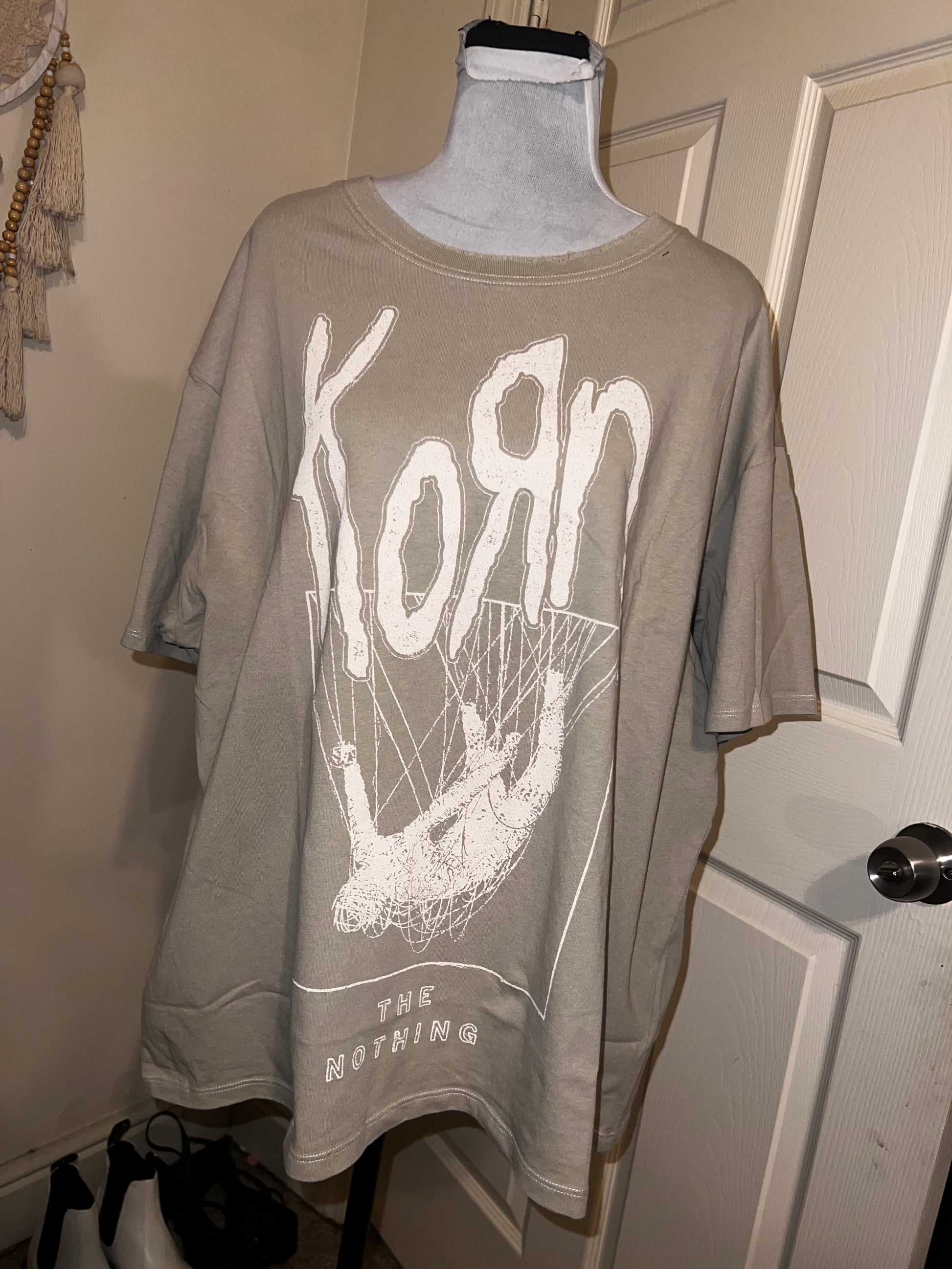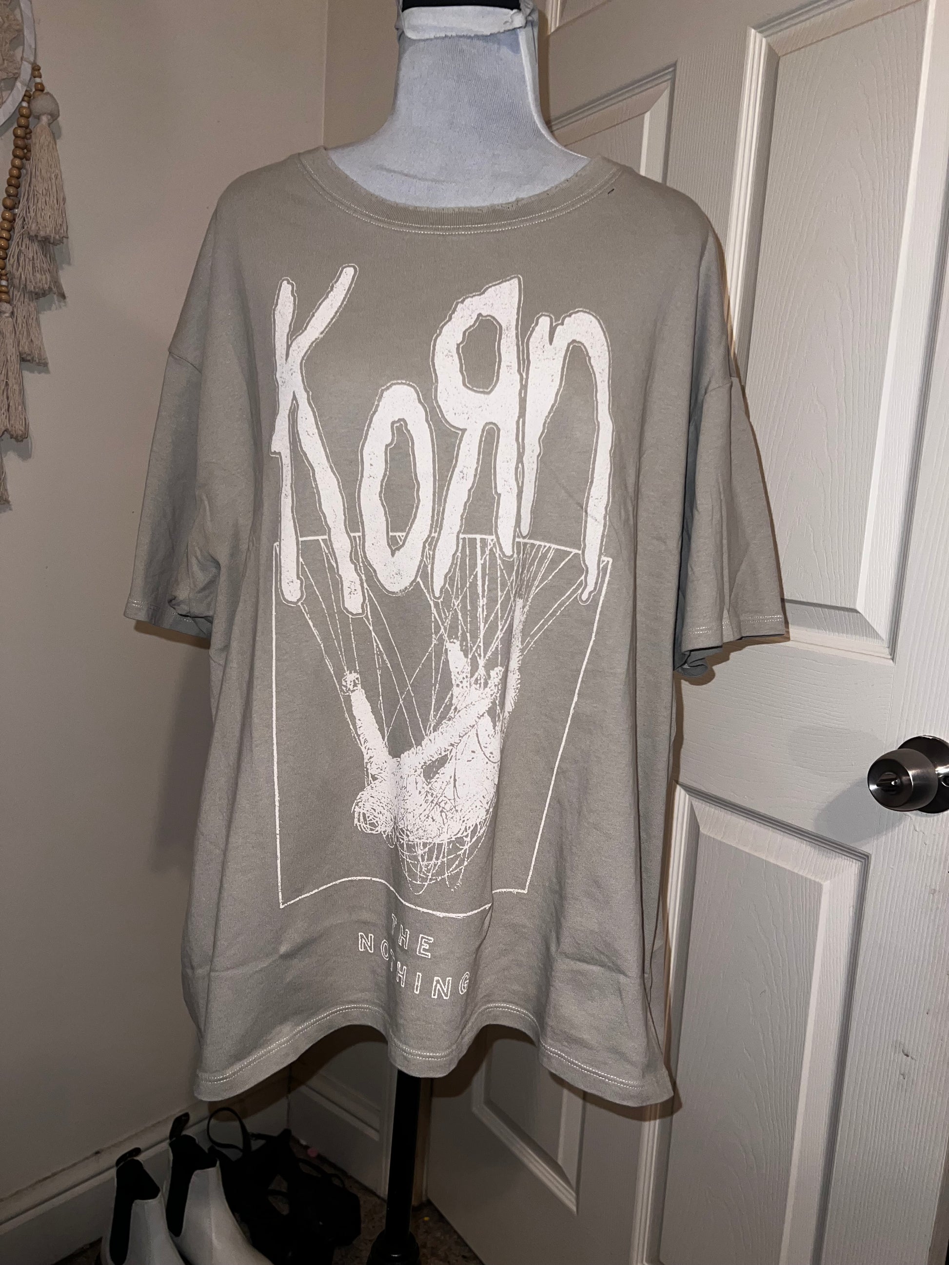 Such a pretty neutral light green tee with the iconic Korn font with a cool graphic and “Like Nothing” underneath. Fits so cute oversized, size XL.