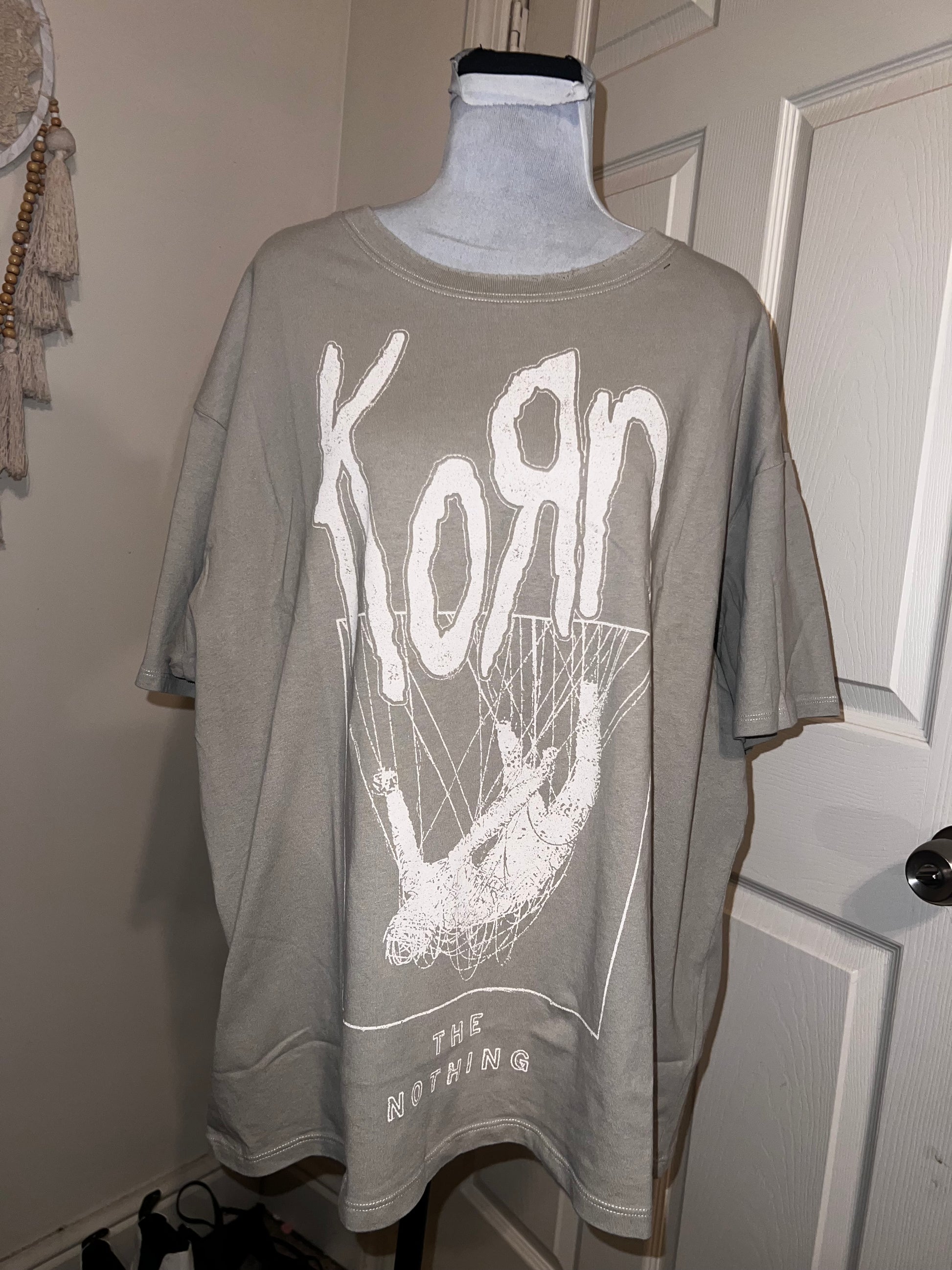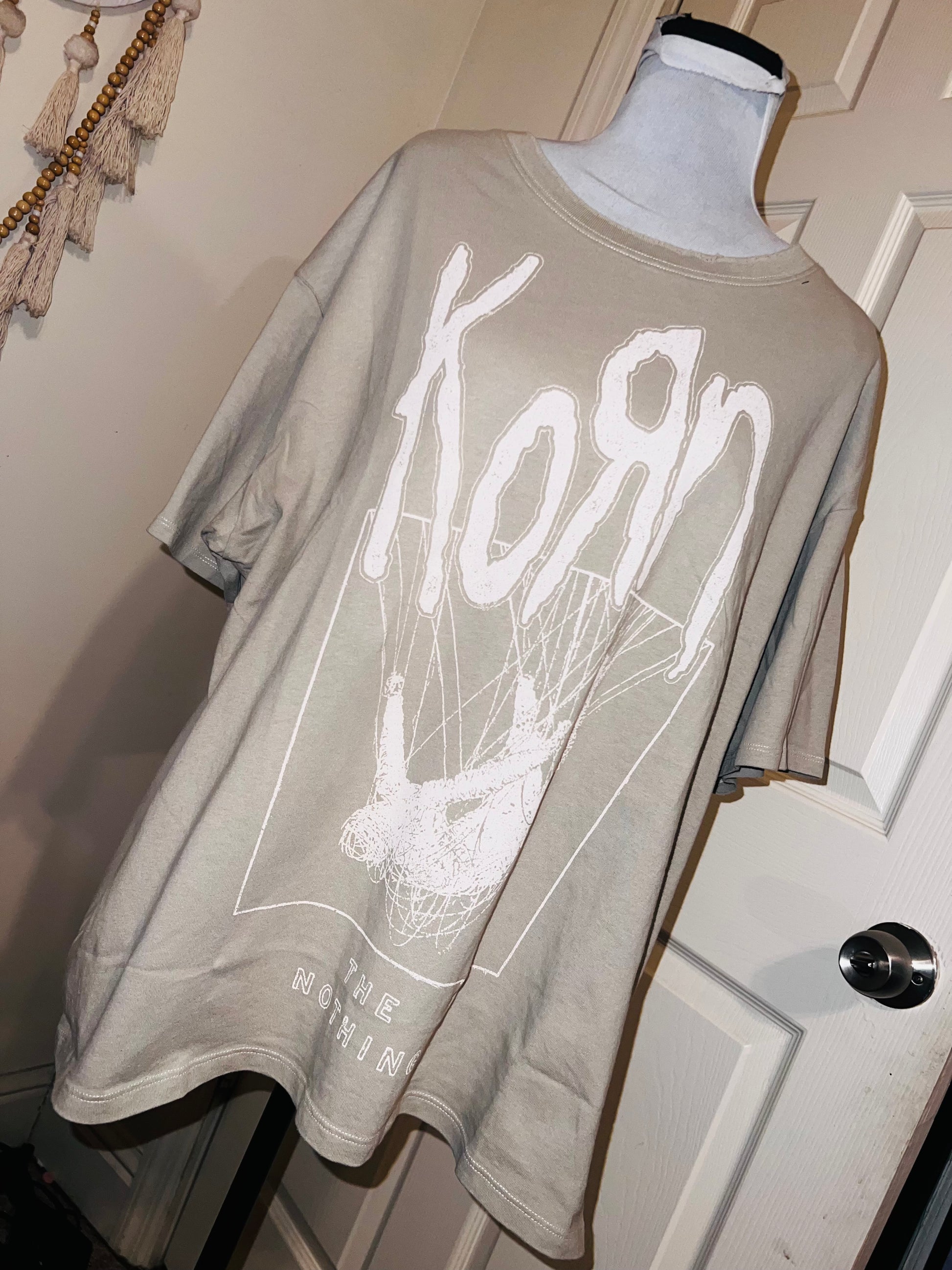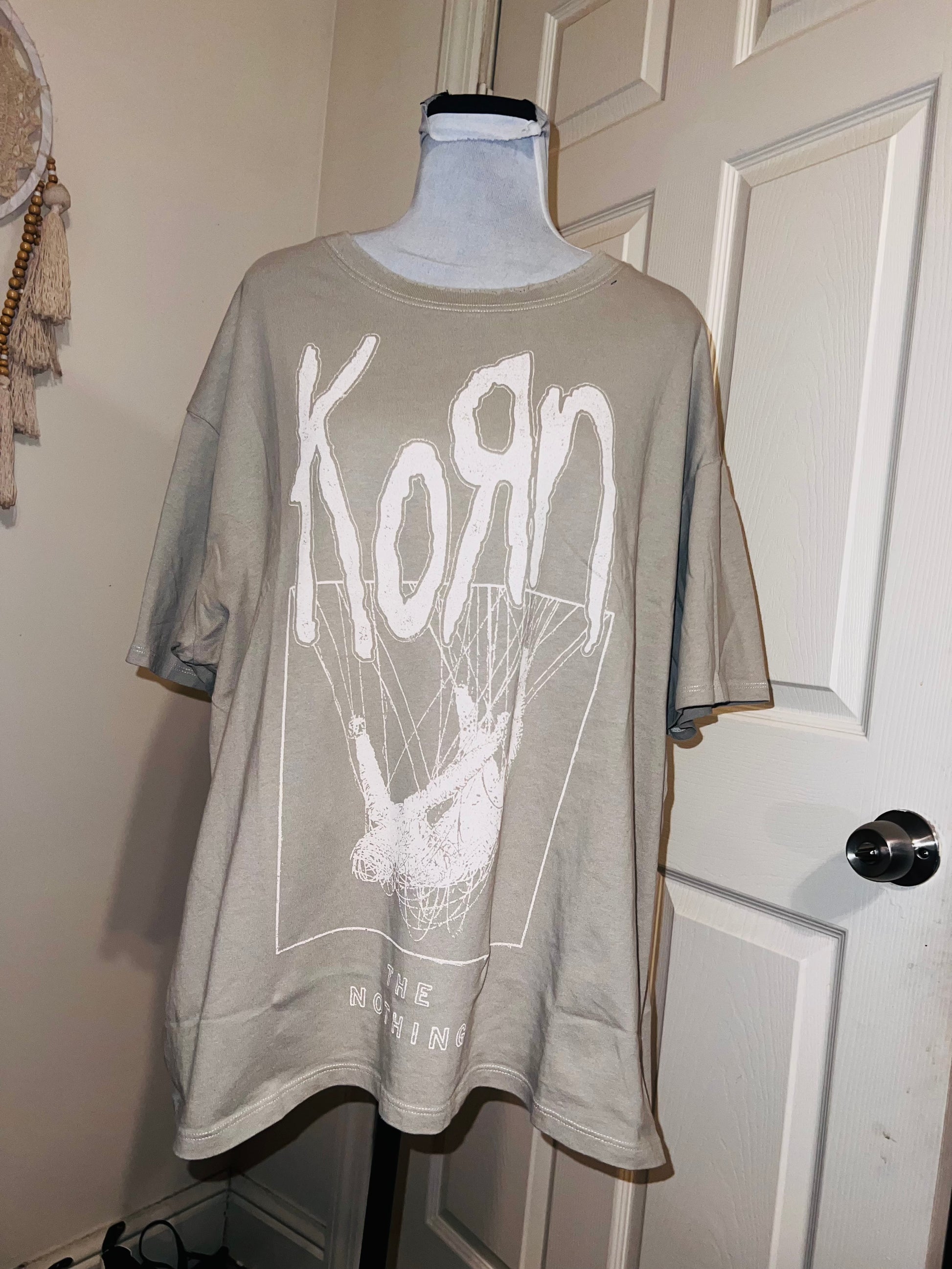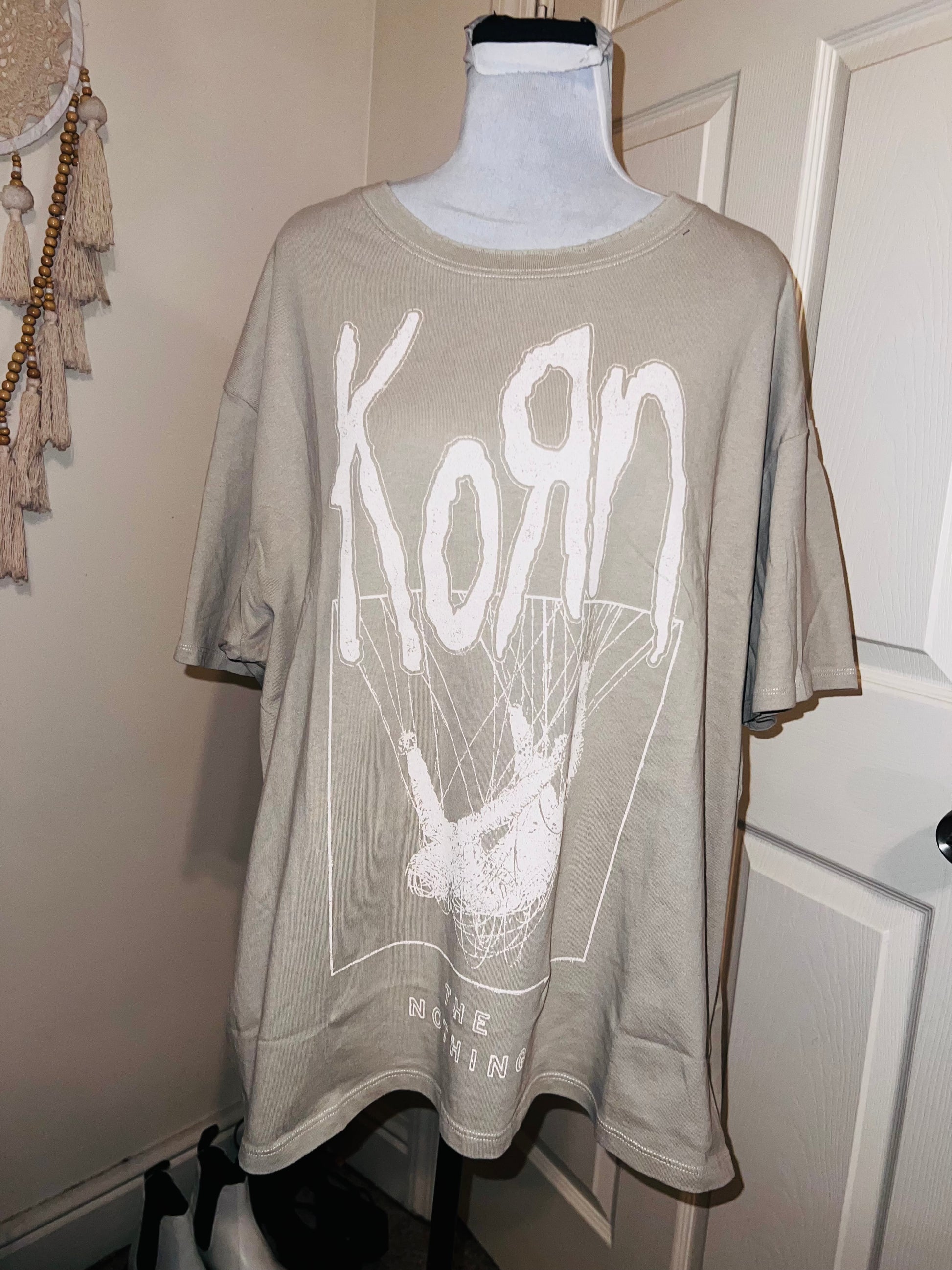 Such a pretty neutral light green tee with the iconic Korn font with a cool graphic and “Like Nothing” underneath. Fits so cute oversized, size XL.