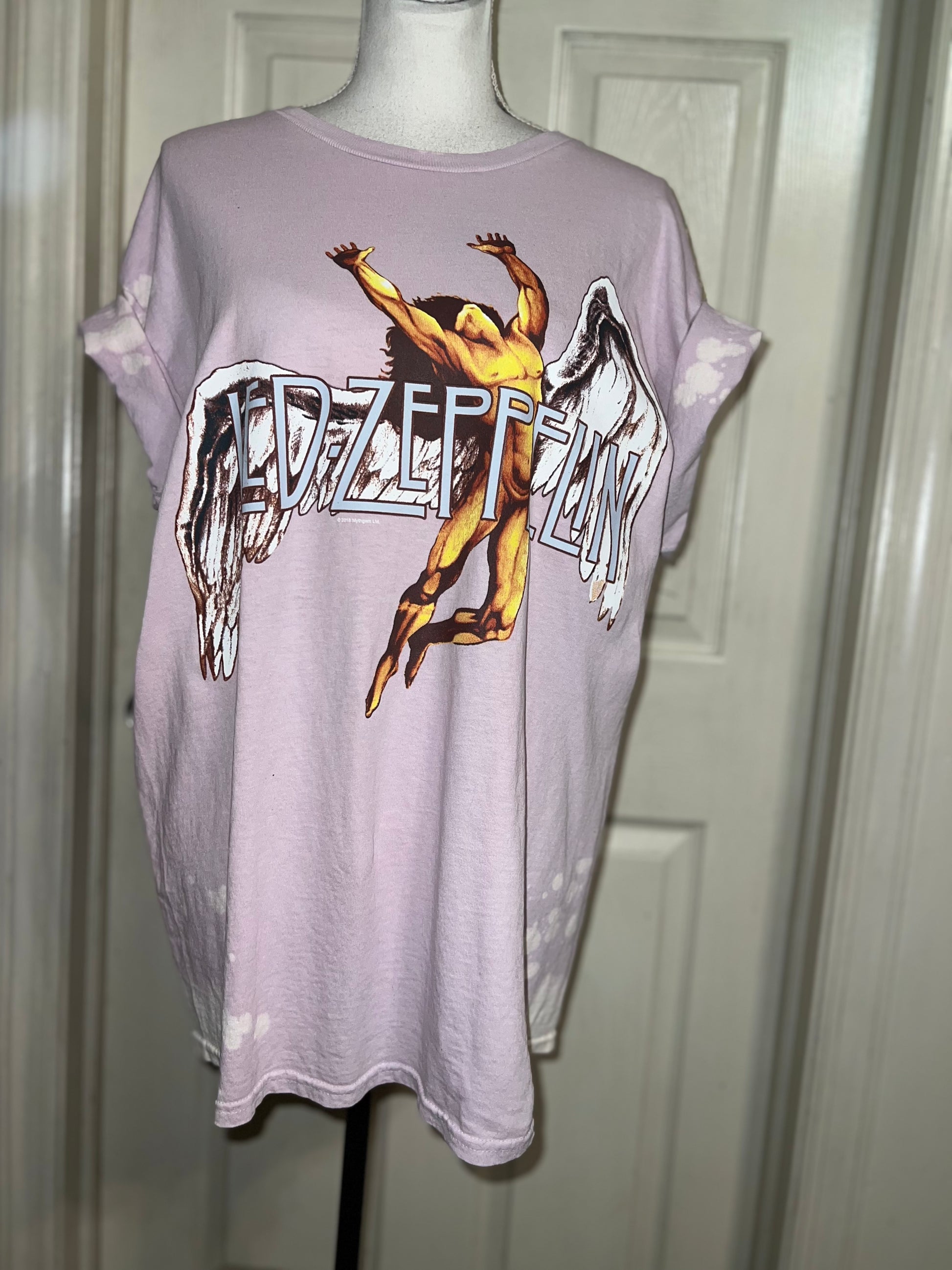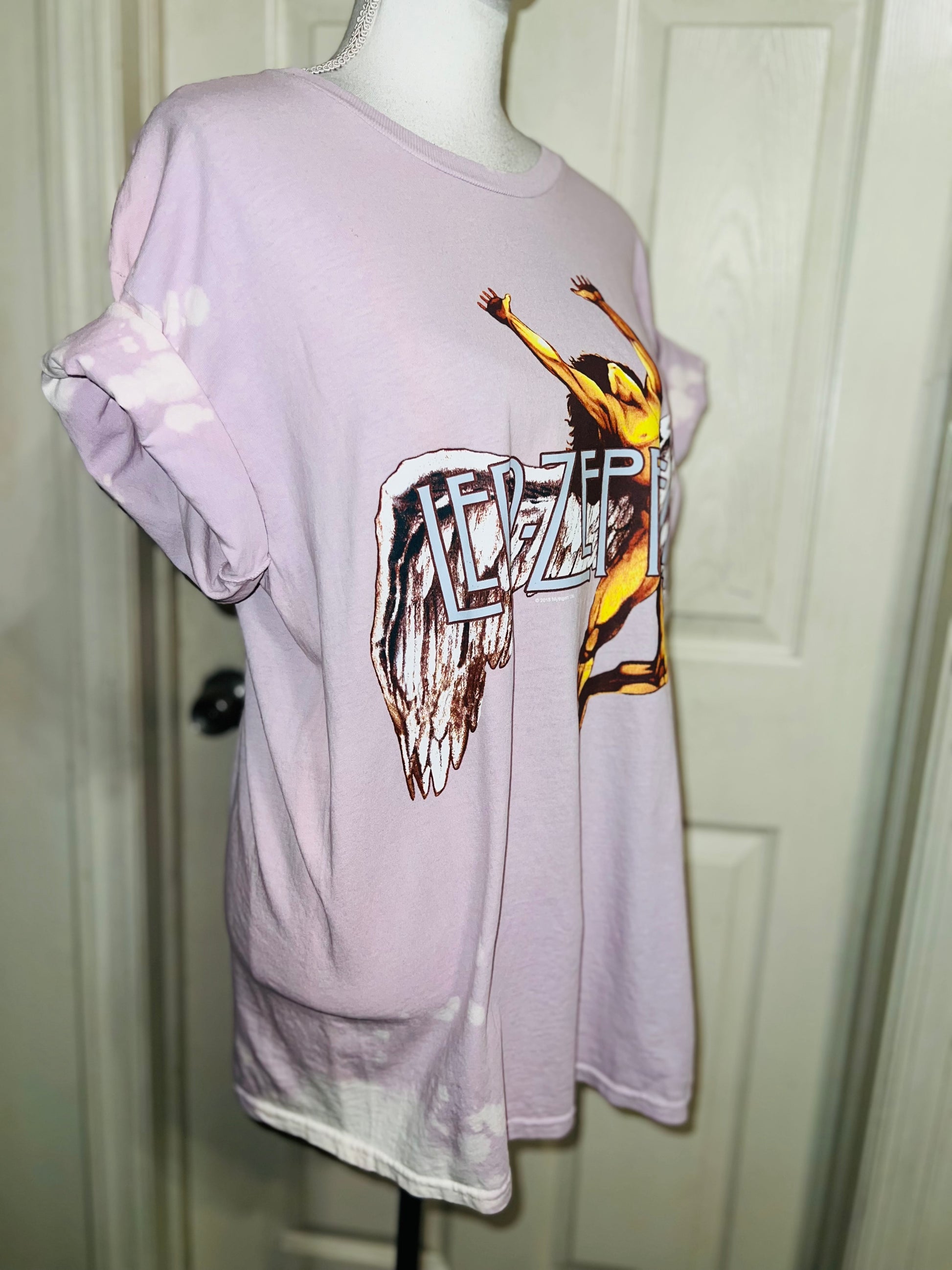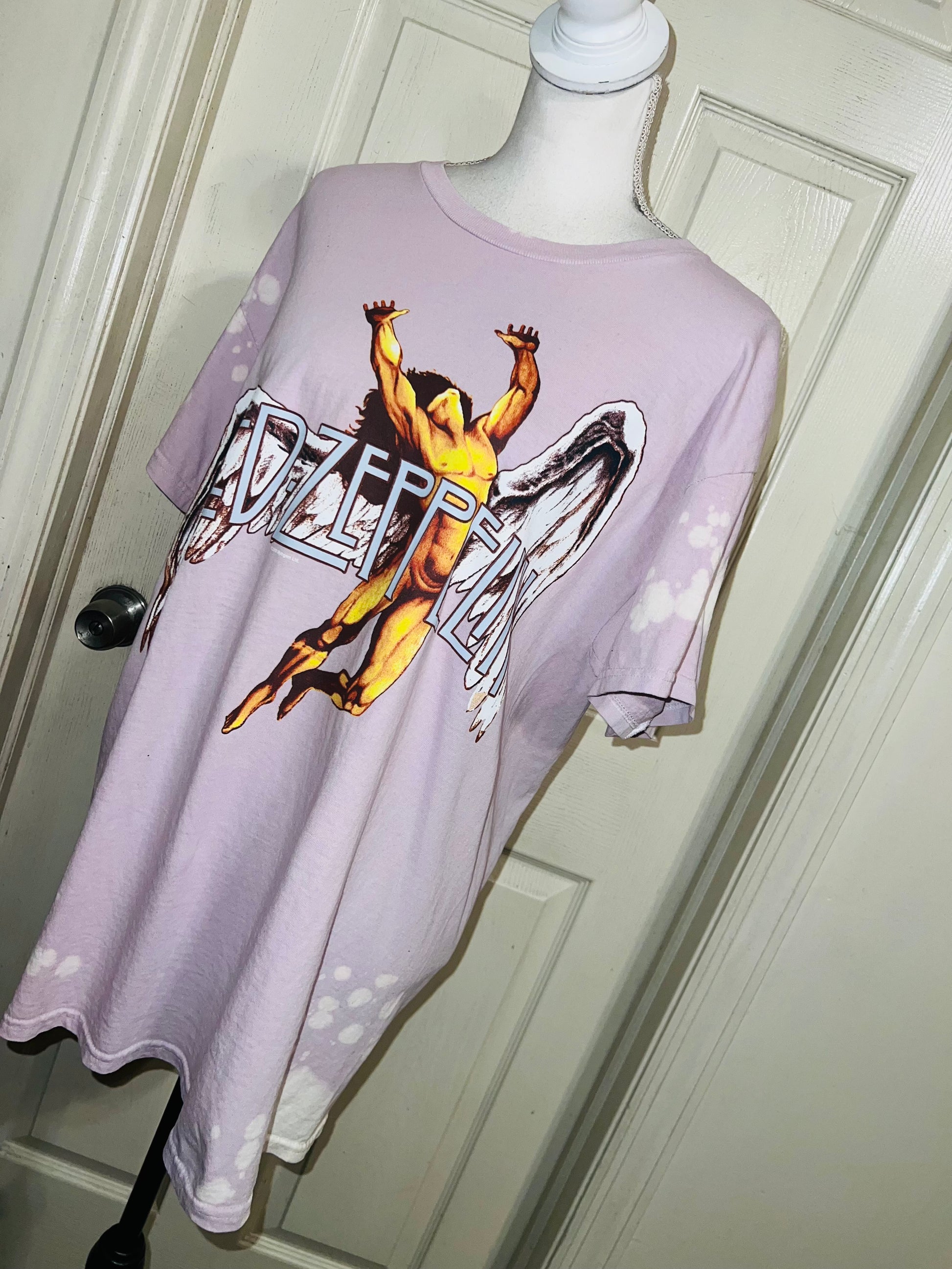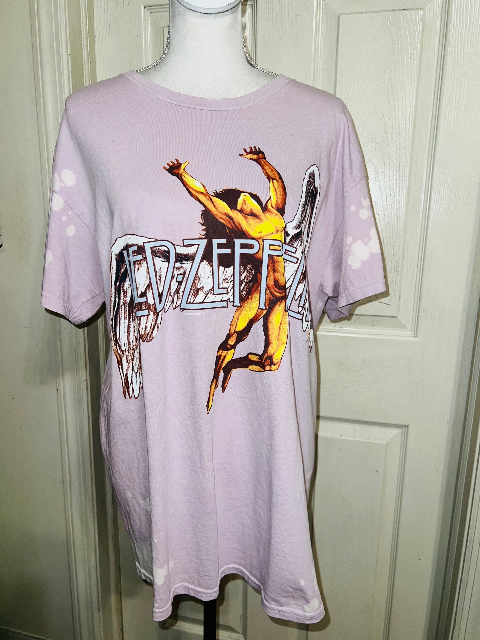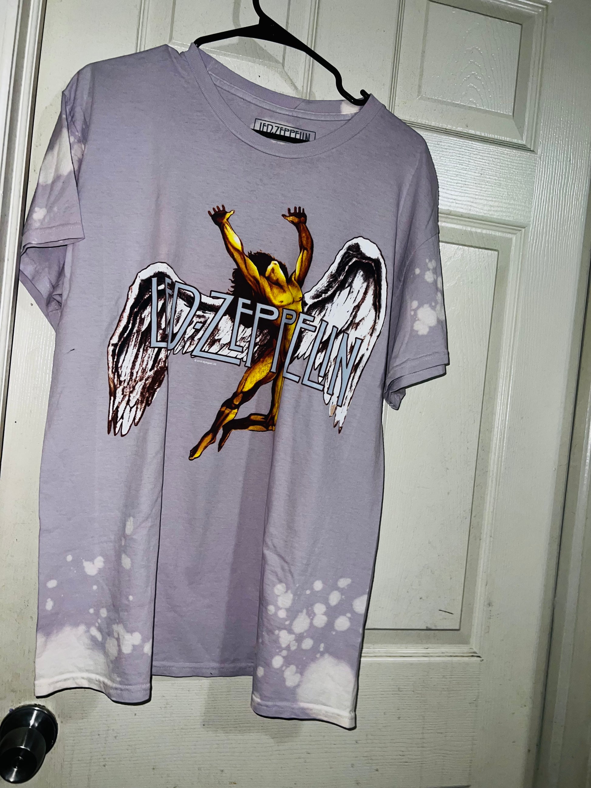 A super pretty blue/grey/purple color with some bleach detailing it on this Led Zeppelin tee. So, so pretty in person too. Would look so good distressed. Size XL.