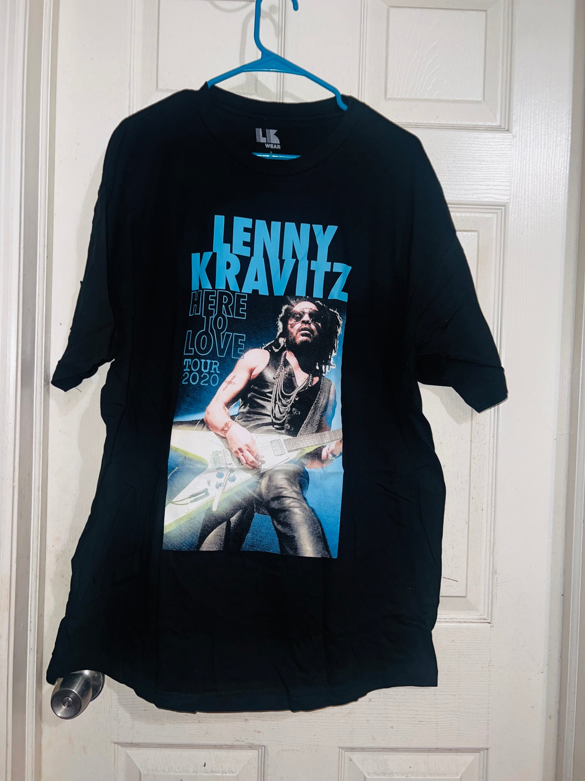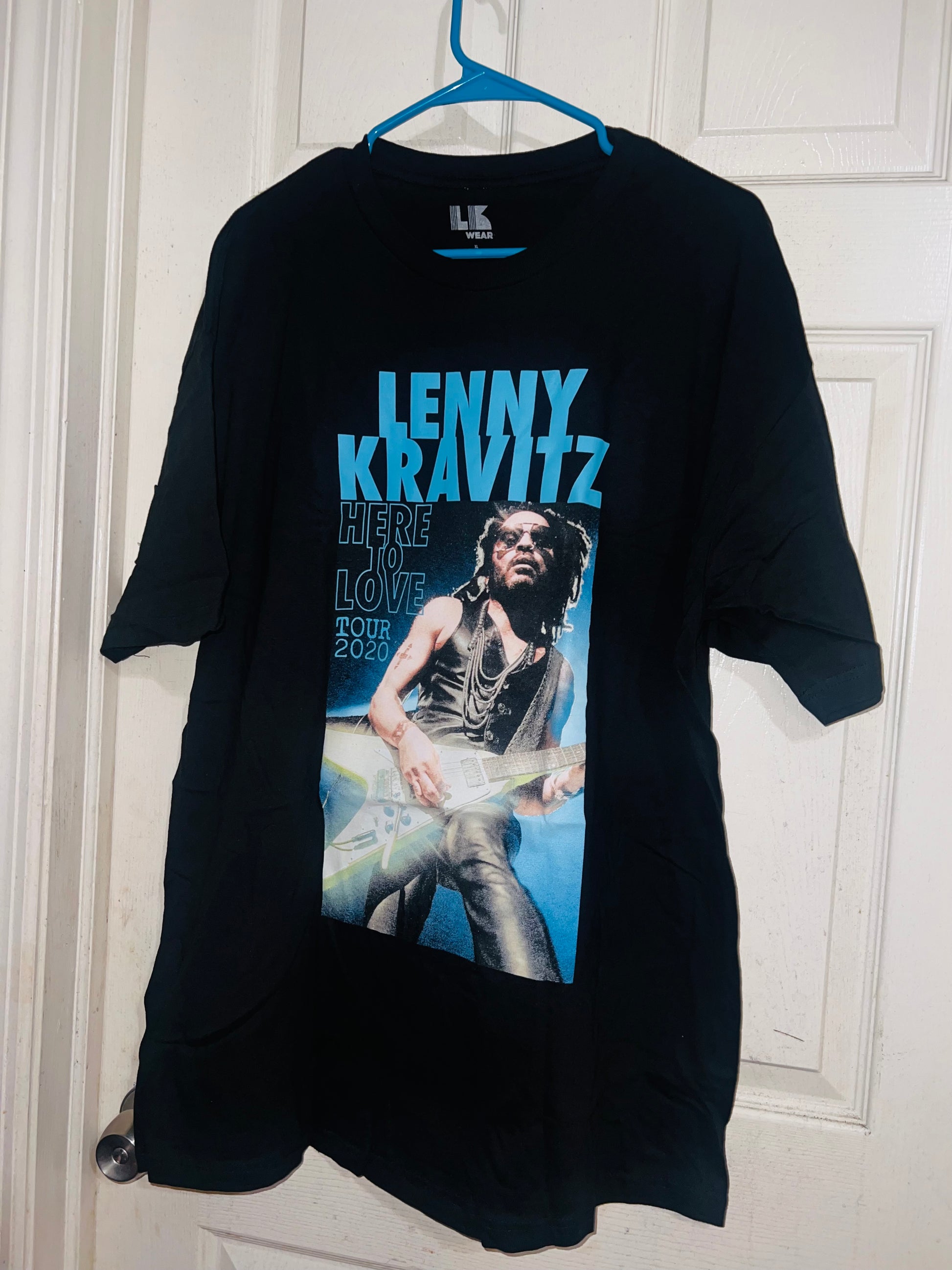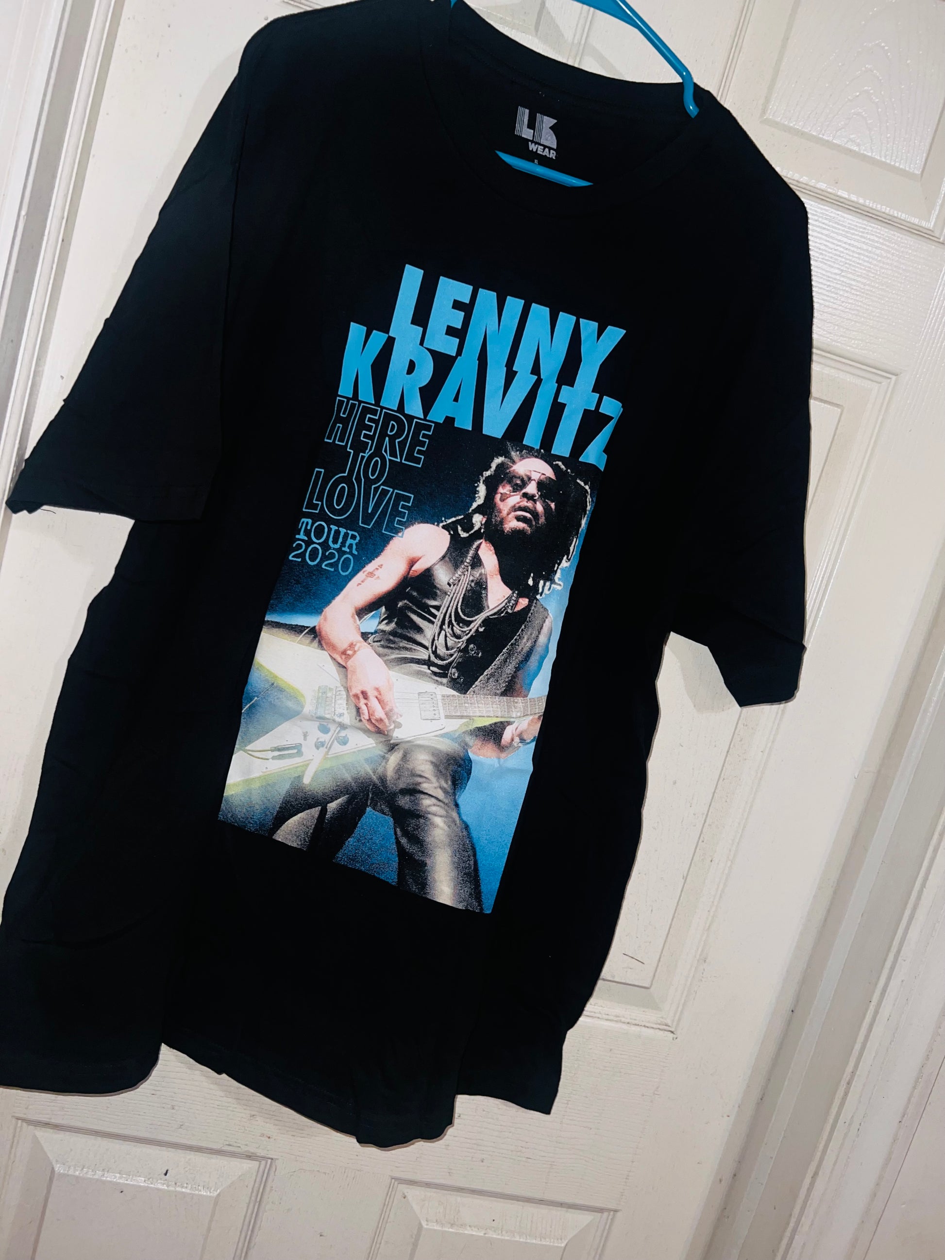 A black oversized Lenny Kravitz Here to Love 2020 Tour tee. I’ve never had him before, and I love him! Size XL.