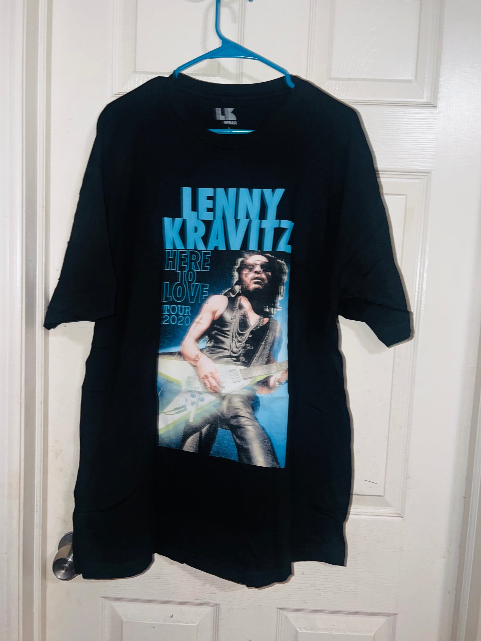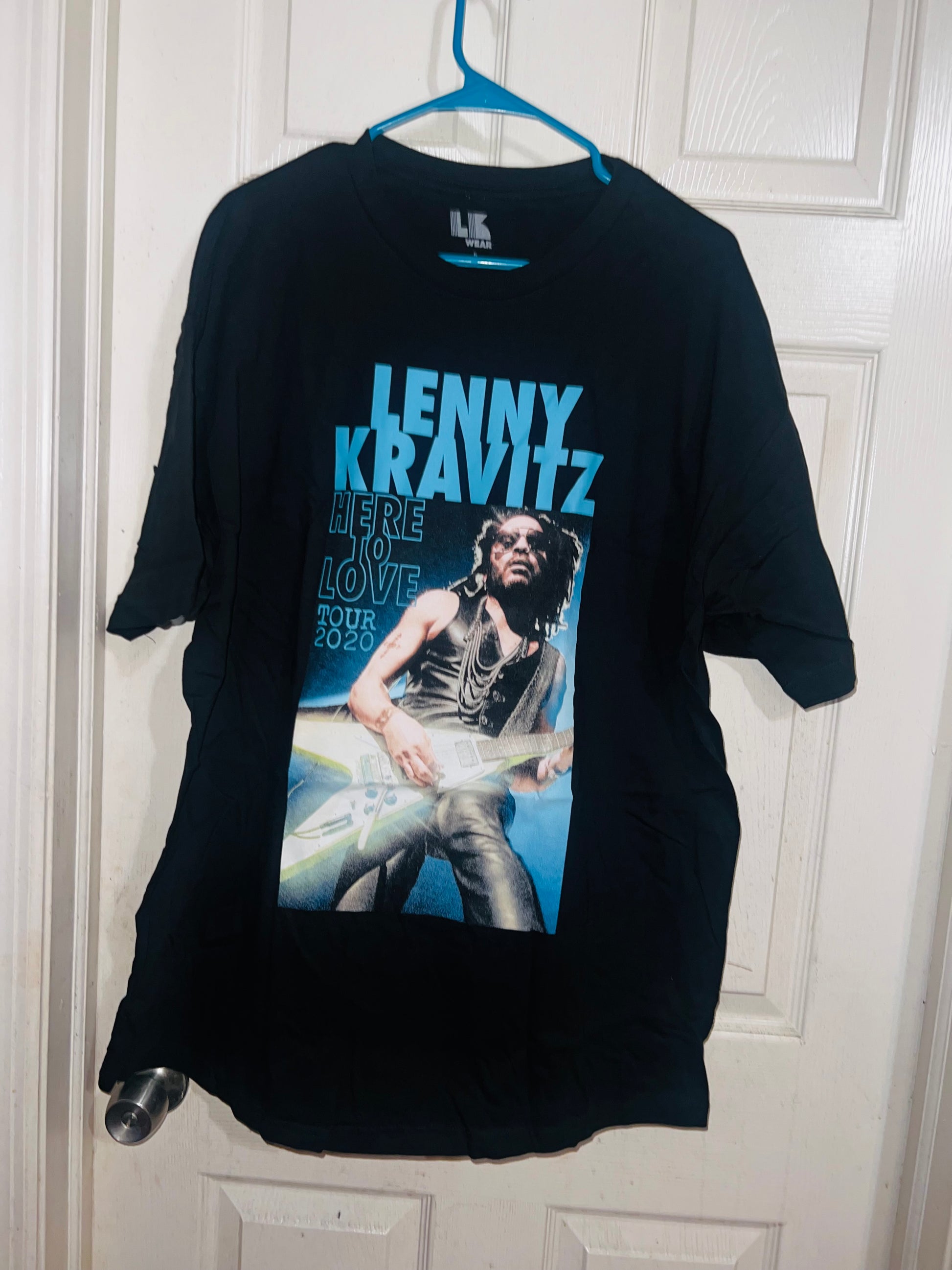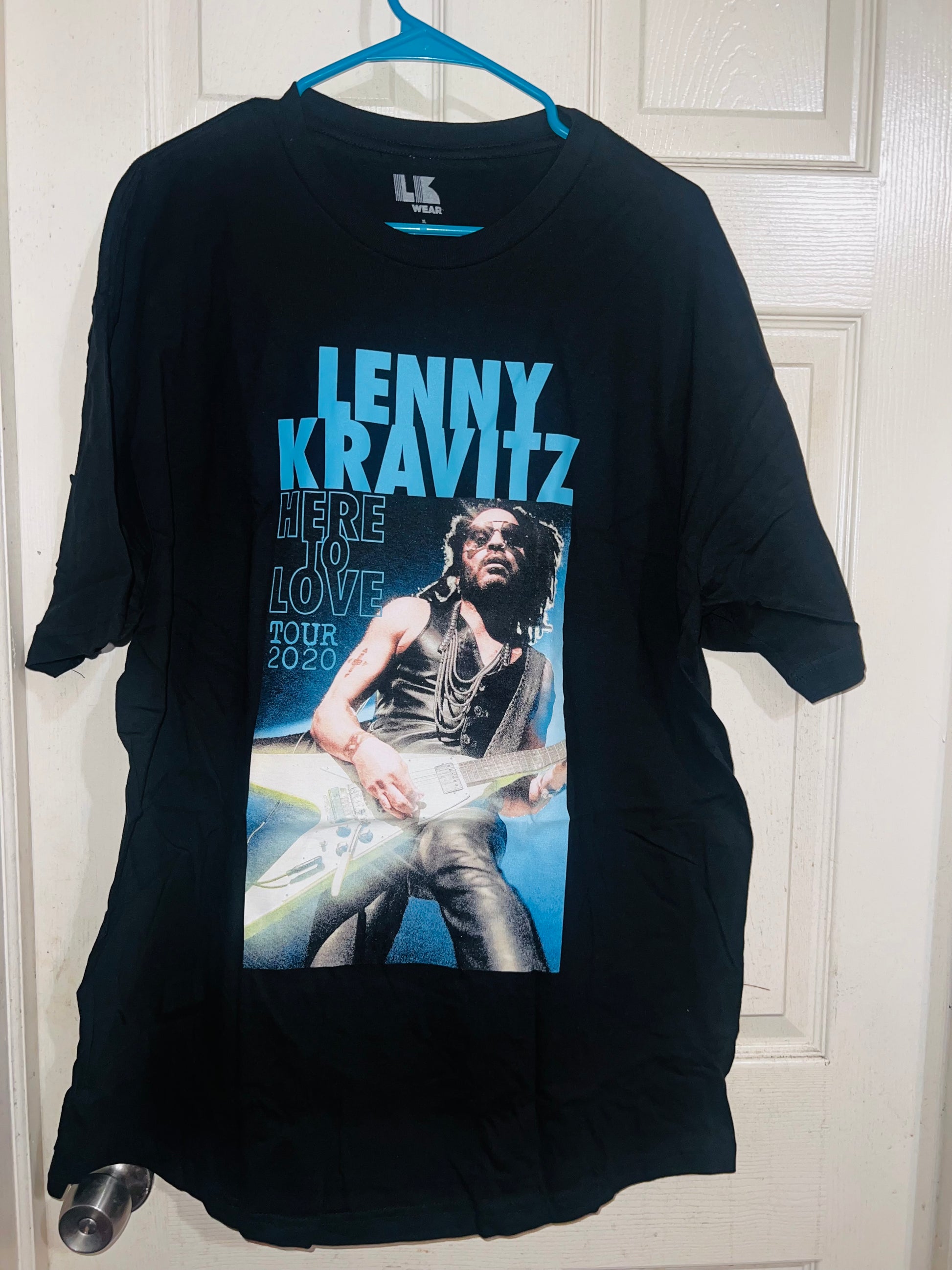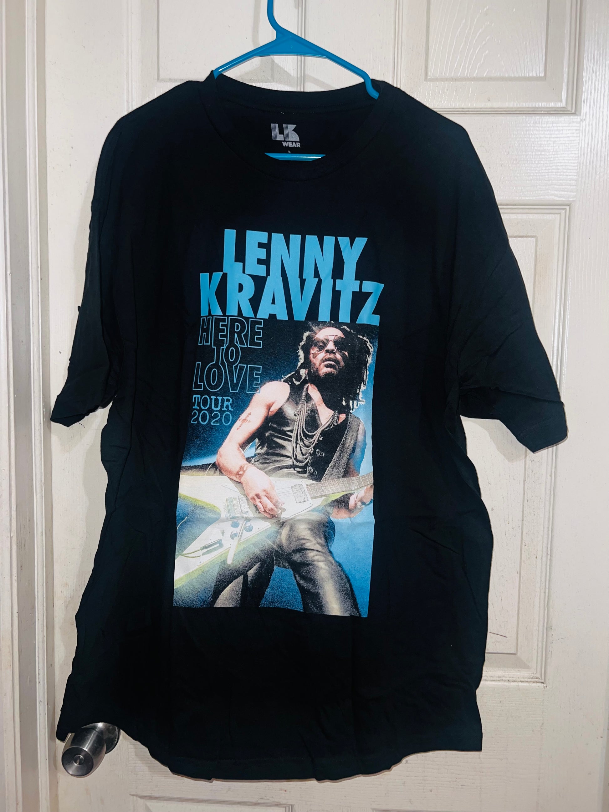 A black oversized Lenny Kravitz Here to Love 2020 Tour tee. I’ve never had him before, and I love him! Size XL.