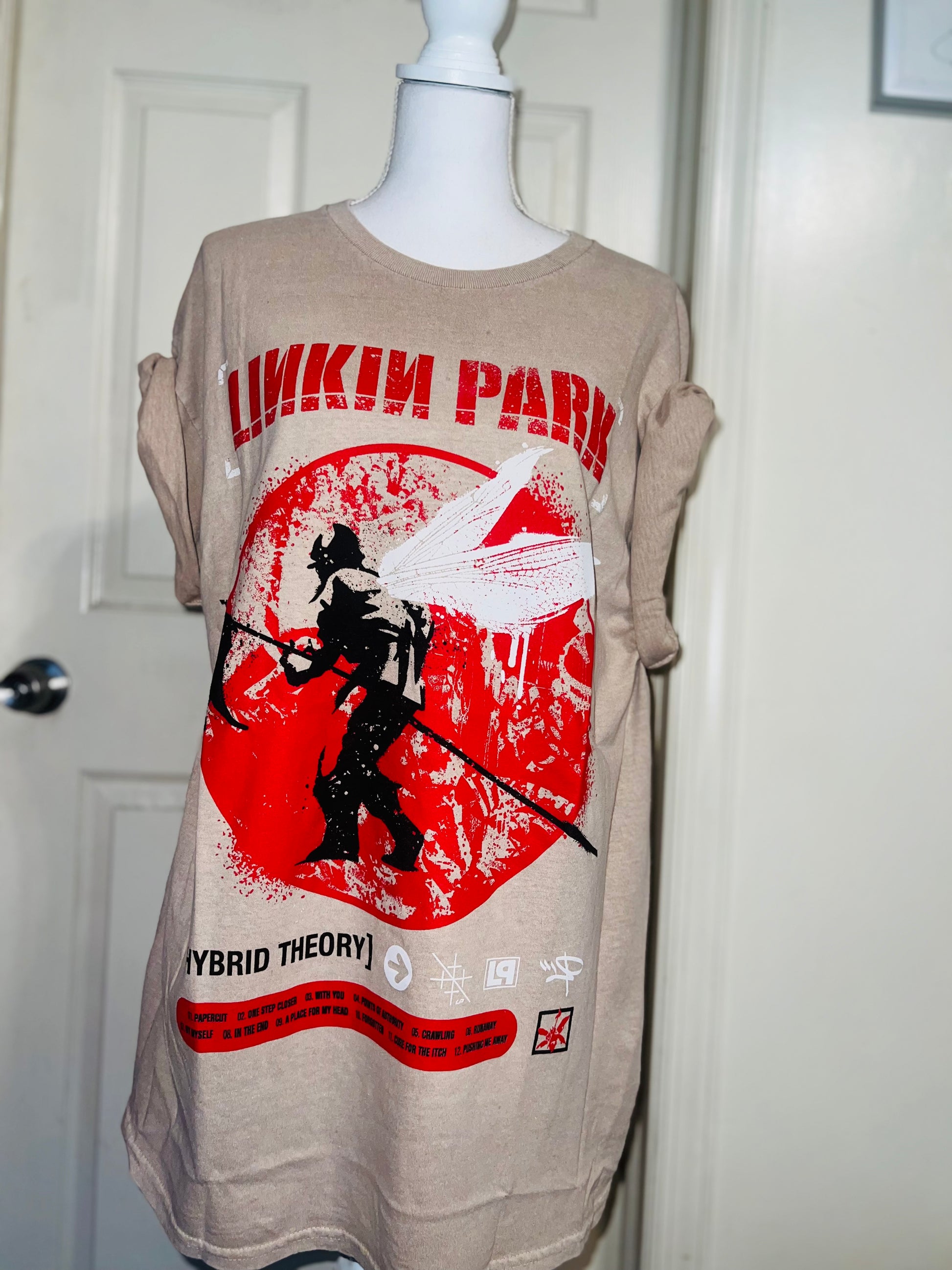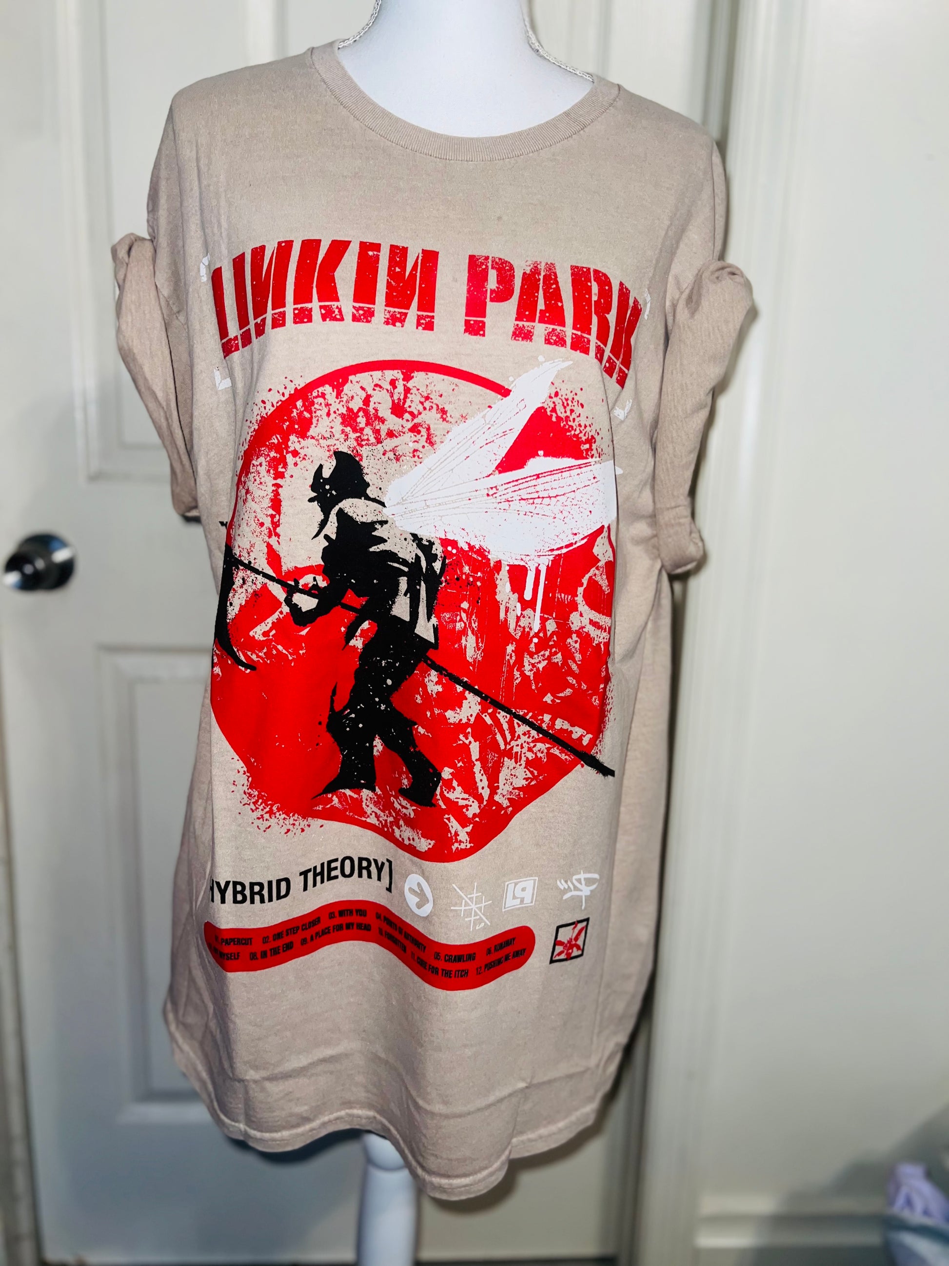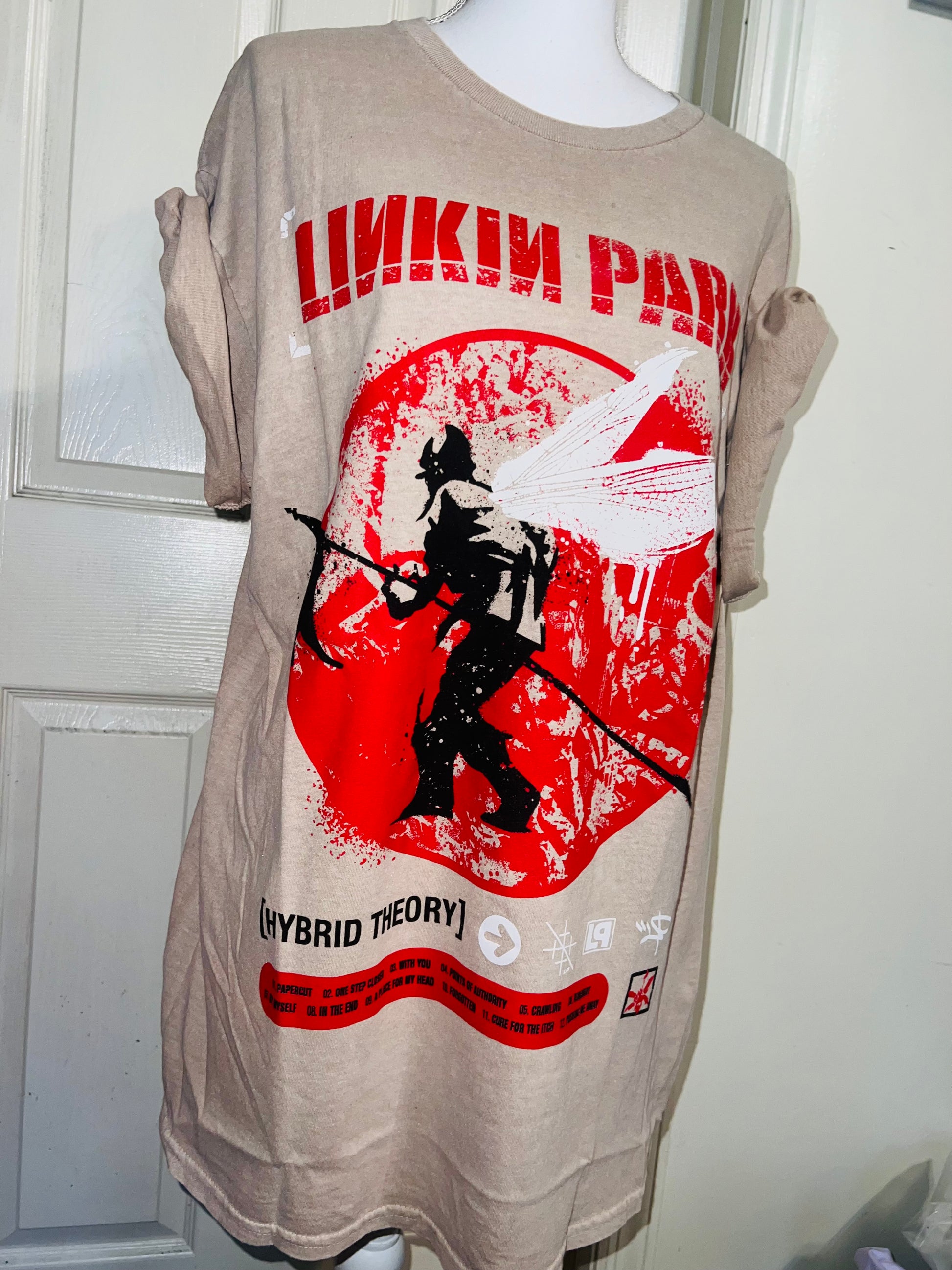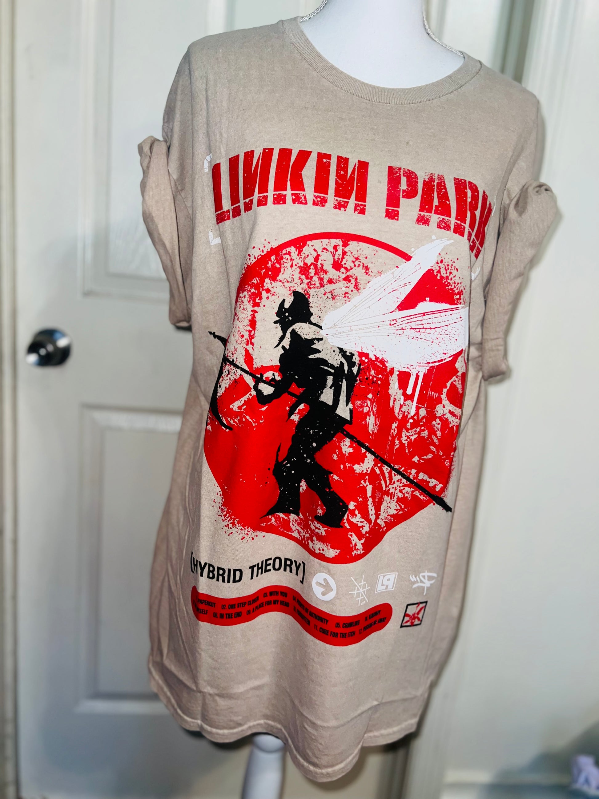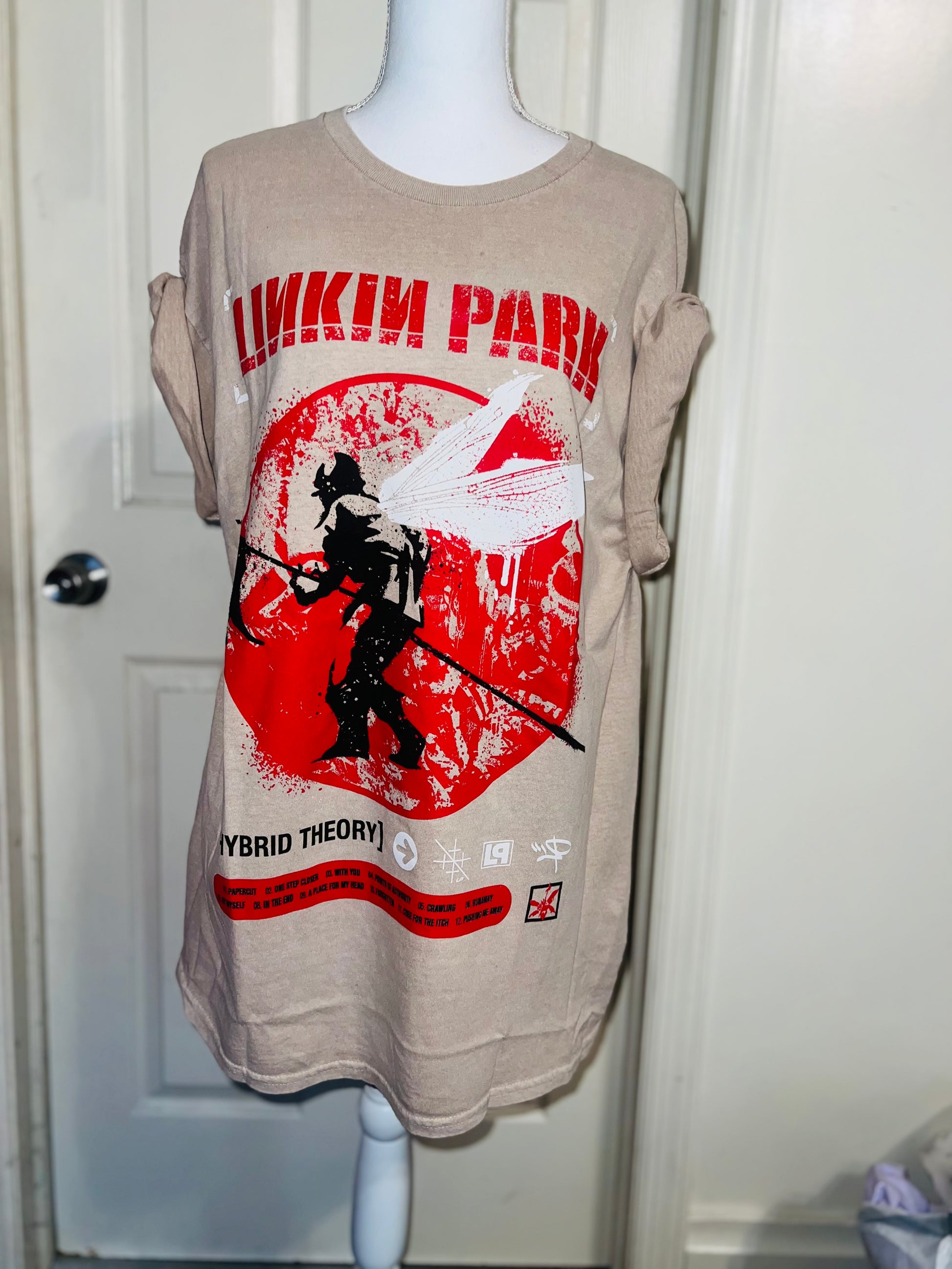 A sand colored Linkin Park Hybrid Theory tee. Size large, oversized.
