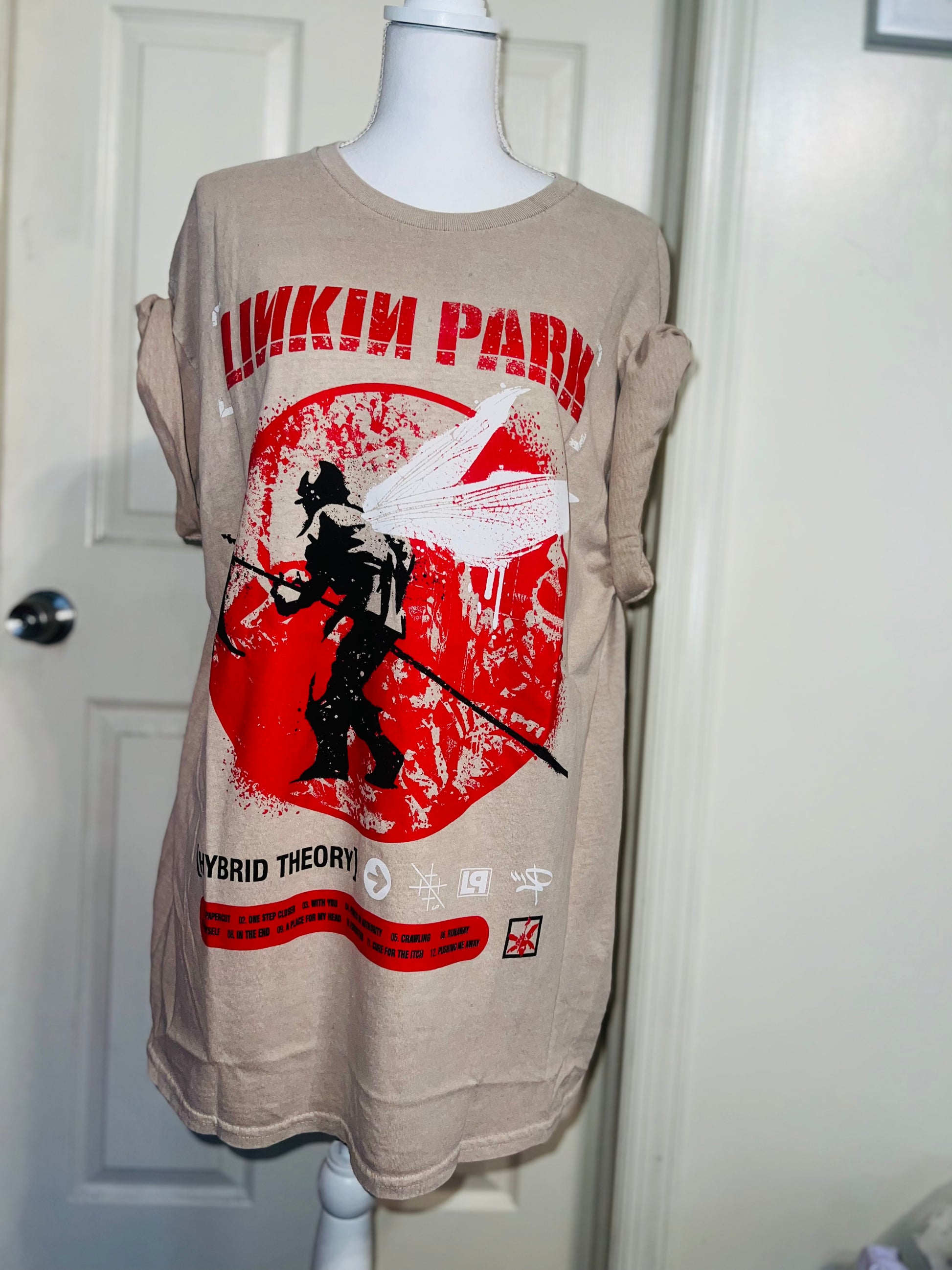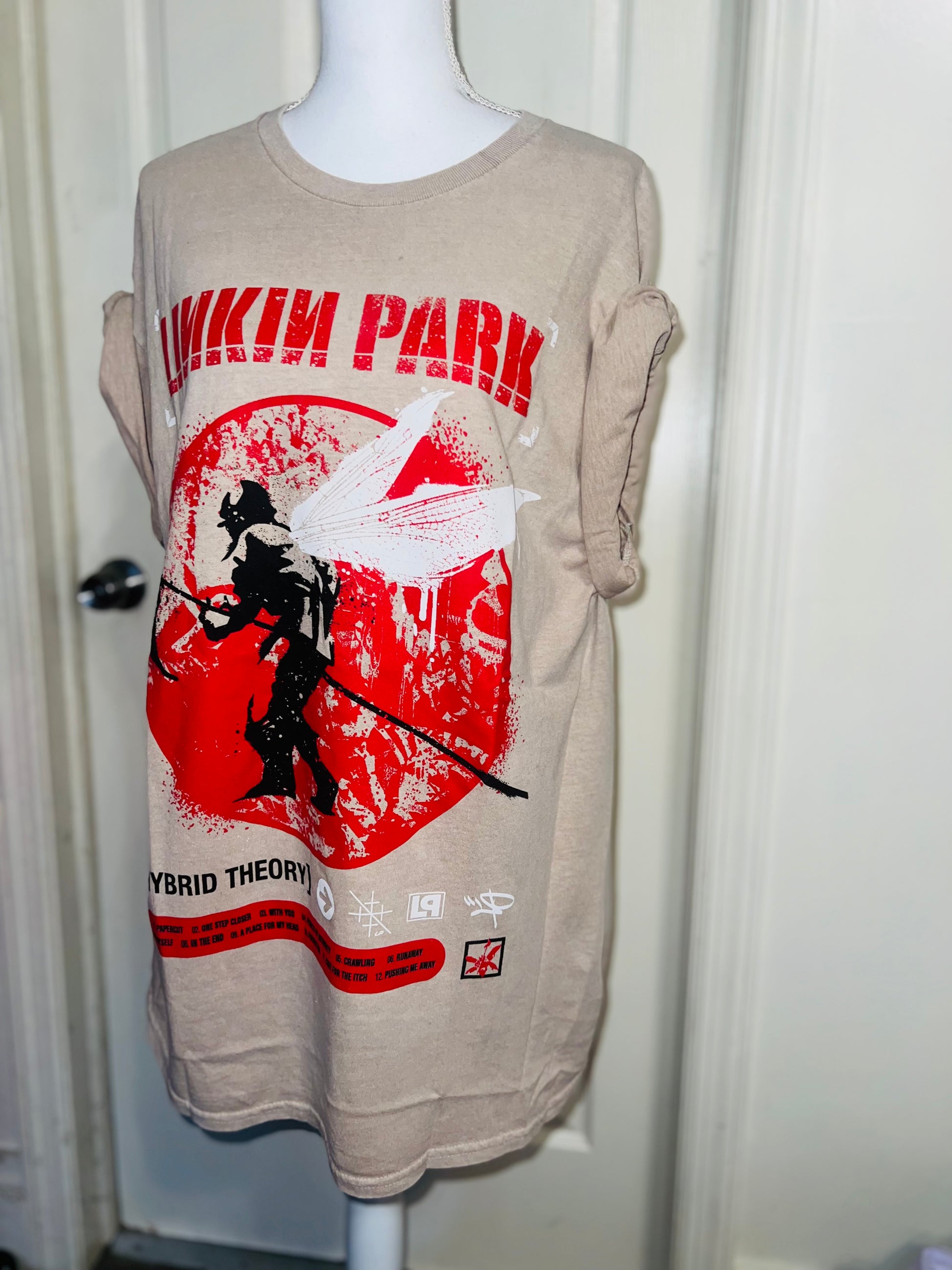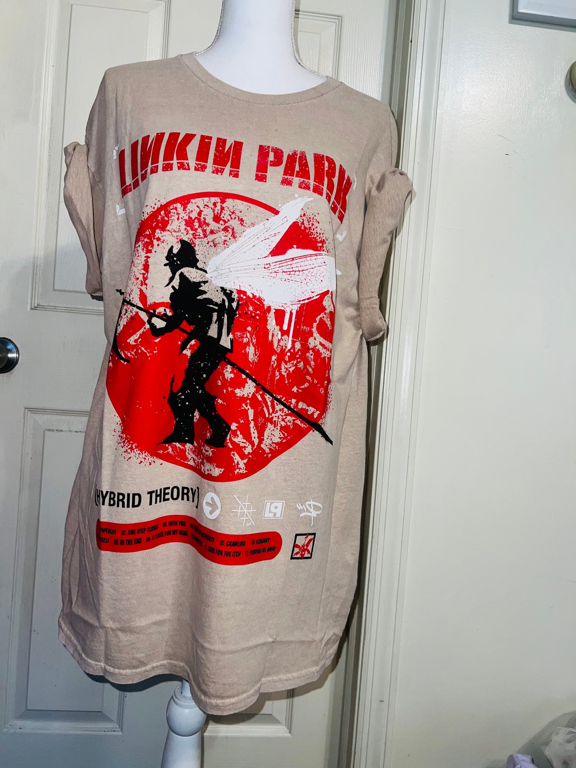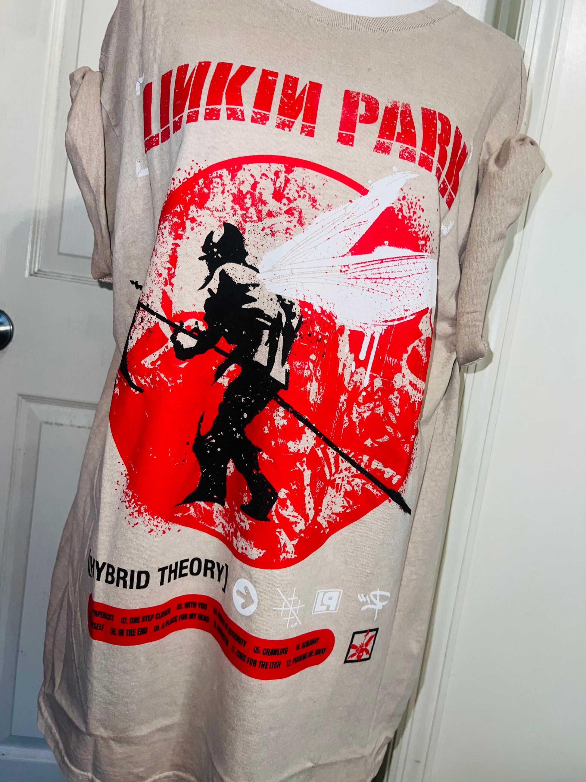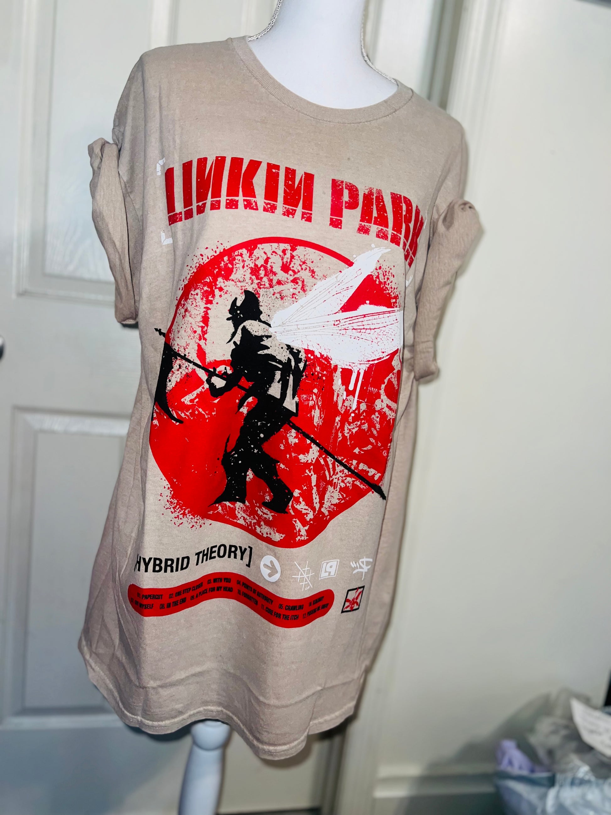 A sand colored Linkin Park Hybrid Theory tee. Size large, oversized.