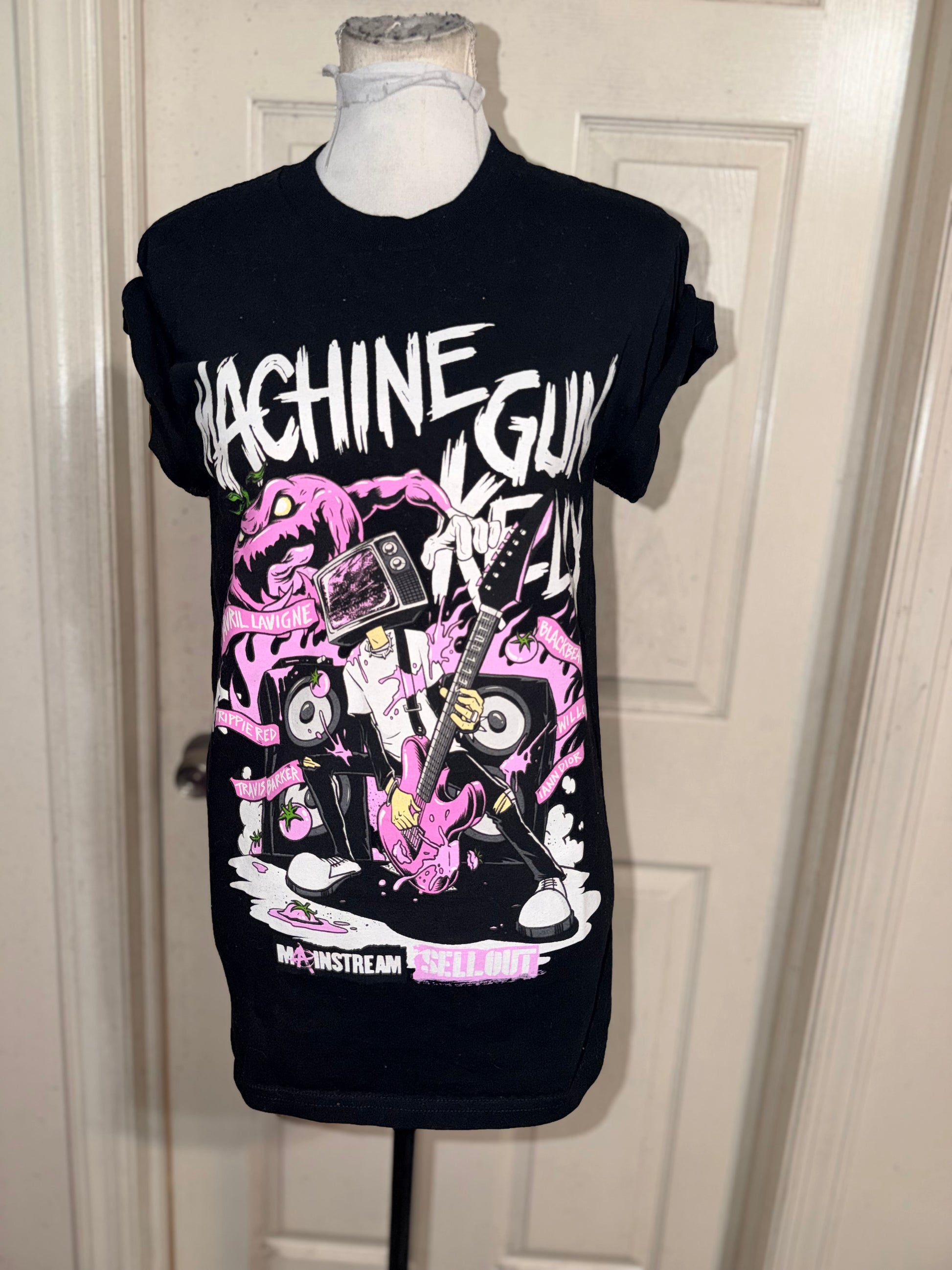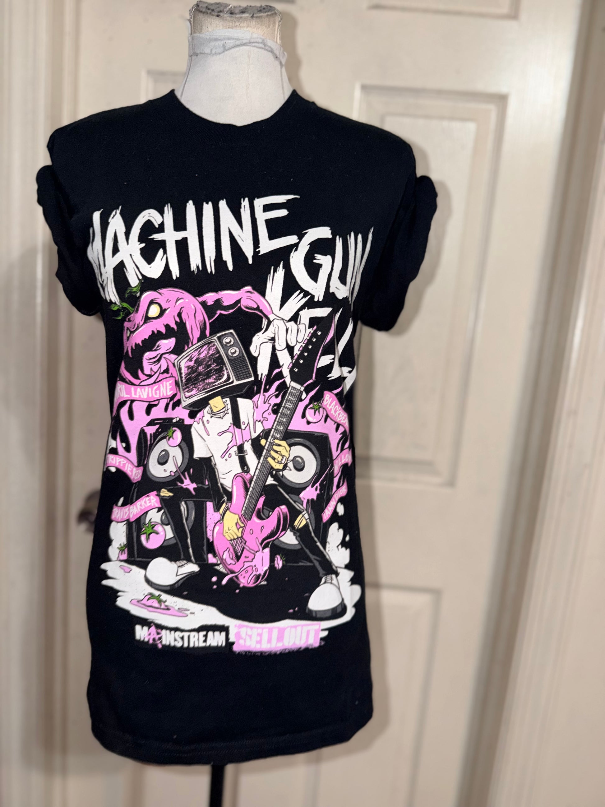 A black Machine Gun Kelly ft. Avril Lavigne double sided 2022 Mainstream Sellout Tour tee. A small, but long and a bit oversized towards a medium.