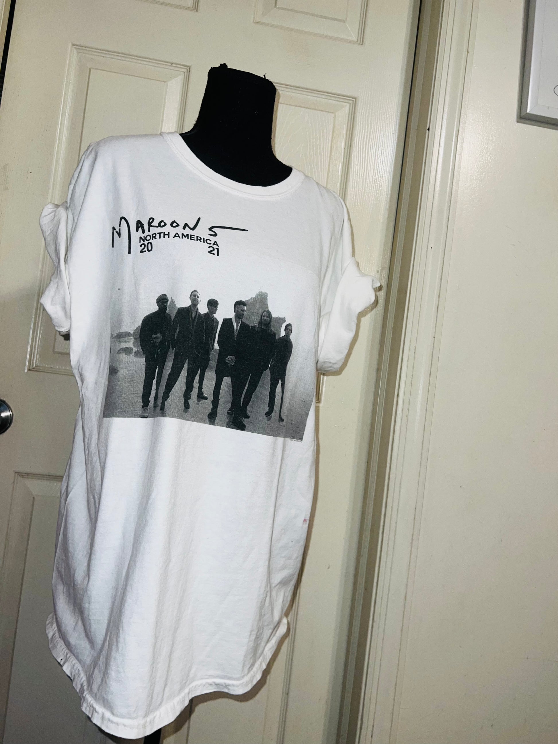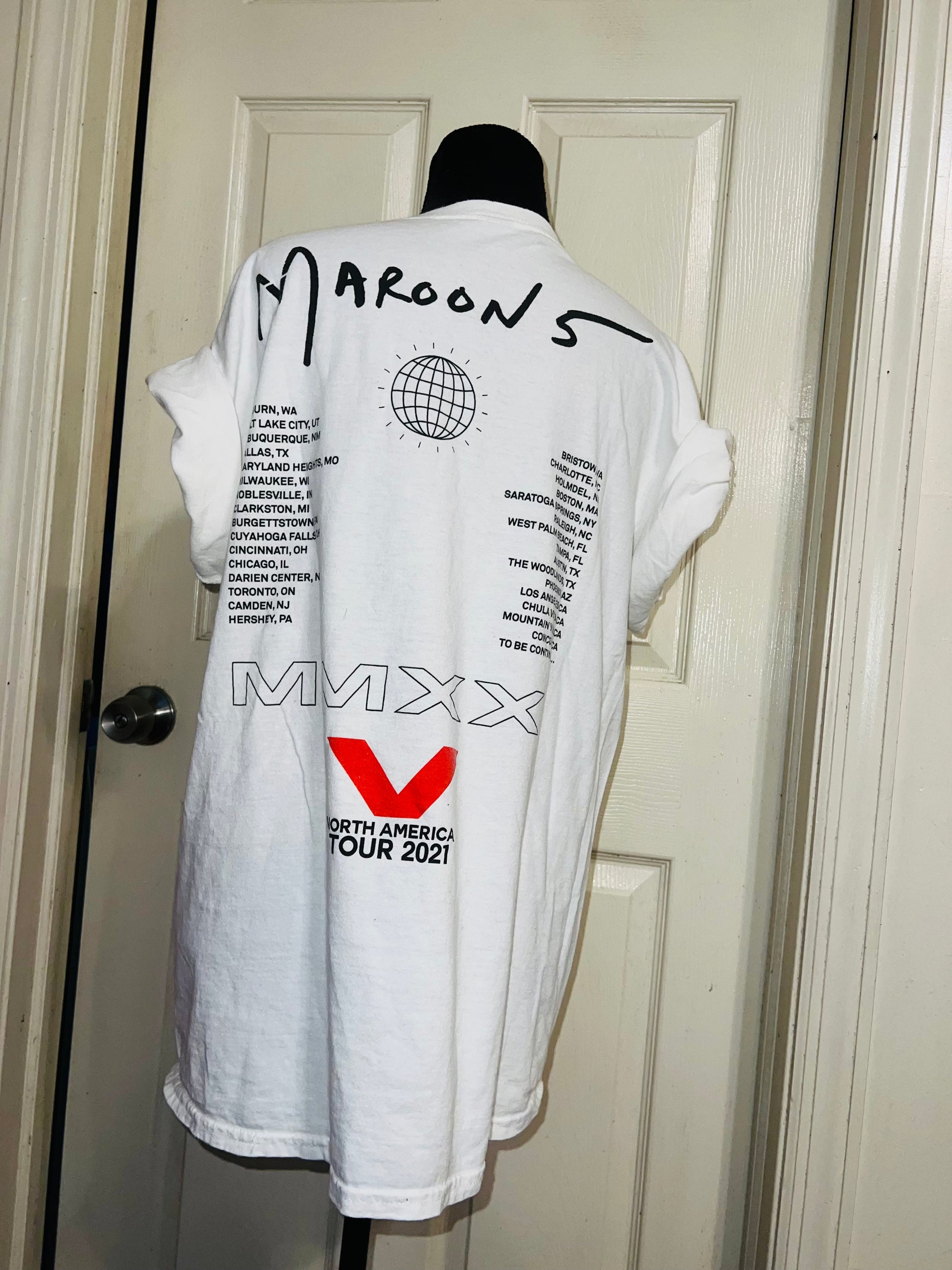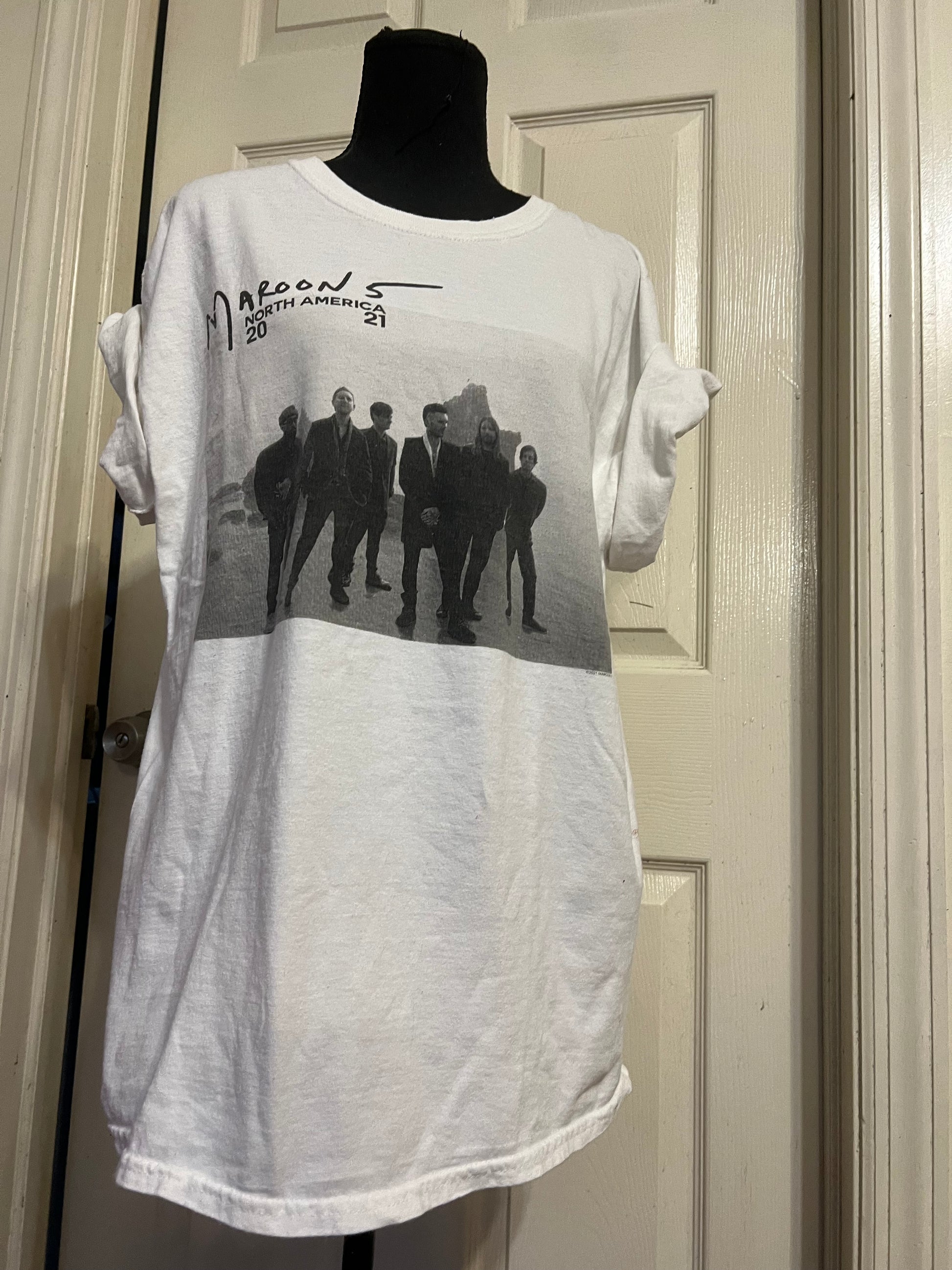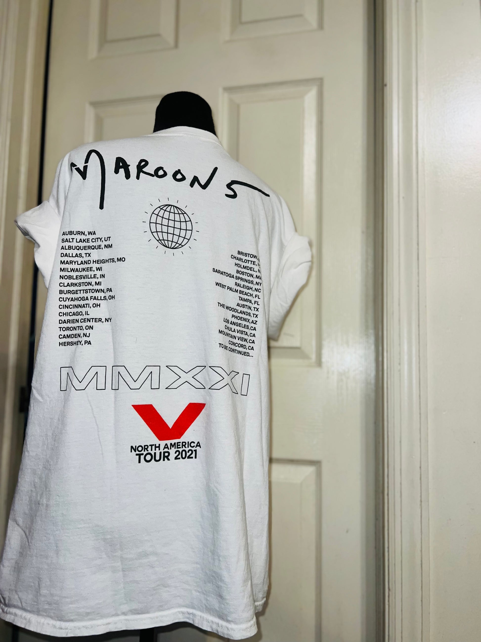 A white Maroon 5 double sided 2021 tour tee. Tour dates on the back! Super cute. Size L/XL, oversized.
