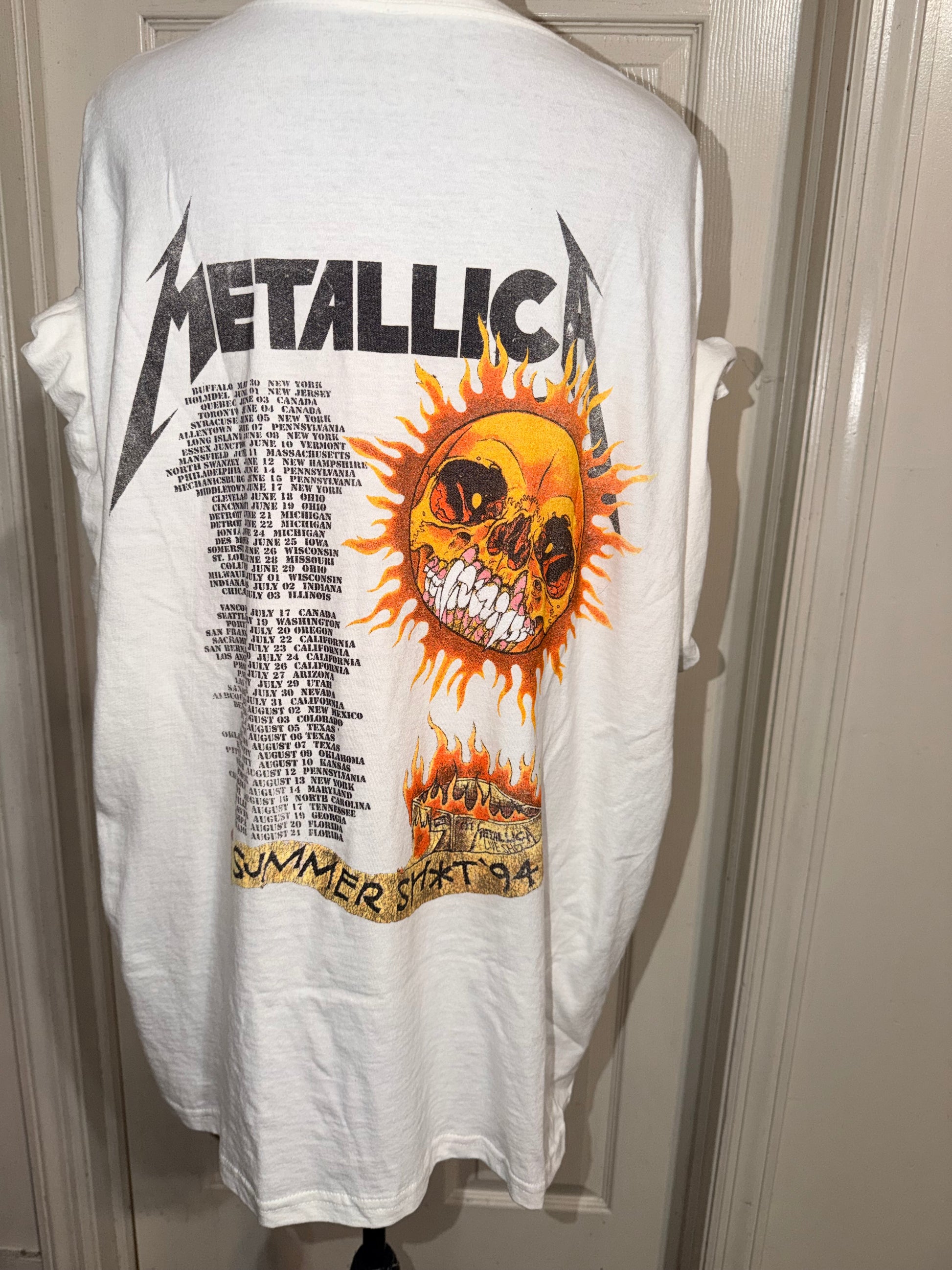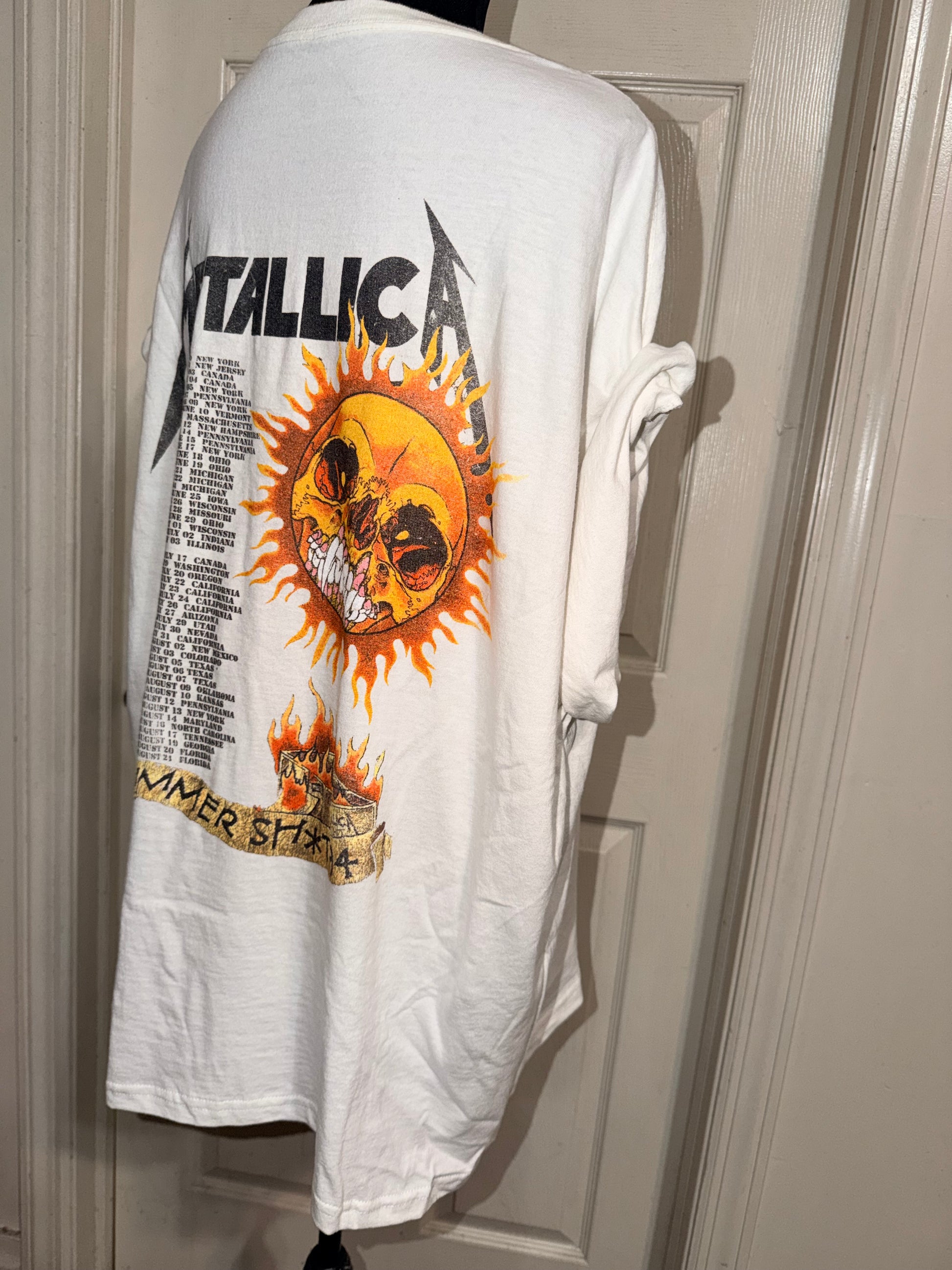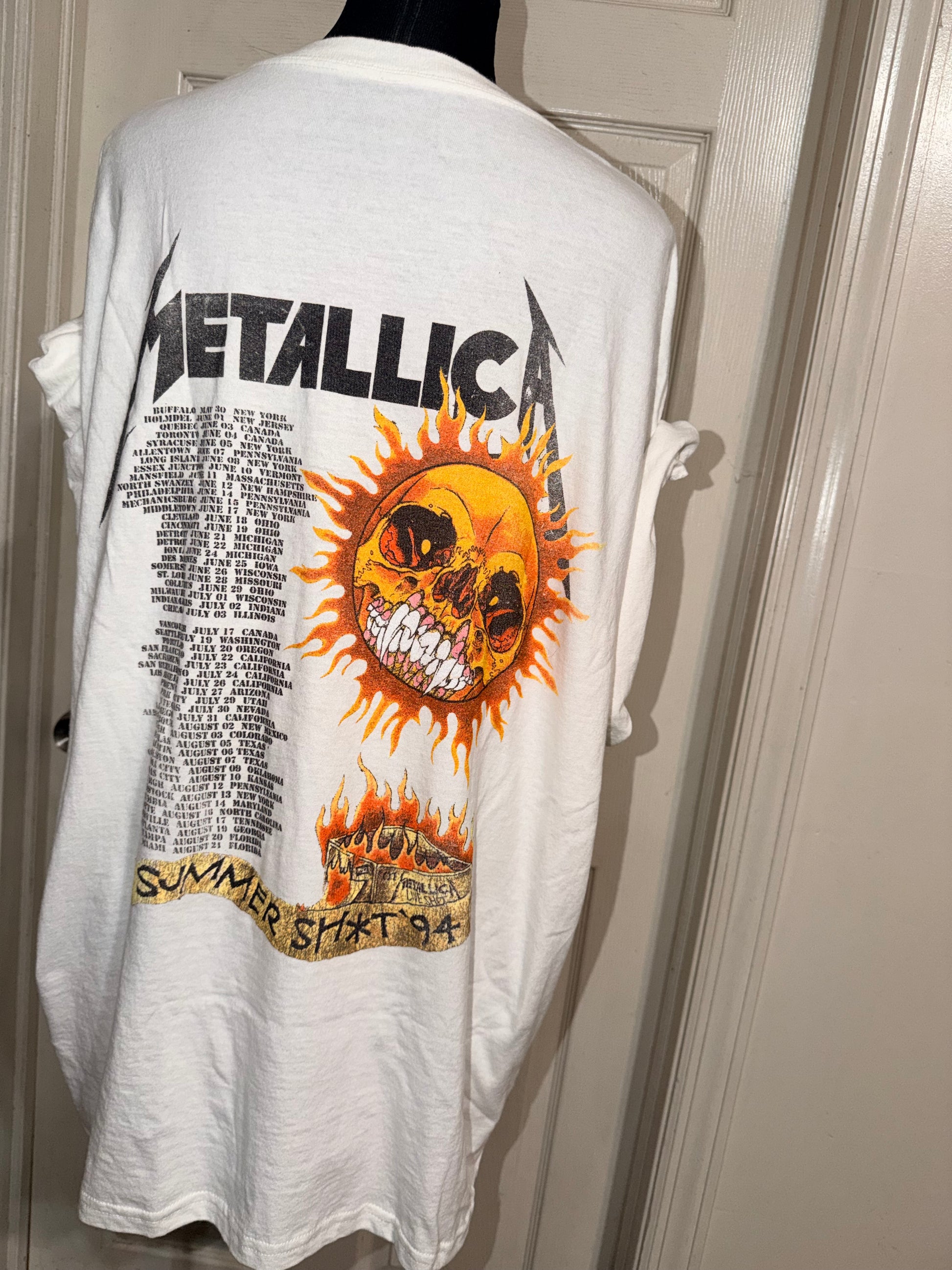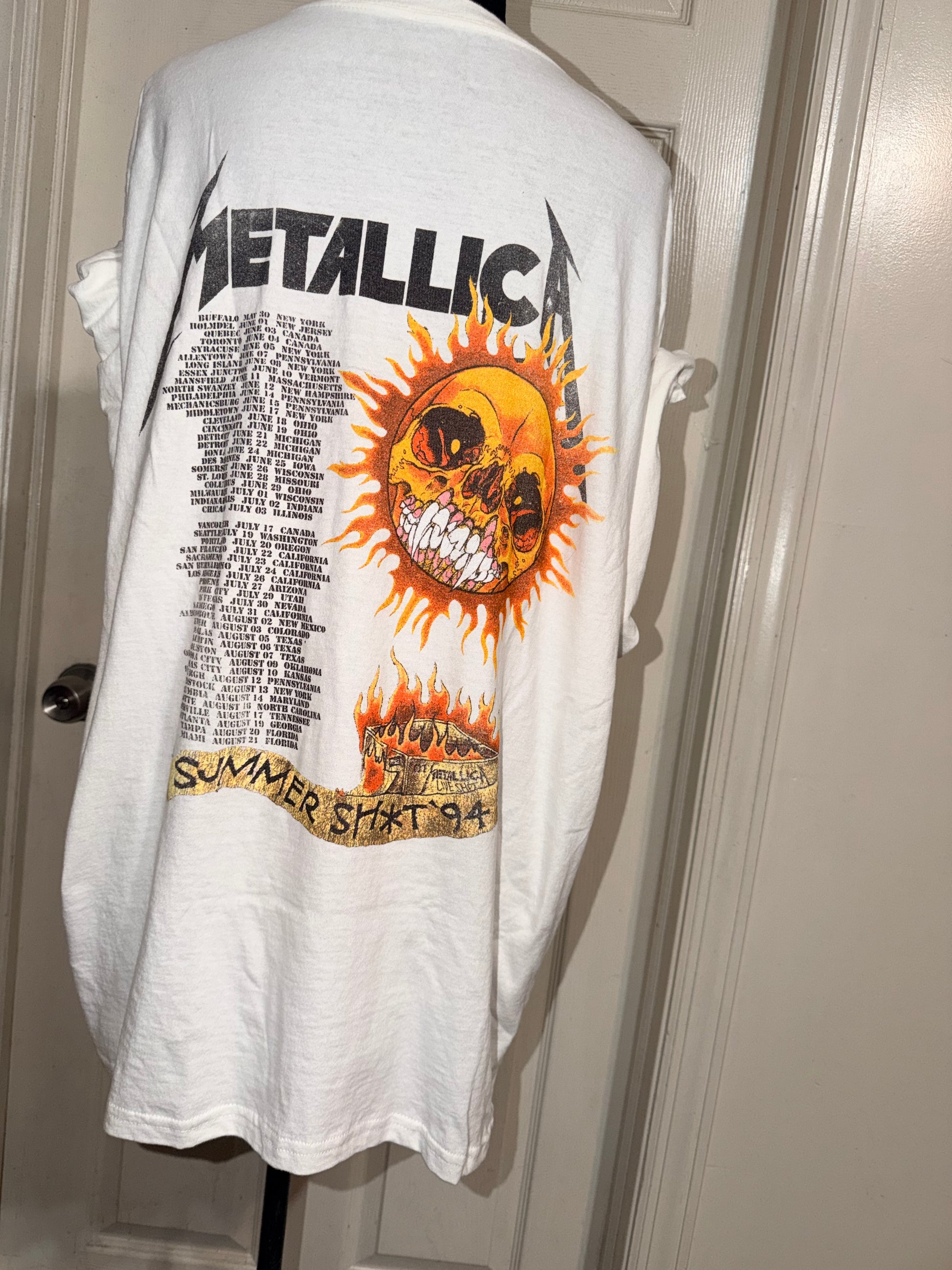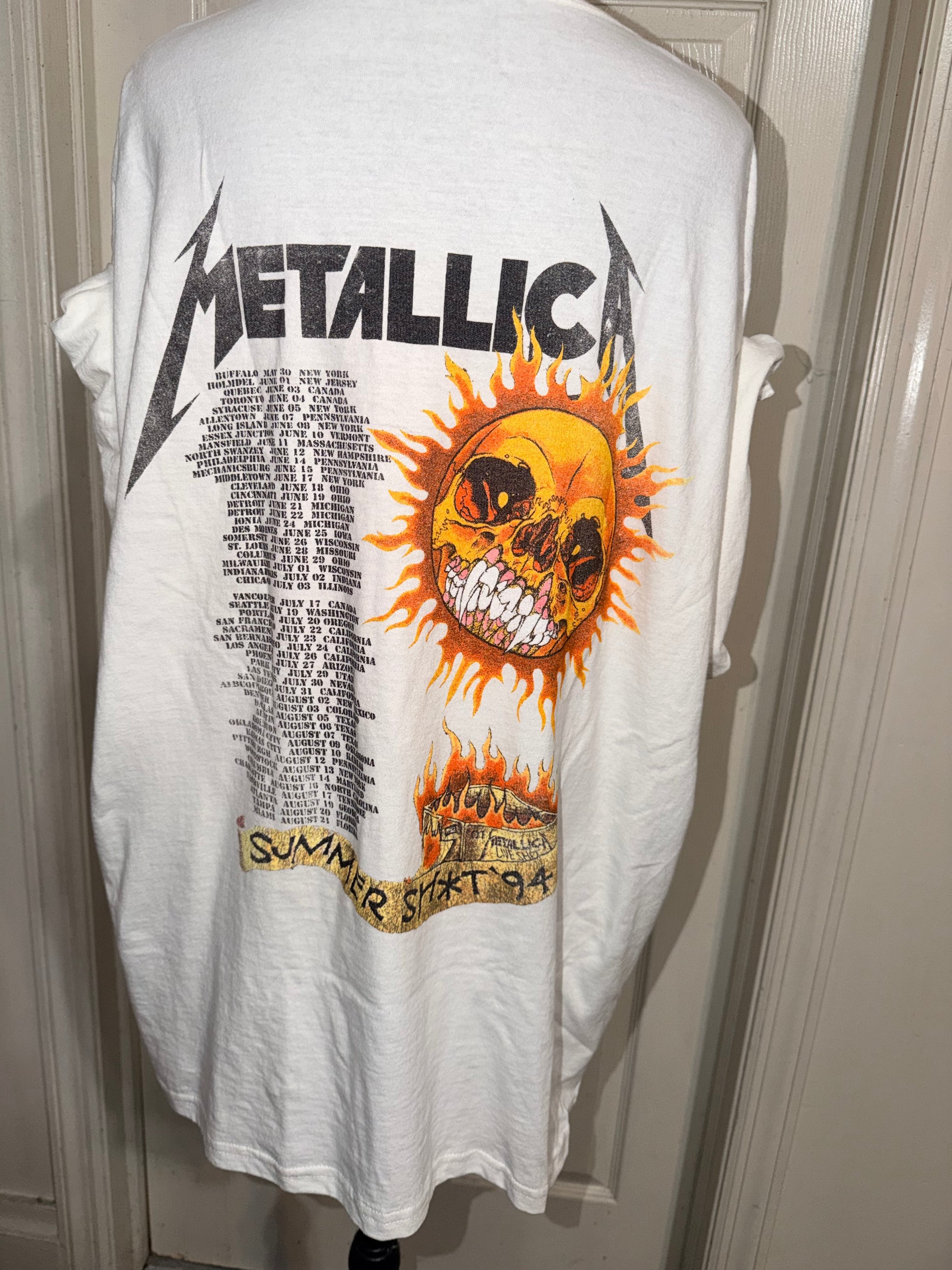 A white Metallica double sided “Summer Shit 1994” tour tee with sparkly Metallica on the front. Super cute. Oversized.