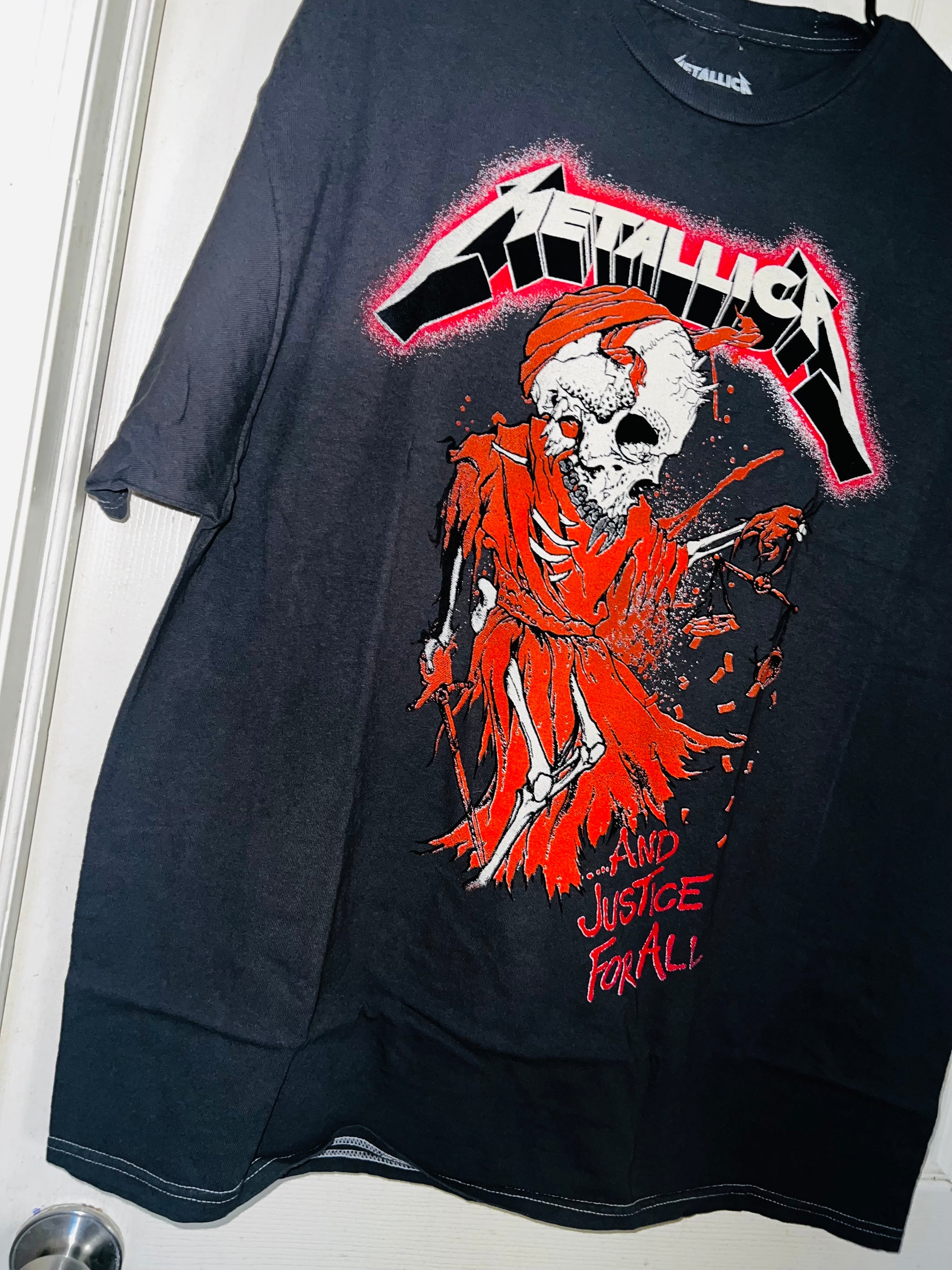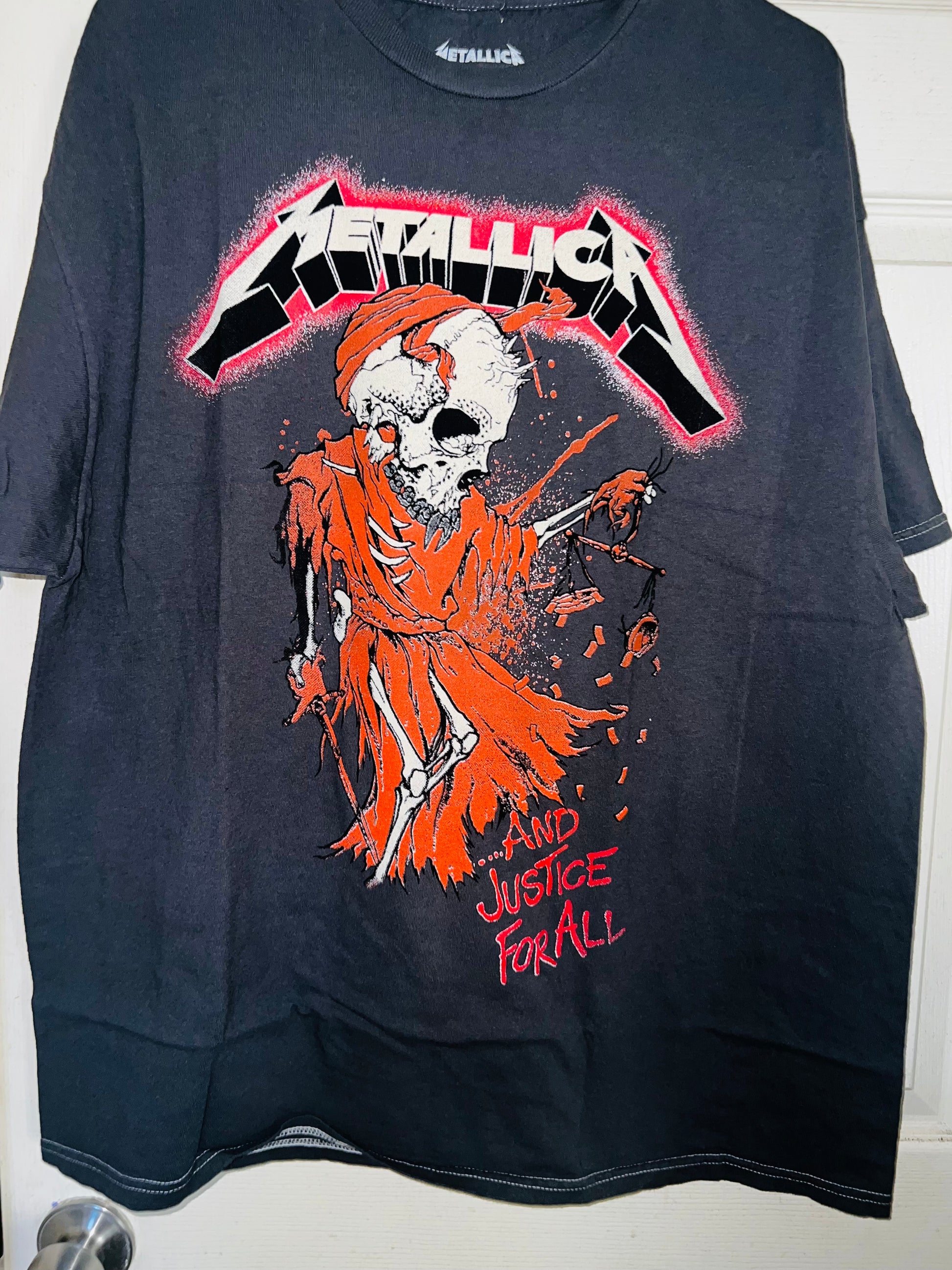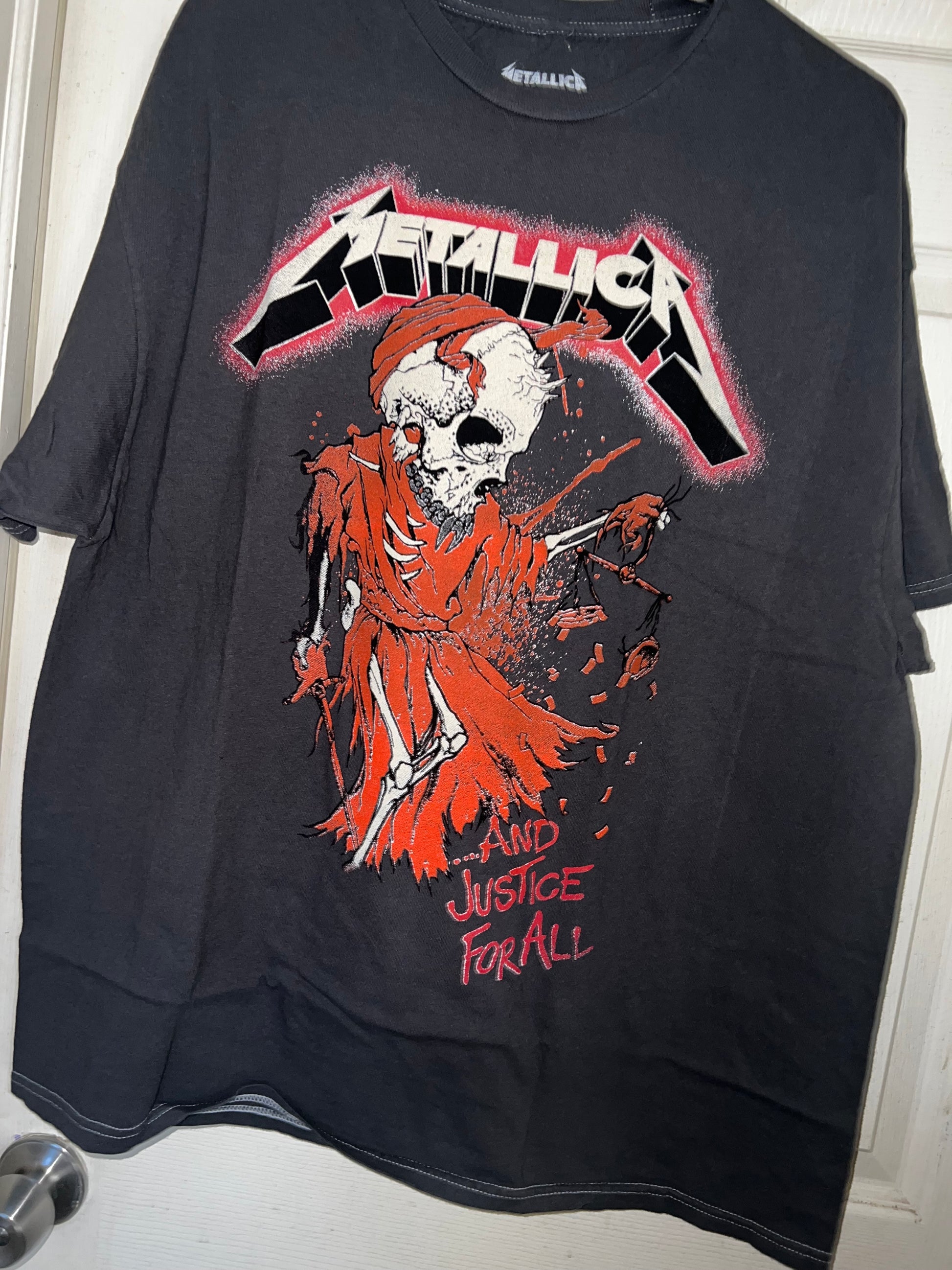 This is a preorder. Please allow extra shipping. charcoal grey with a bit of mineral wash (the color on preorders may be a lighter grey, dependent on seller and vintage, but grey & same graphic) on the Metallica And Justice For All.. tee with the red and different skull graphic! Super sick, oversized. Size L/XL.