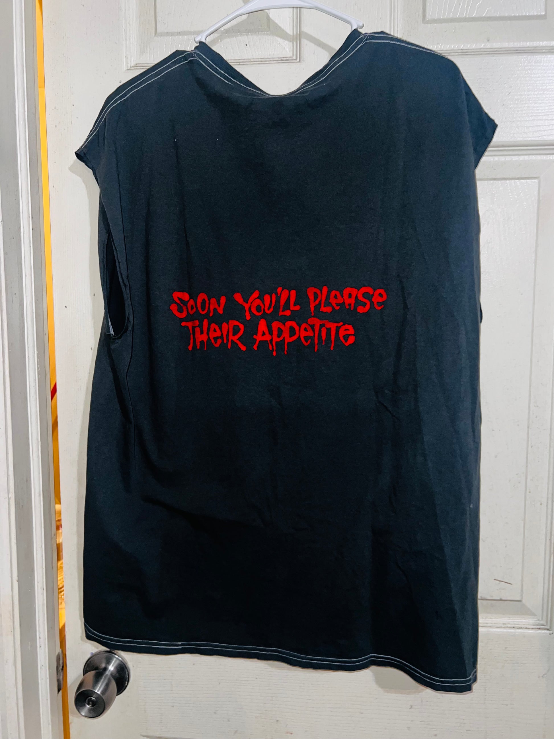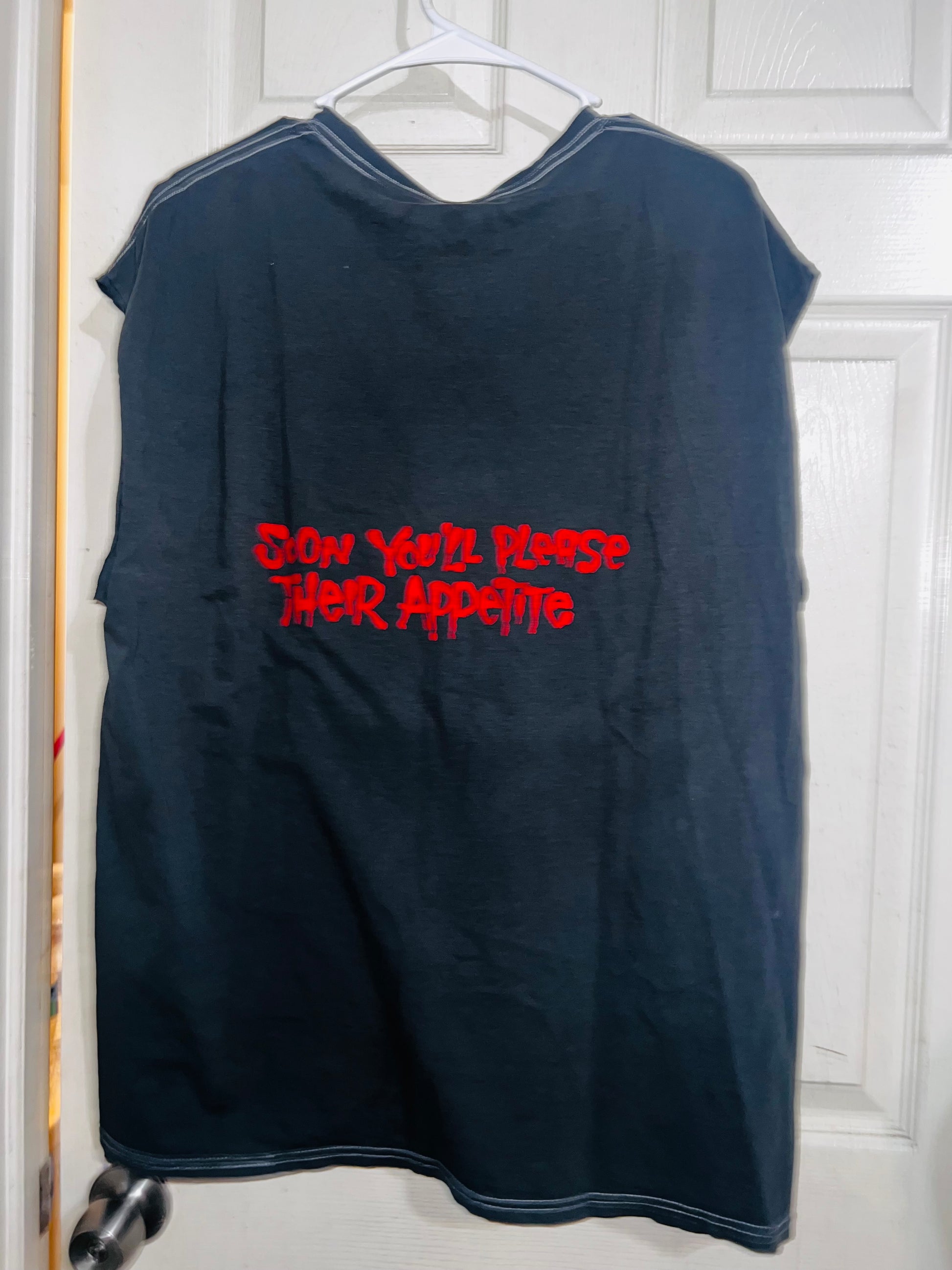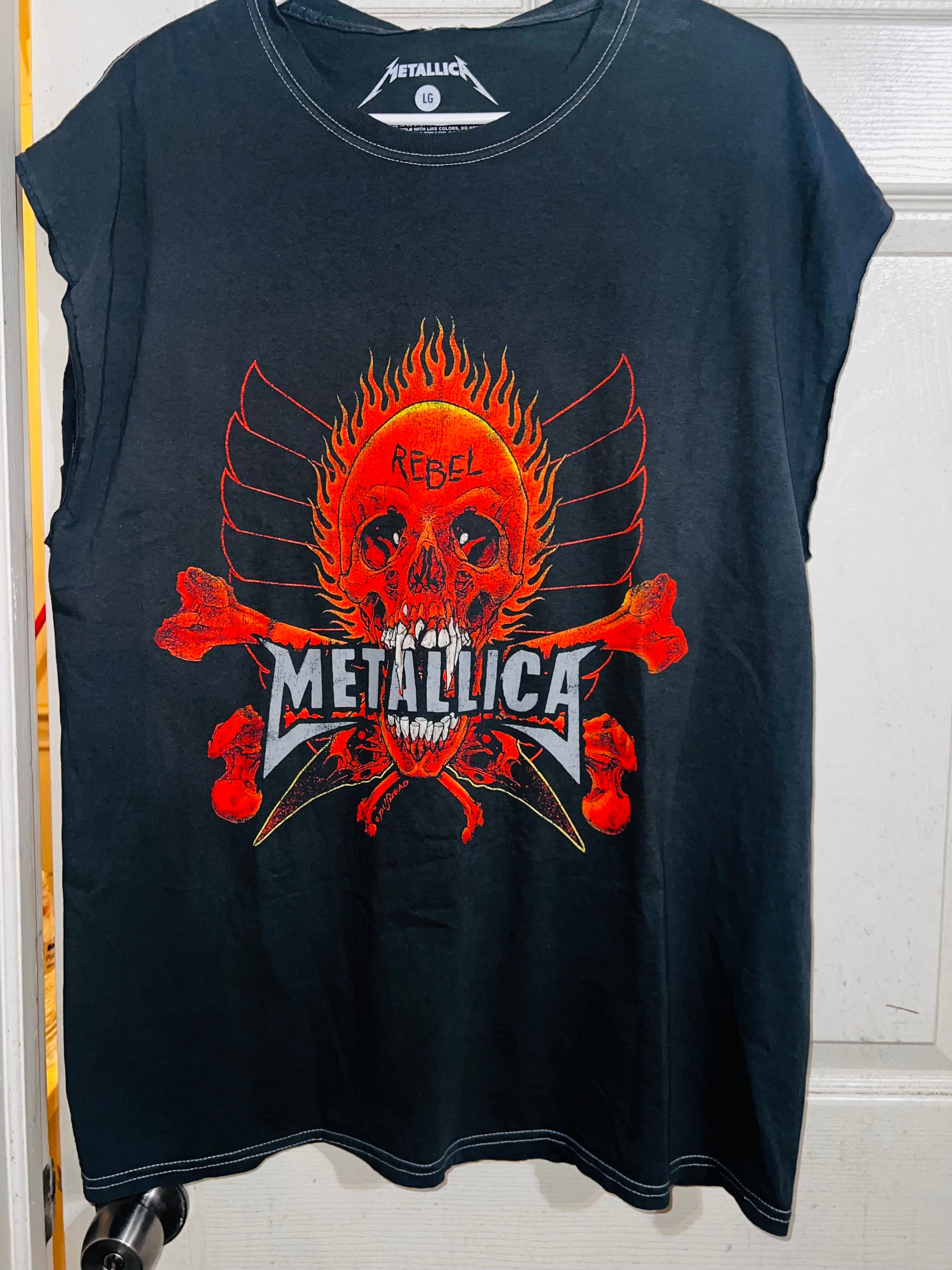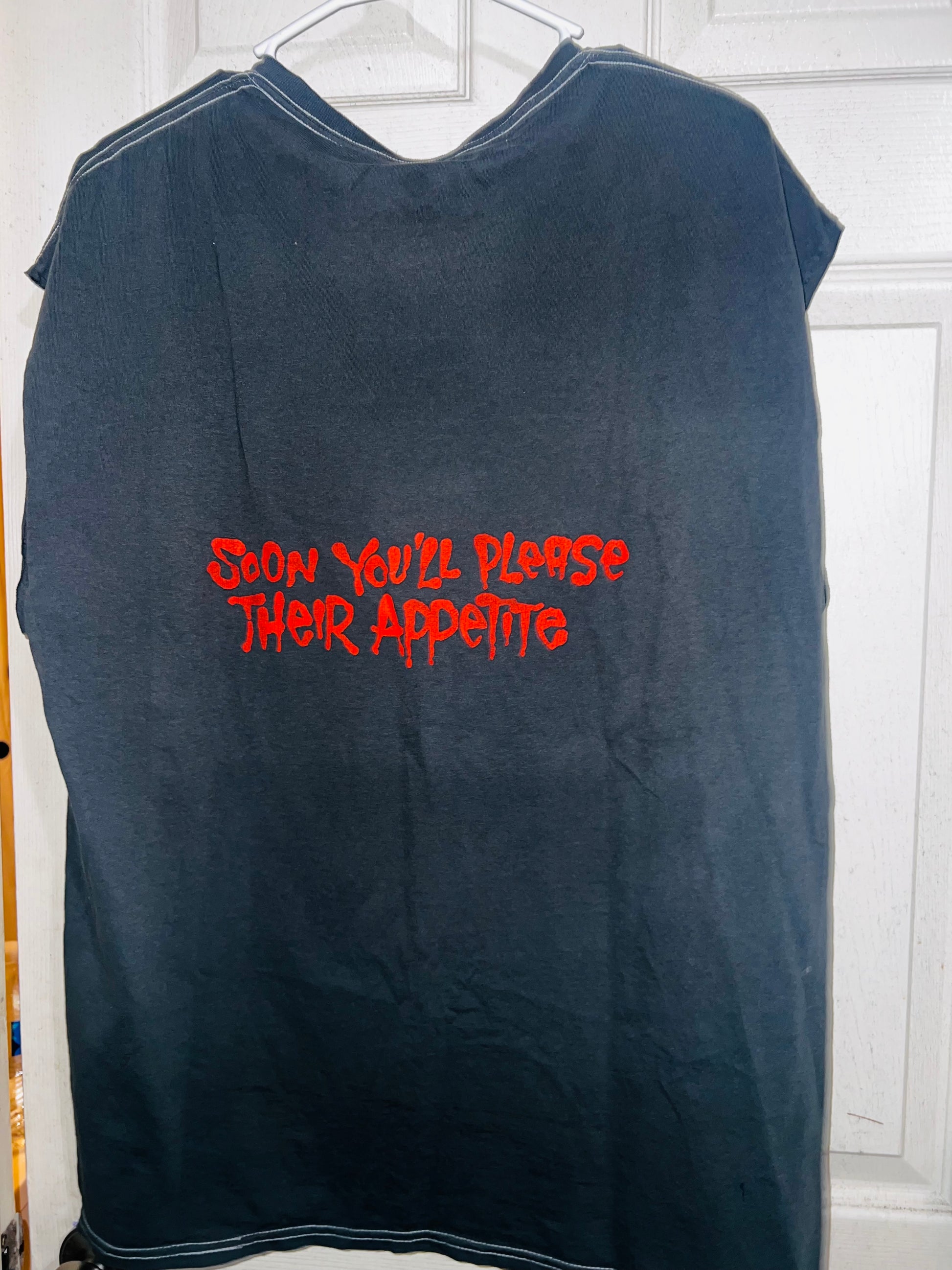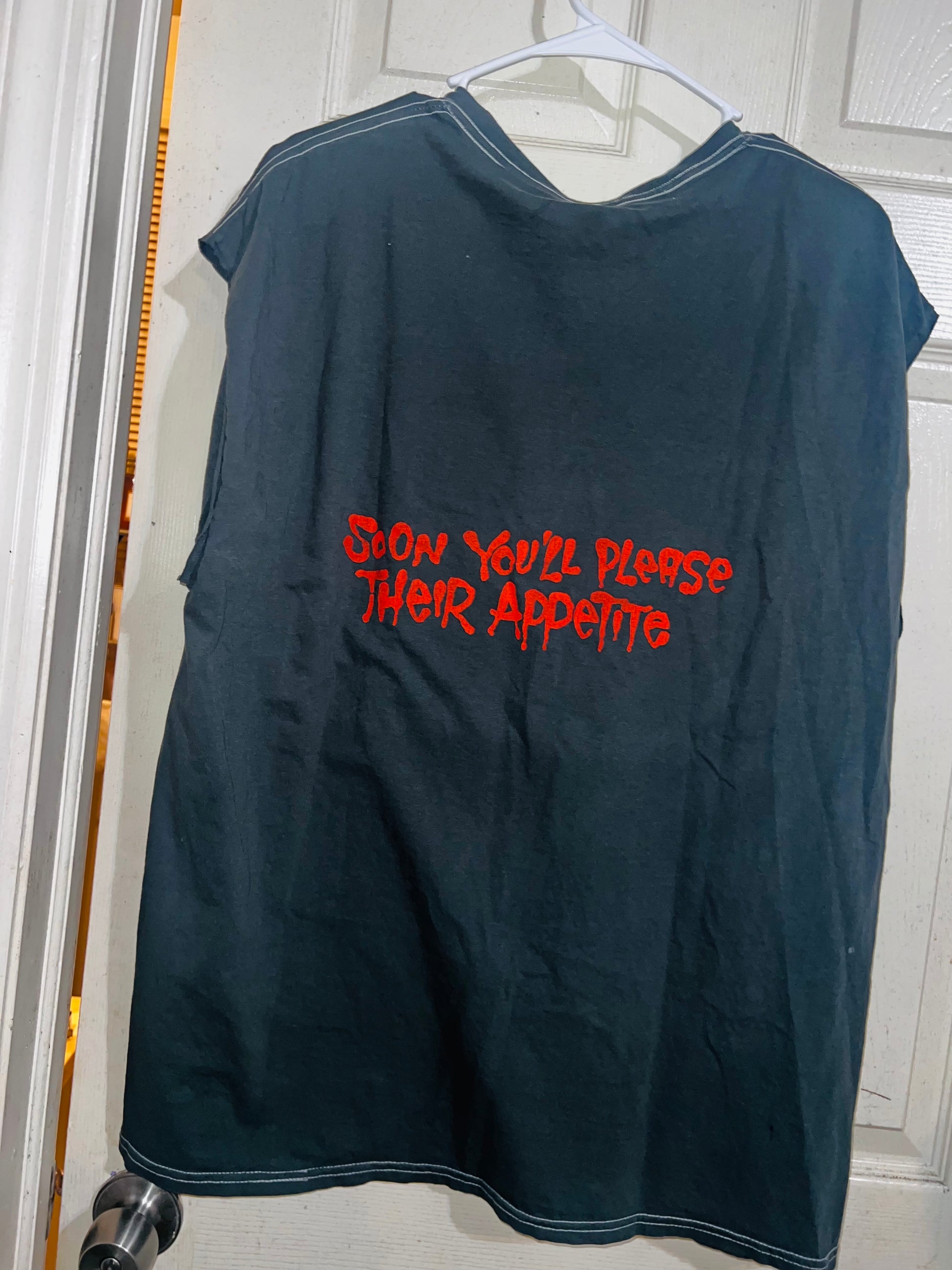 This is now a preorder. Dark charcoal grey Metallica tank, could be worn as a dress like I‘ve styled before. Perfect to wear with boots and a jacket for fall. Super sick graphic and on the back has “Soon you’ll please their appetite.” One size fits all (like Urban).