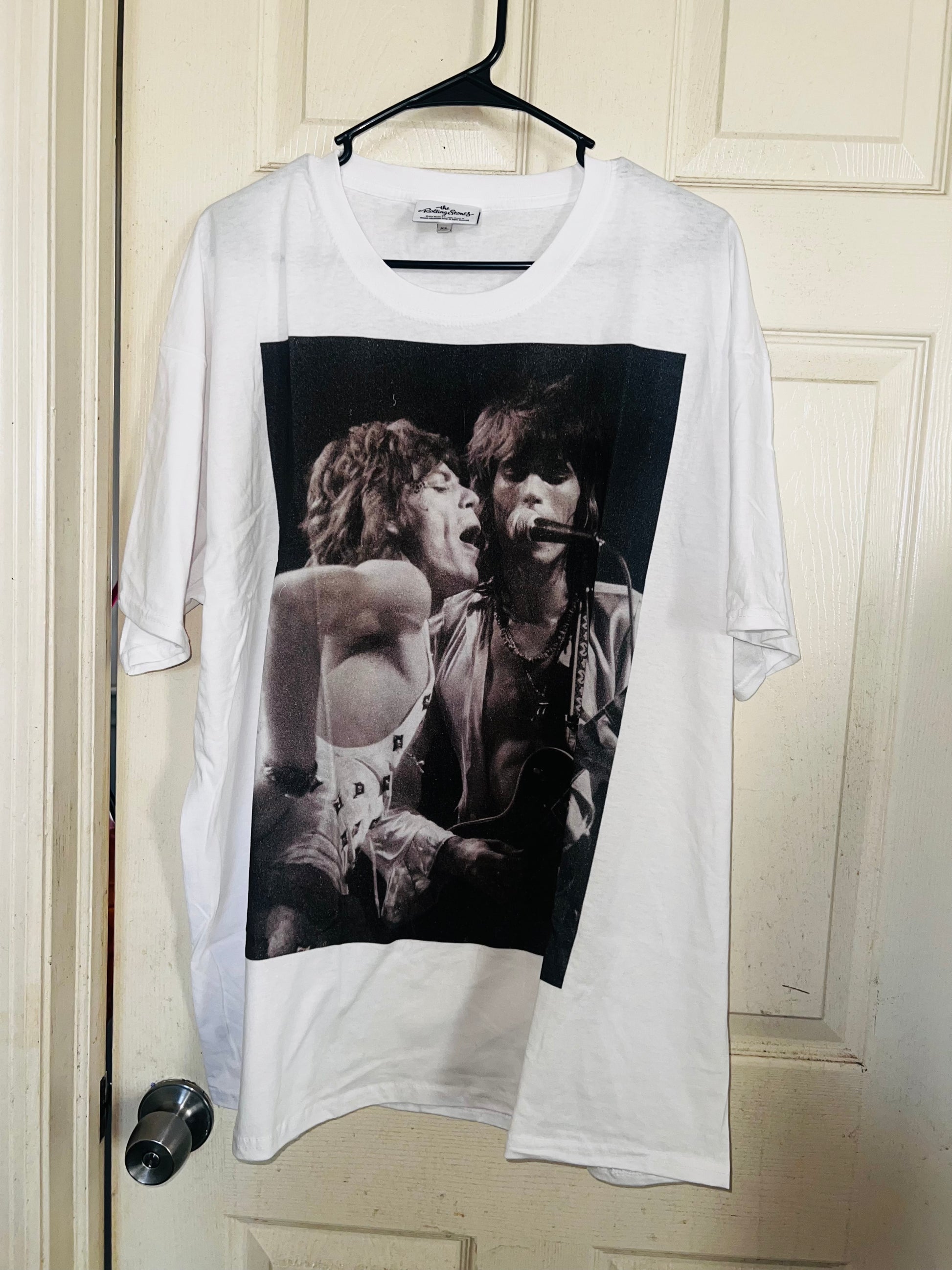 A super sick throwback black and white photo of Mick Jagger & Keith Richards of the Rolling Stones. Oversized, size XL.