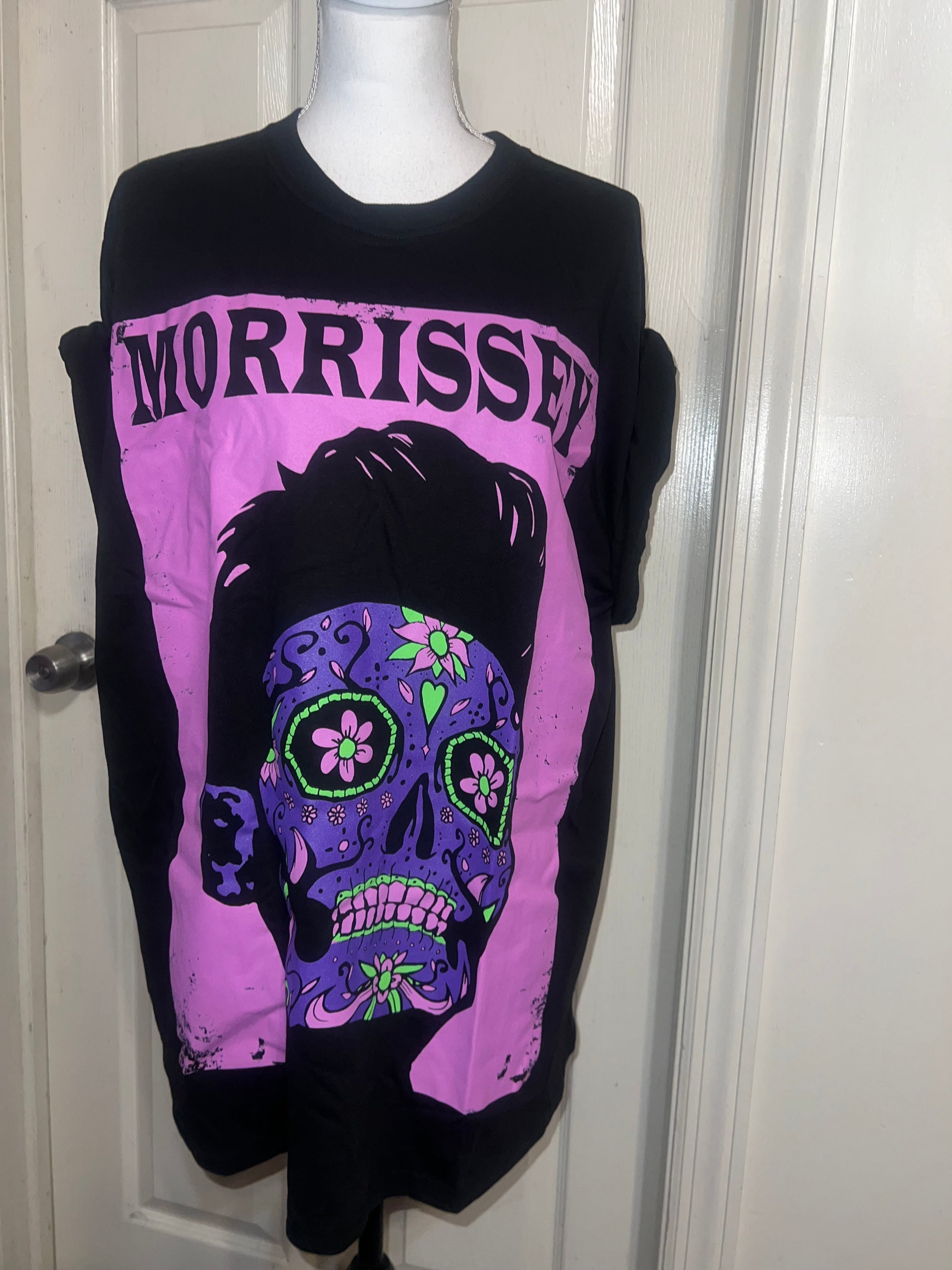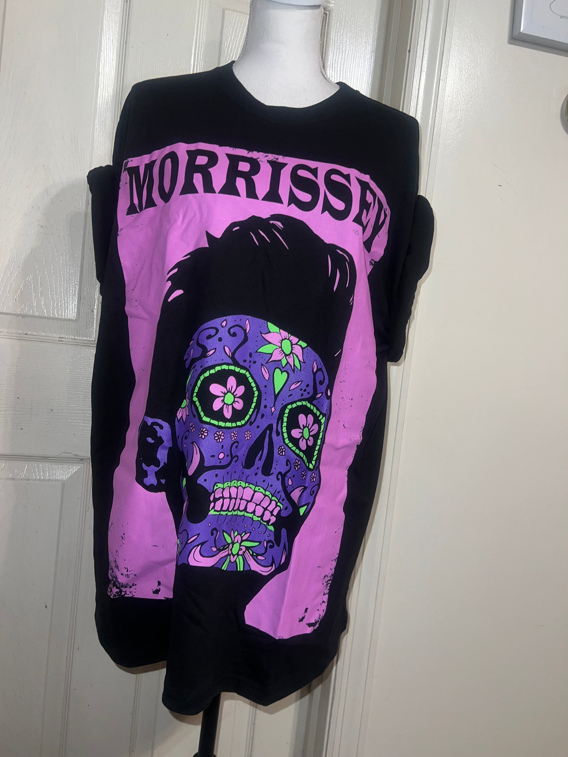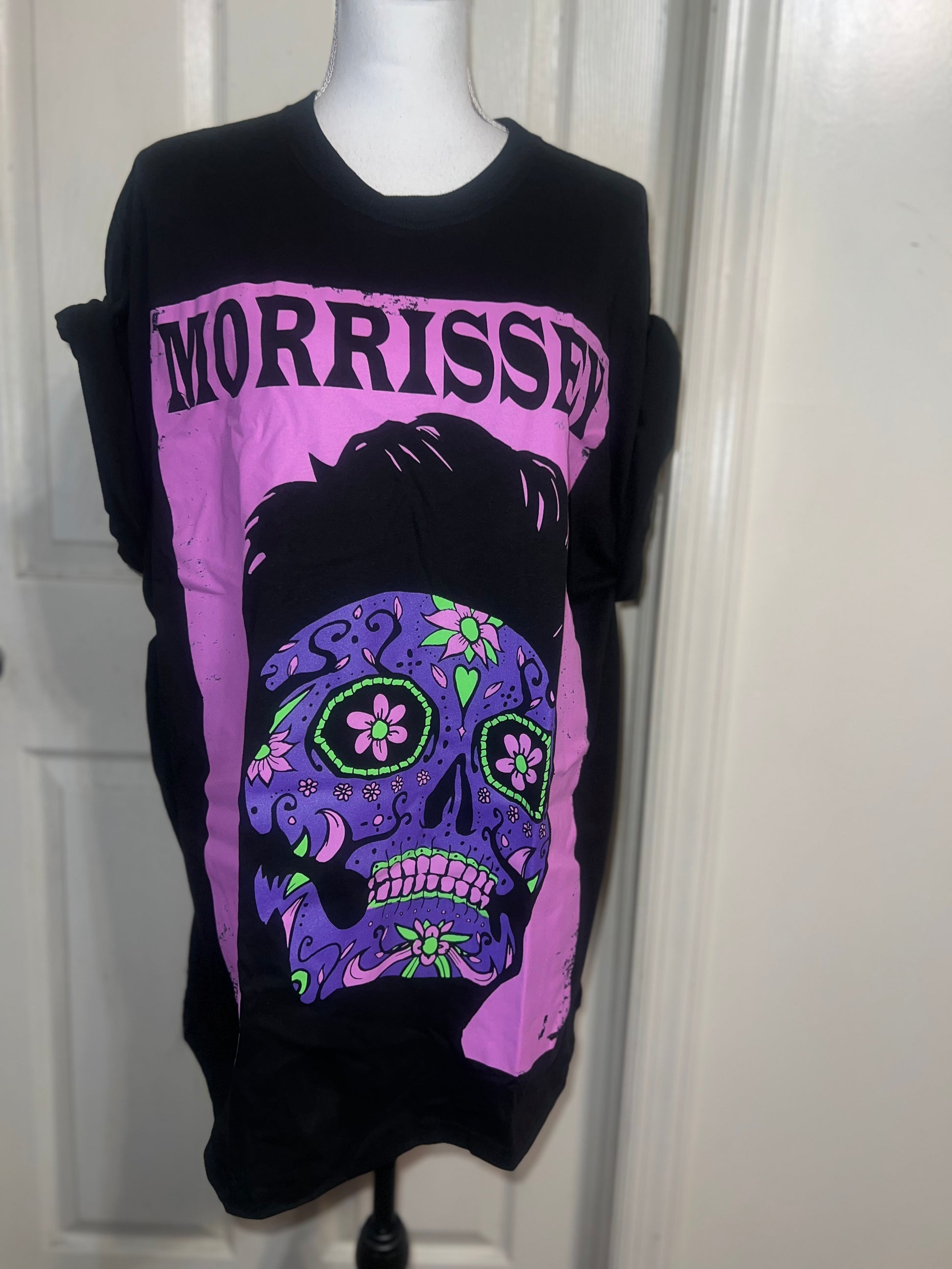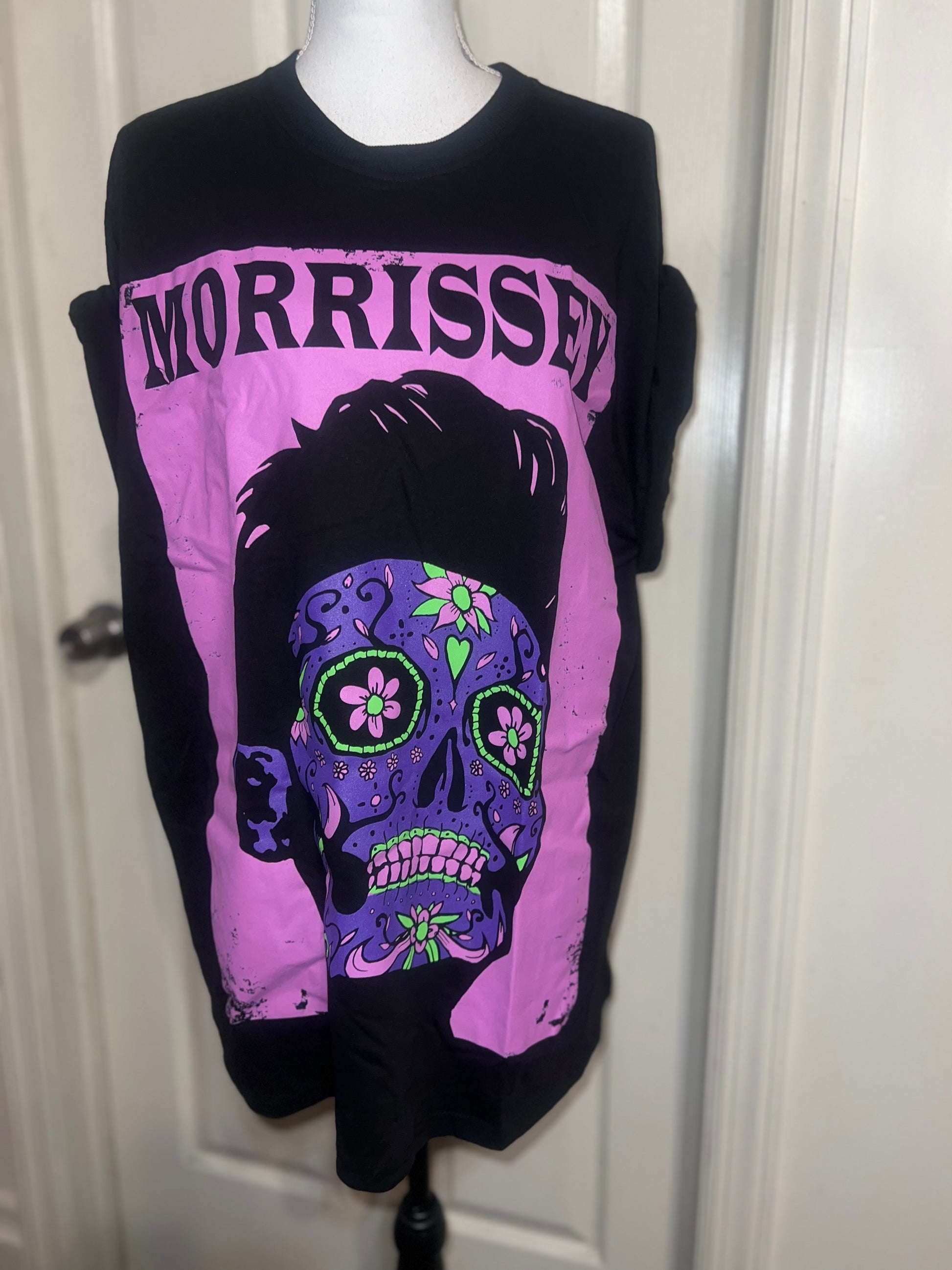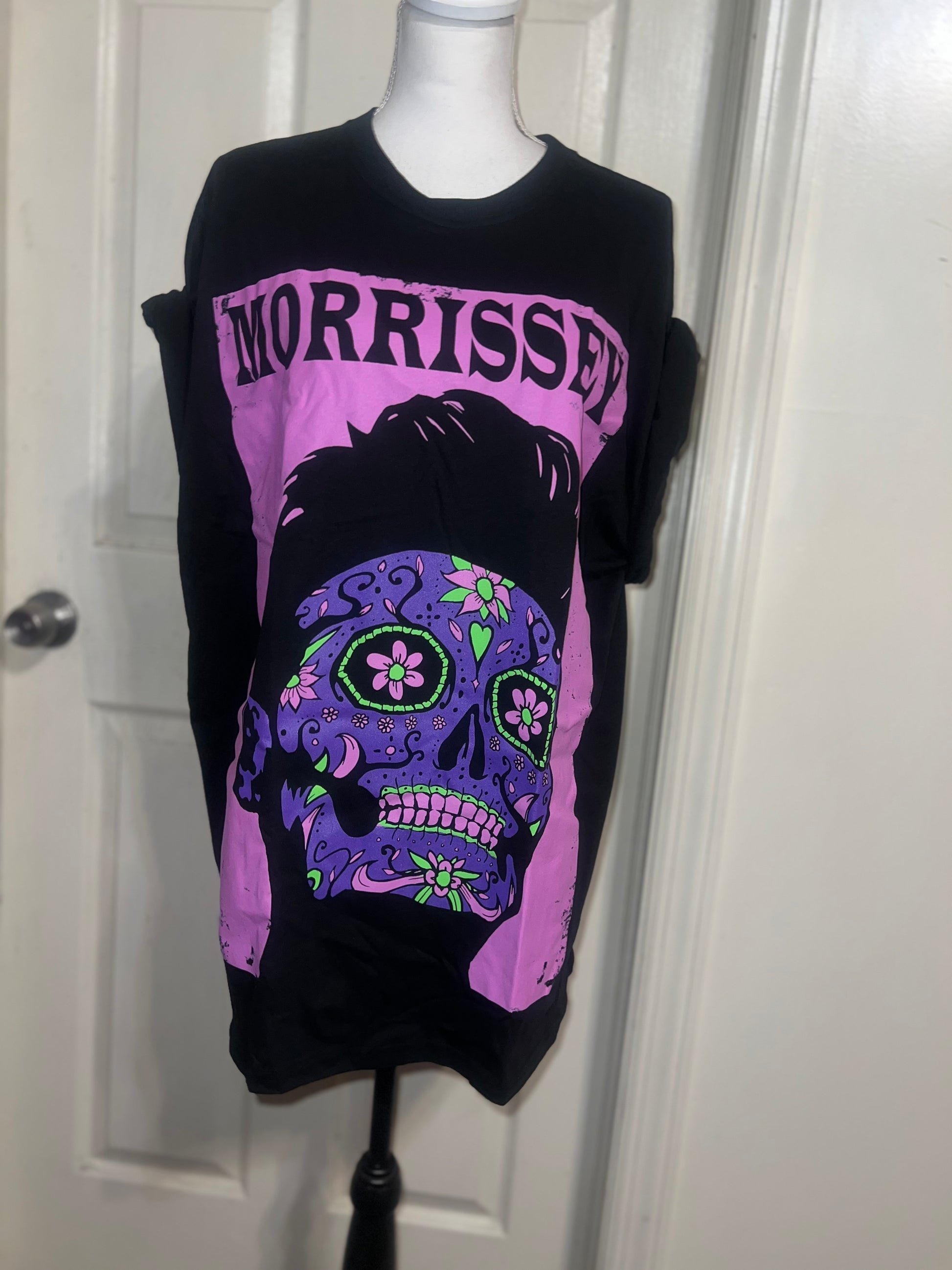 A black Morrissey tee with the man himself as a sugar skull. Super unique, I love/hate him so much! Size large, oversized.